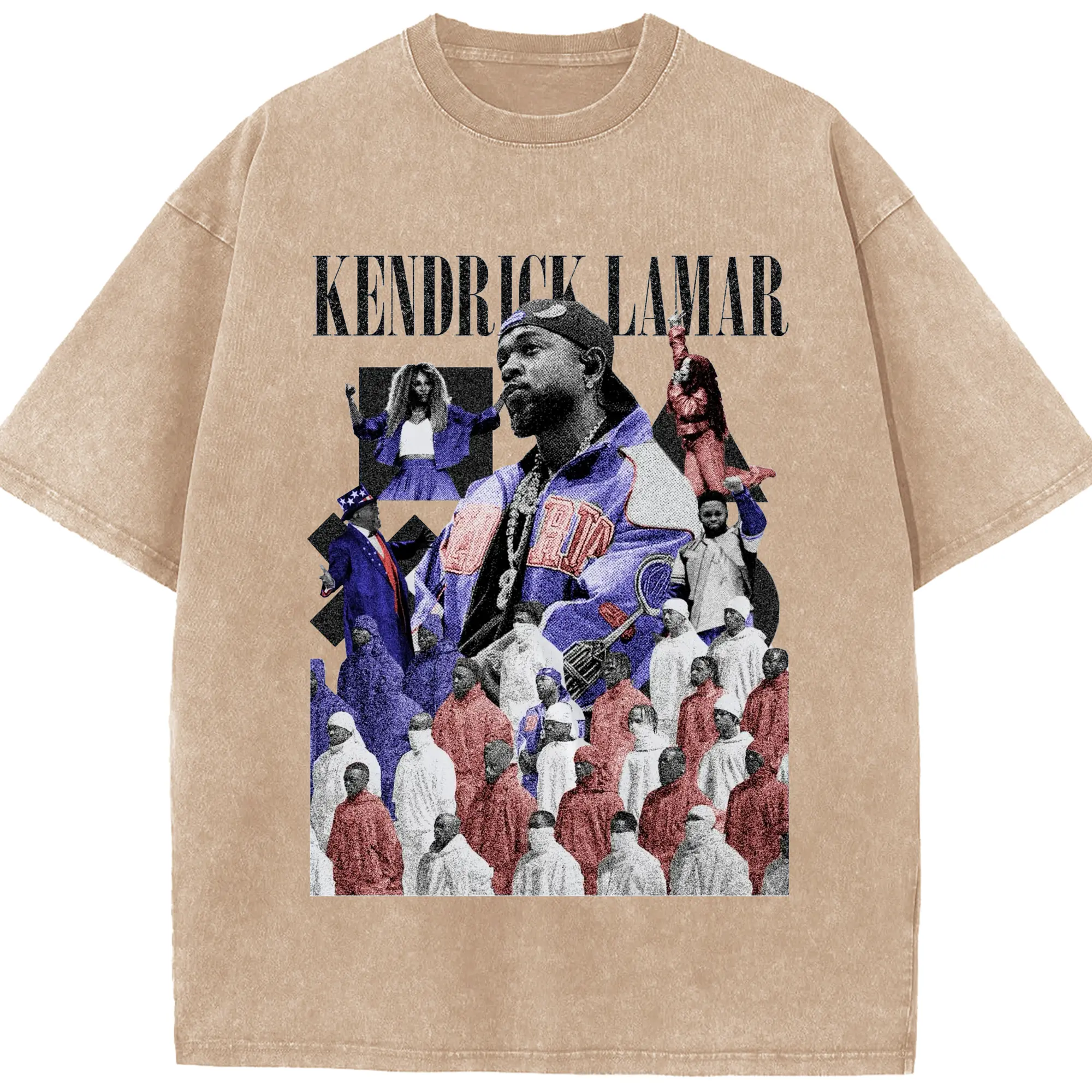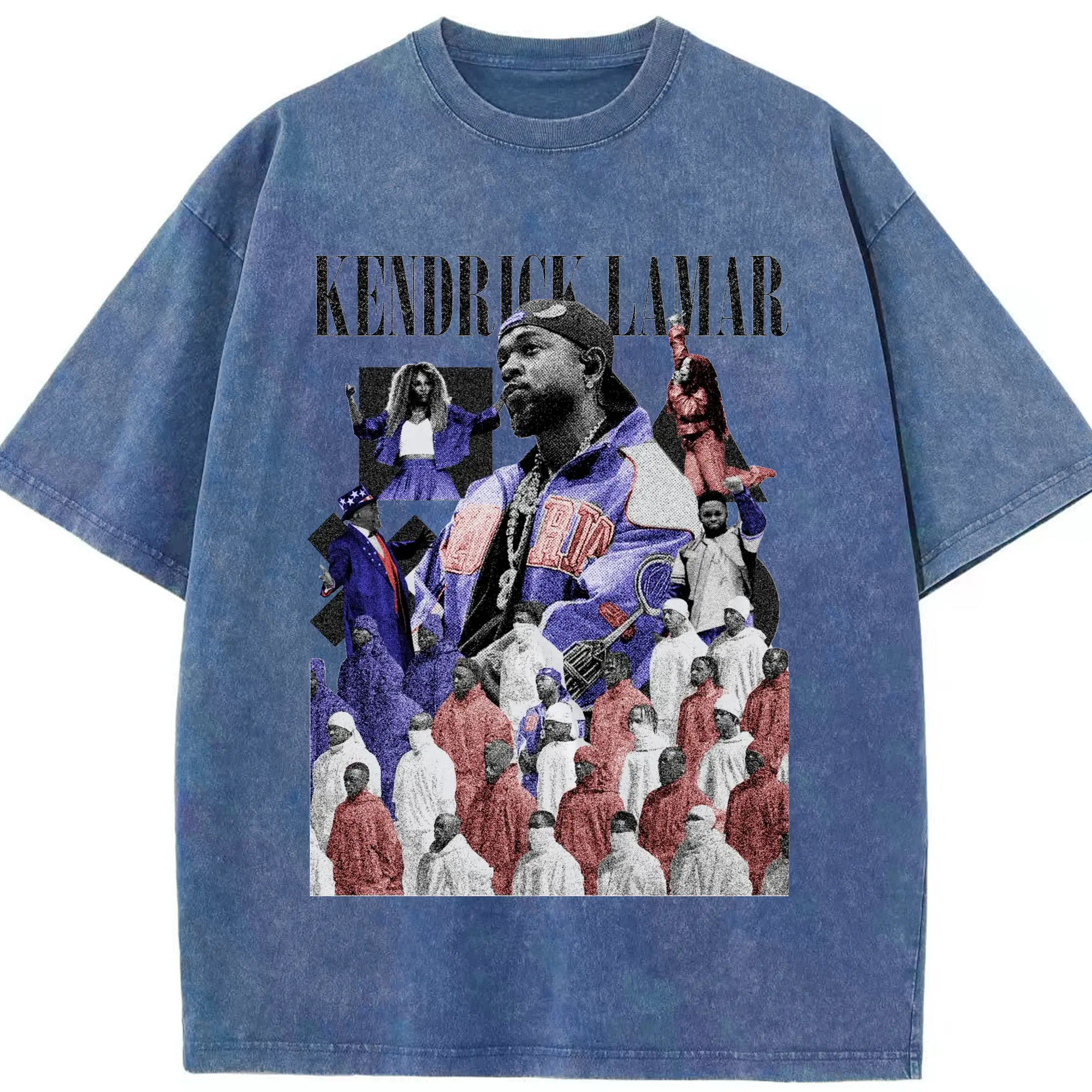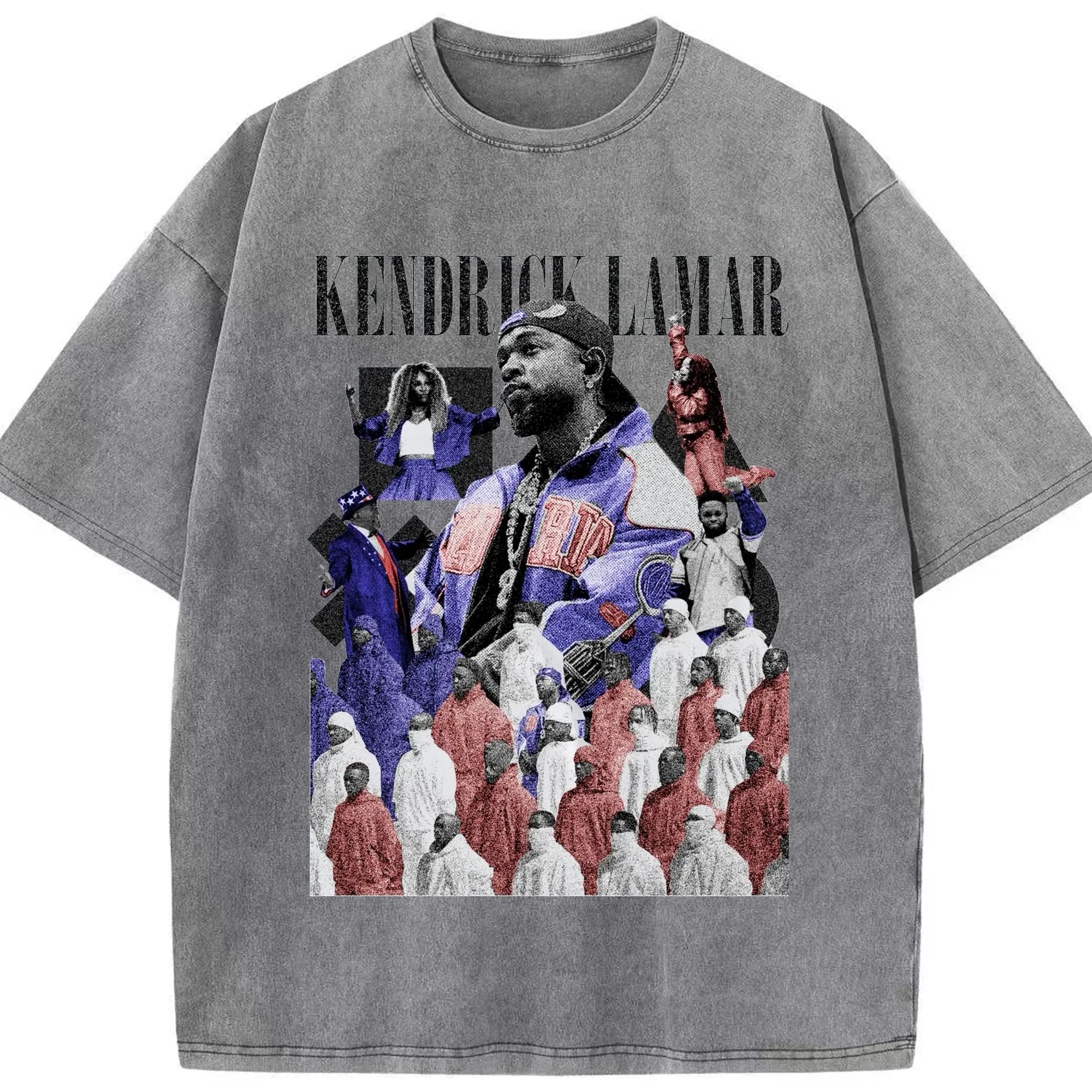 Kendrick Lamar Retro Collage Hip-Hop DIY - Washed Vintage Look 230g Cotton Oversized T-Shirt With Front Heat Transfer Print – Soft, Lightweight, Stylish Fit – Comfortable Casual Wear For Sports & Everyday Use