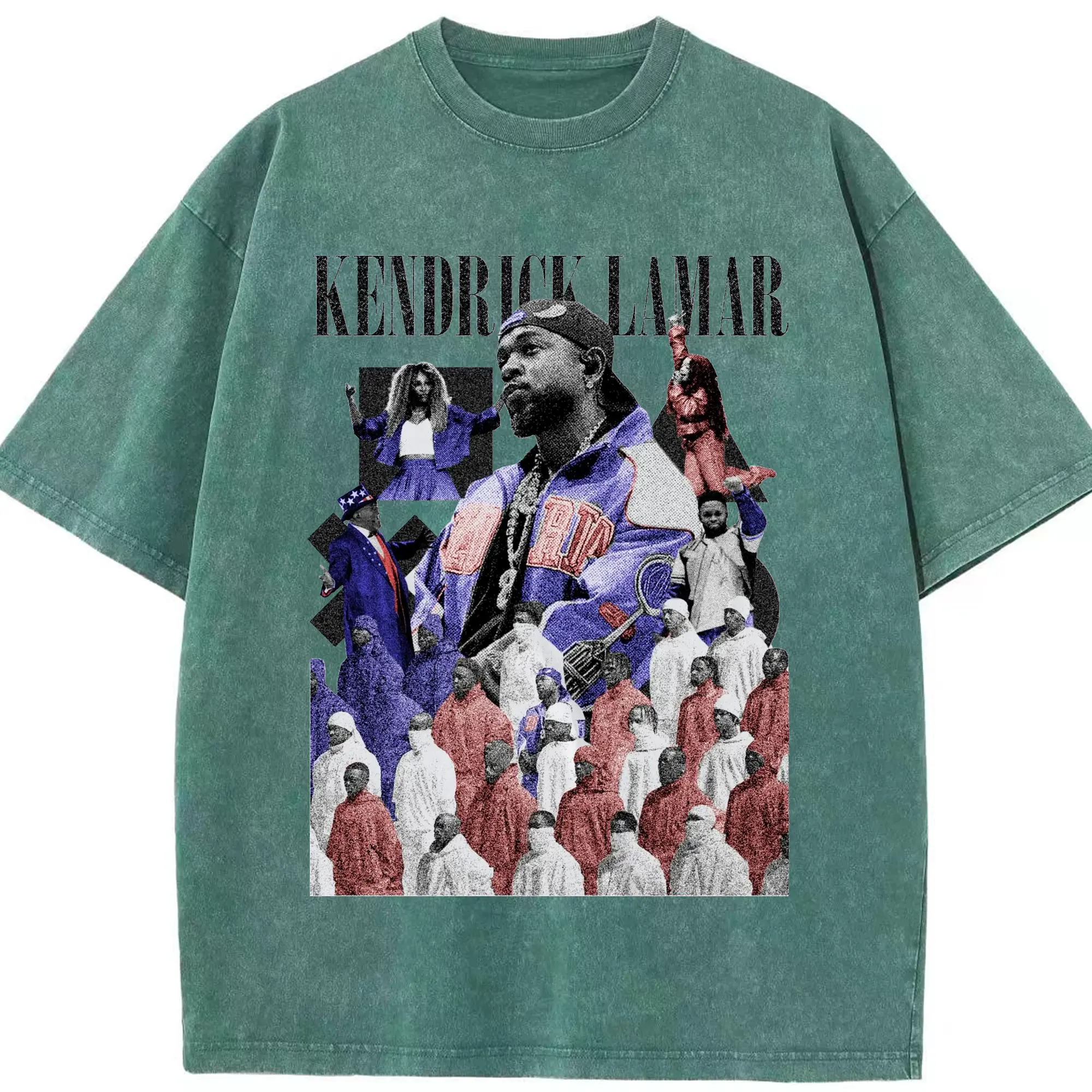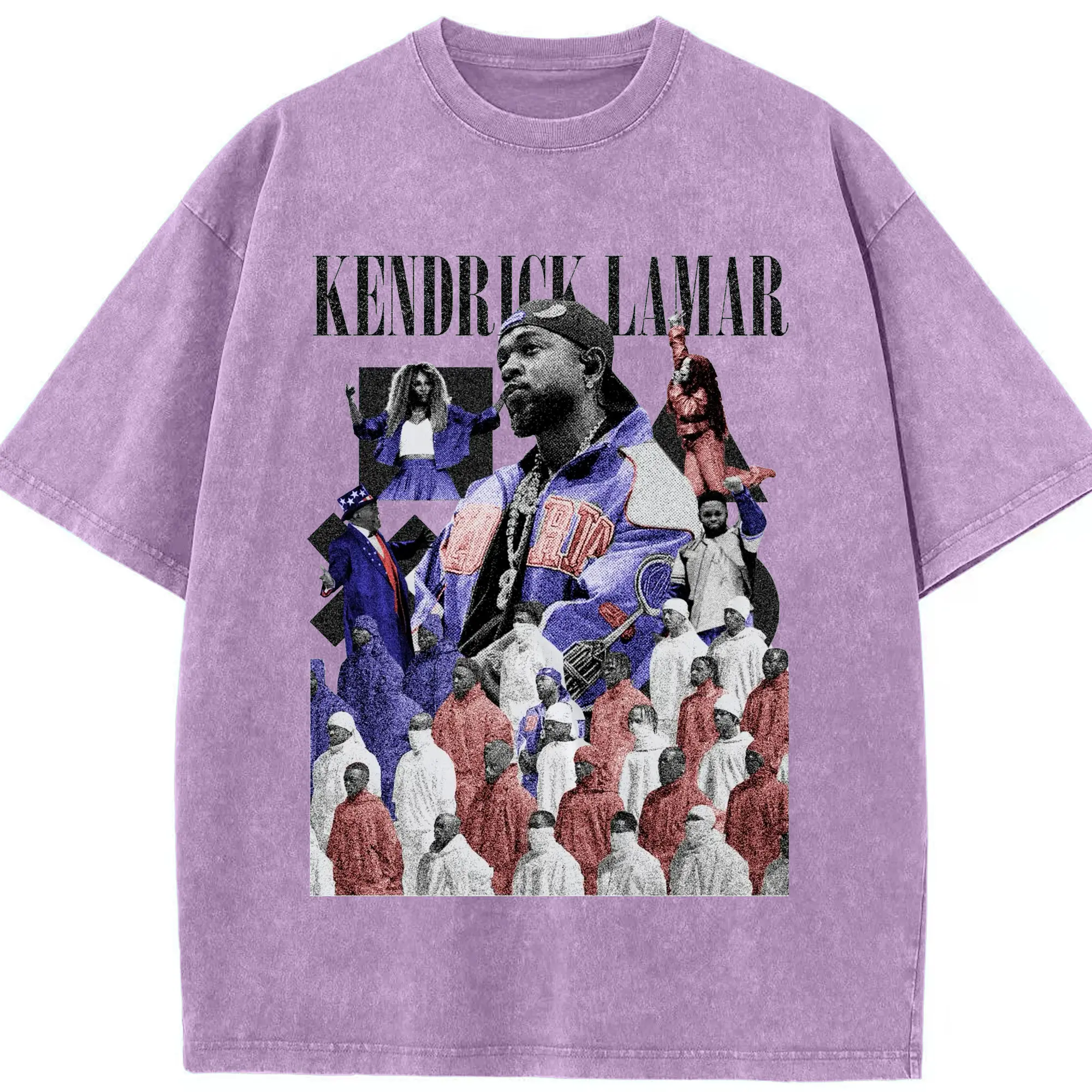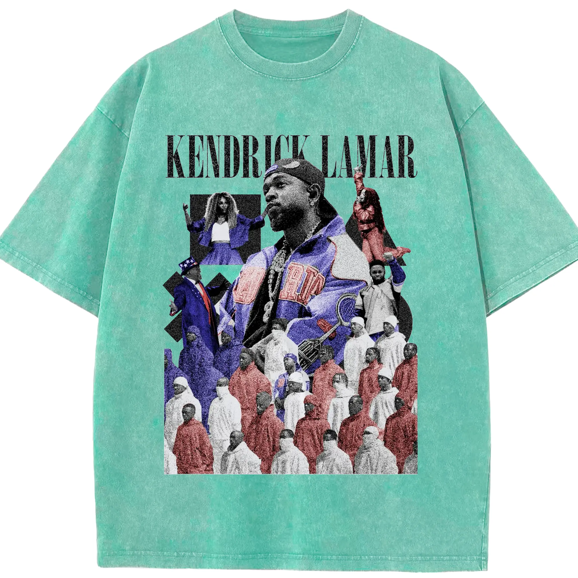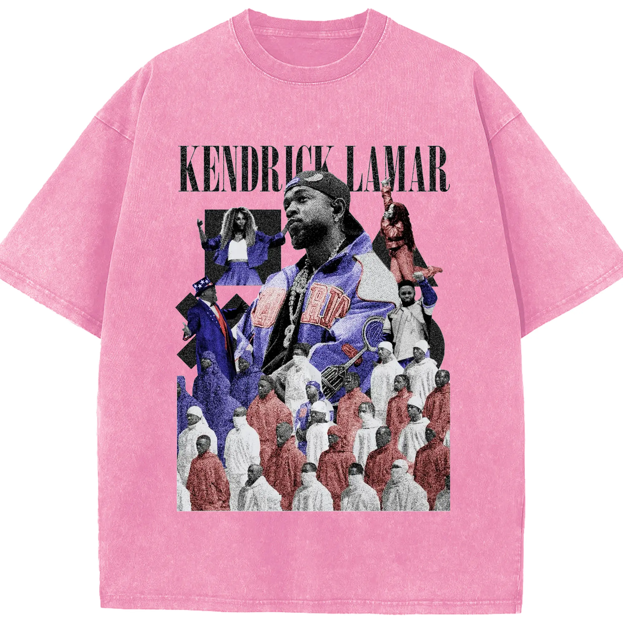 Kendrick Lamar Retro Collage Hip-Hop DIY - Washed Vintage Look 230g Cotton Oversized T-Shirt With Front Heat Transfer Print – Soft, Lightweight, Stylish Fit – Comfortable Casual Wear For Sports & Everyday Use