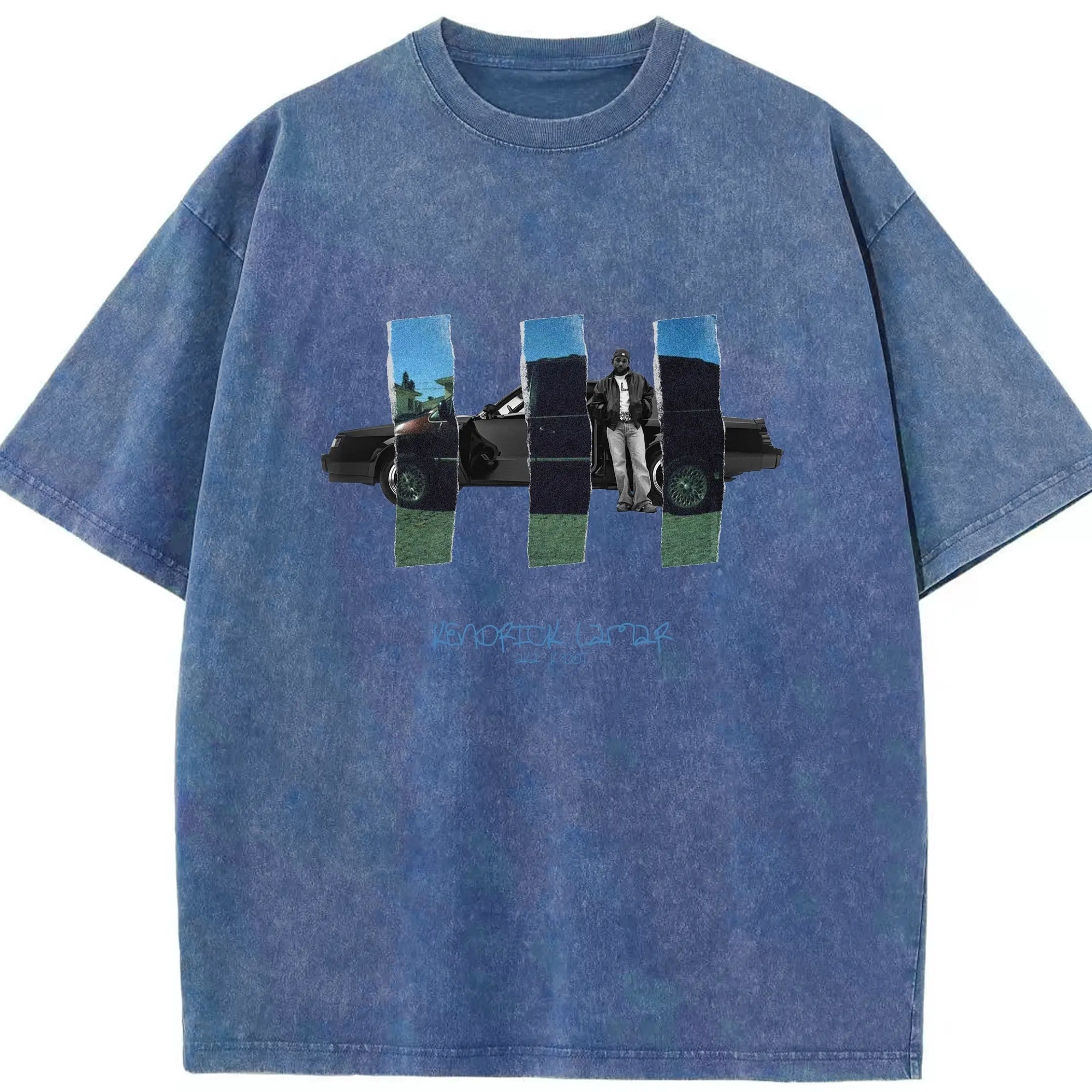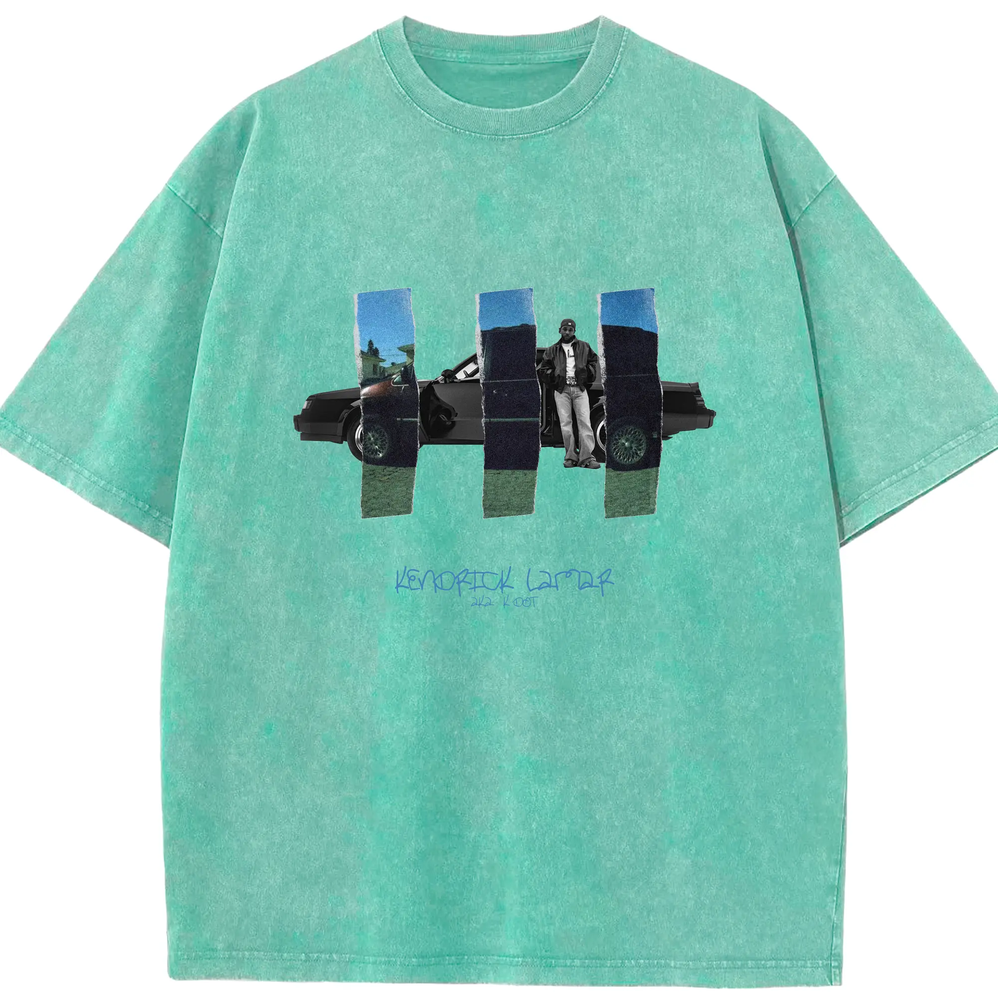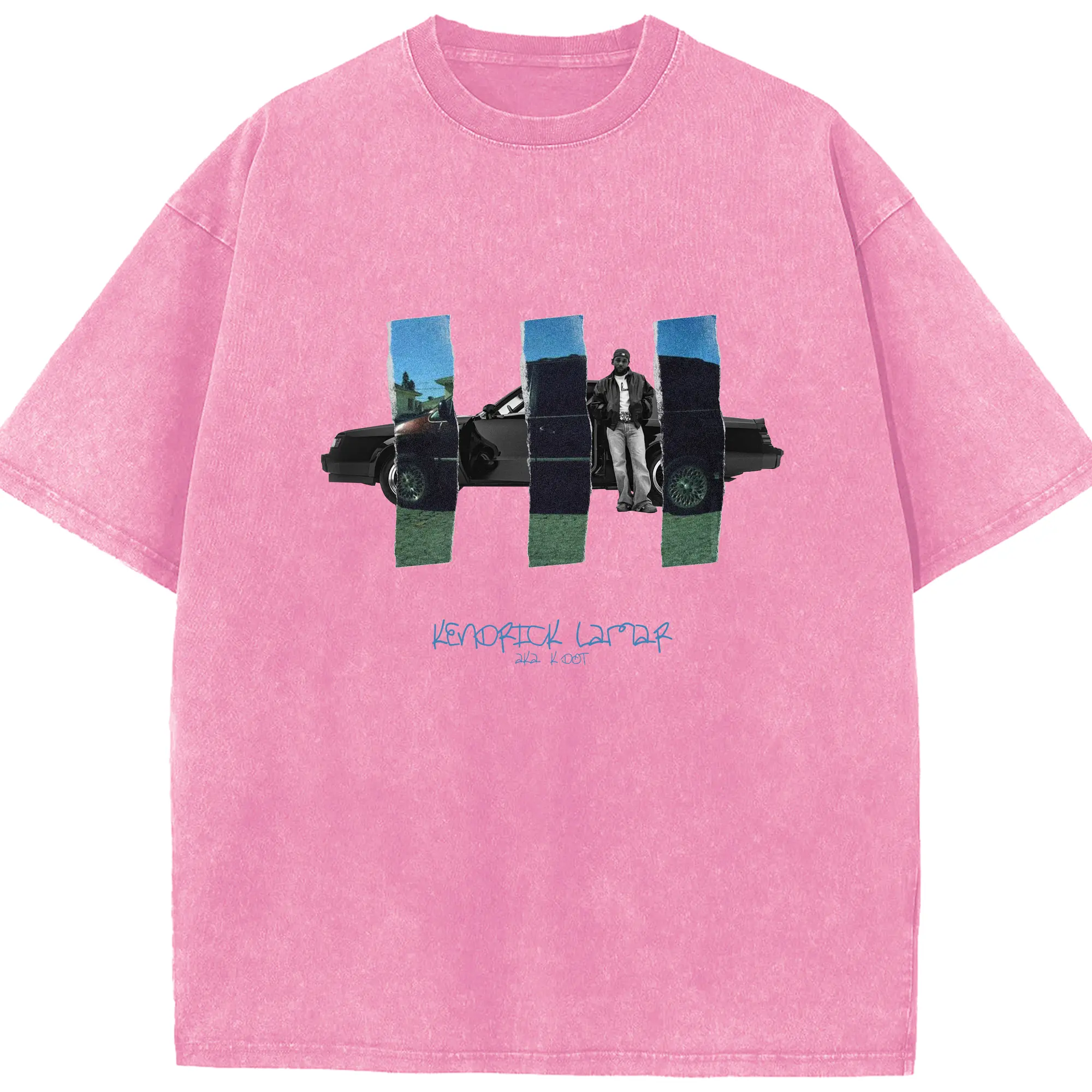Kendrick Lamar Retro Hip-Hop Street Car DIY - Washed Vintage Look 230g Cotton Oversized T-Shirt With Front Heat Transfer Print – Soft, Lightweight, Stylish Fit – Comfortable Casual Wear For Sports & Everyday Use