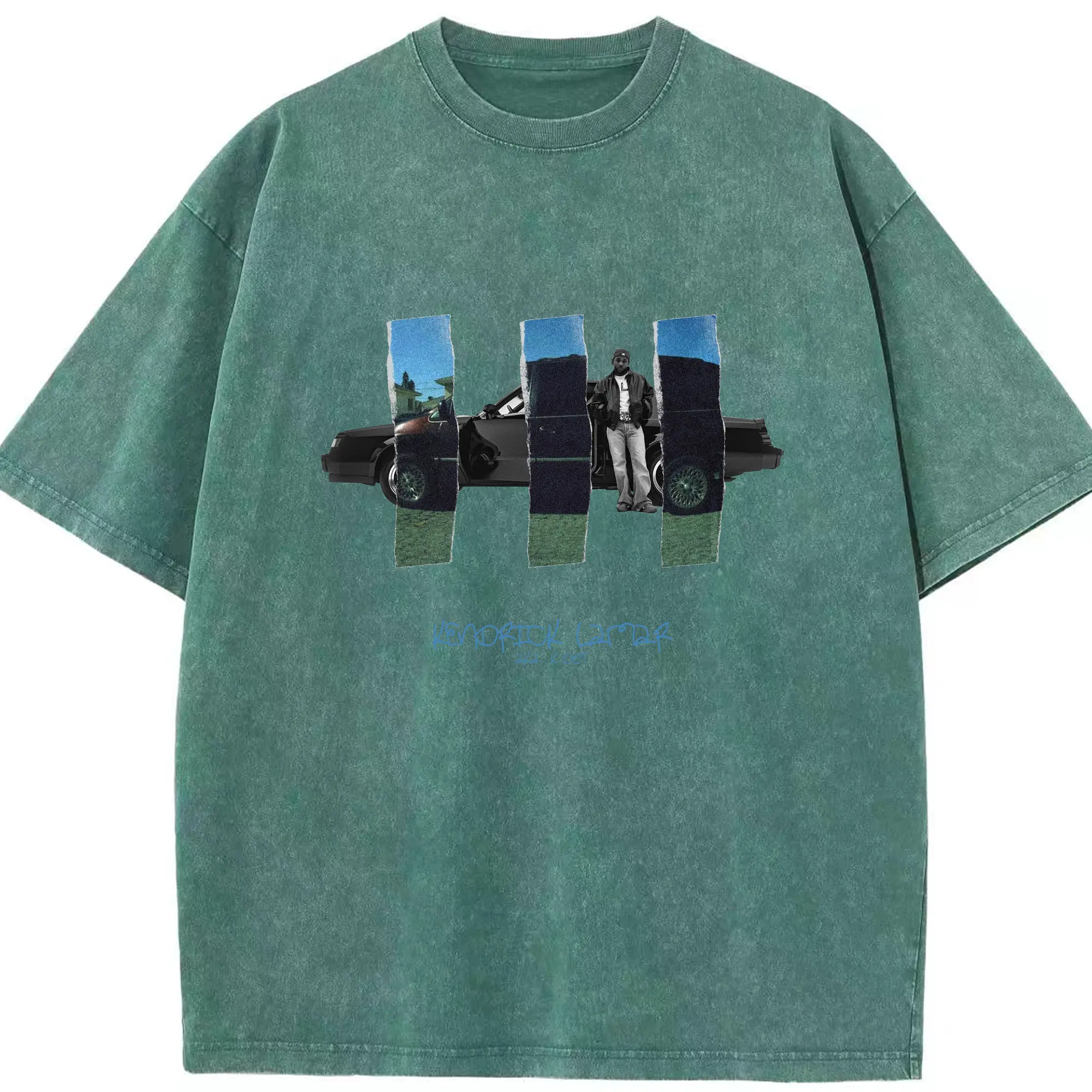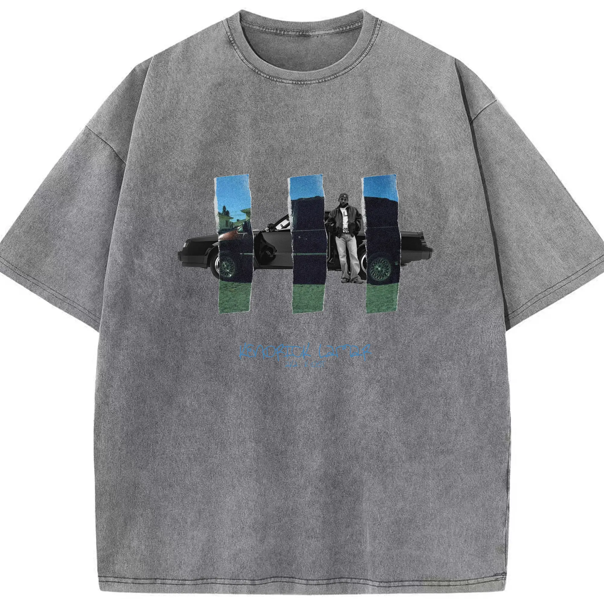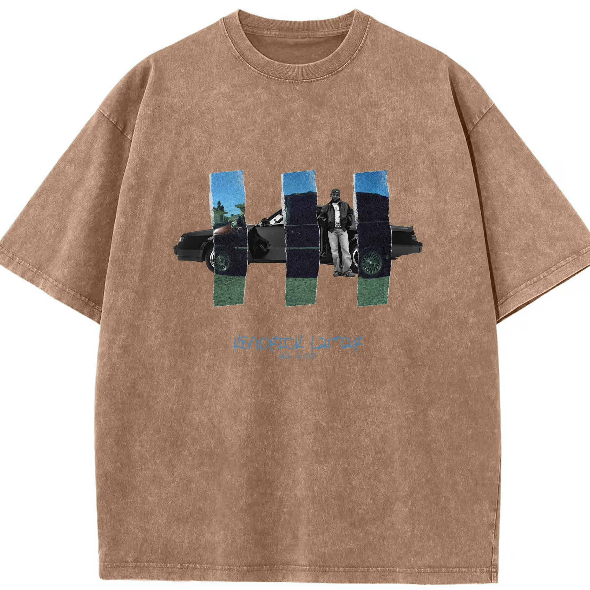 Kendrick Lamar Retro Hip-Hop Street Car DIY - Washed Vintage Look 230g Cotton Oversized T-Shirt With Front Heat Transfer Print – Soft, Lightweight, Stylish Fit – Comfortable Casual Wear For Sports & Everyday Use