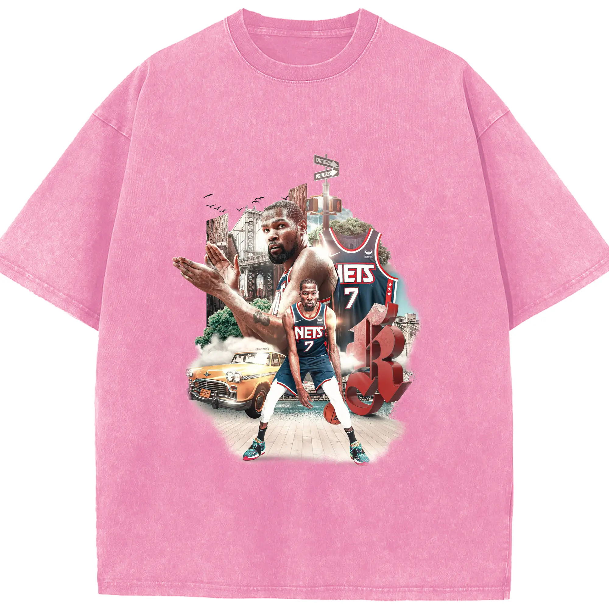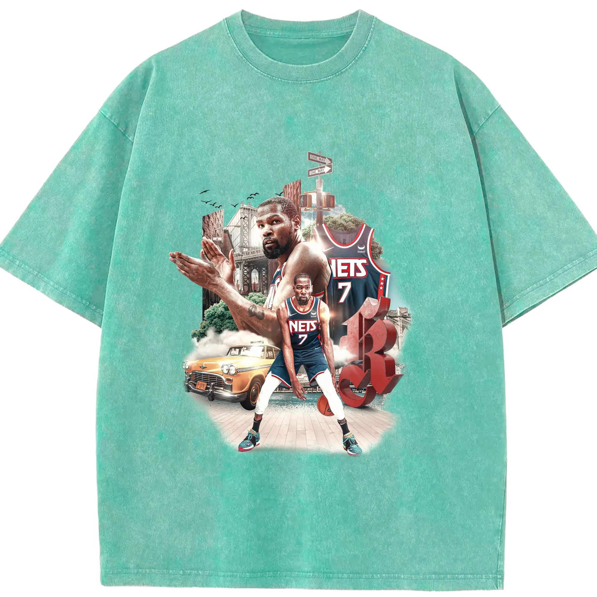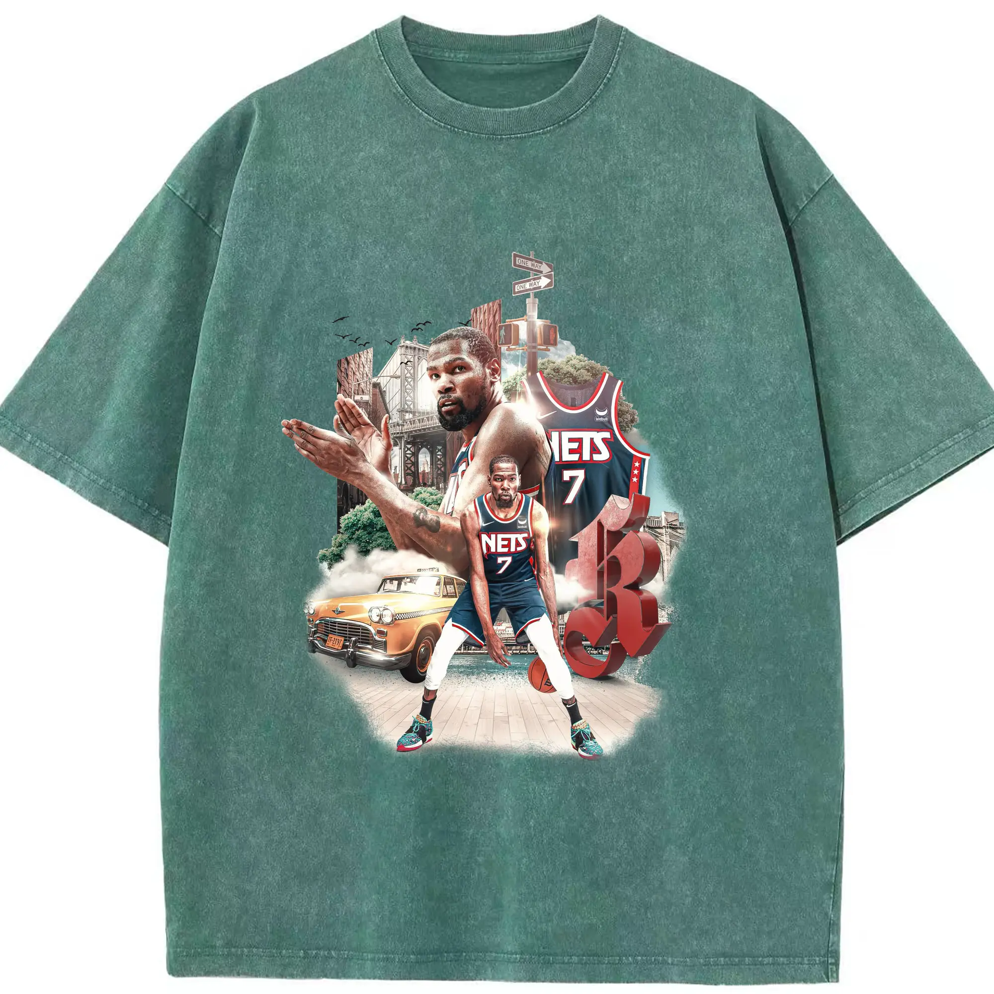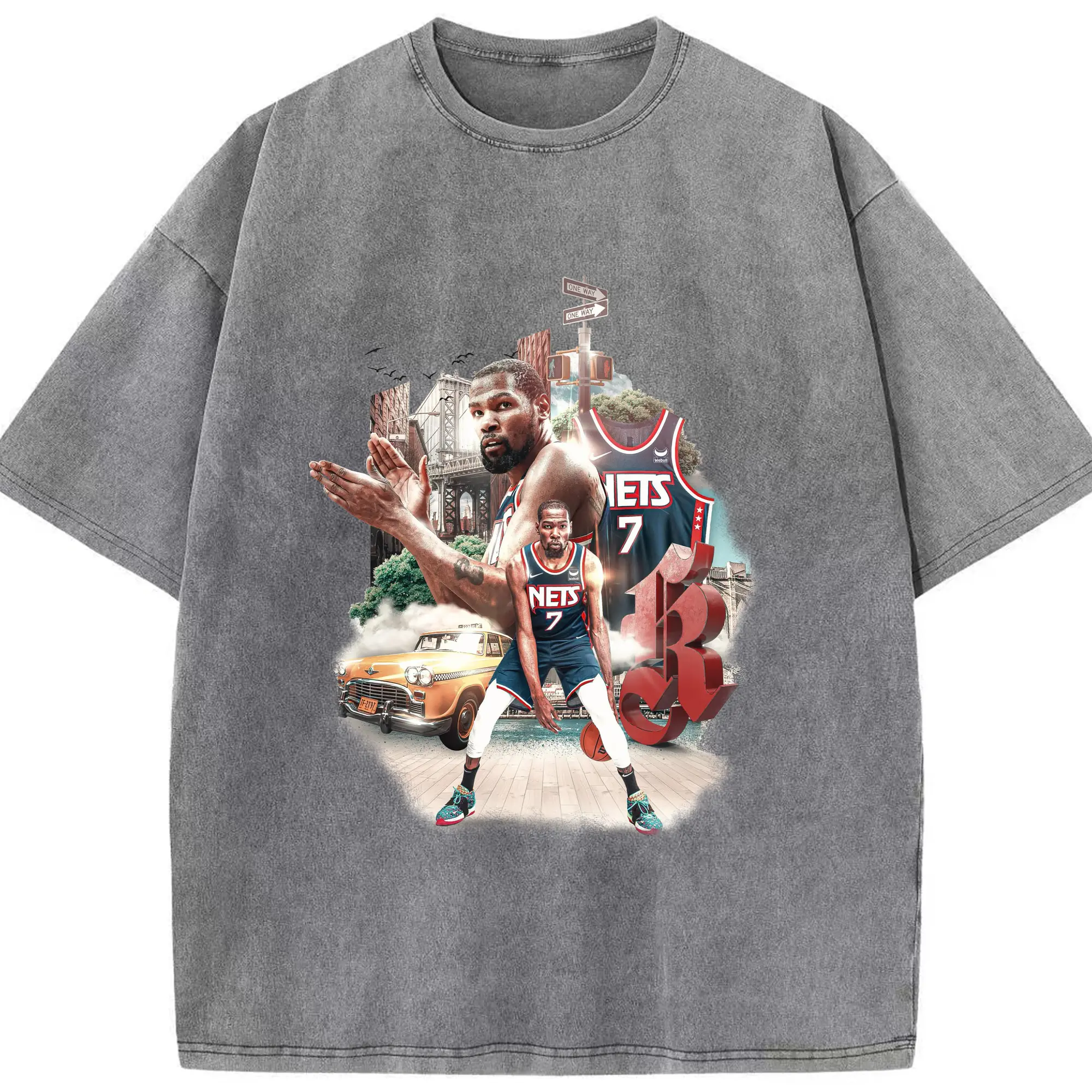 Kevin Durant Brooklyn Nets Limited Edition Jersey Shirt - Washed Vintage Look 230g Cotton Oversized T-Shirt With Front Heat Transfer Print – Soft, Lightweight, Stylish Fit – Comfortable Casual Wear For Sports & Everyday Use