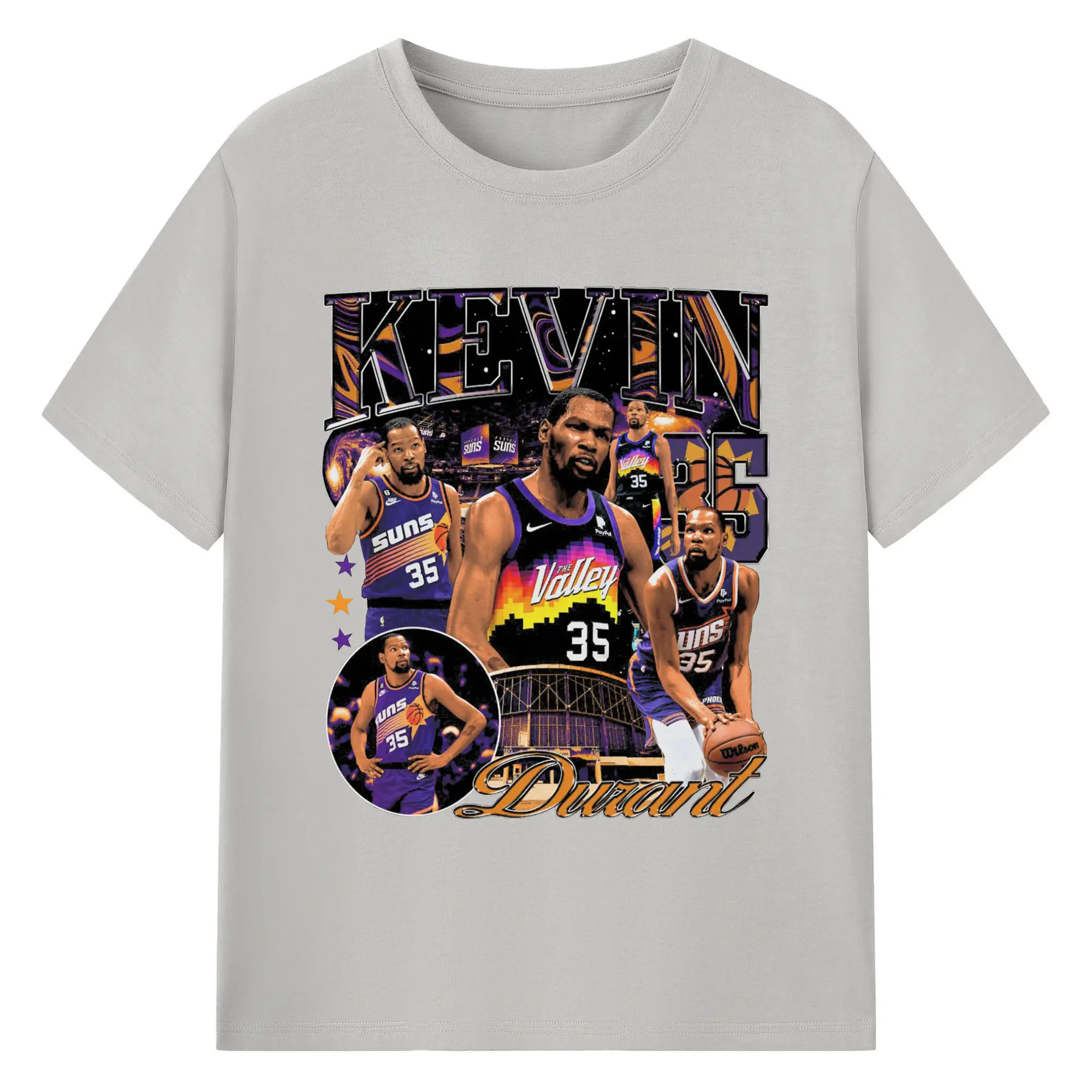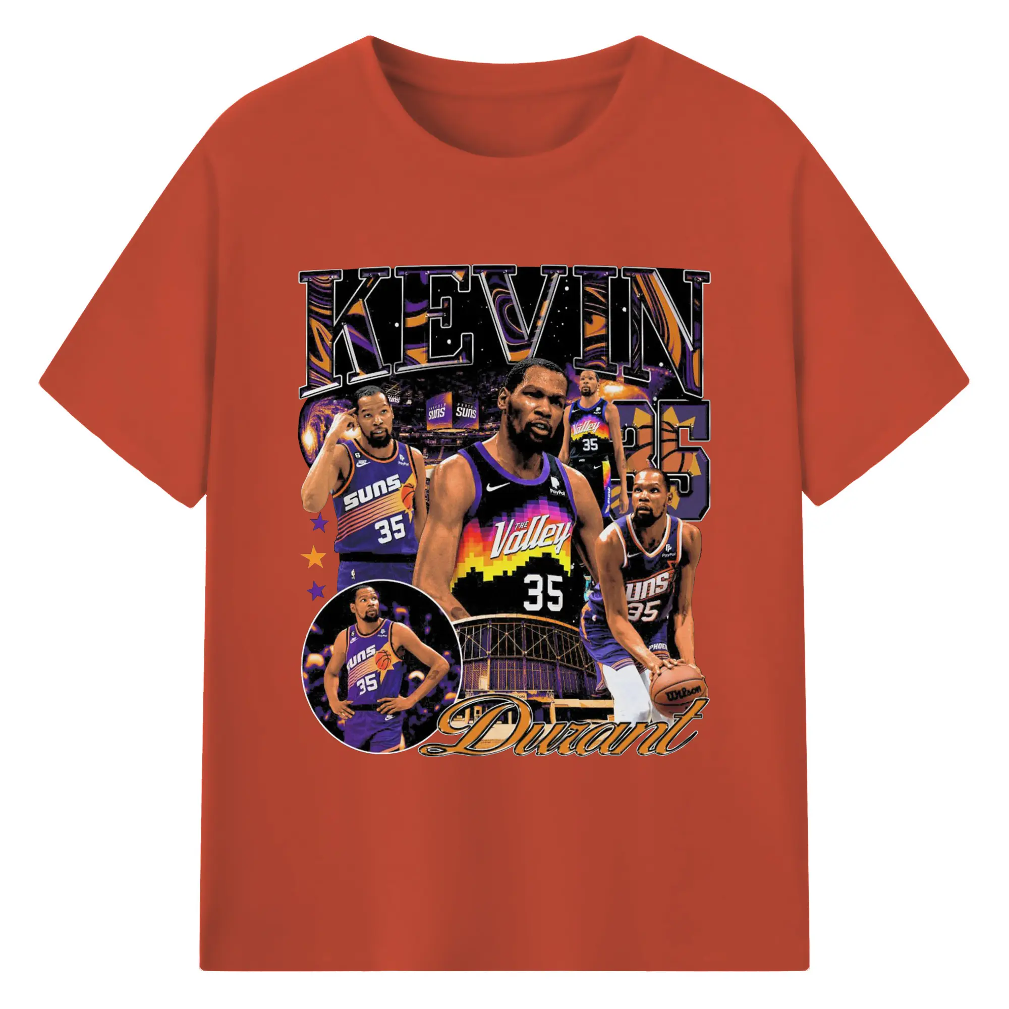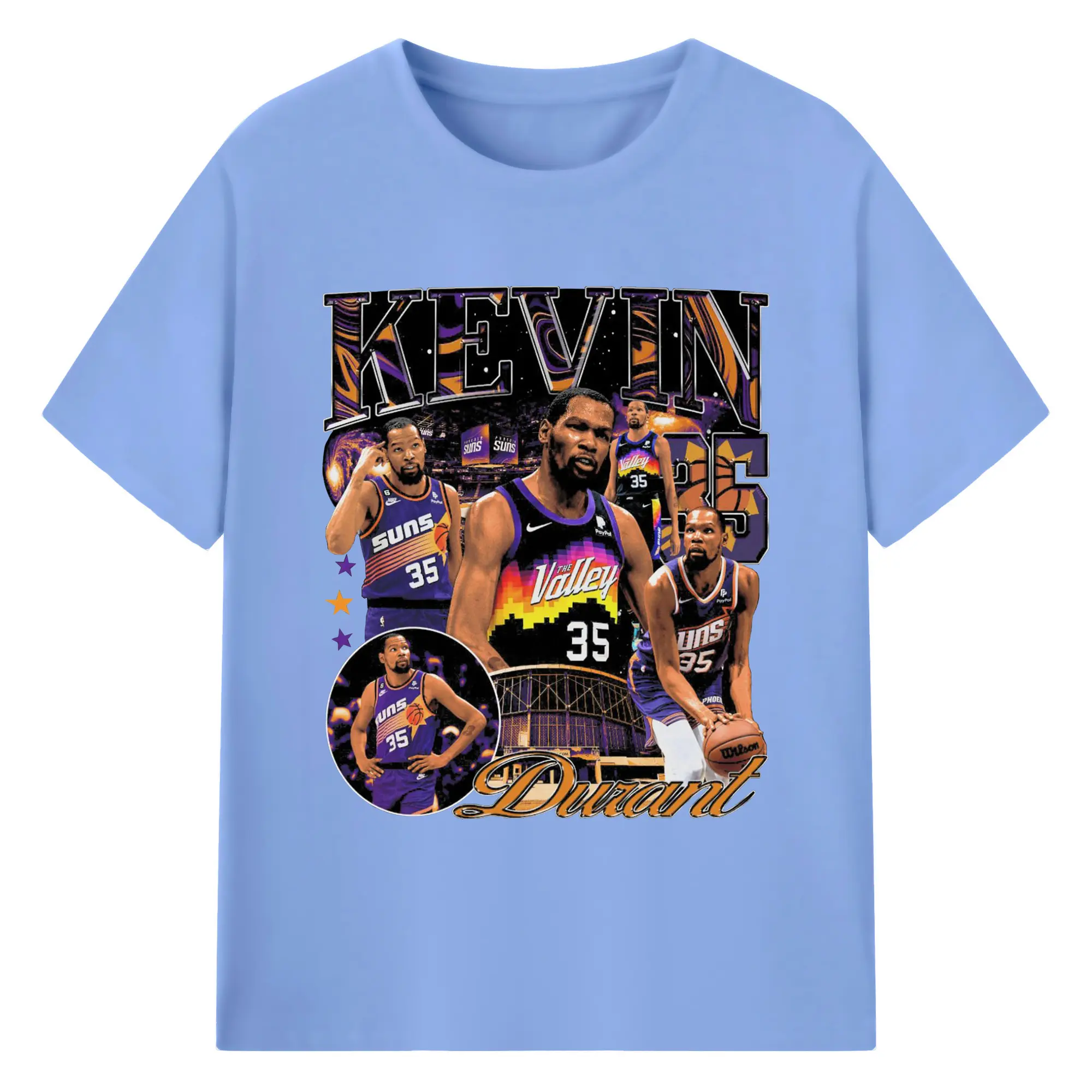 Kevin Durant Phoenix Suns "The Valley" Limited Edition Jersey Shirt - 180g Cotton T-Shirt With Front Heat Transfer Print – Soft, Lightweight, Fitted Design – Comfortable Casual Wear For Sports & Everyday Use