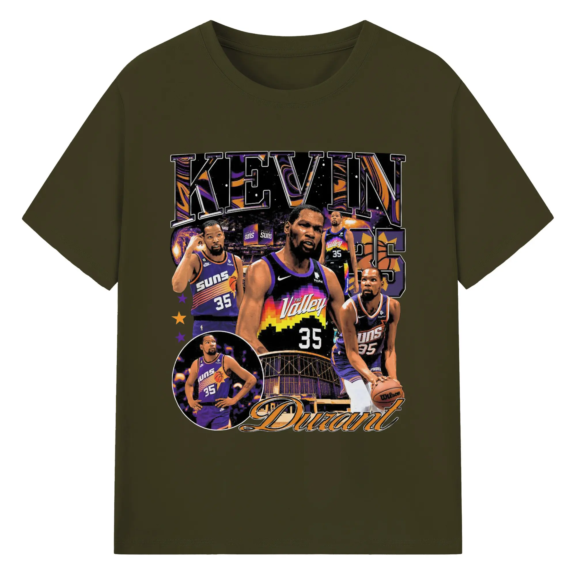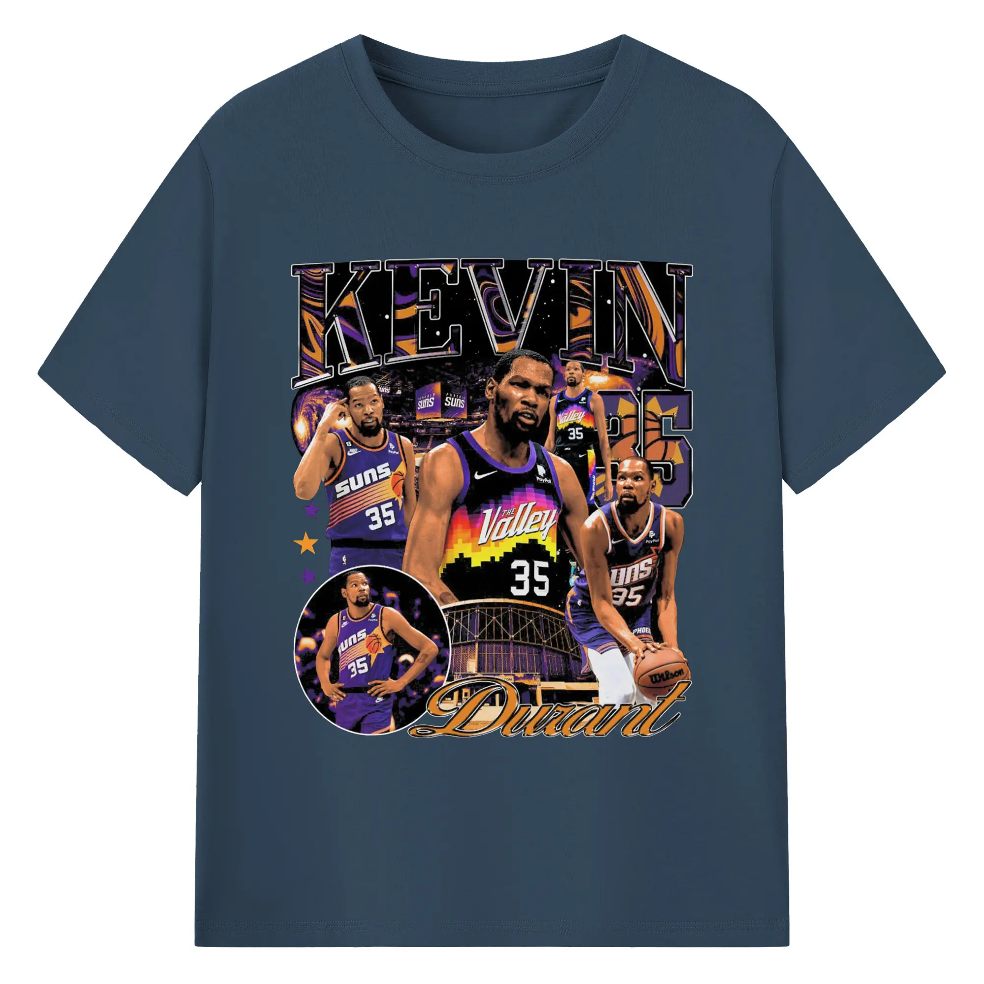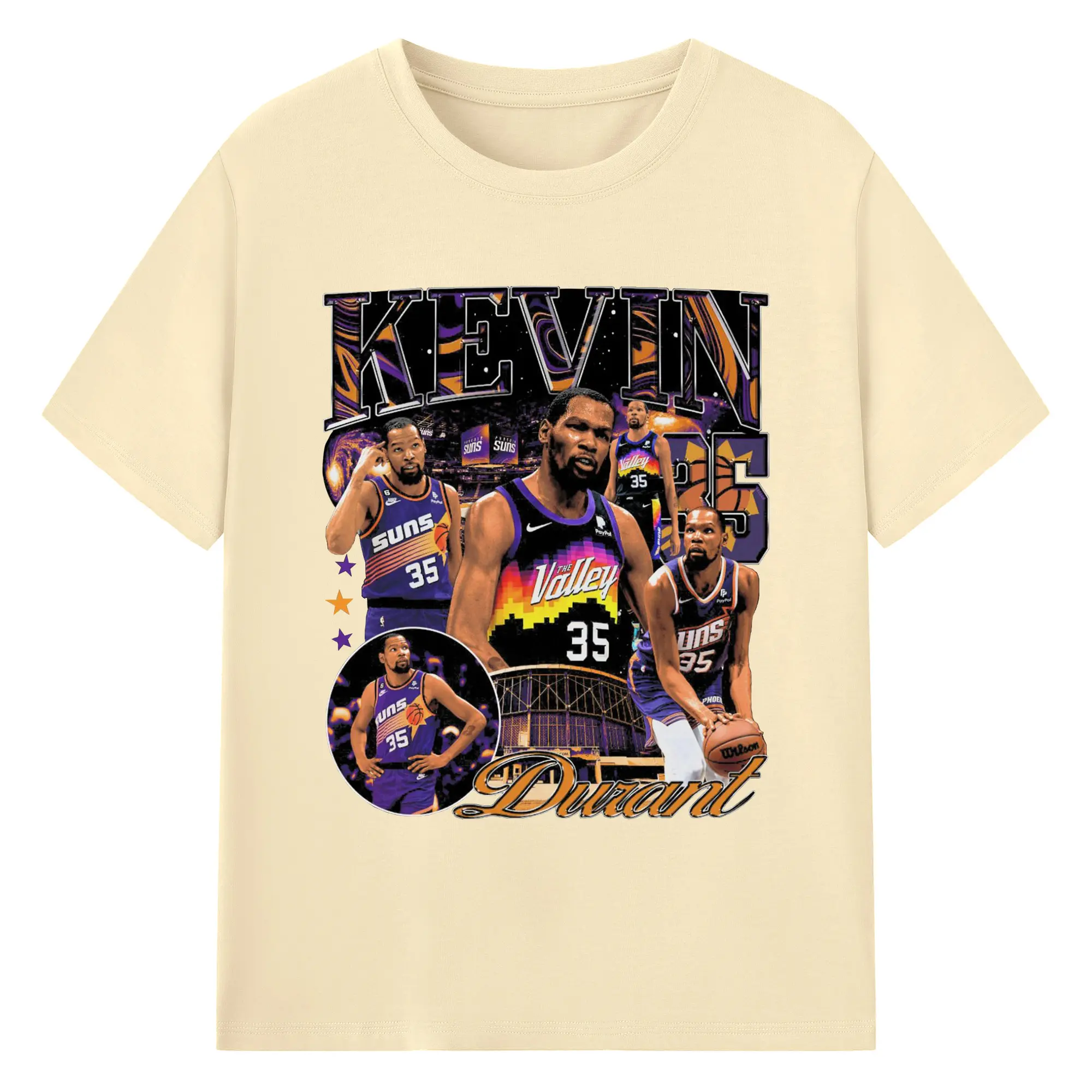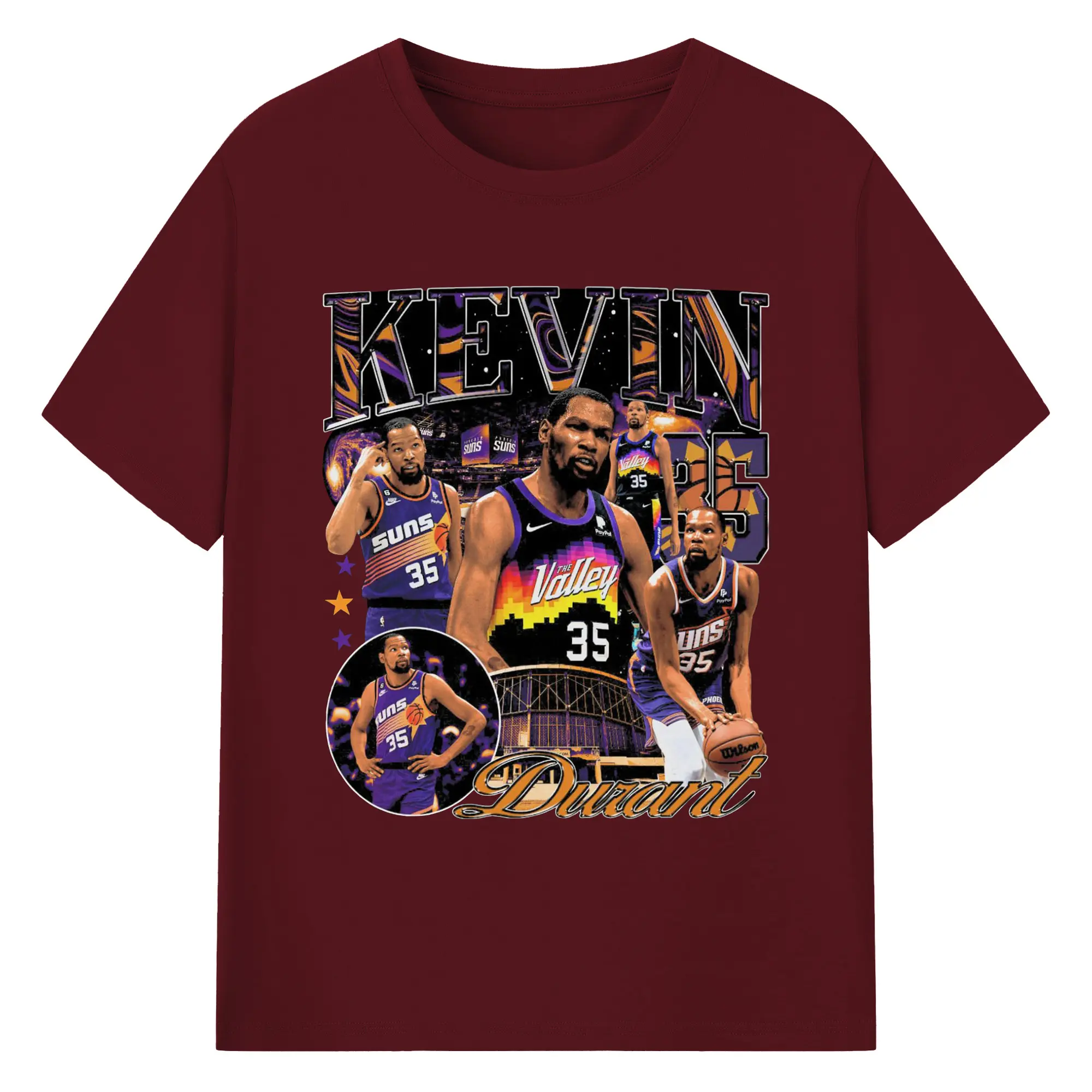 Kevin Durant Phoenix Suns "The Valley" Limited Edition Jersey Shirt - 180g Cotton T-Shirt With Front Heat Transfer Print – Soft, Lightweight, Fitted Design – Comfortable Casual Wear For Sports & Everyday Use