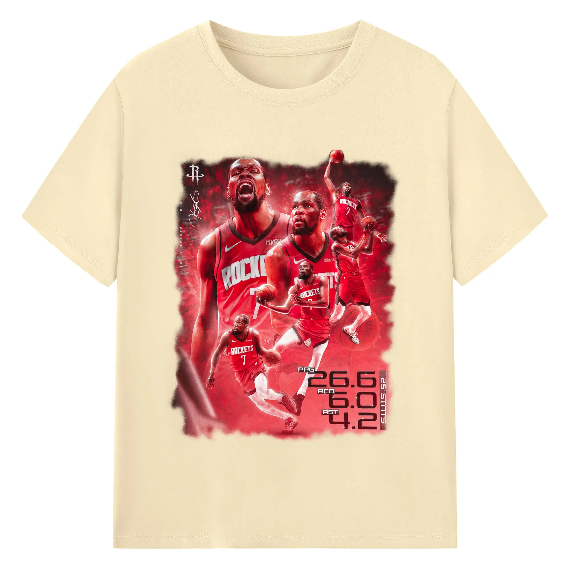 Kevin Durant Rockrets #7 Data Museum Art Shirt - 180g Cotton T-Shirt With Front Heat Transfer Print – Soft, Lightweight, Fitted Design – Comfortable Casual Wear For Sports & Everyday Use