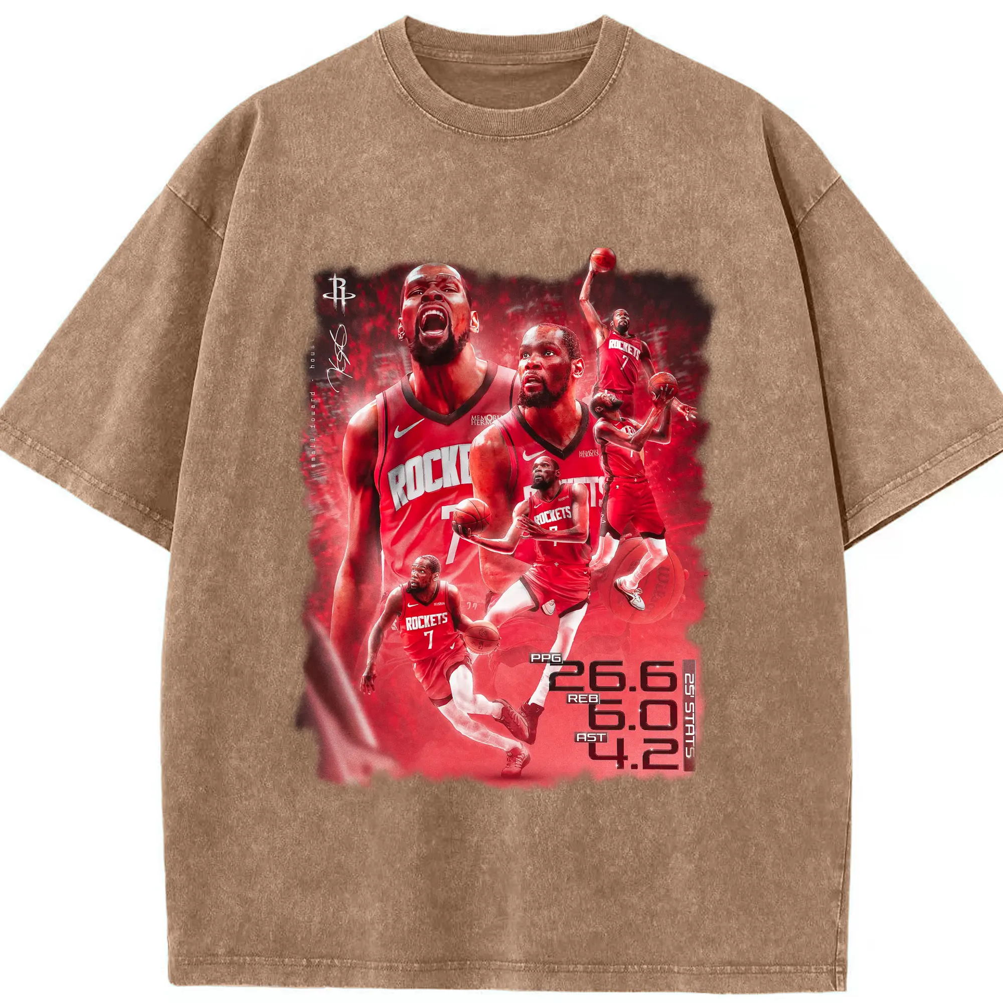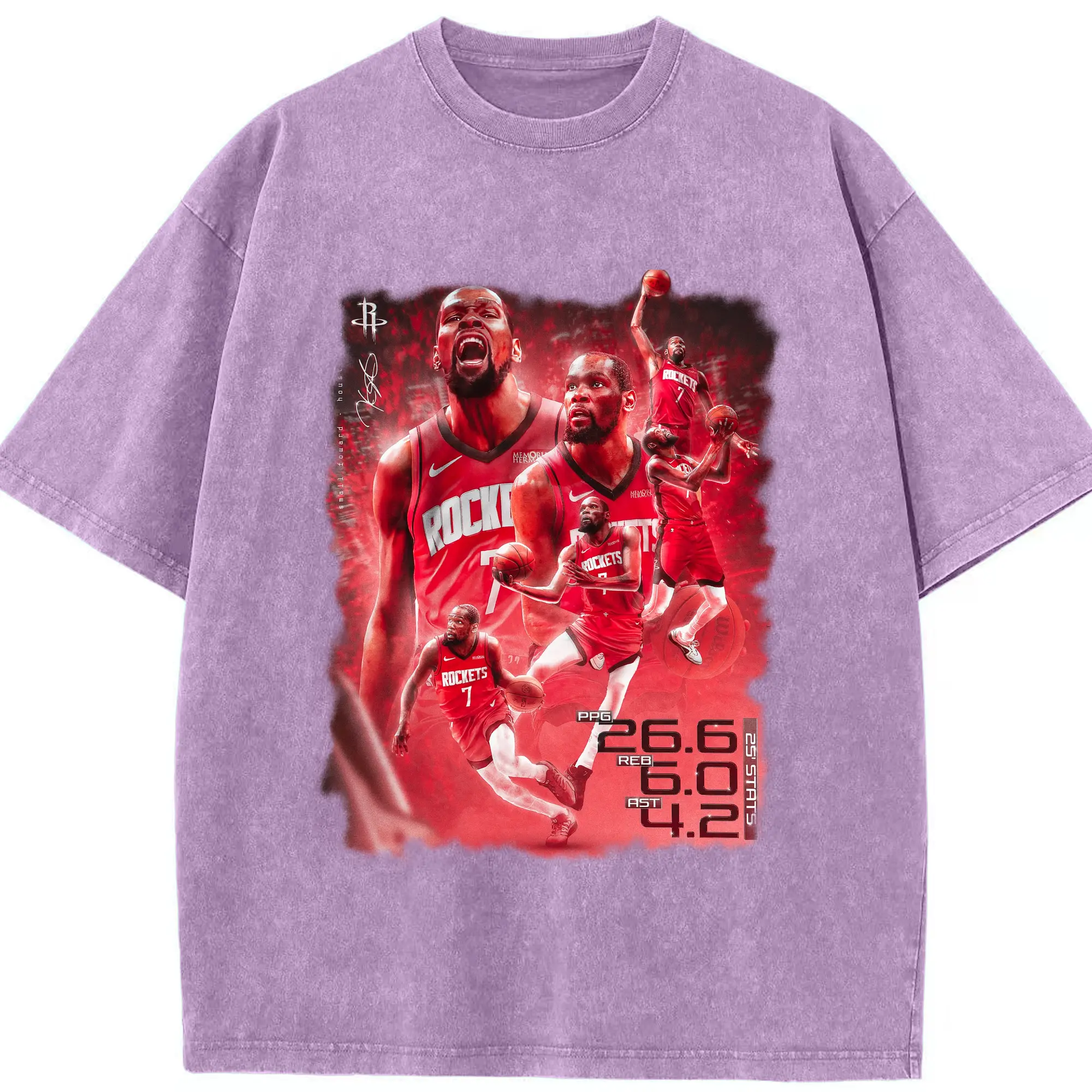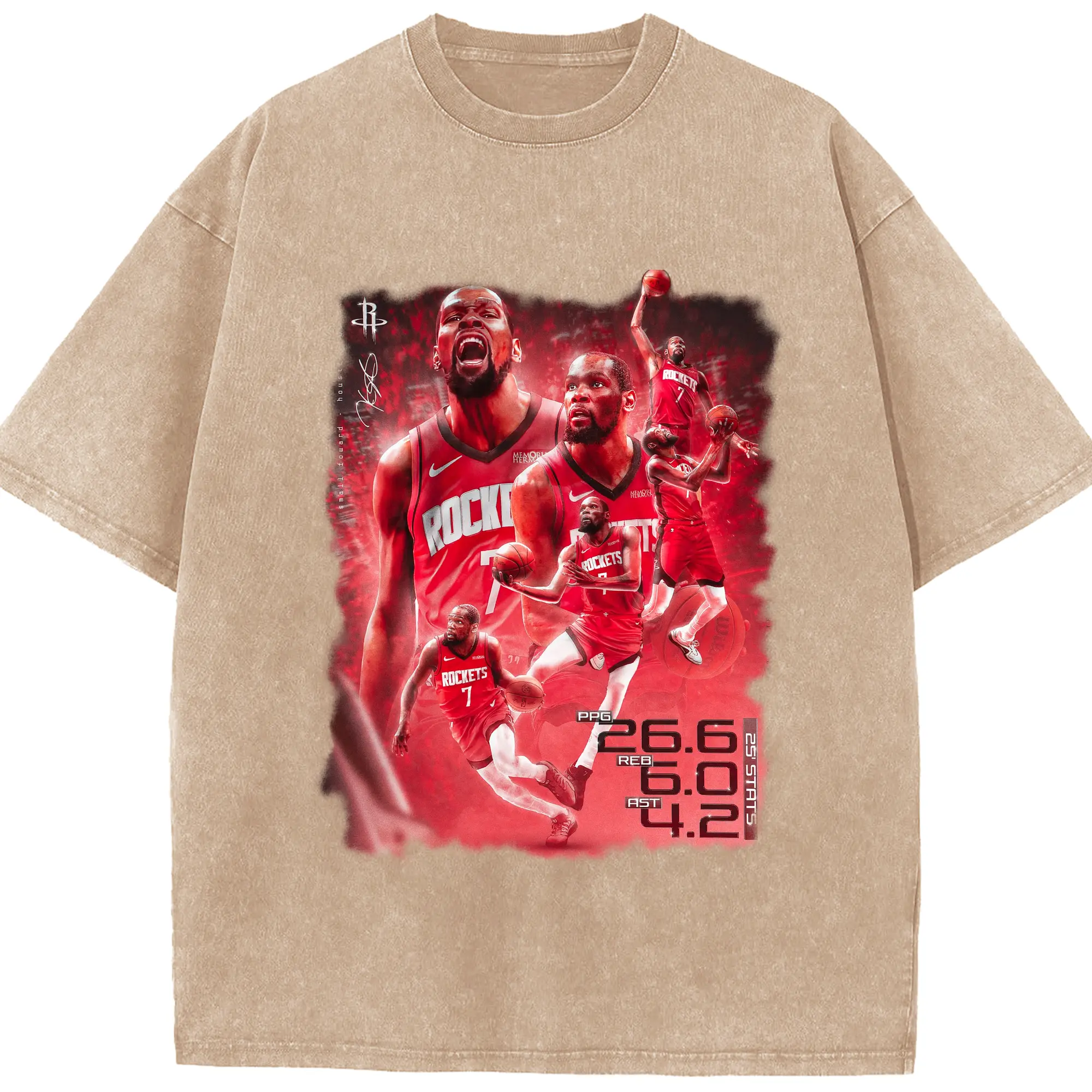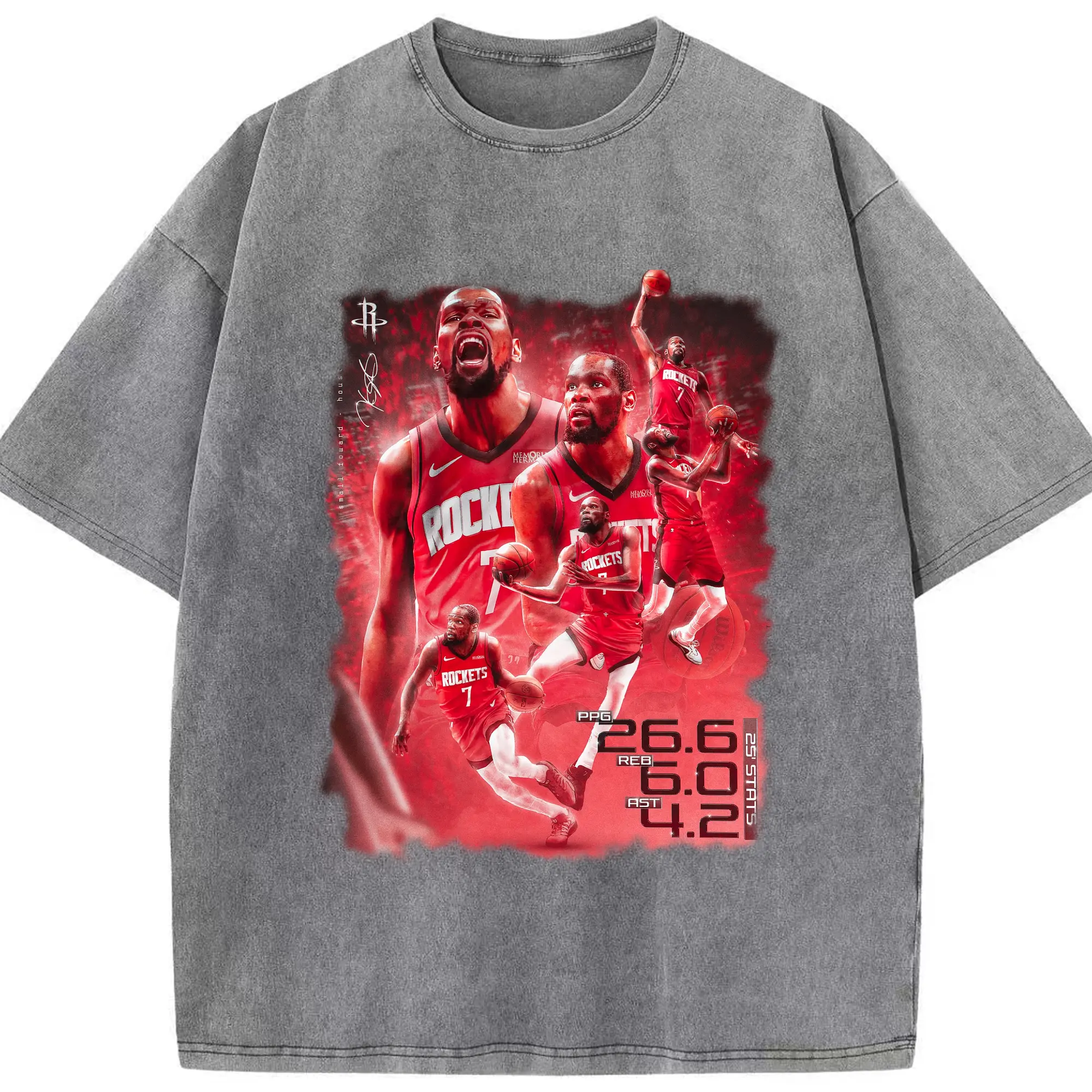 Kevin Durant Rockrets #7 Data Museum Art Shirt - Washed Vintage Look 230g Cotton Oversized T-Shirt With Front Heat Transfer Print – Soft, Lightweight, Stylish Fit – Comfortable Casual Wear For Sports & Everyday Use