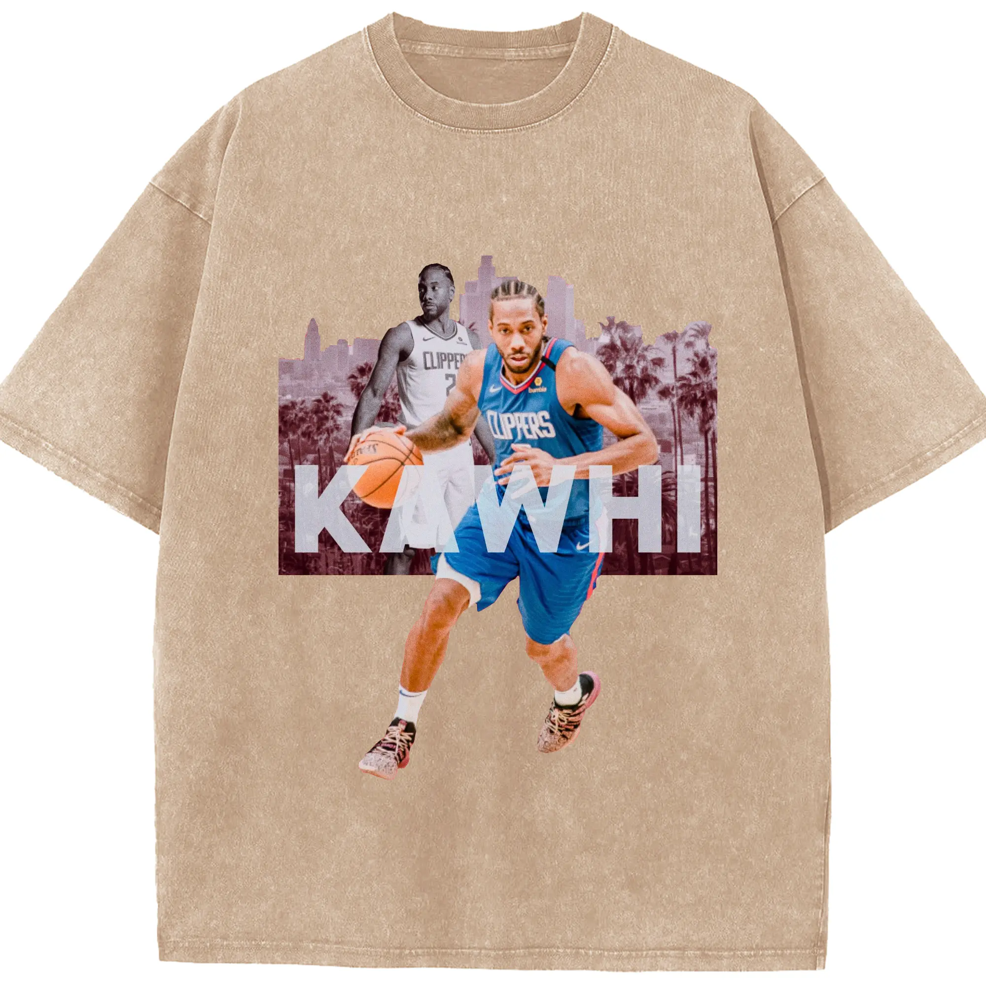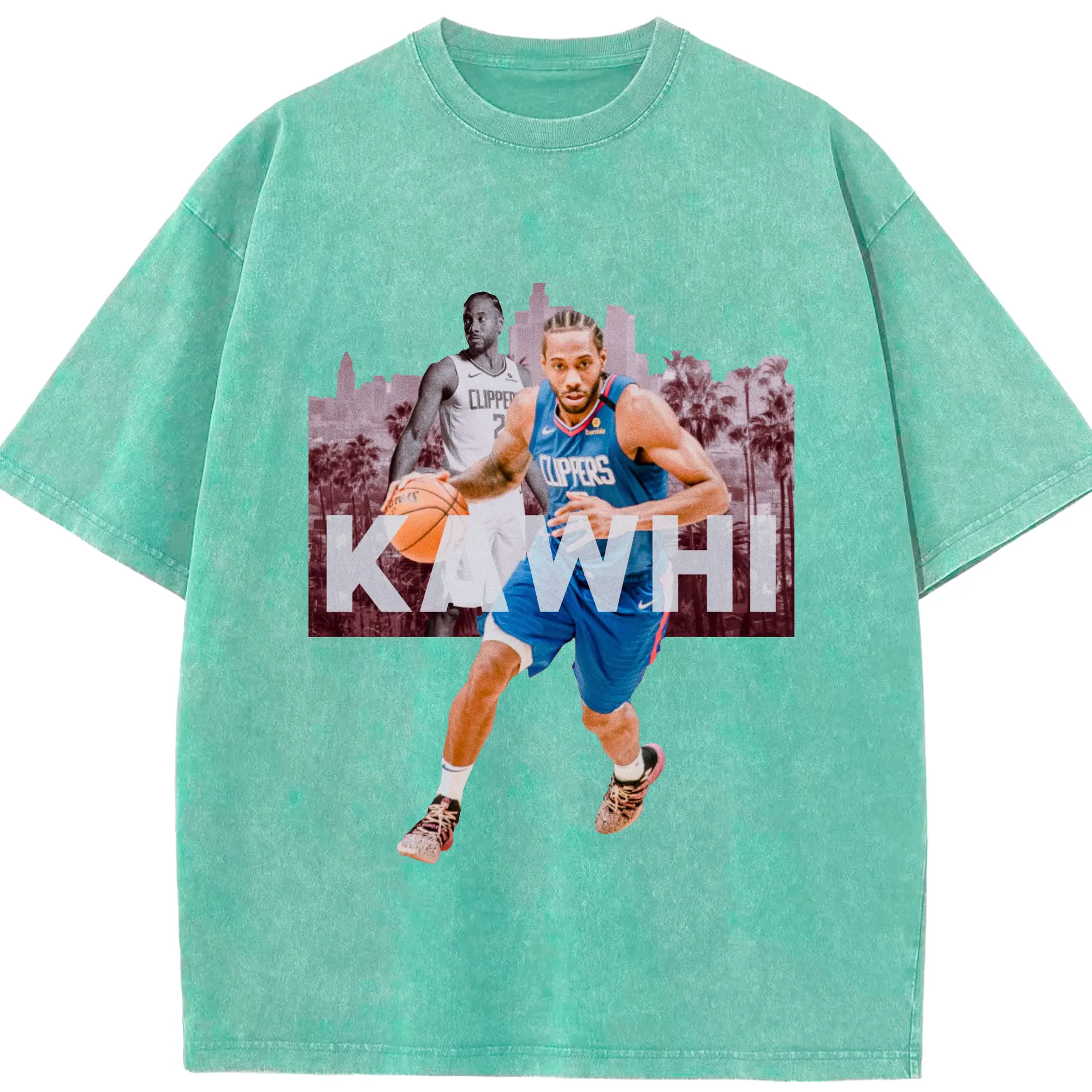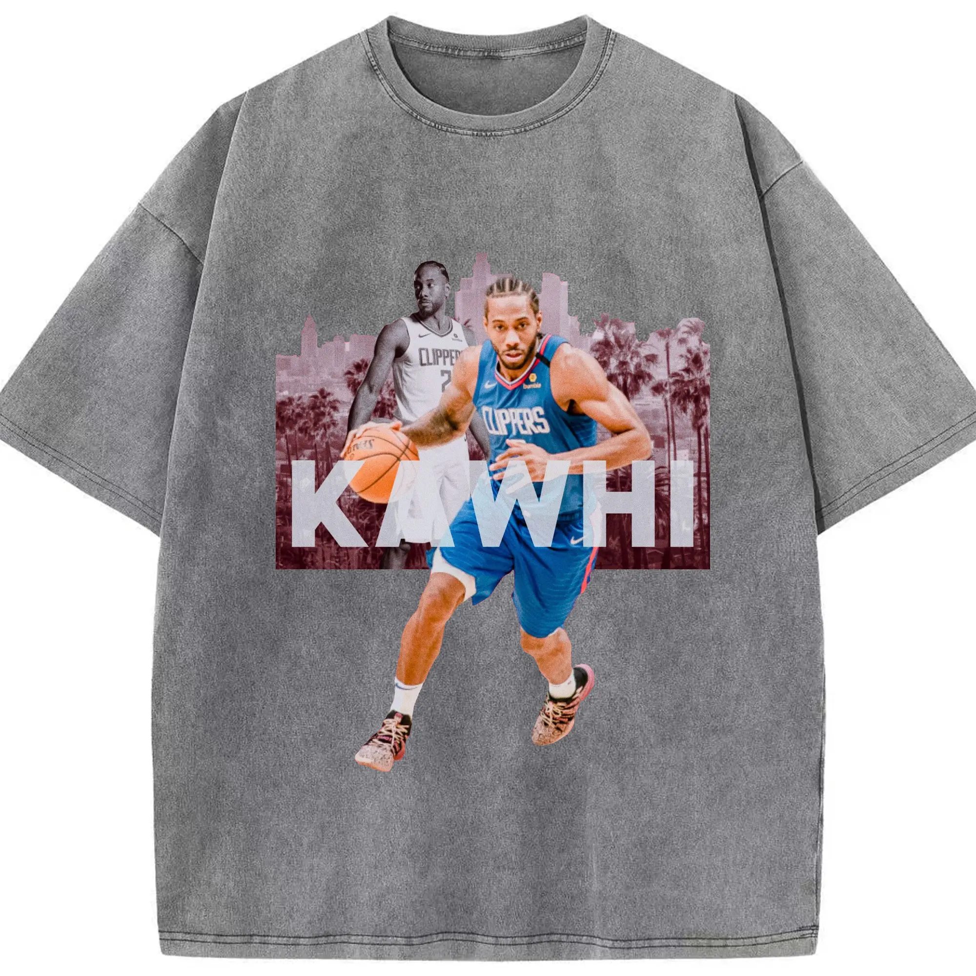 King of LA Clippers:Kawhi Leonard - Washed Vintage Look 230g Cotton Oversized T-Shirt With Front Heat Transfer Print – Soft, Lightweight, Stylish Fit – Comfortable Casual Wear For Sports & Everyday Use