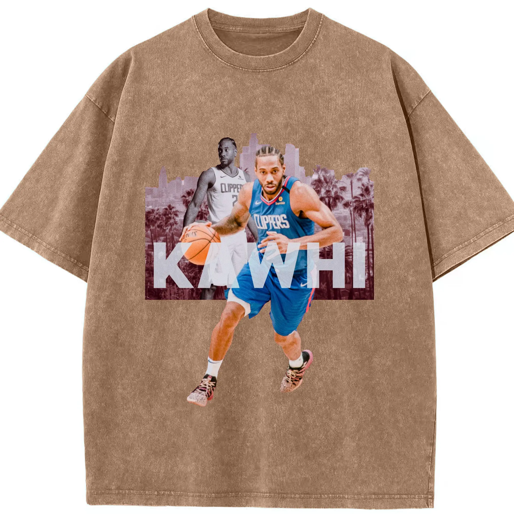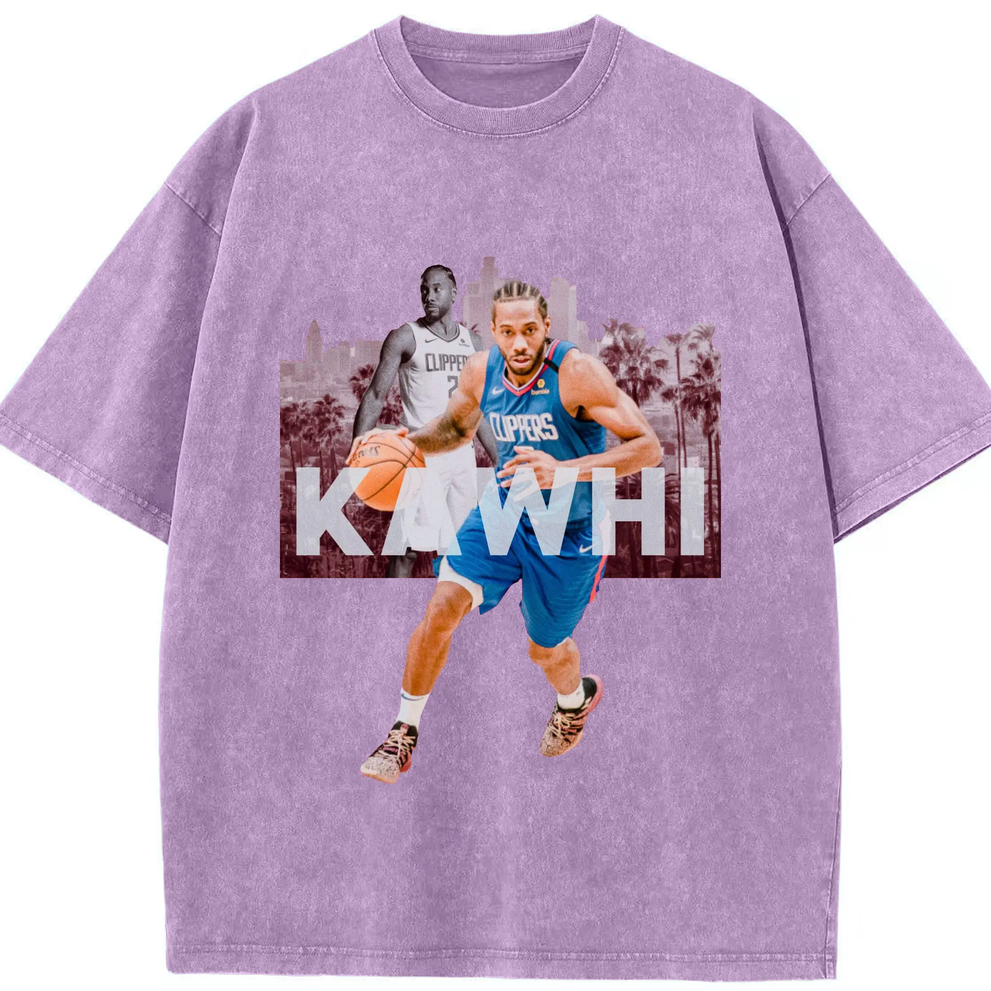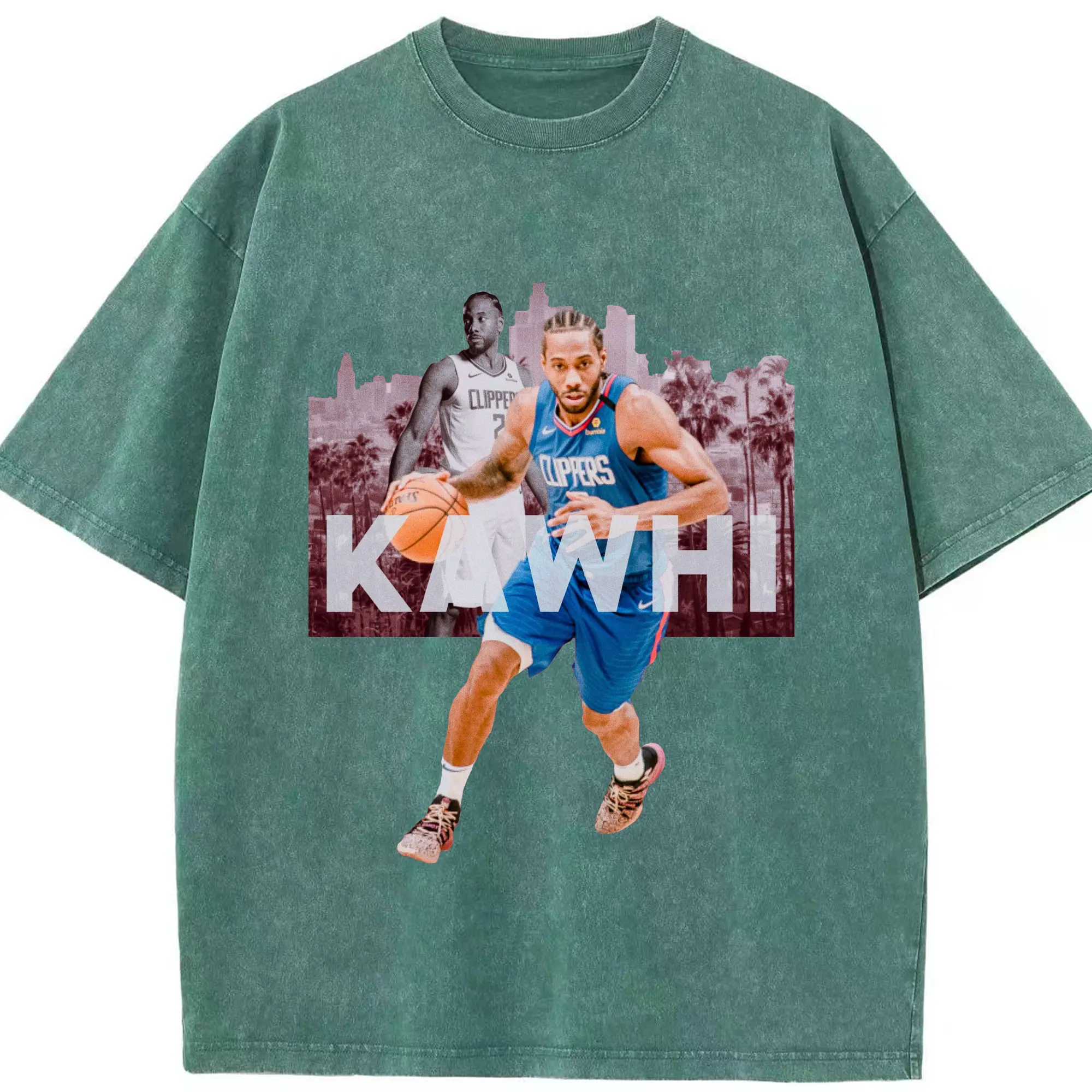 King of LA Clippers:Kawhi Leonard - Washed Vintage Look 230g Cotton Oversized T-Shirt With Front Heat Transfer Print – Soft, Lightweight, Stylish Fit – Comfortable Casual Wear For Sports & Everyday Use