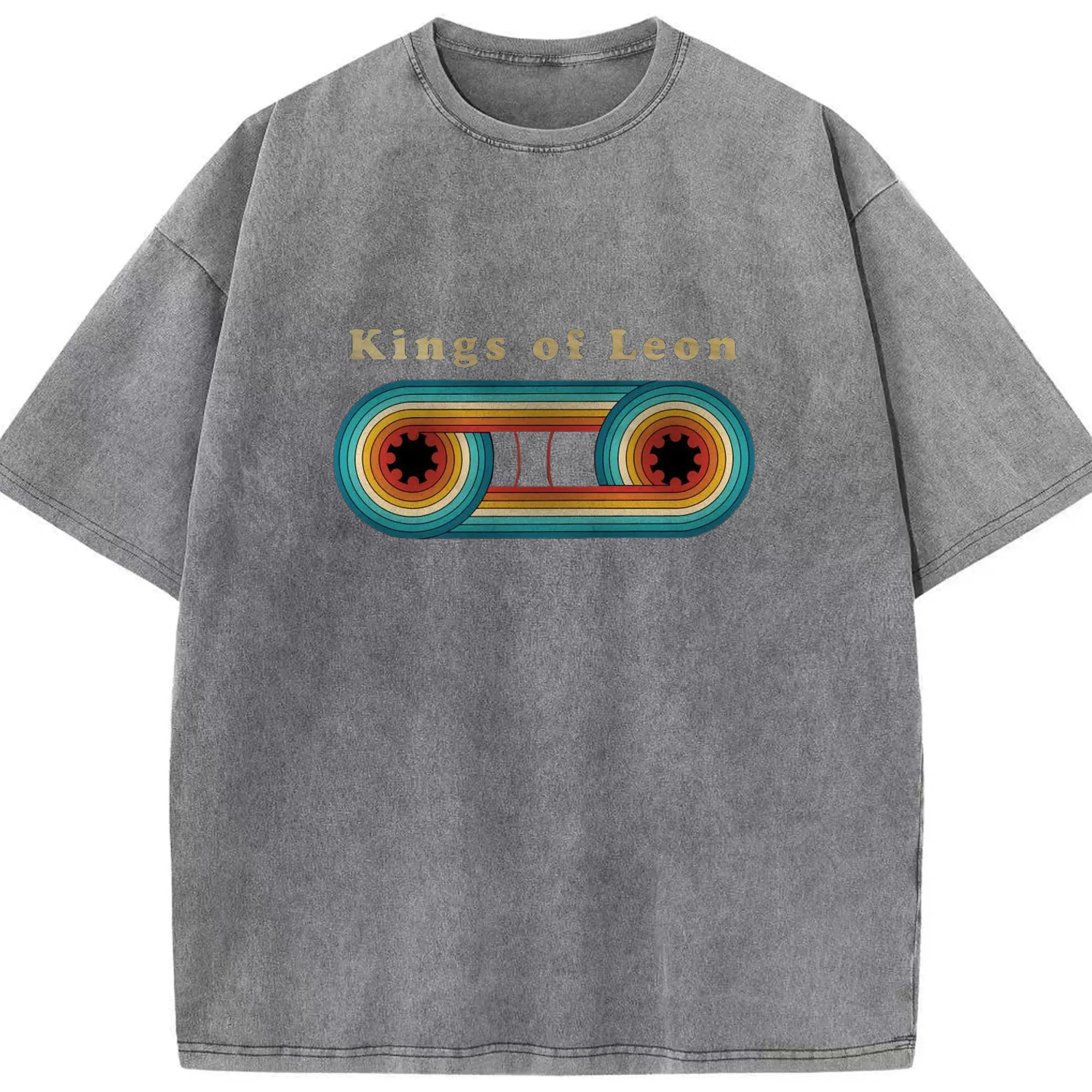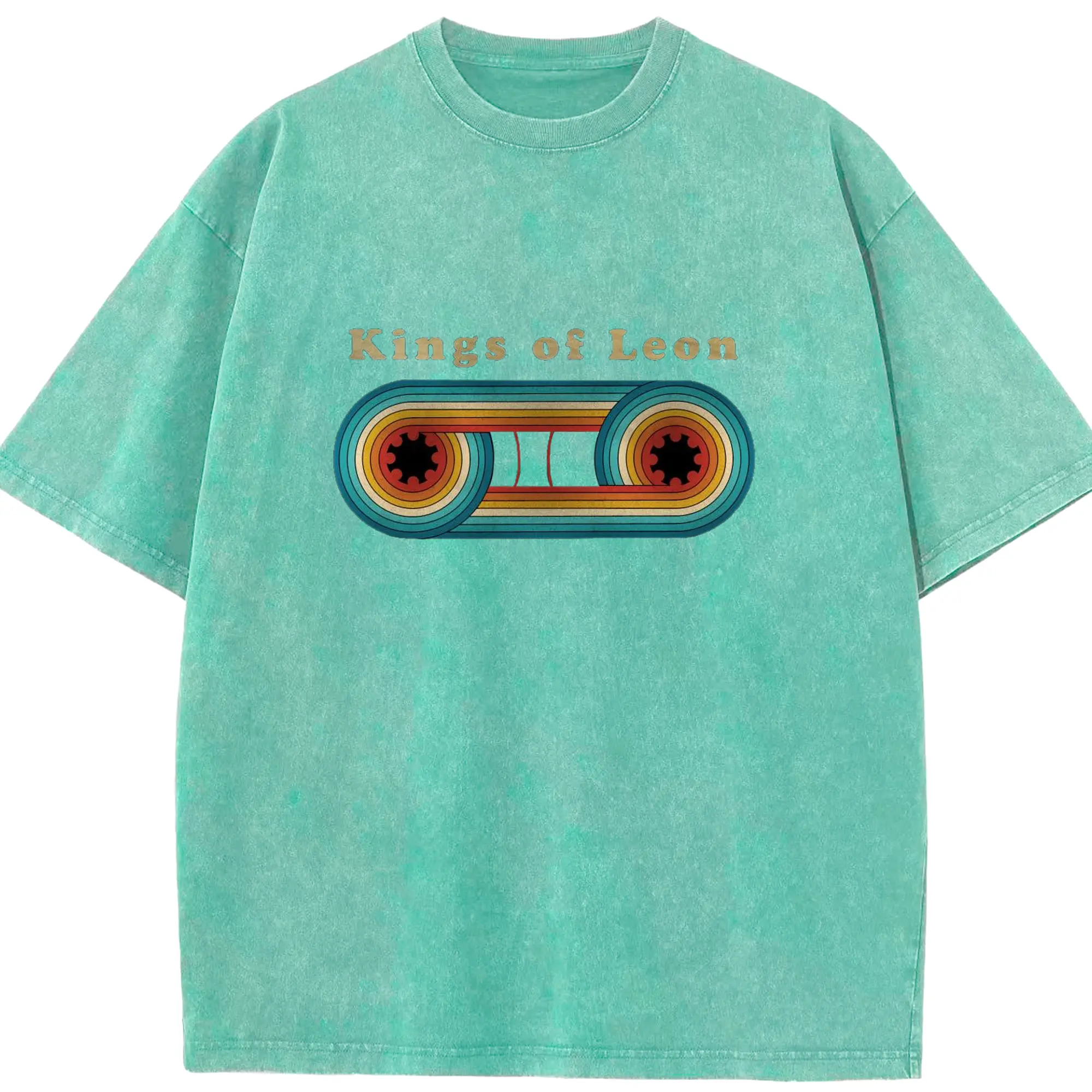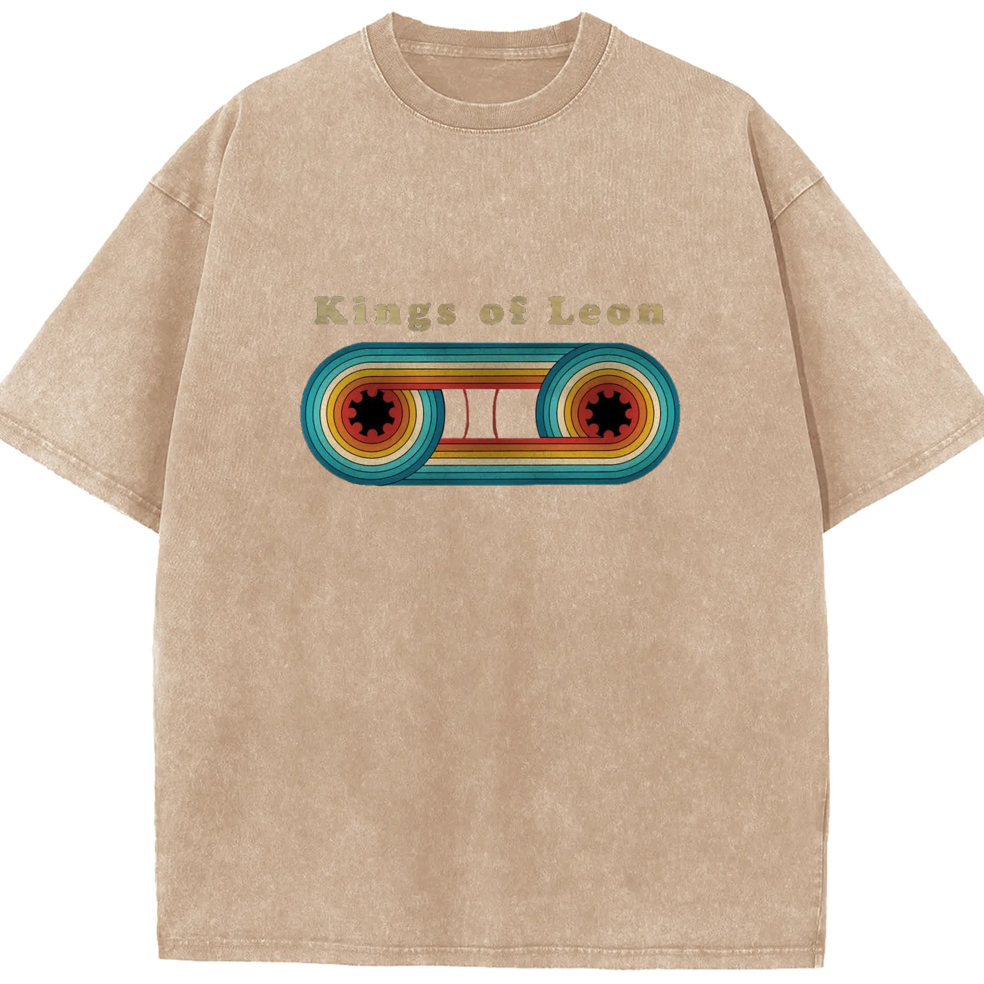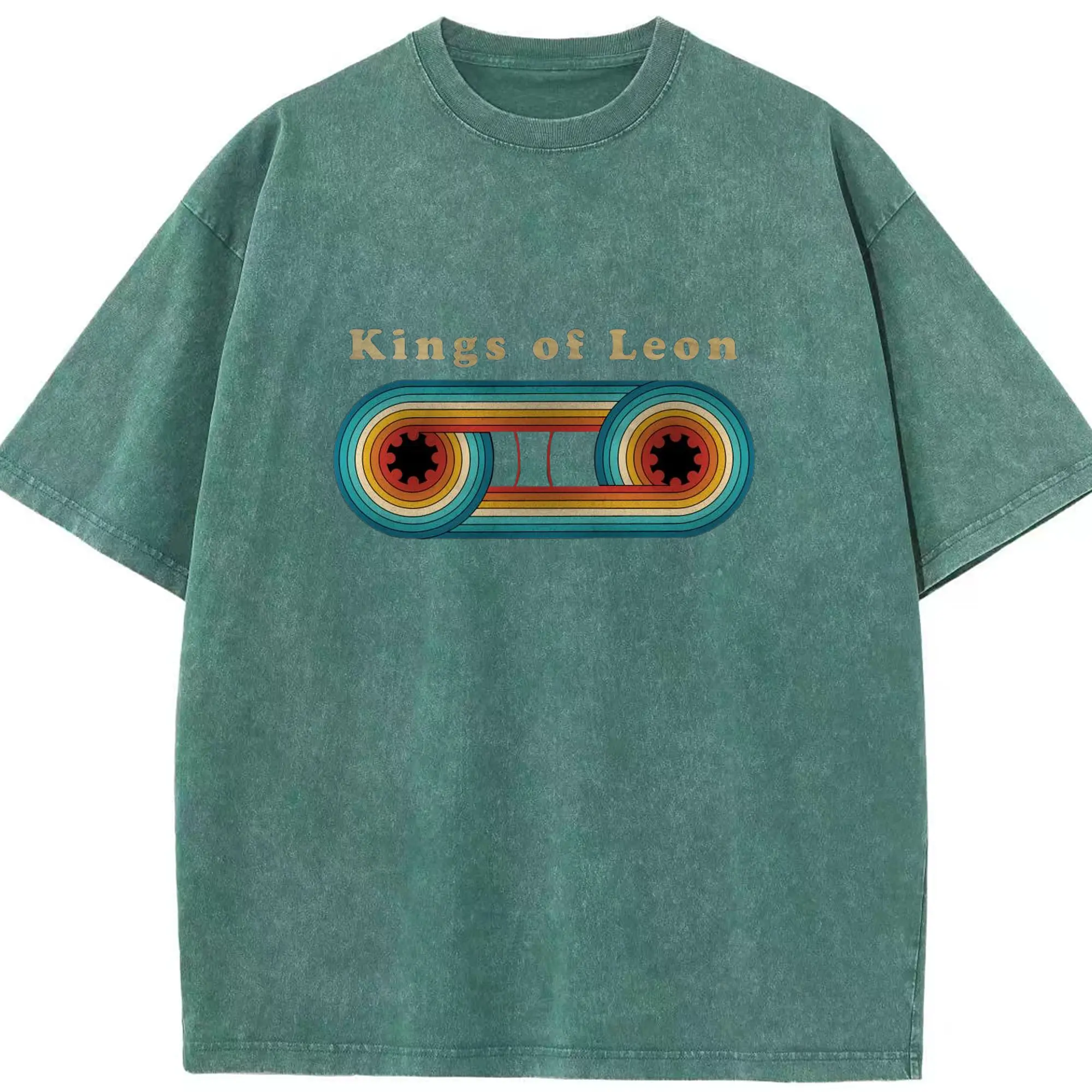 Kings of Leon Vintage Art Deco Rock DIY - Washed Vintage Look 230g Cotton Oversized T-Shirt With Front Heat Transfer Print – Soft, Lightweight, Stylish Fit – Comfortable Casual Wear For Sports & Everyday Use