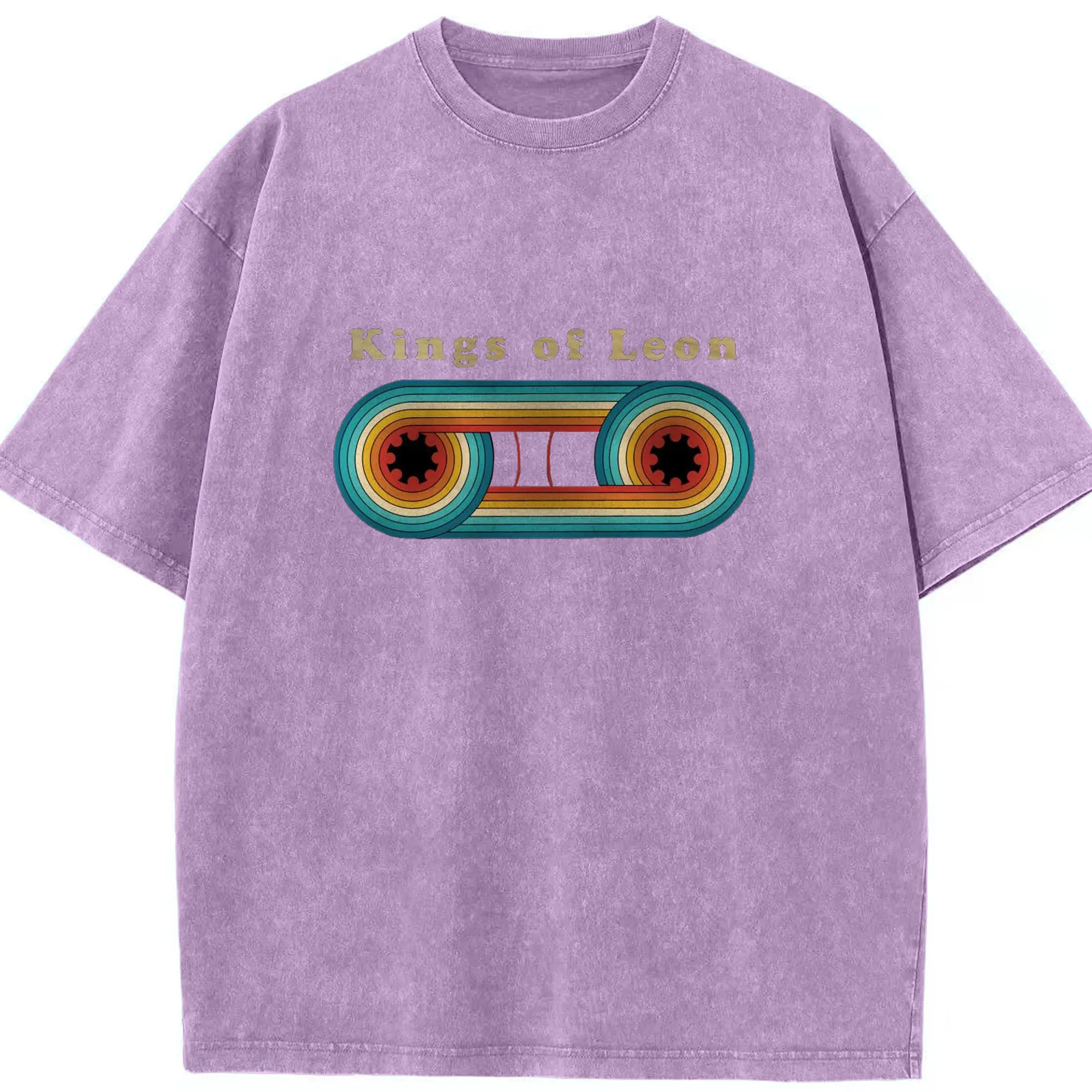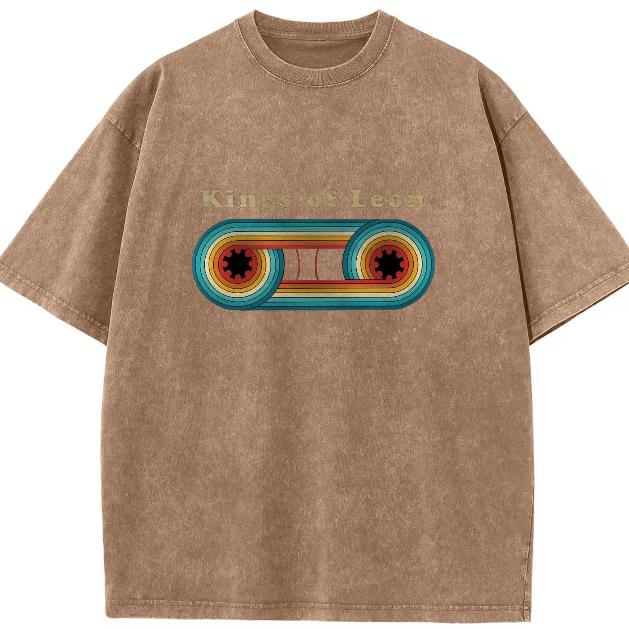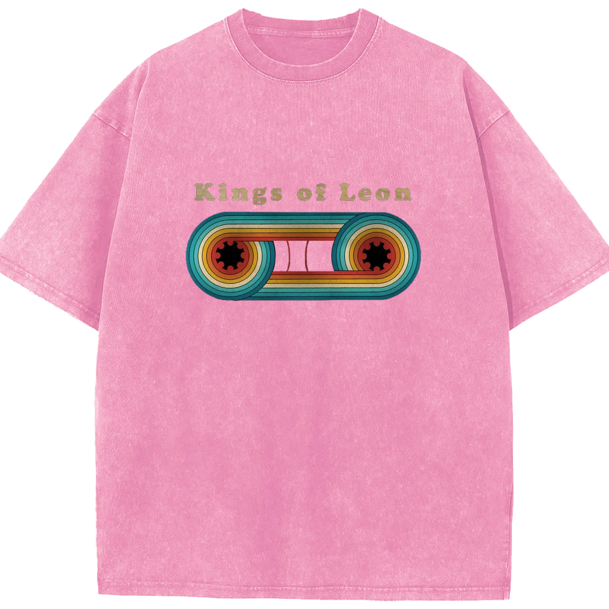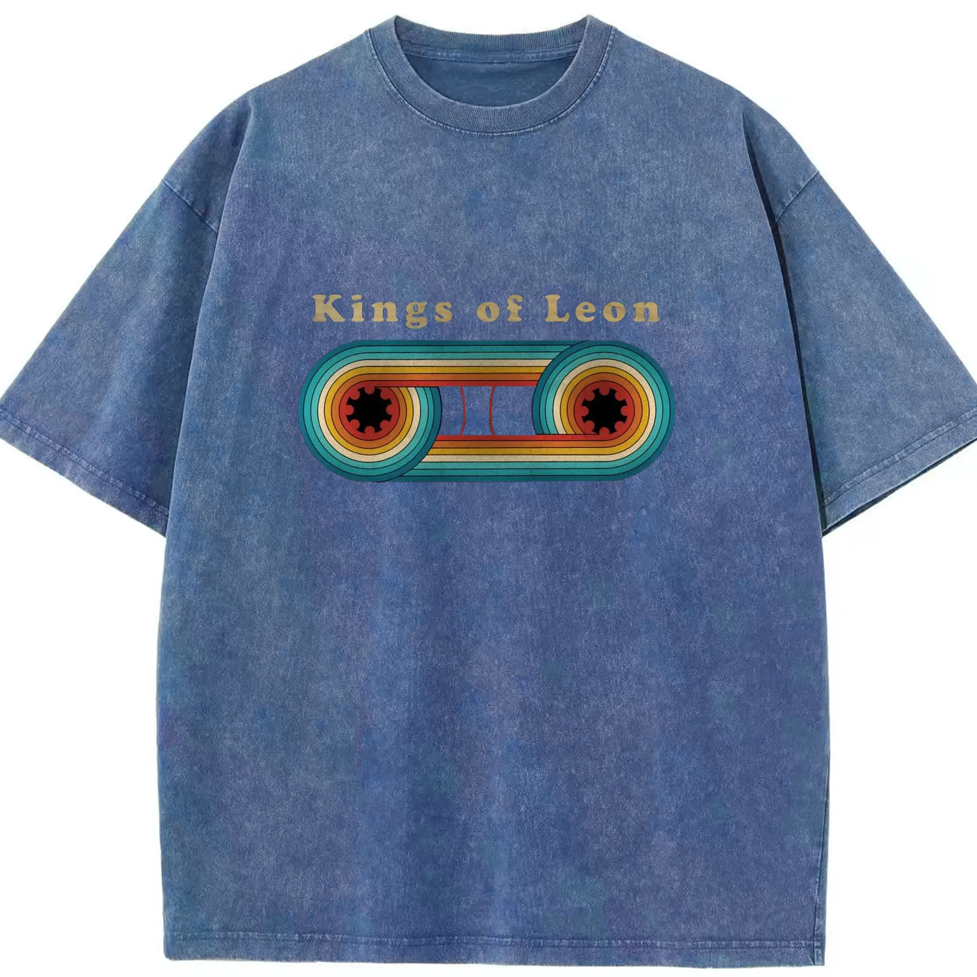 Kings of Leon Vintage Art Deco Rock DIY - Washed Vintage Look 230g Cotton Oversized T-Shirt With Front Heat Transfer Print – Soft, Lightweight, Stylish Fit – Comfortable Casual Wear For Sports & Everyday Use