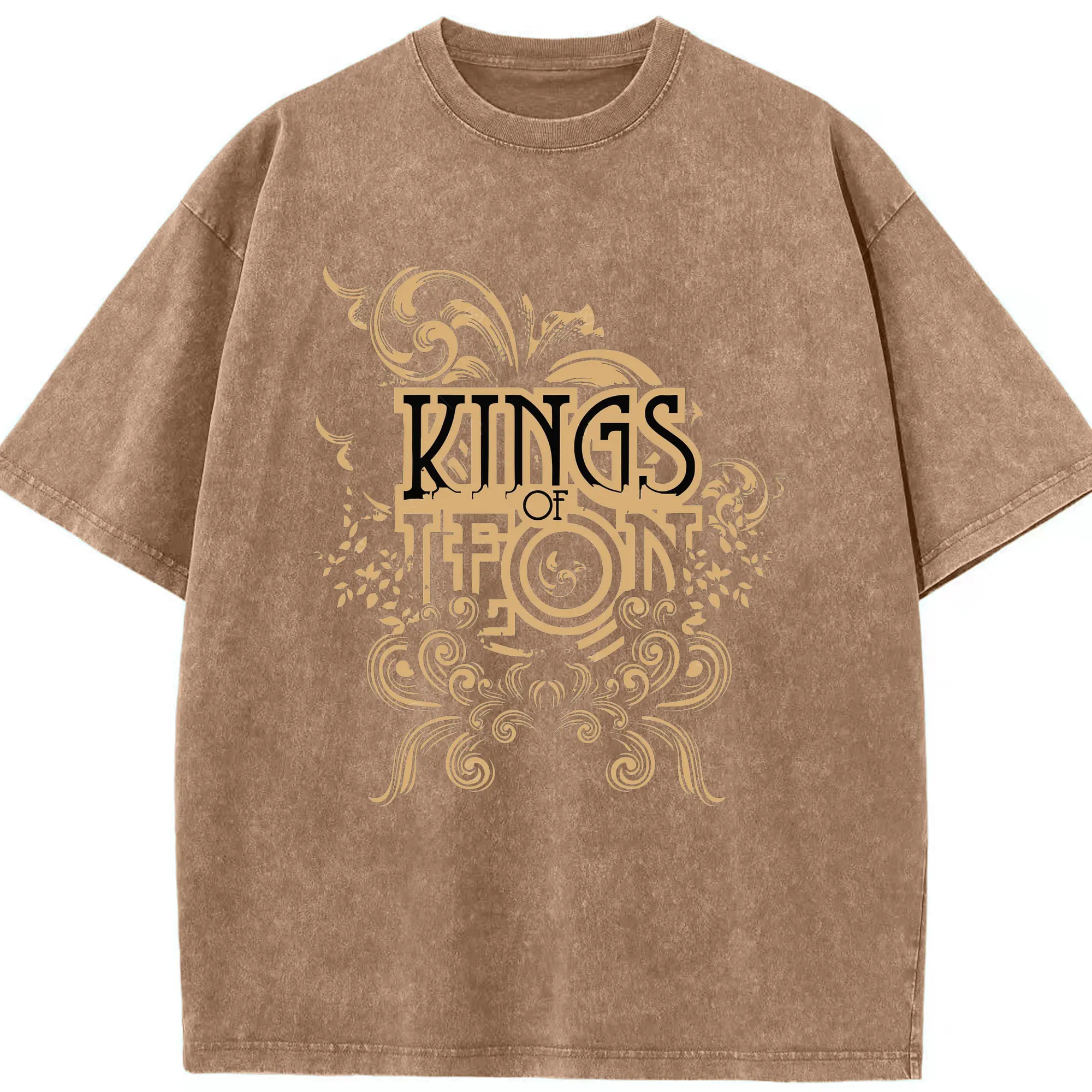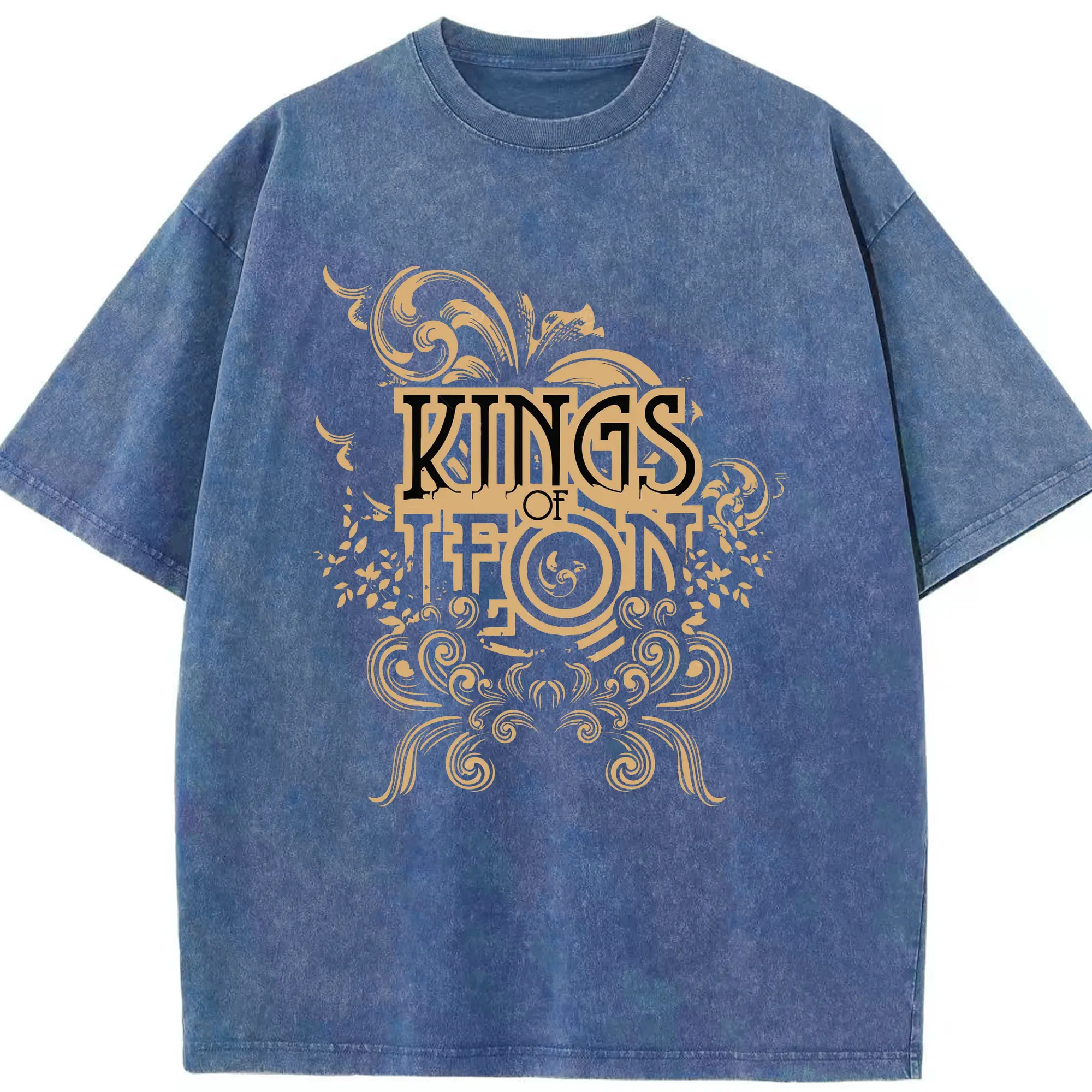 Kings of Leon Vintage Ornate Rock DIY - Washed Vintage Look 230g Cotton Oversized T-Shirt With Front Heat Transfer Print – Soft, Lightweight, Stylish Fit – Comfortable Casual Wear For Sports & Everyday Use