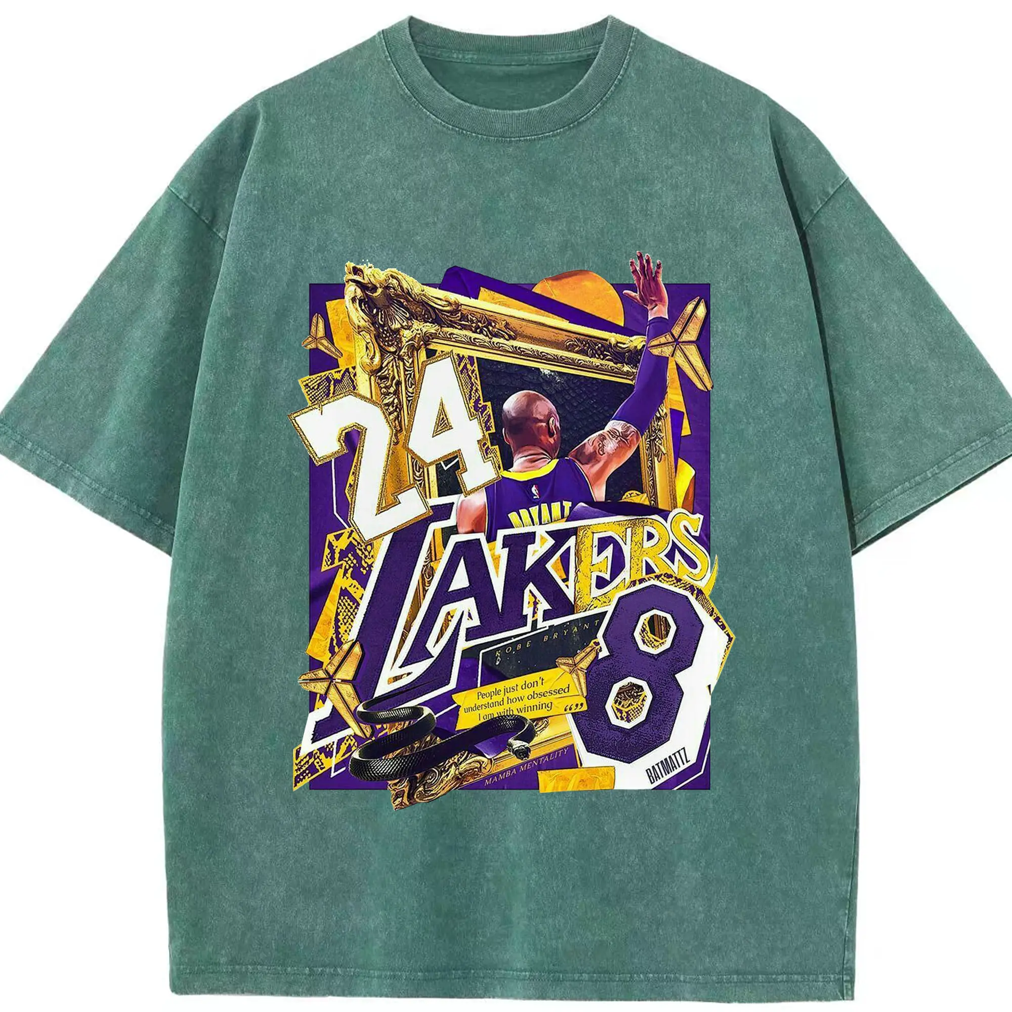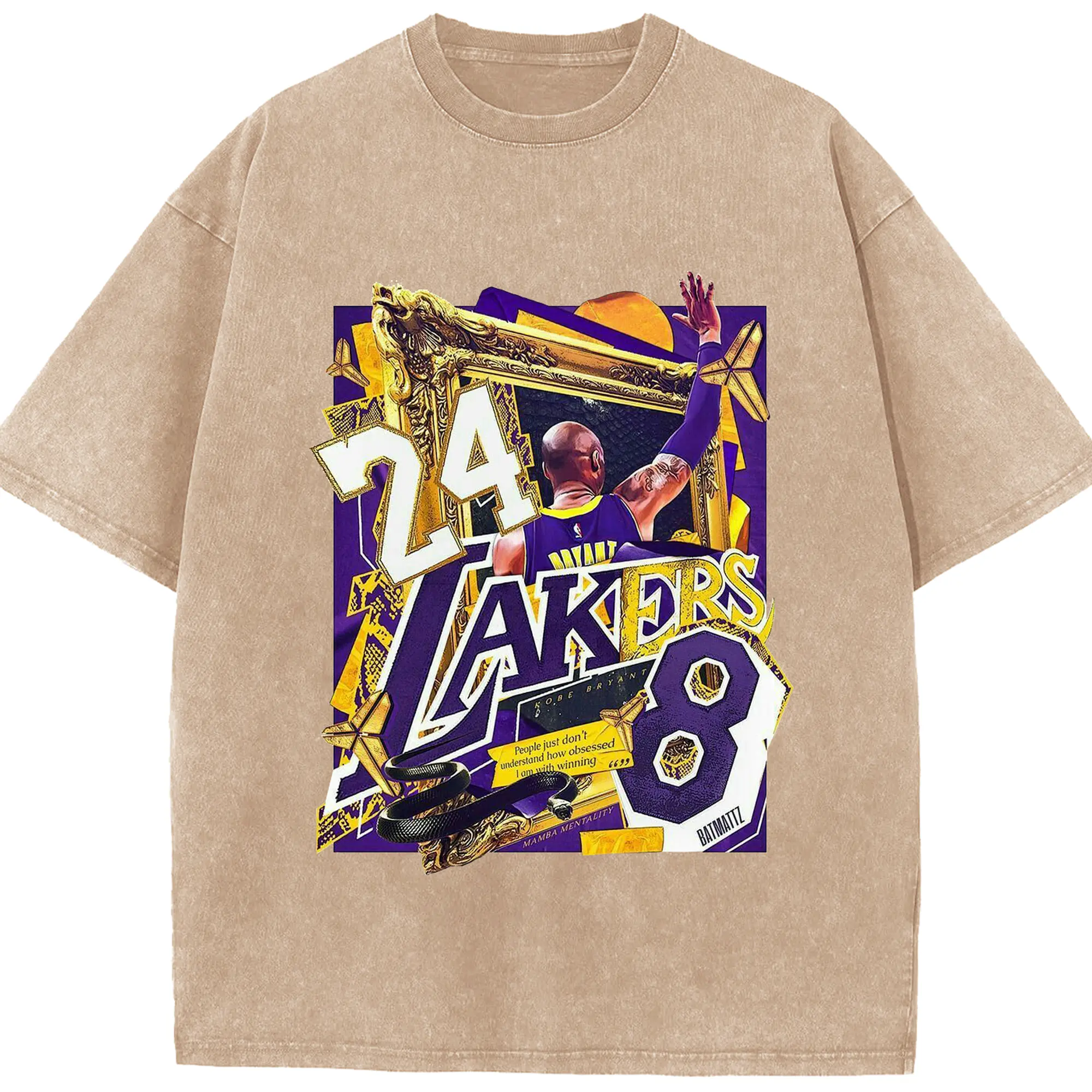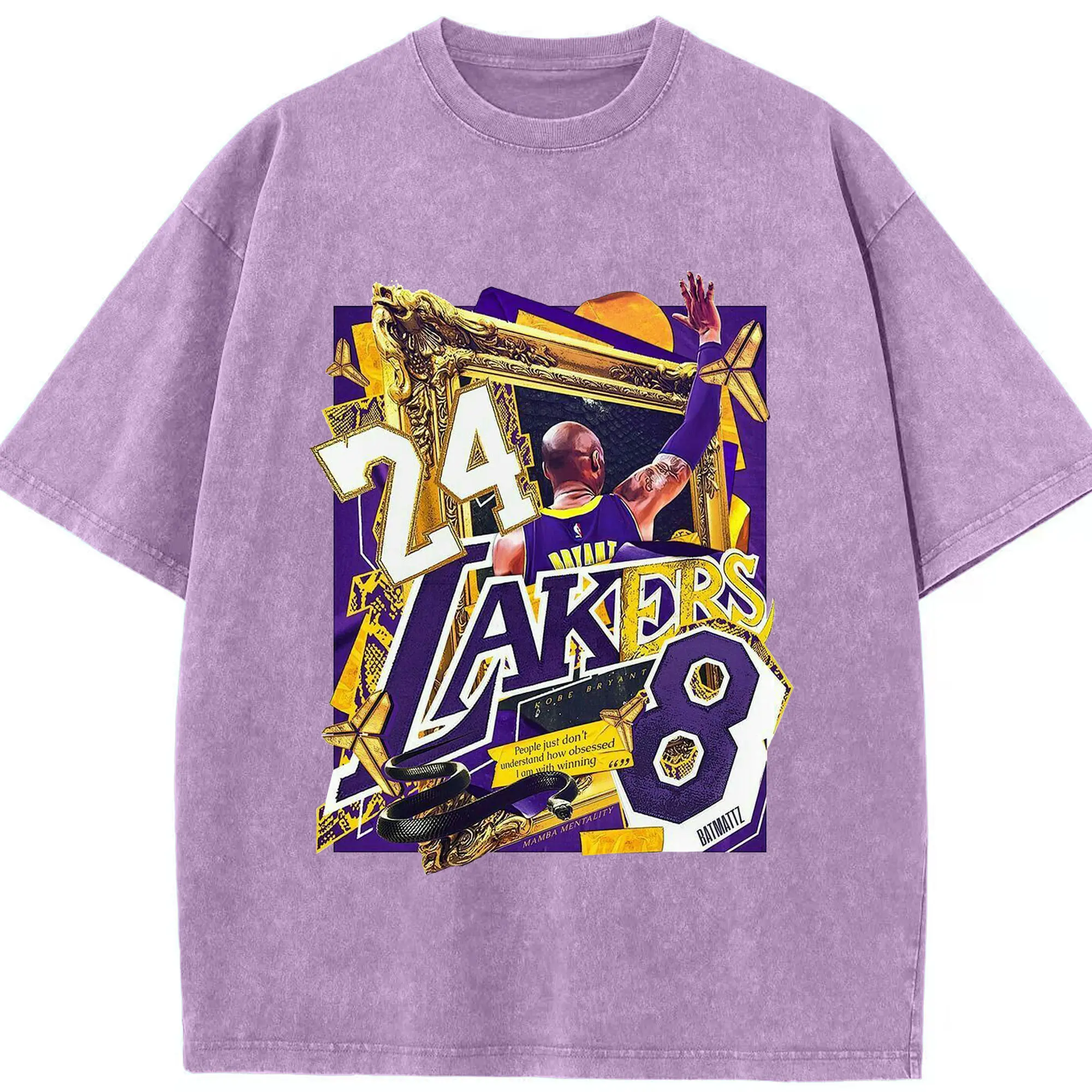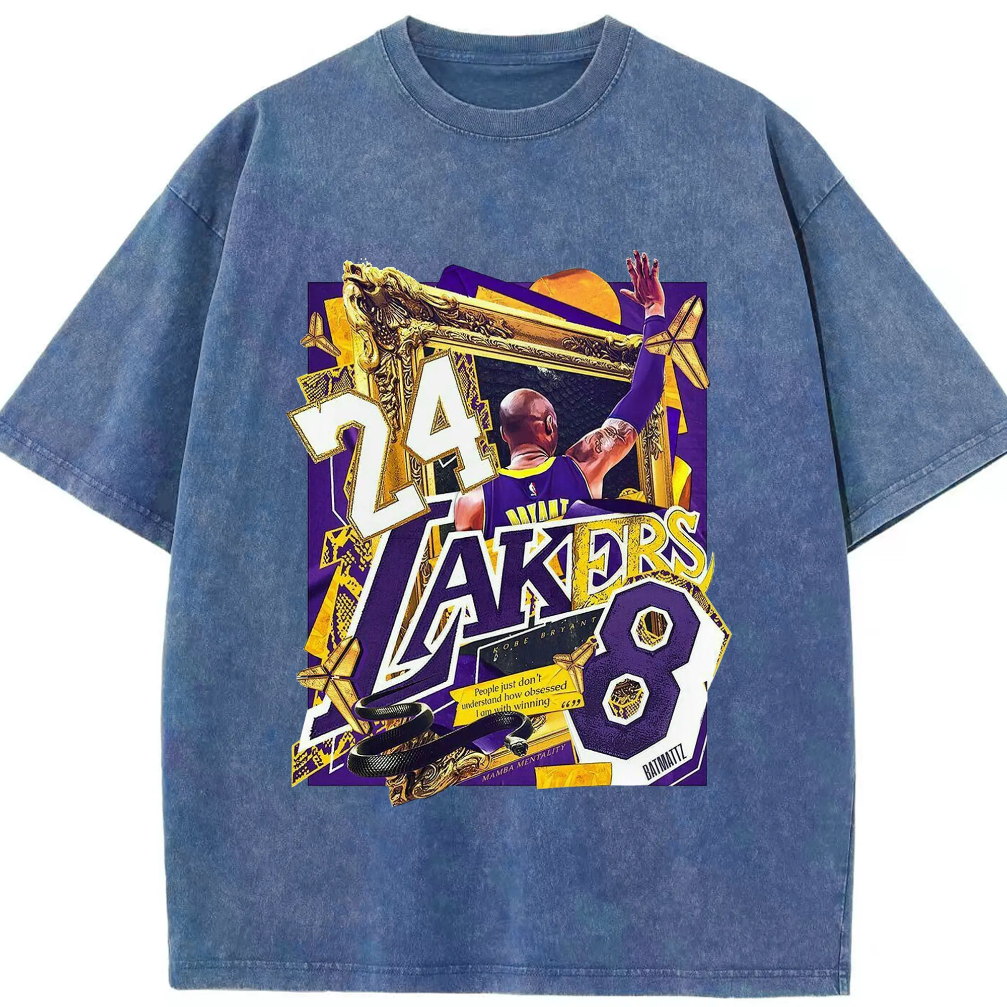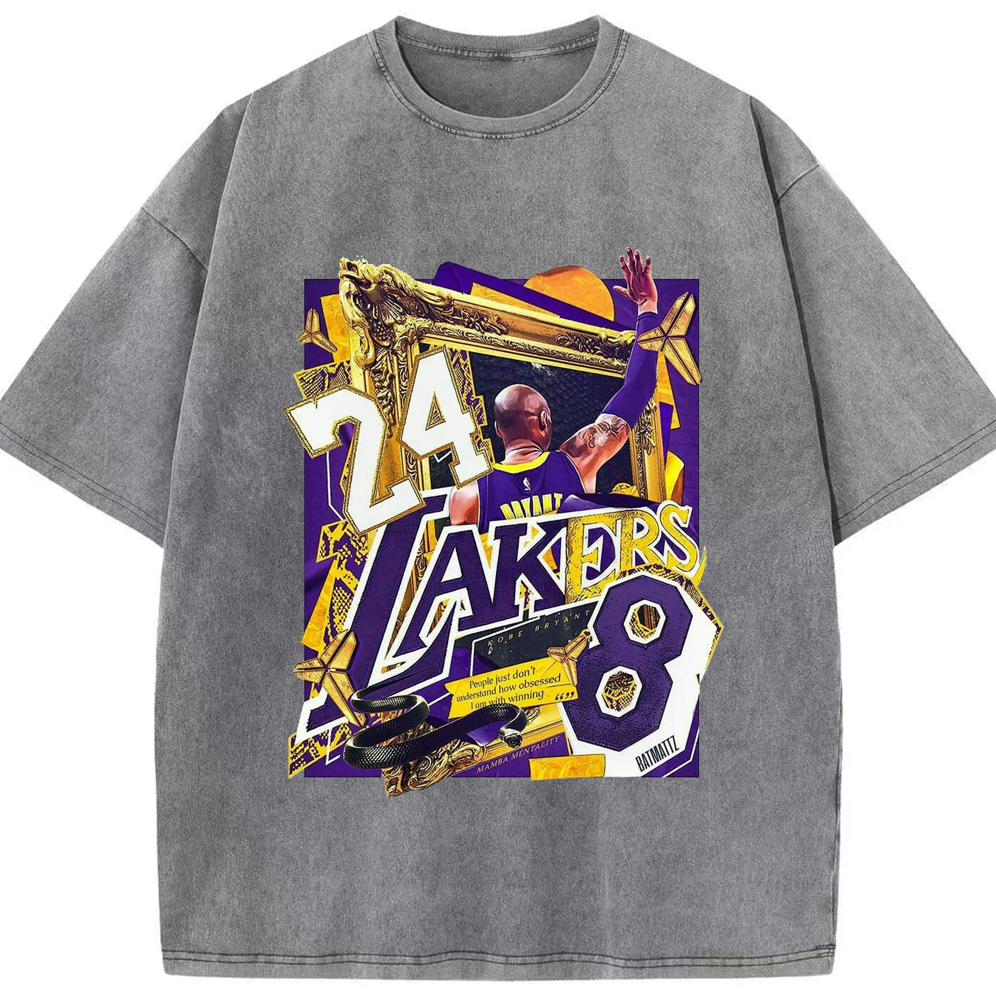 Kobe Bryant Lakers 24 & 8 Mamba Mentality Shirt - Washed Vintage Look 230g Cotton Oversized T-Shirt With Front Heat Transfer Print – Soft, Lightweight, Stylish Fit – Comfortable Casual Wear For Sports & Everyday Use