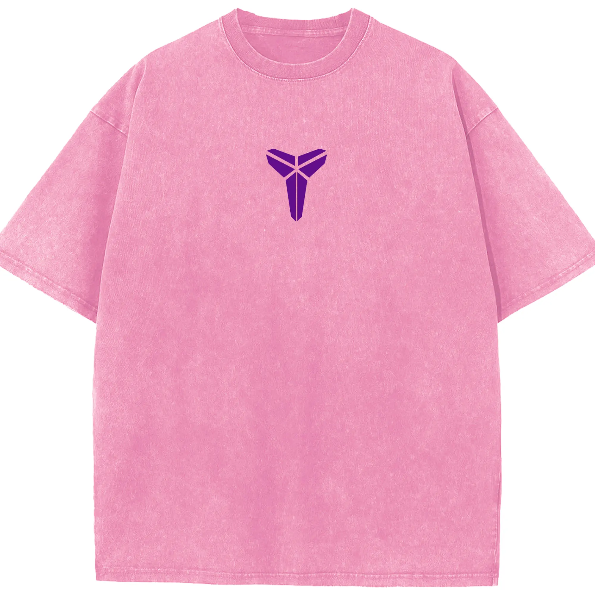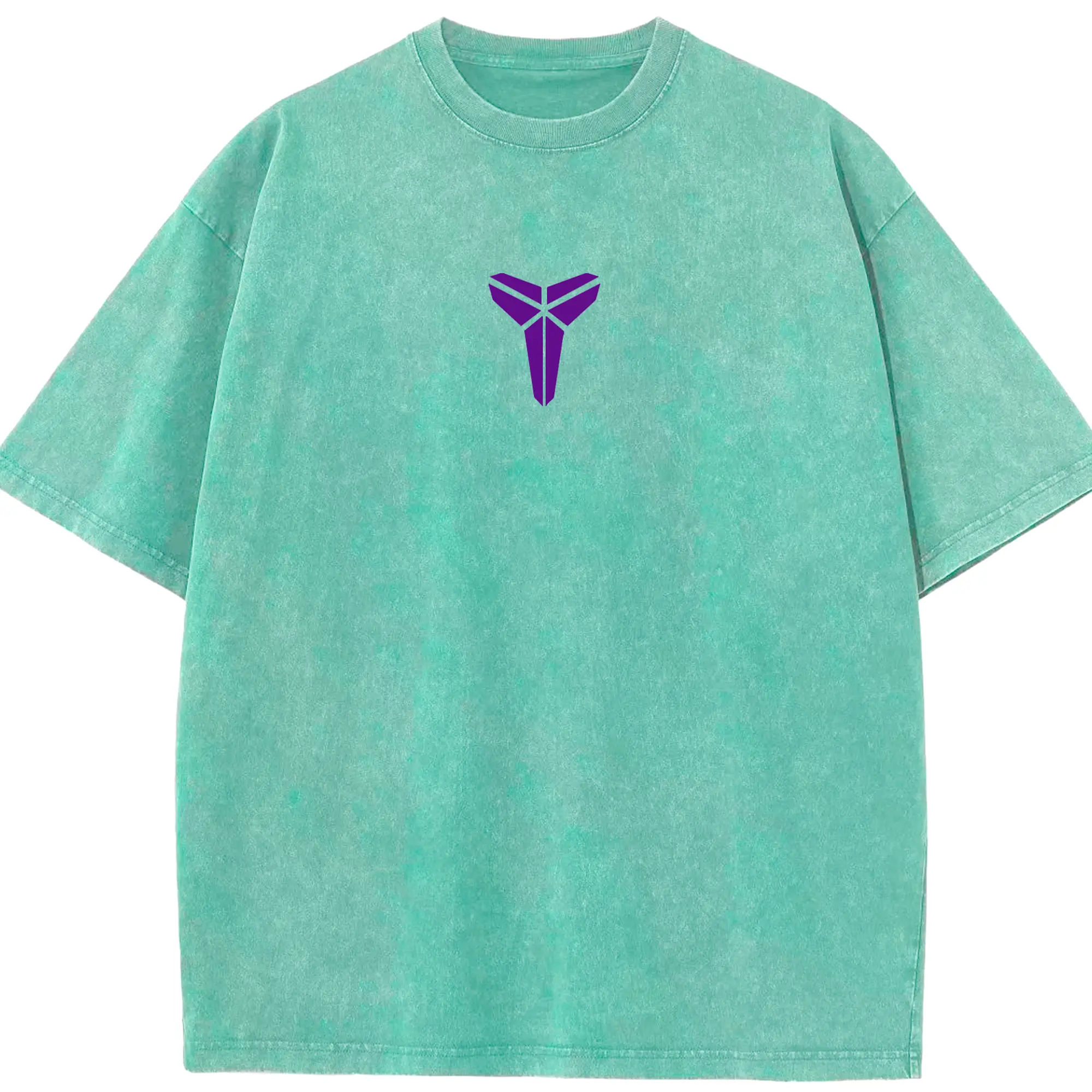 Kobe Bryant Lakers personal logo - Washed Vintage Look 230g Cotton Oversized T-Shirt With Front Heat Transfer Print – Soft, Lightweight, Stylish Fit – Comfortable Casual Wear For Sports & Everyday Use