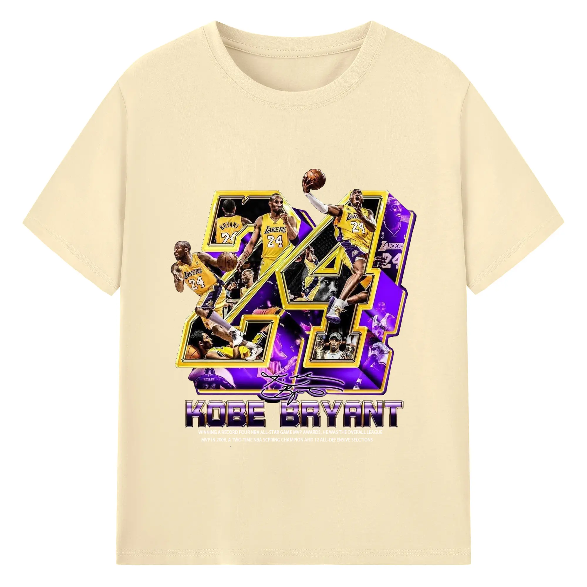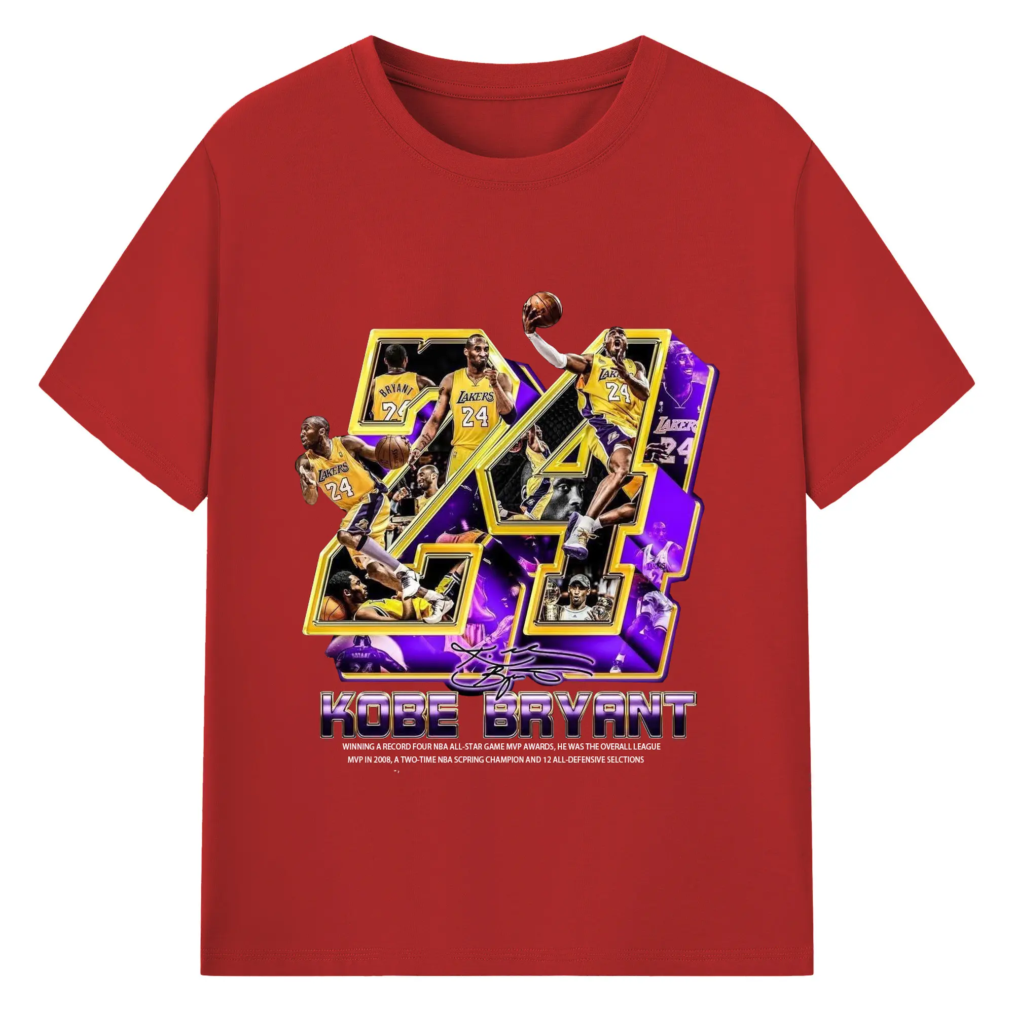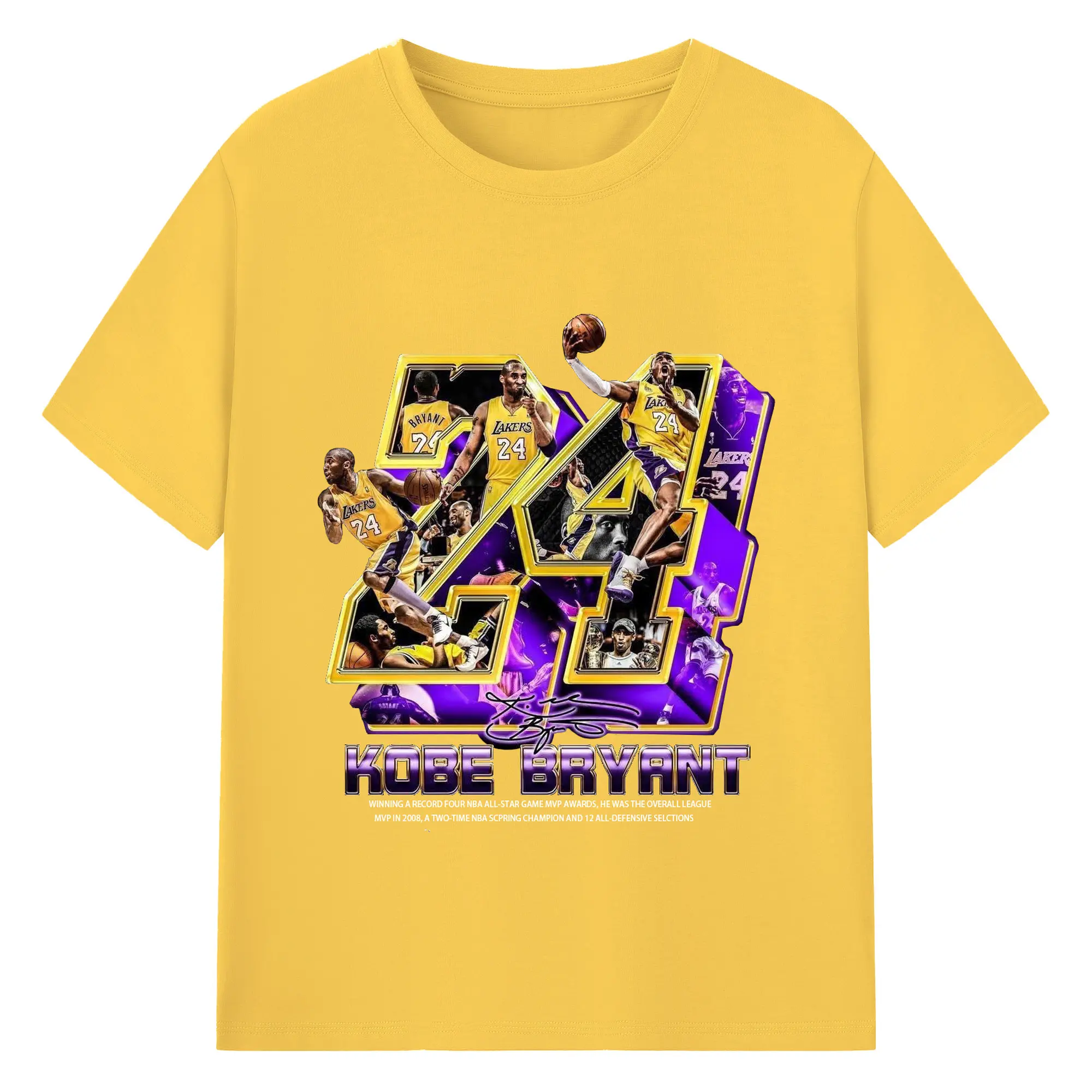 Kobe Bryant No. 24 close-up - 180g Cotton T-Shirt With Front Heat Transfer Print – Soft, Lightweight, Fitted Design – Comfortable Casual Wear For Sports & Everyday Use