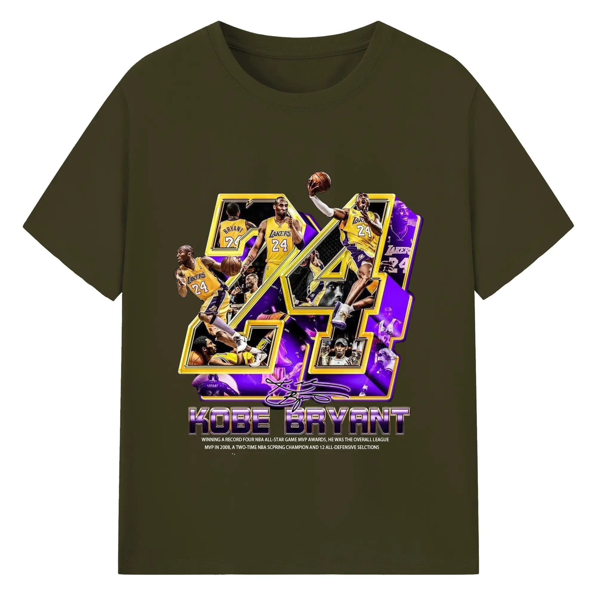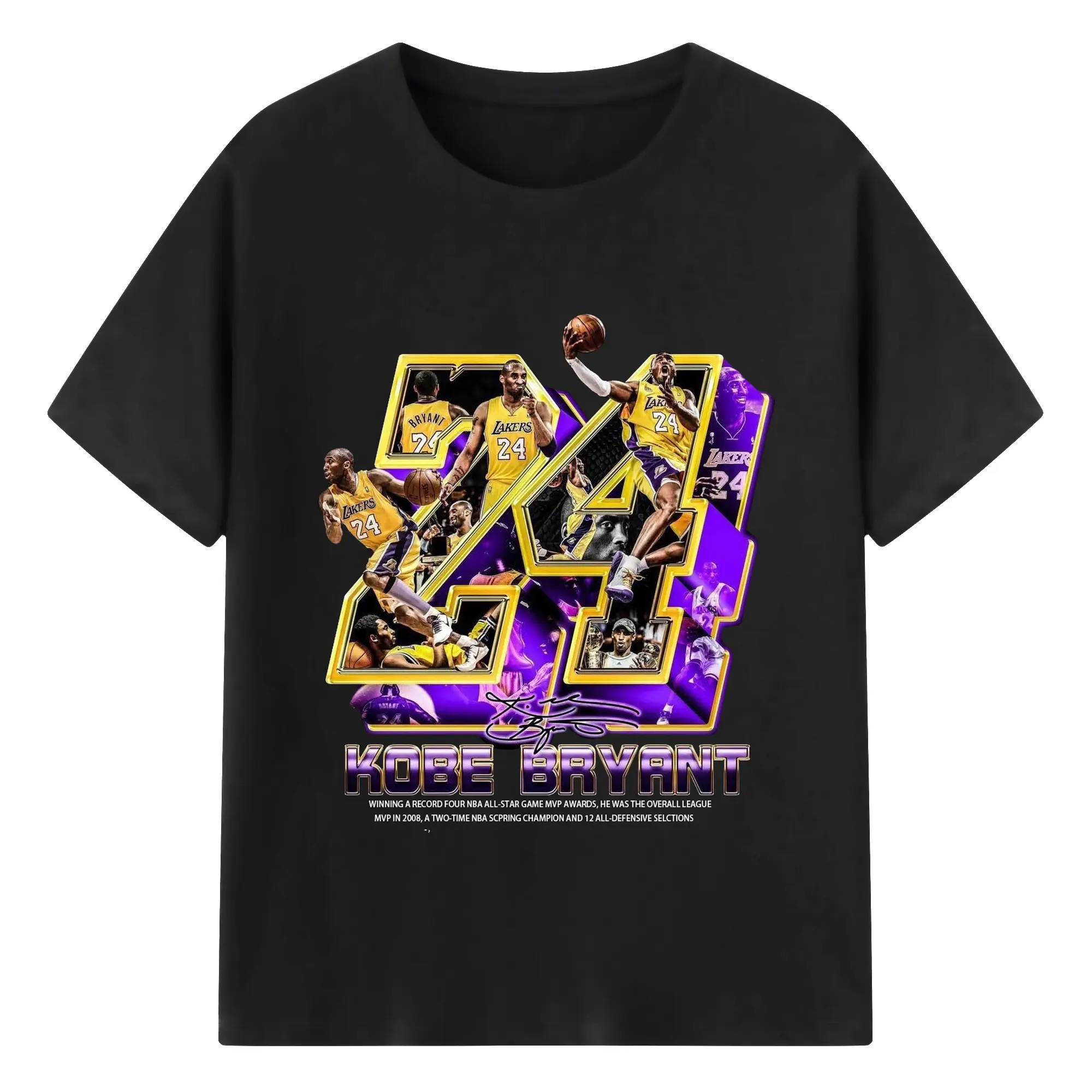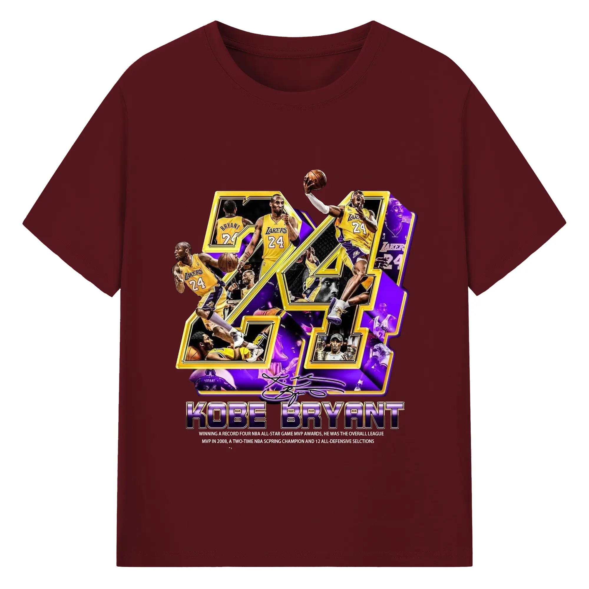 Kobe Bryant No. 24 close-up - 180g Cotton T-Shirt With Front Heat Transfer Print – Soft, Lightweight, Fitted Design – Comfortable Casual Wear For Sports & Everyday Use