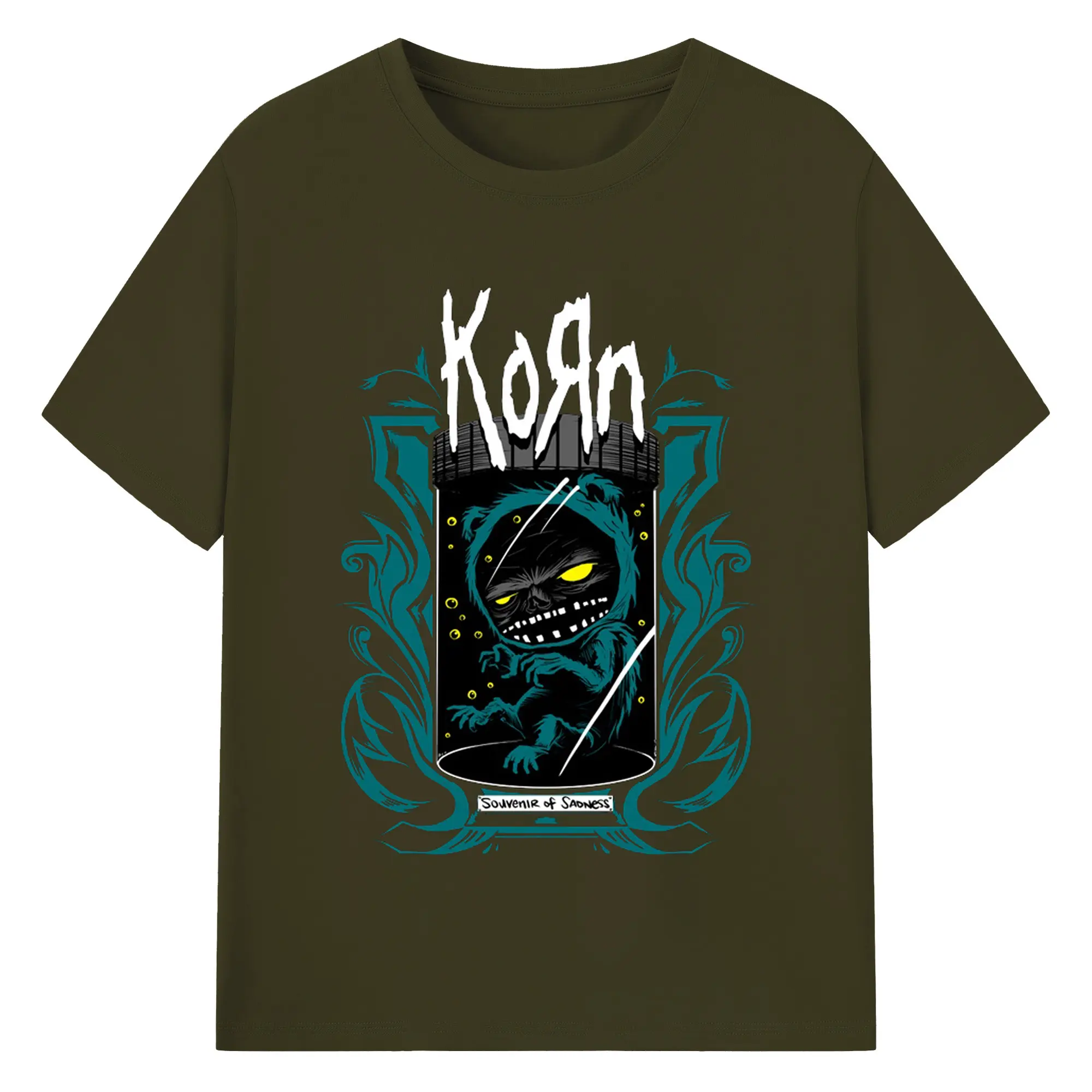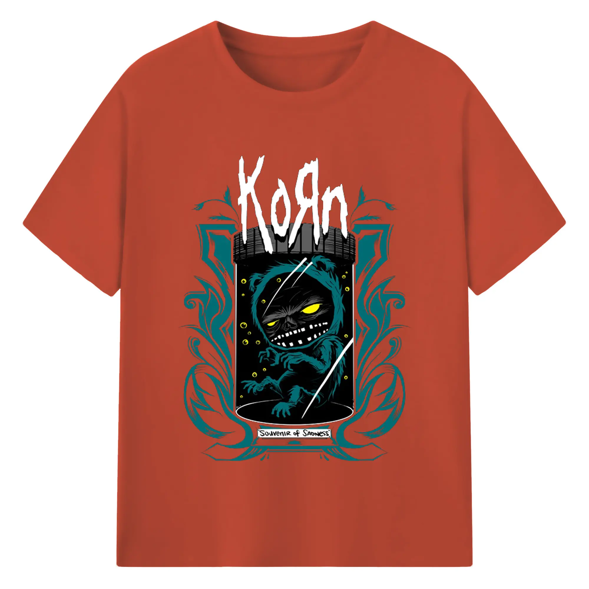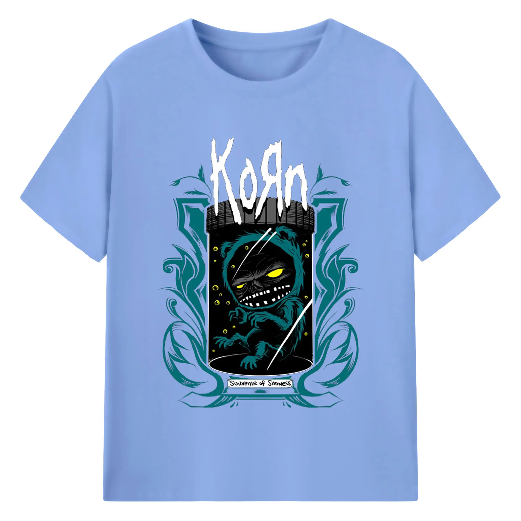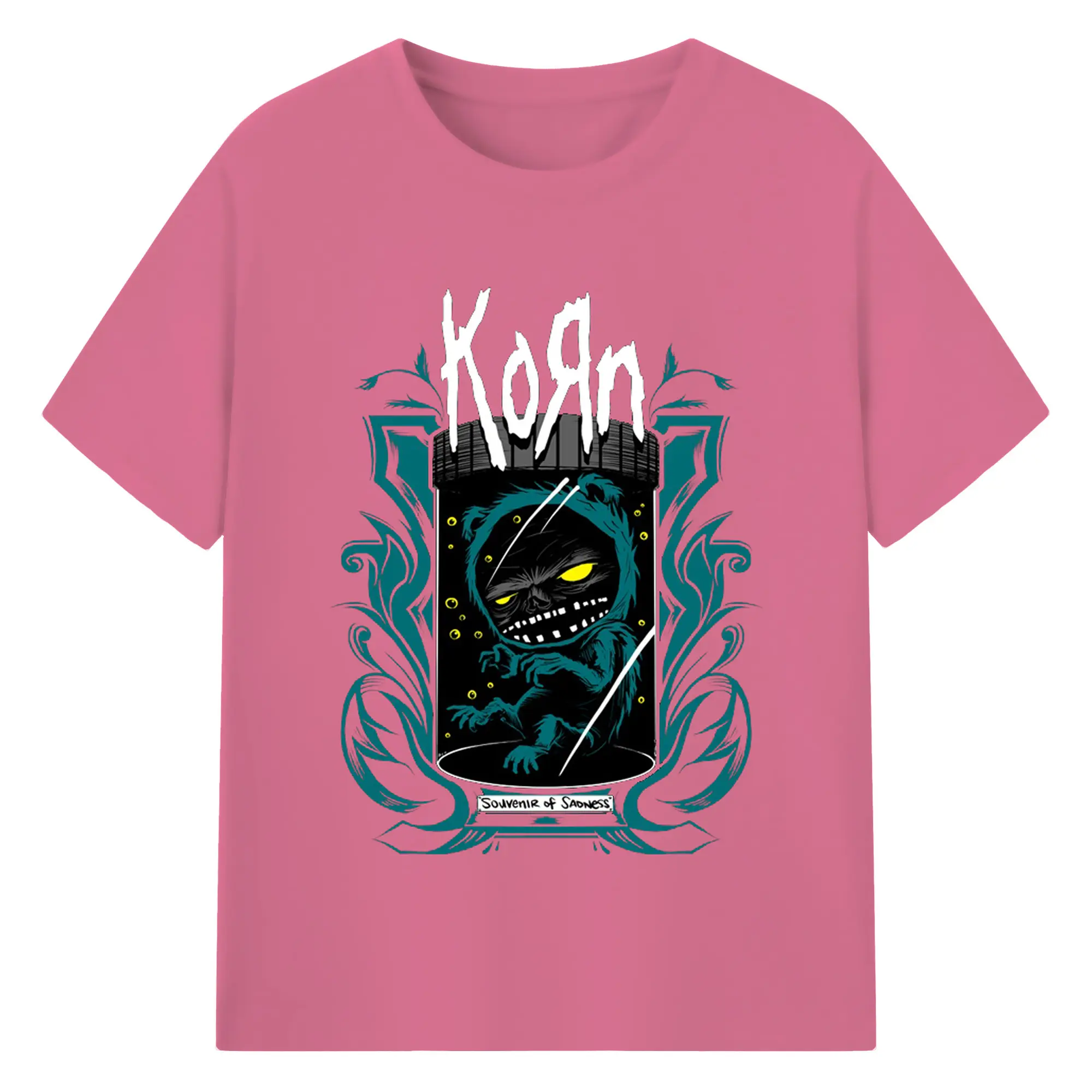 Korn Dark Fantasy Alternative Rock DIY Shirt - 180g Cotton T-Shirt With Front Heat Transfer Print – Soft, Lightweight, Fitted Design – Comfortable Casual Wear For Sports & Everyday Use