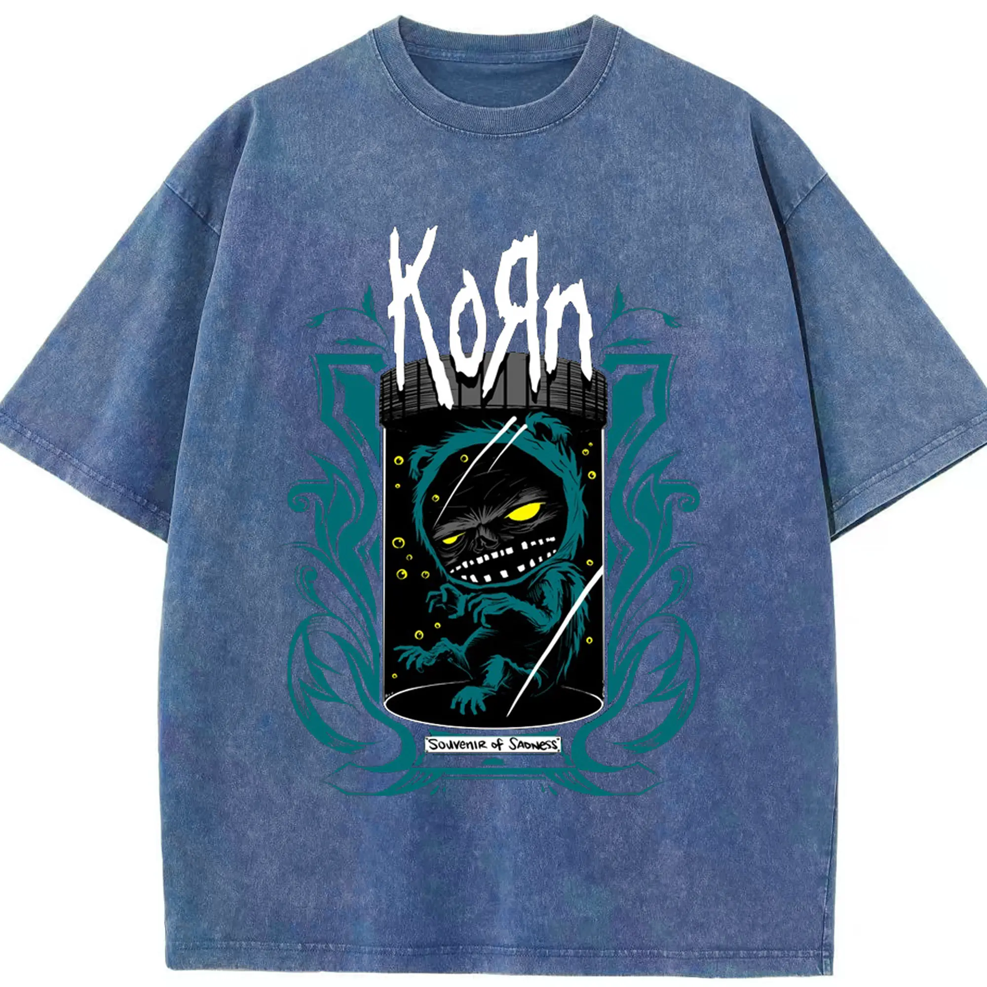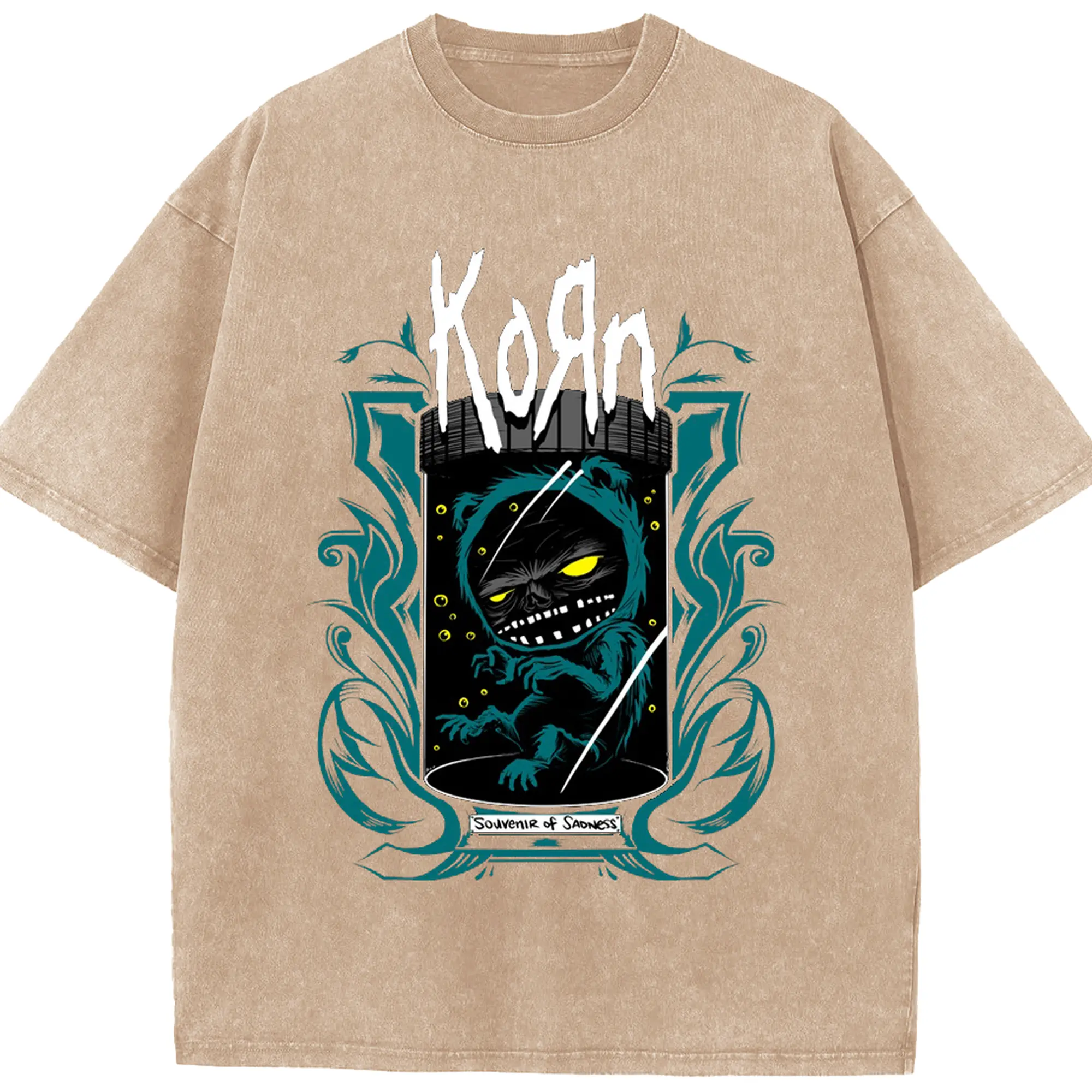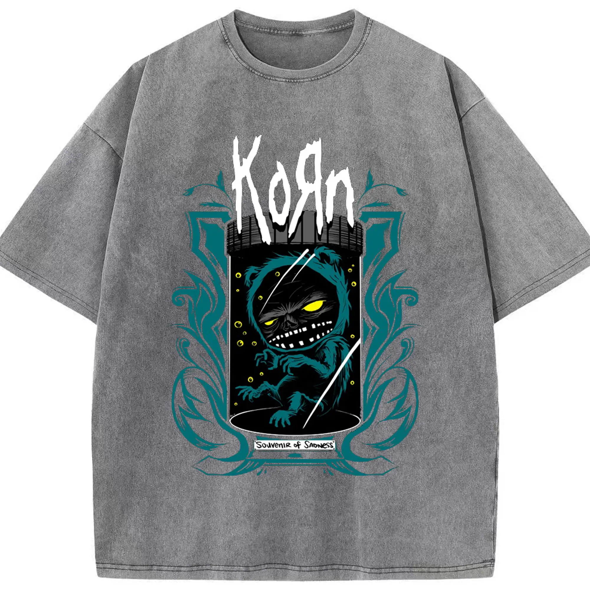 Korn Dark Fantasy Alternative Rock DIY Shirt - Washed Vintage Look 230g Cotton Oversized T-Shirt With Front Heat Transfer Print – Soft, Lightweight, Stylish Fit – Comfortable Casual Wear For Sports & Everyday Use