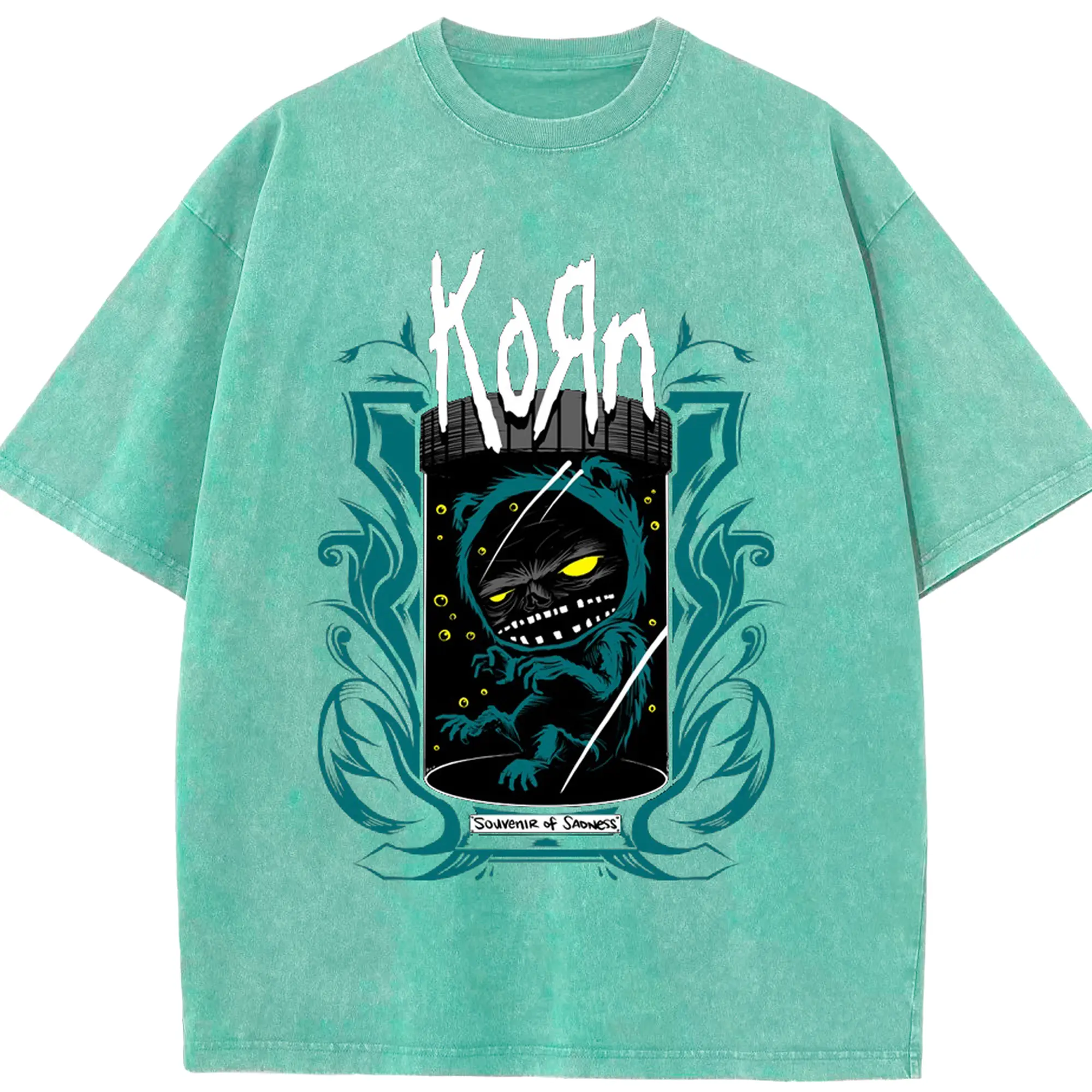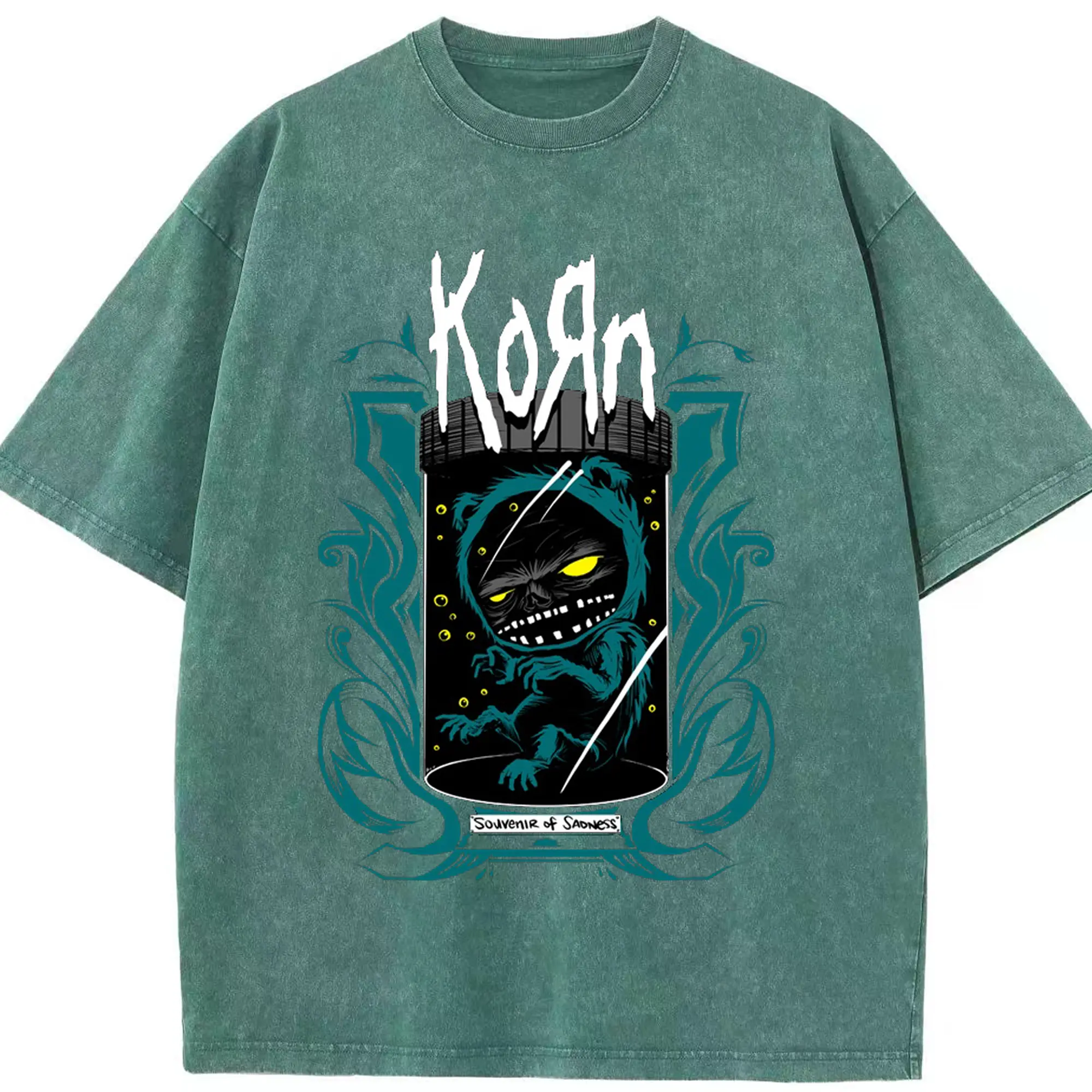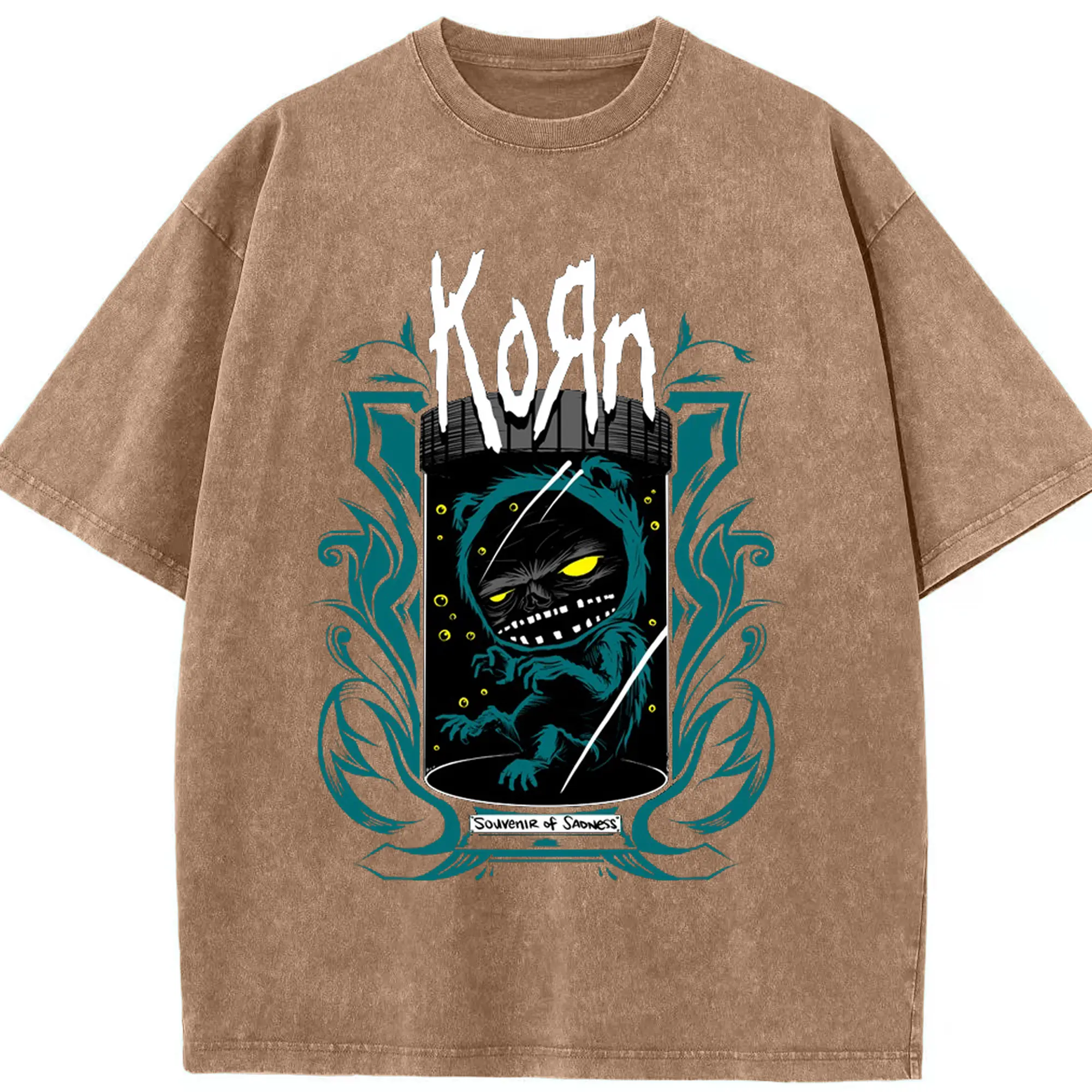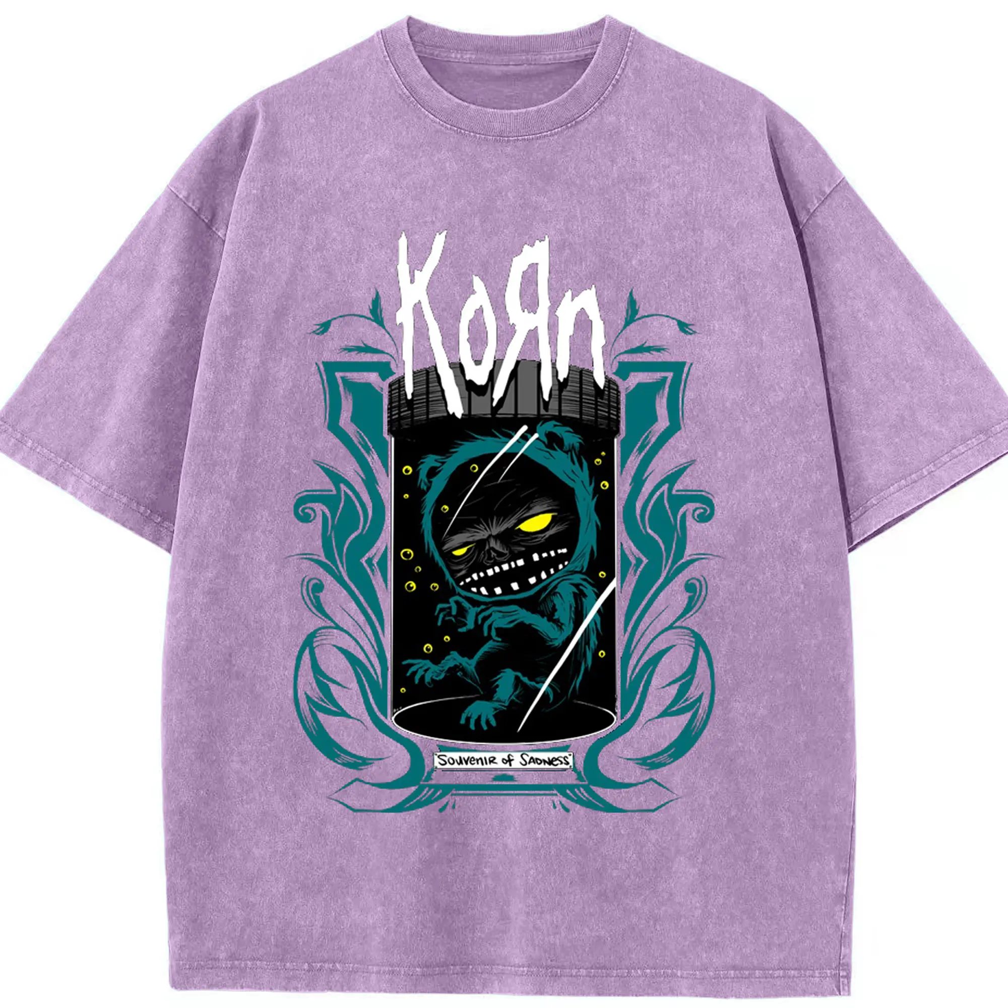 Korn Dark Fantasy Alternative Rock DIY Shirt - Washed Vintage Look 230g Cotton Oversized T-Shirt With Front Heat Transfer Print – Soft, Lightweight, Stylish Fit – Comfortable Casual Wear For Sports & Everyday Use