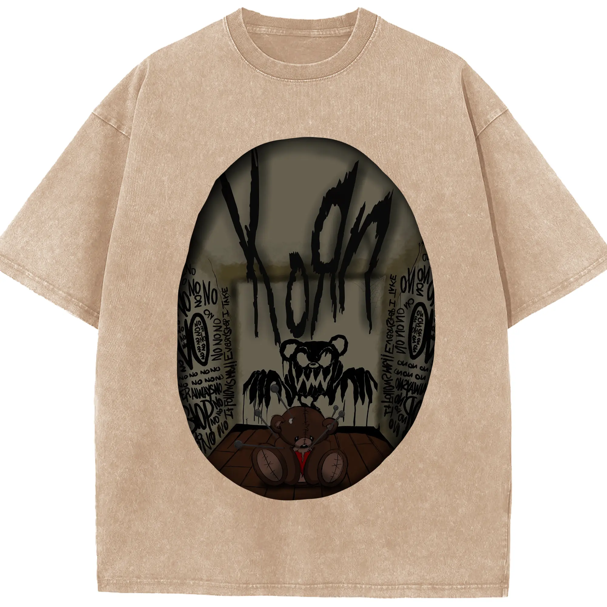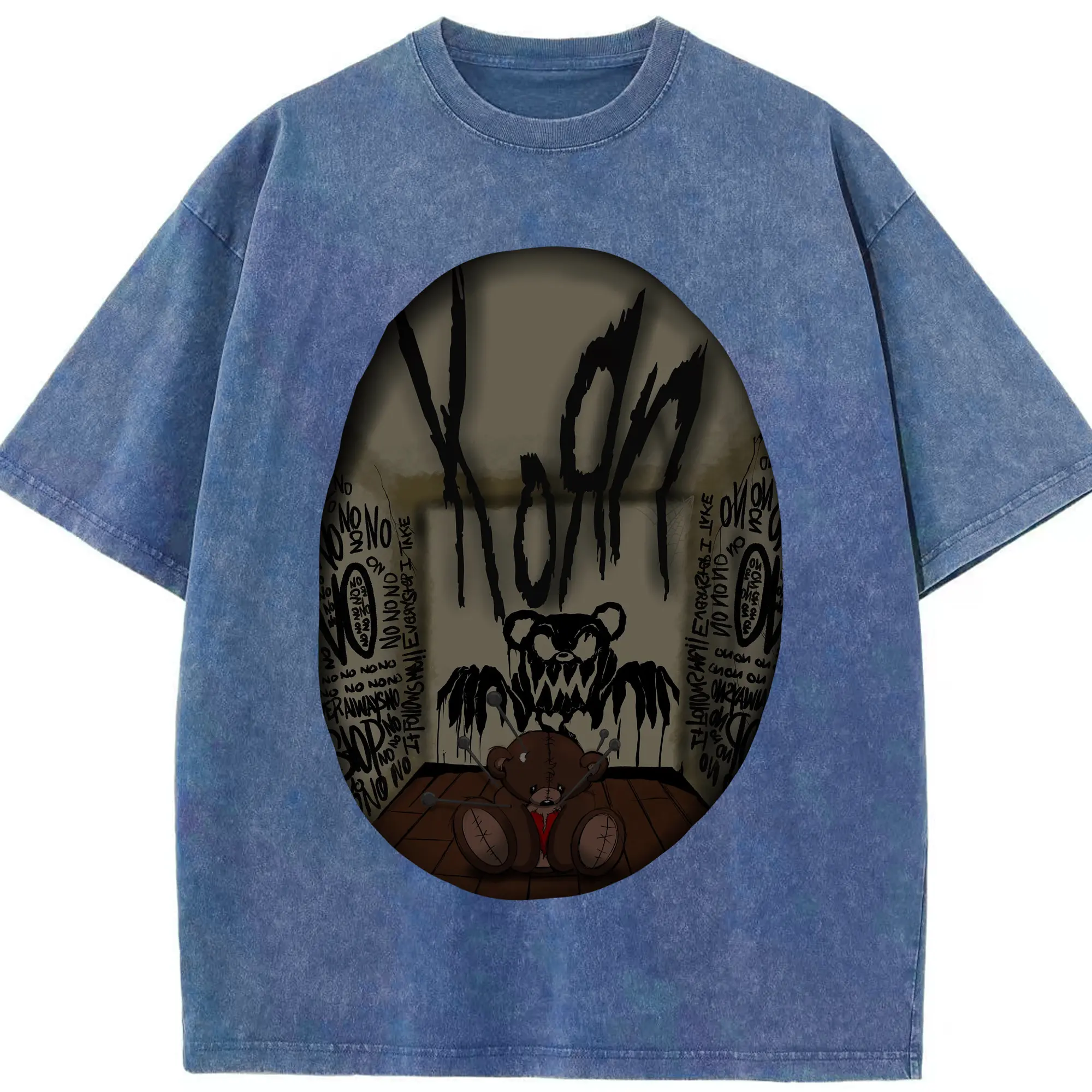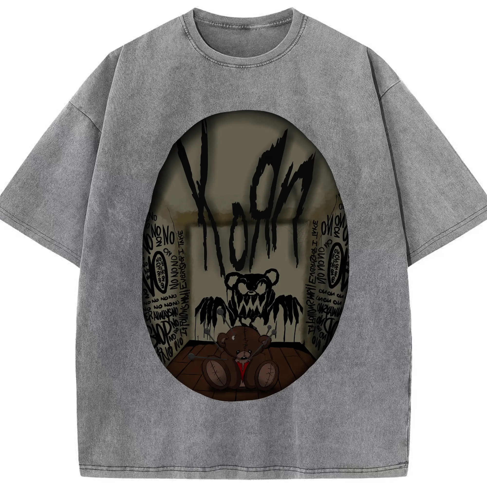 Korn Dark Horror Bear Doll Rock DIY Shirt - Washed Vintage Look 230g Cotton Oversized T-Shirt With Front Heat Transfer Print – Soft, Lightweight, Stylish Fit – Comfortable Casual Wear For Sports & Everyday Use