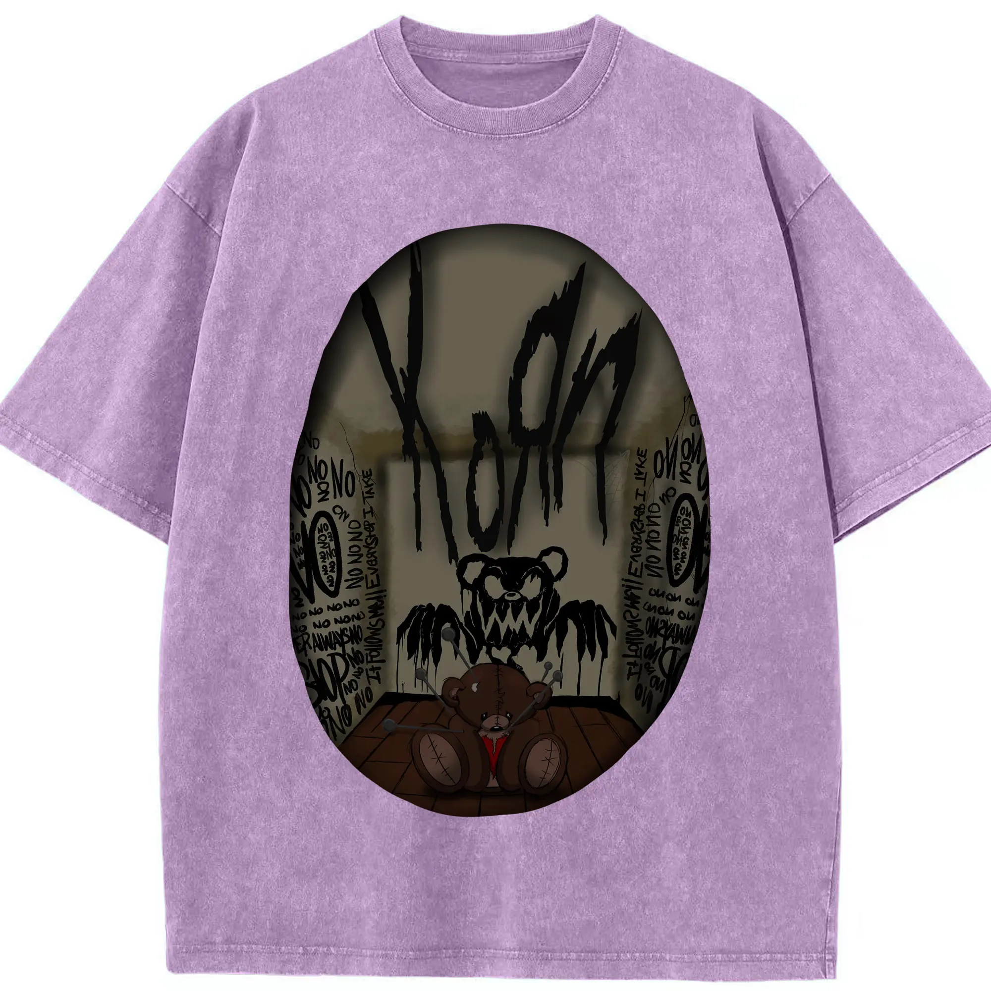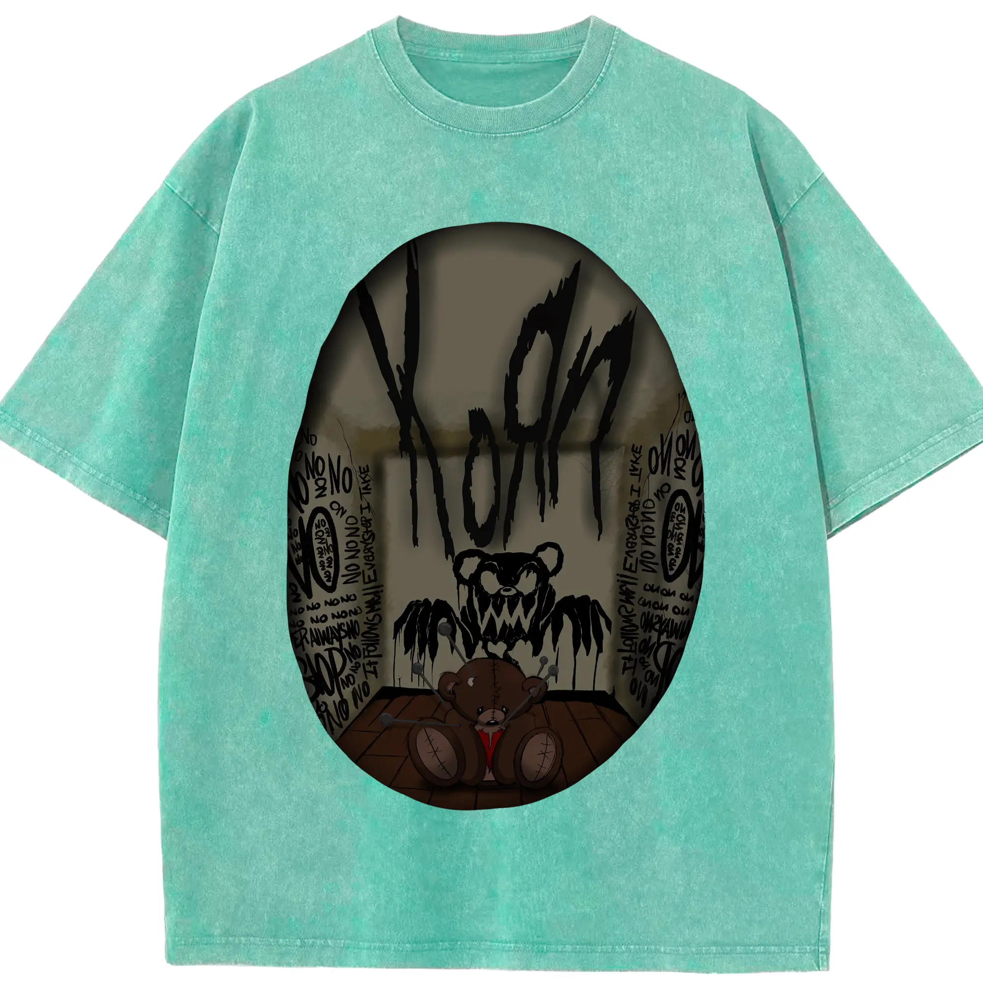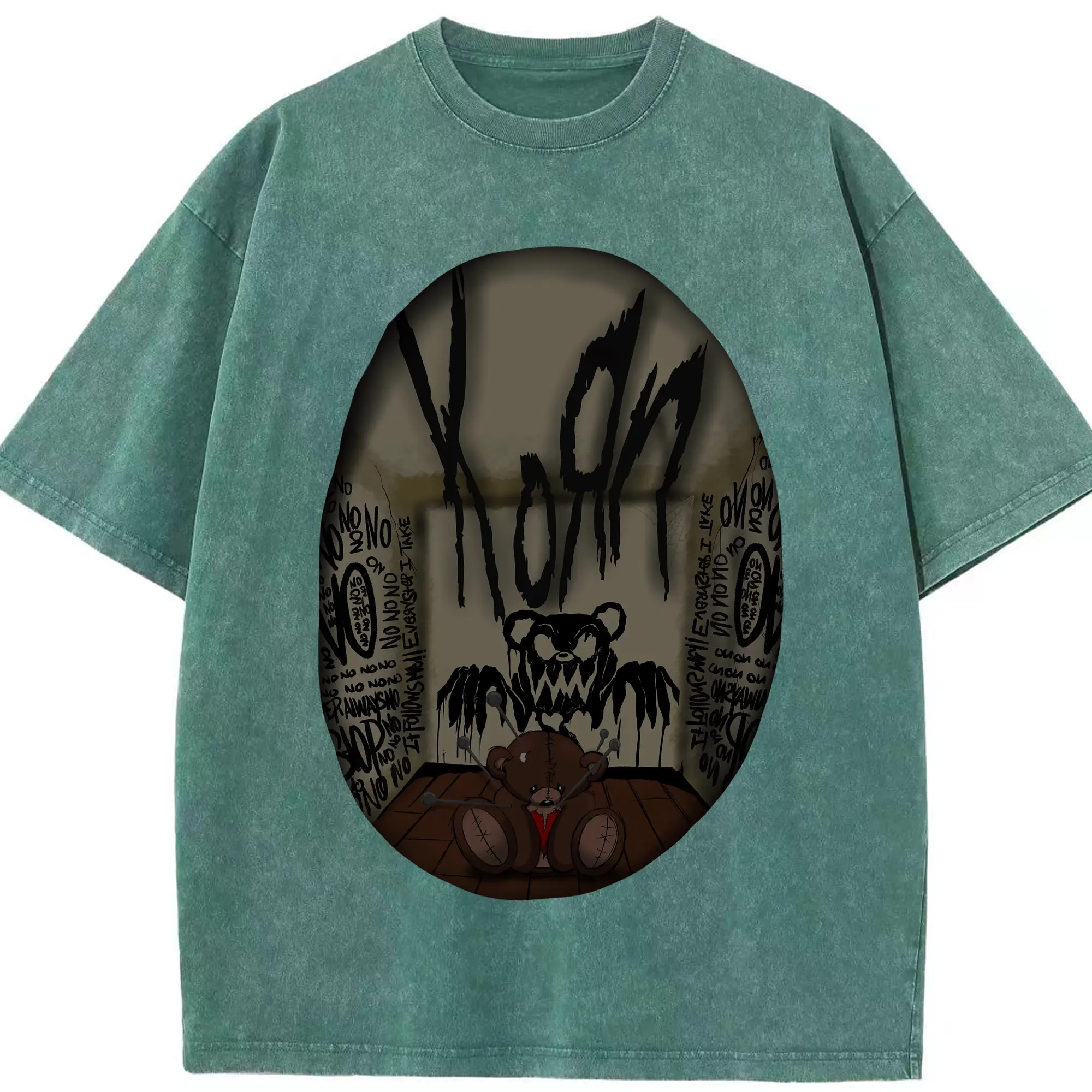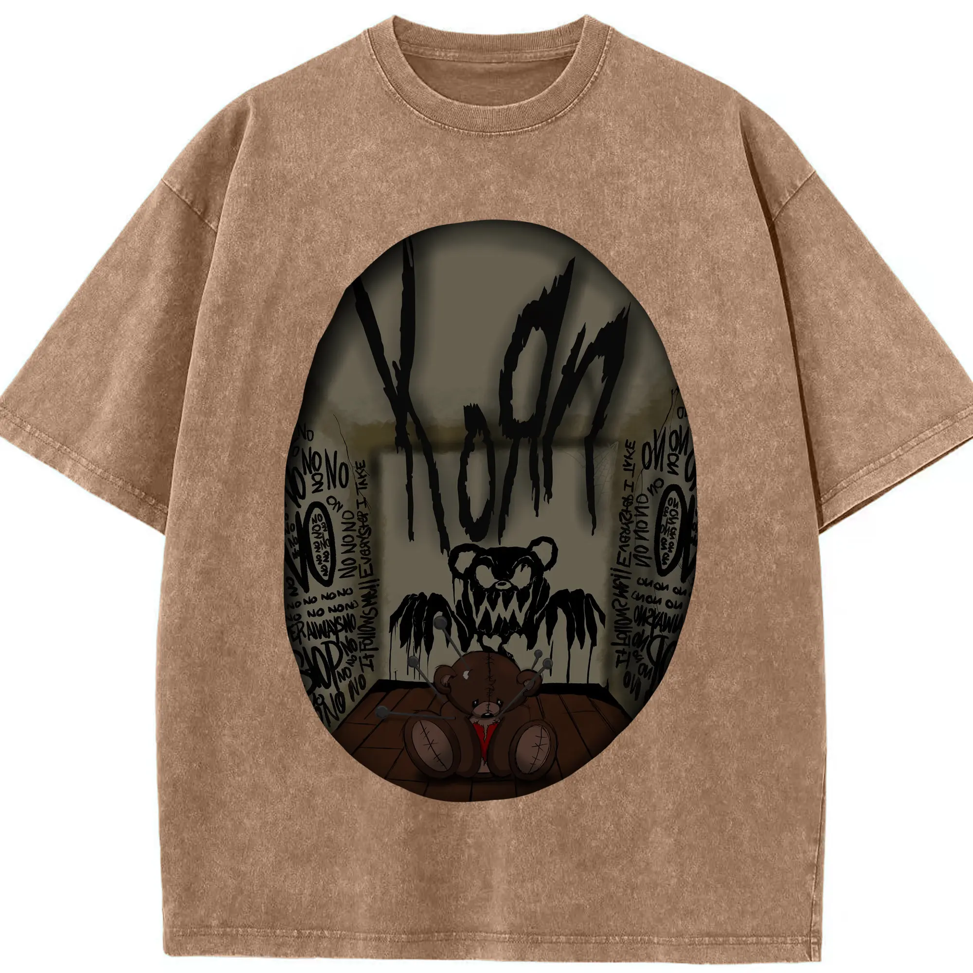 Korn Dark Horror Bear Doll Rock DIY Shirt - Washed Vintage Look 230g Cotton Oversized T-Shirt With Front Heat Transfer Print – Soft, Lightweight, Stylish Fit – Comfortable Casual Wear For Sports & Everyday Use
