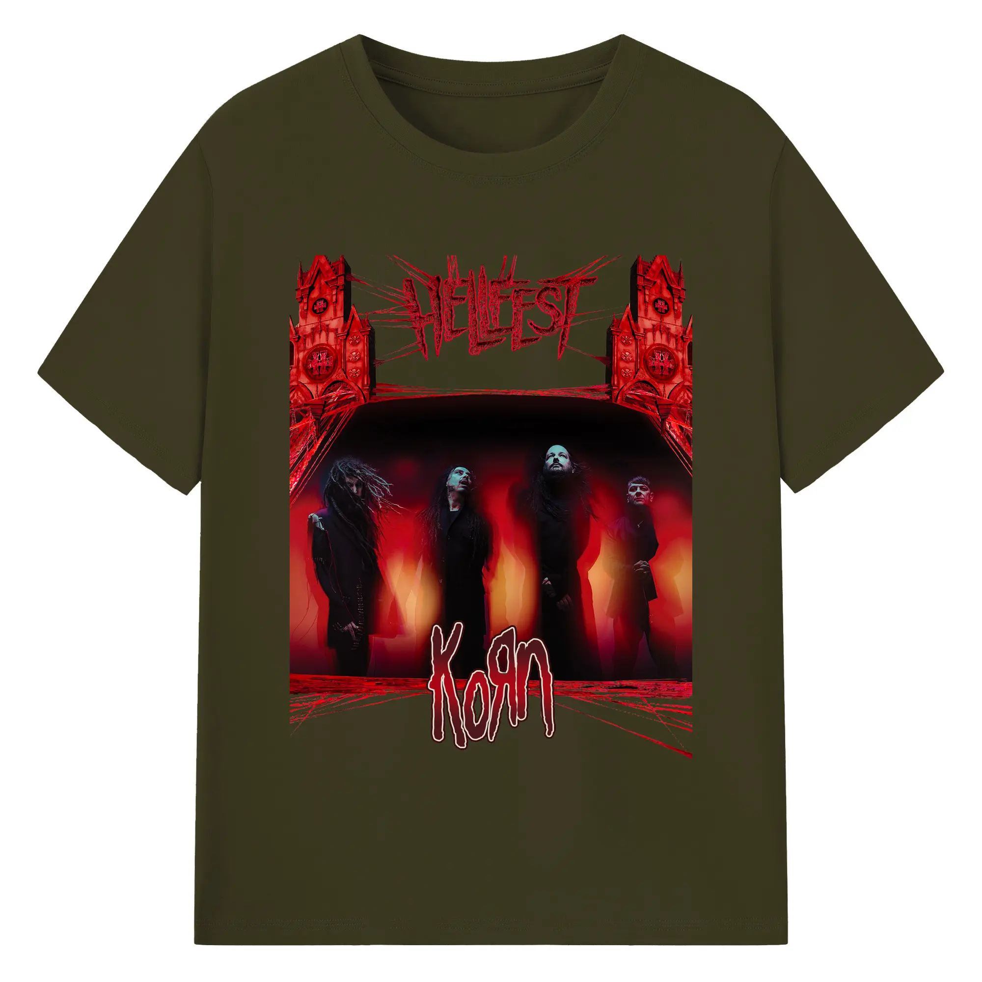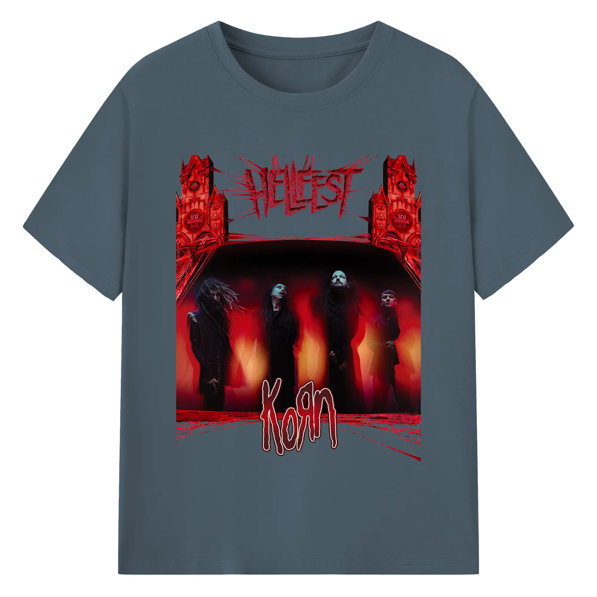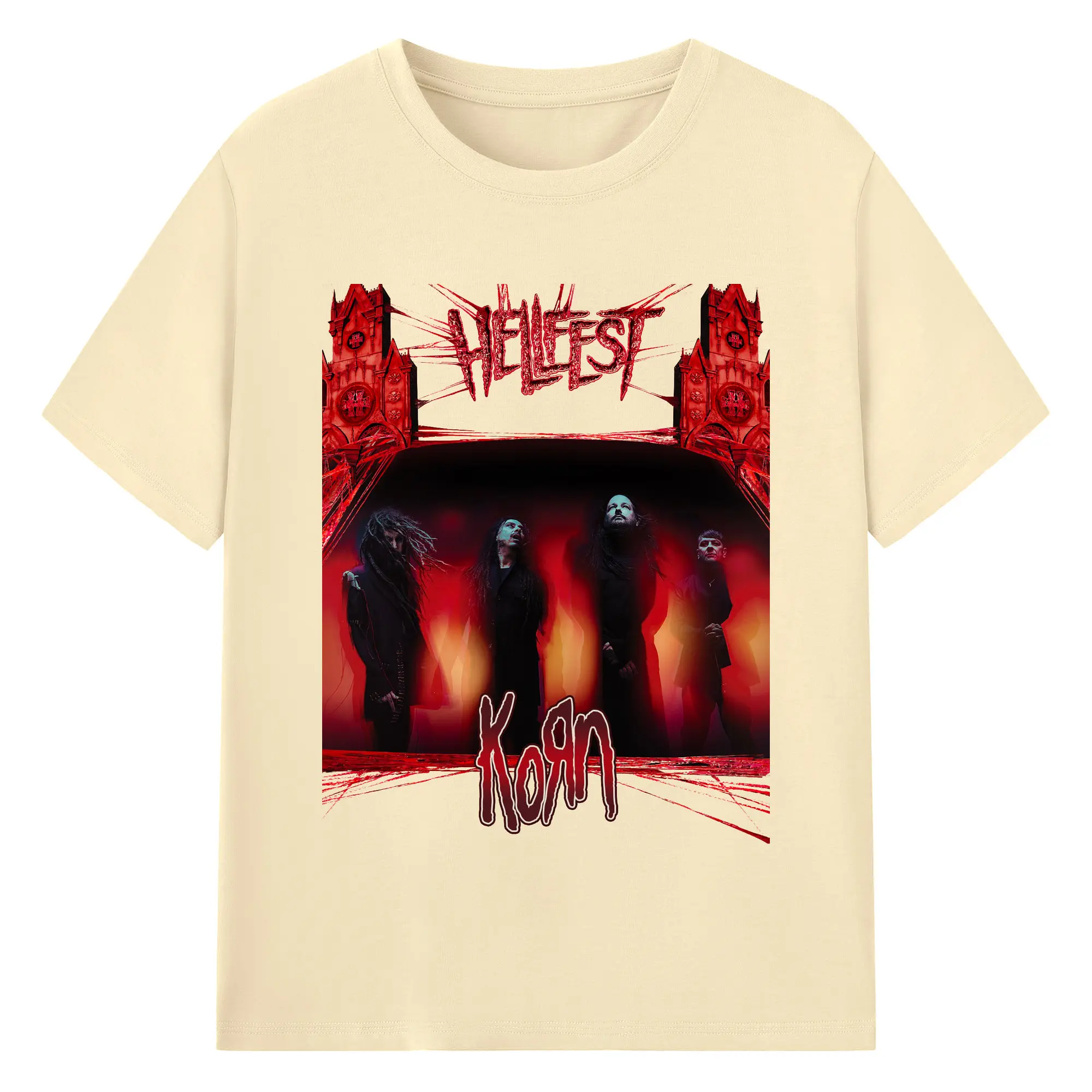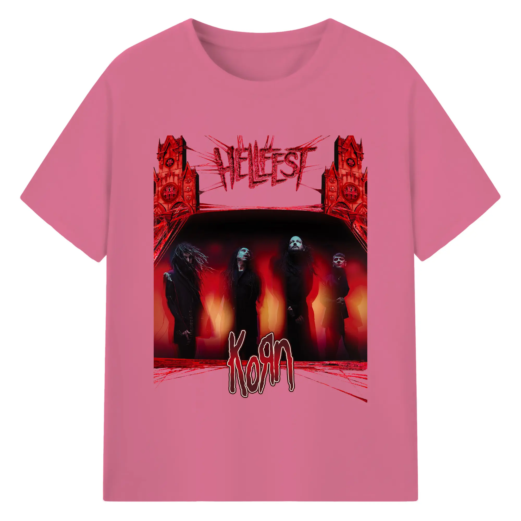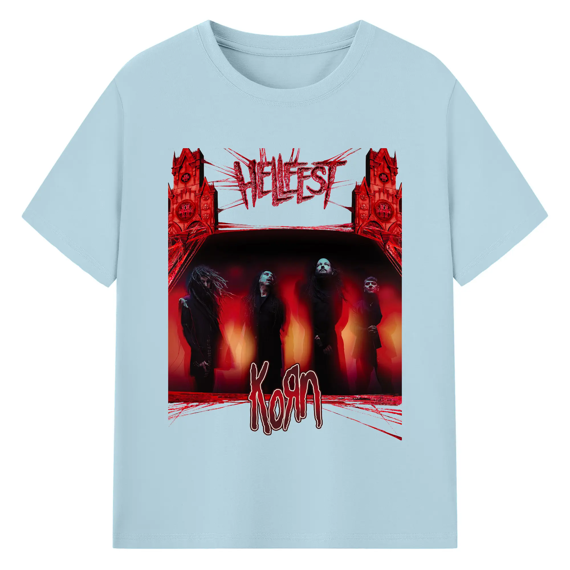 Korn Hellfest New Metal Rock DIY Sshirt-France only - 180g Cotton T-Shirt With Front Heat Transfer Print – Soft, Lightweight, Fitted Design – Comfortable Casual Wear For Sports & Everyday Use