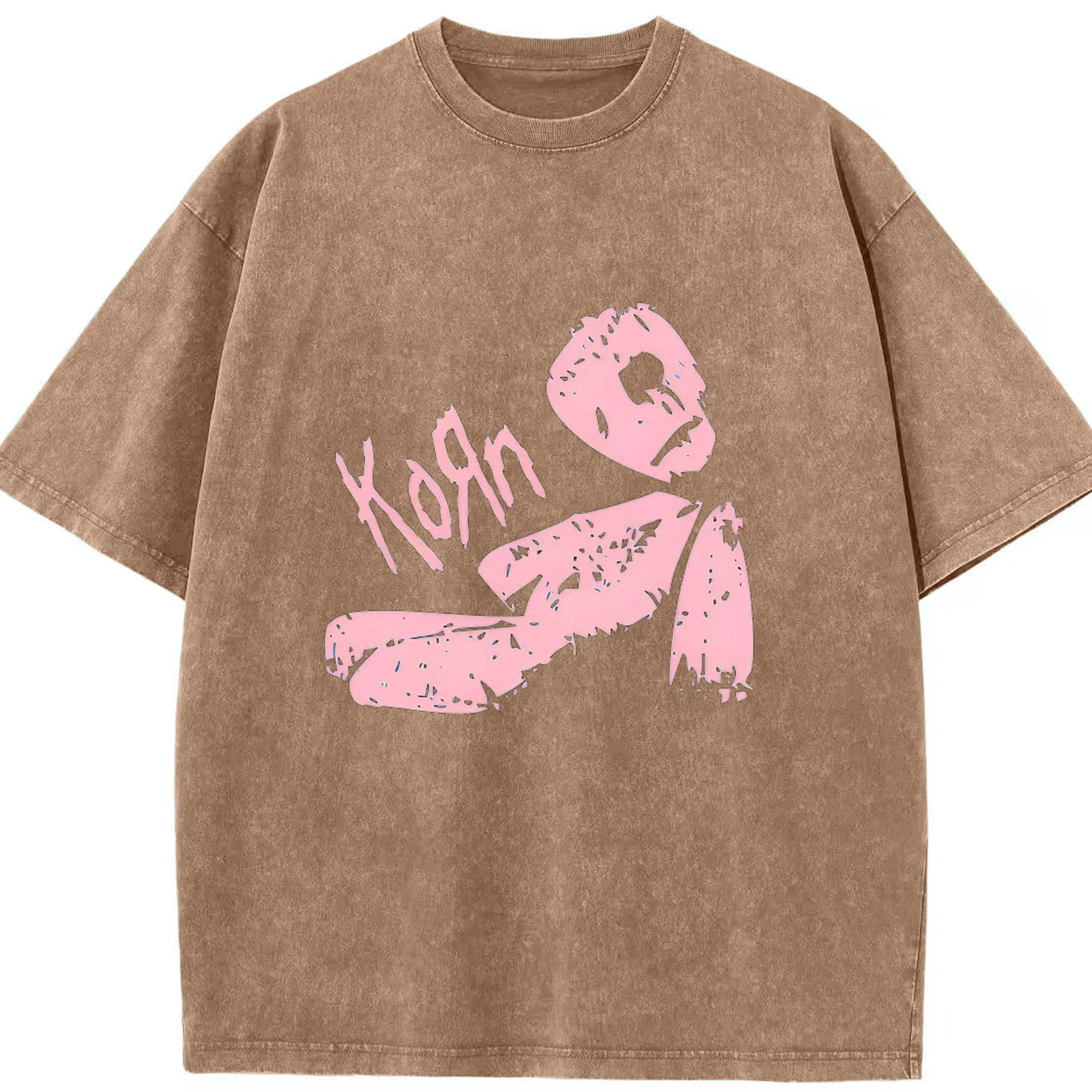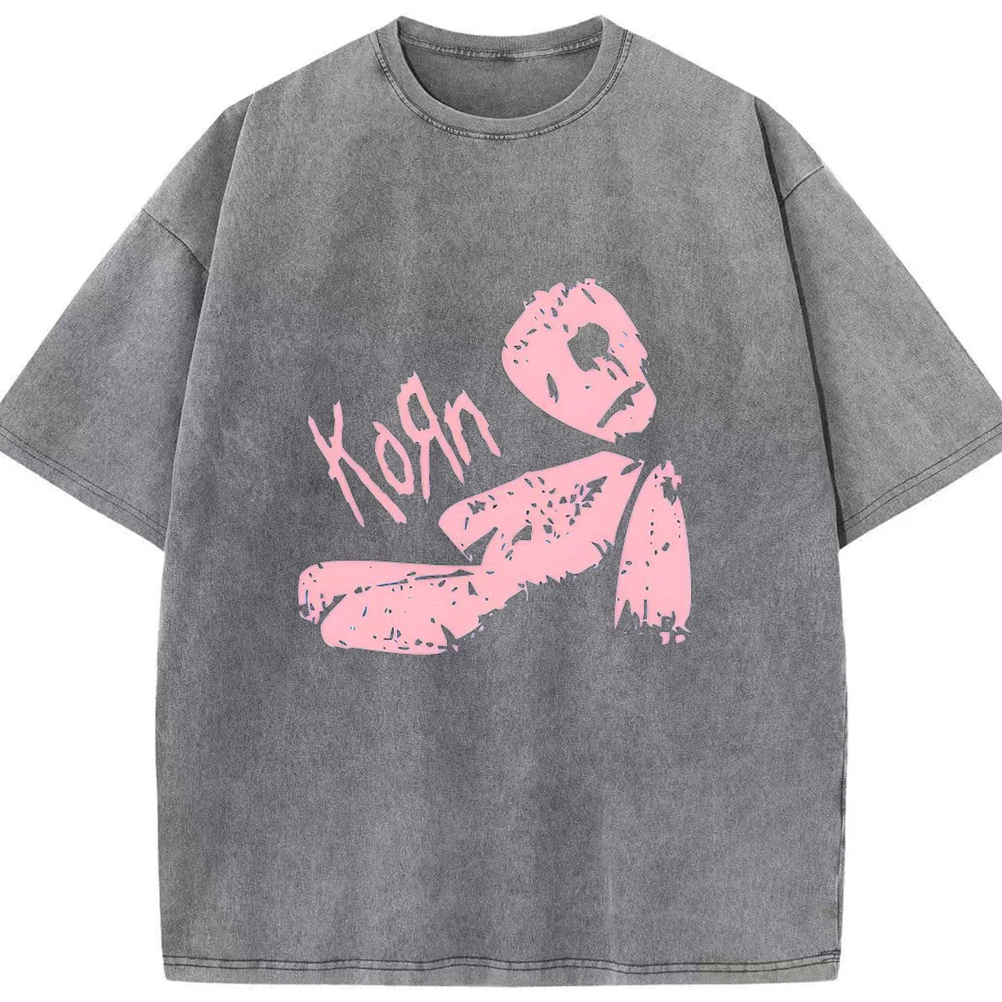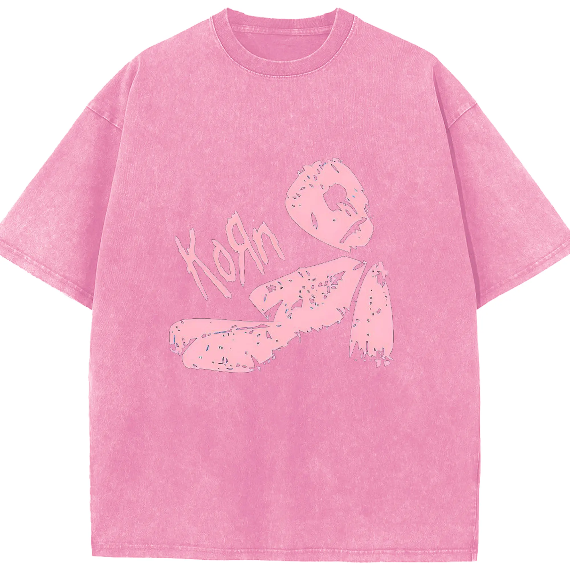 Korn Pink Doll Art DIY Shirt - Washed Vintage Look 230g Cotton Oversized T-Shirt With Front Heat Transfer Print – Soft, Lightweight, Stylish Fit – Comfortable Casual Wear For Sports & Everyday Use