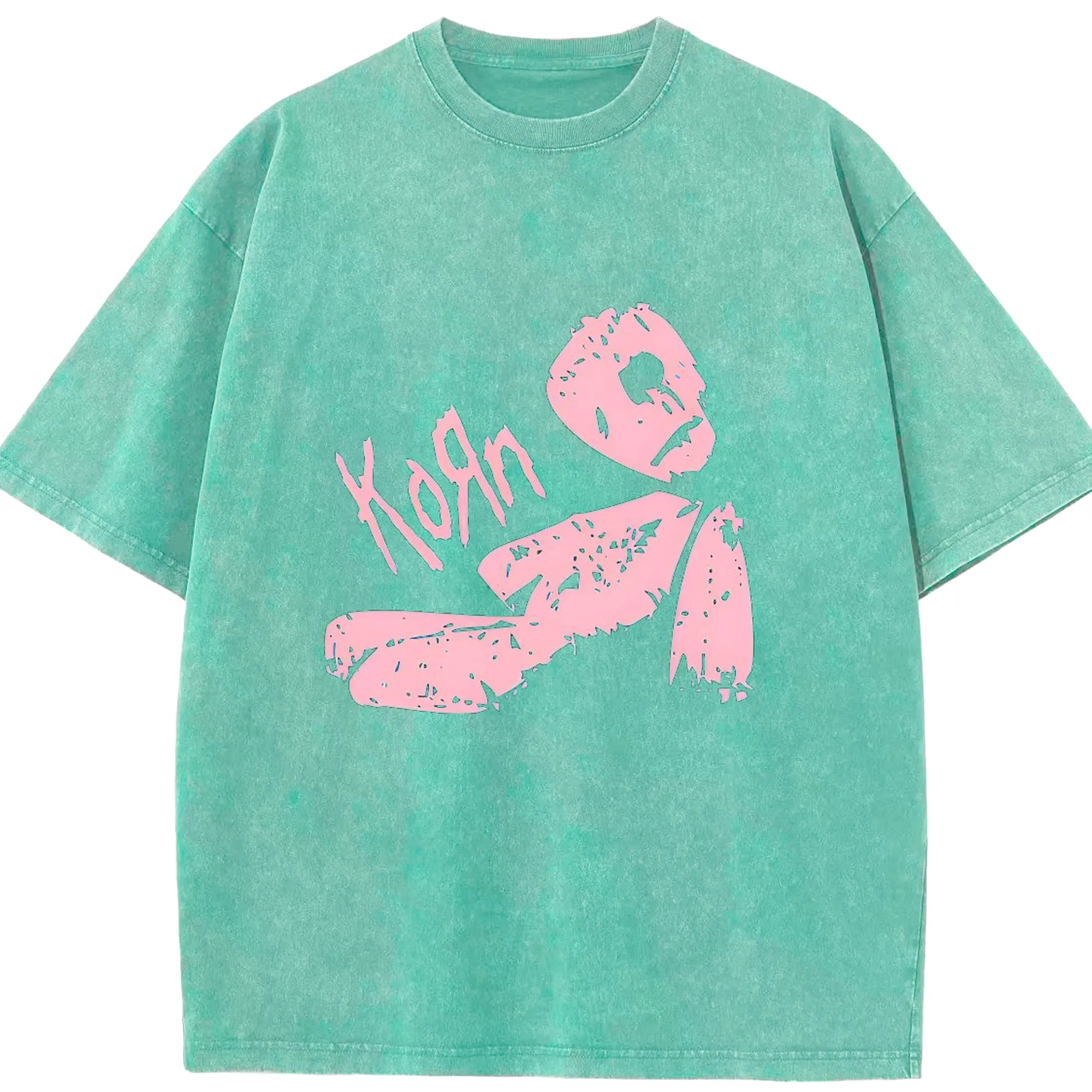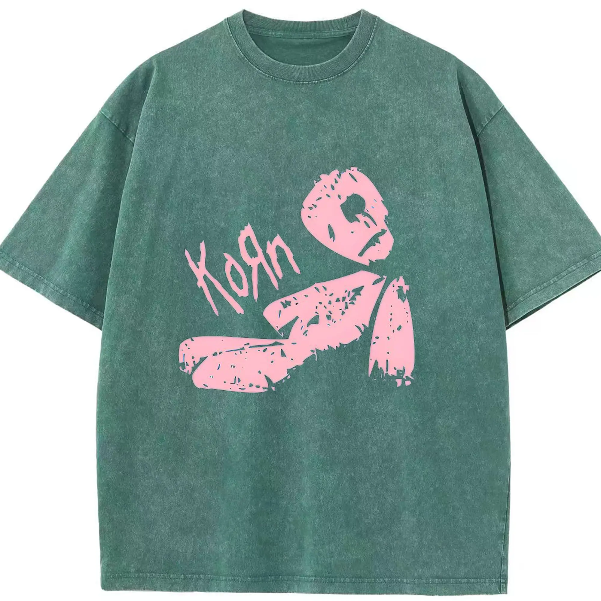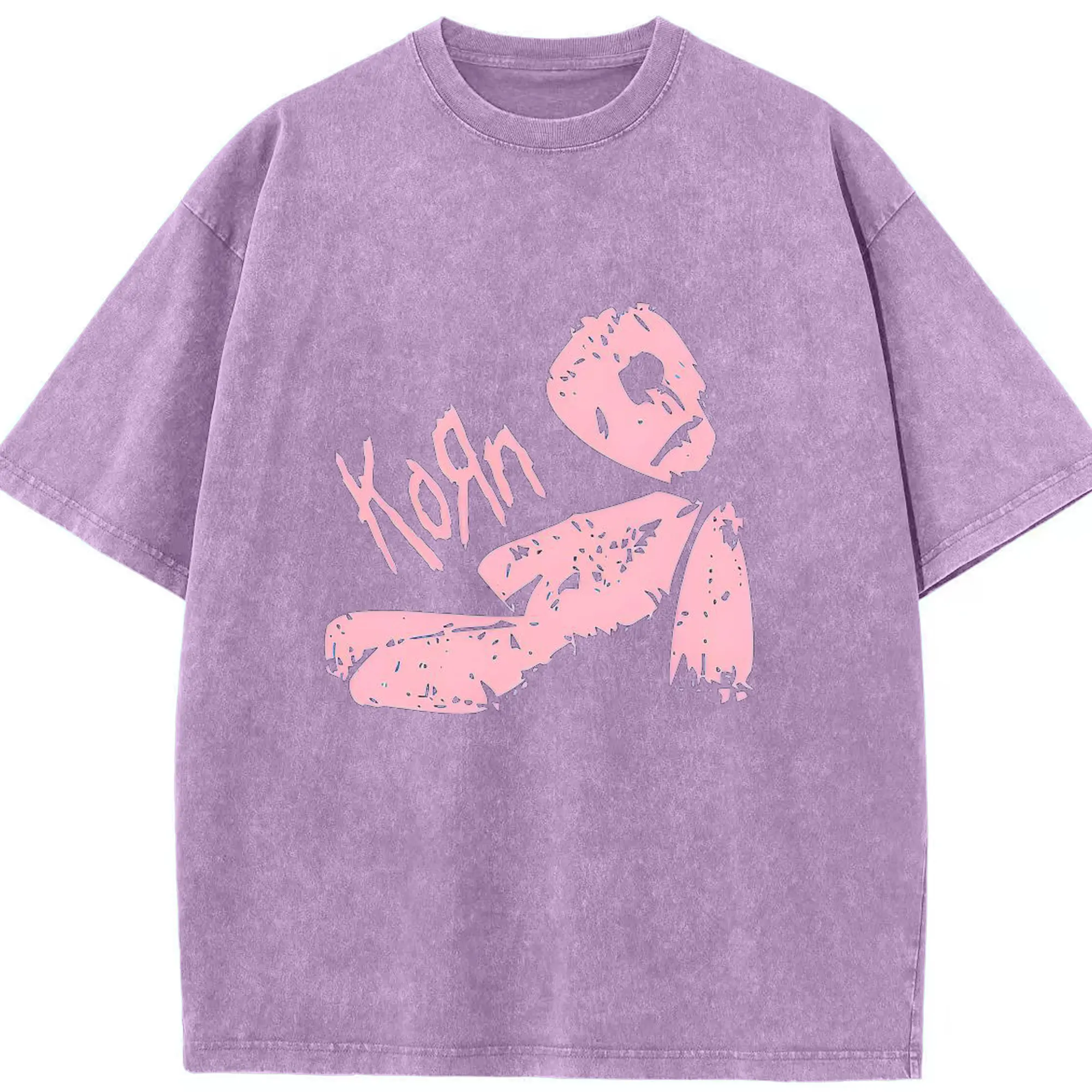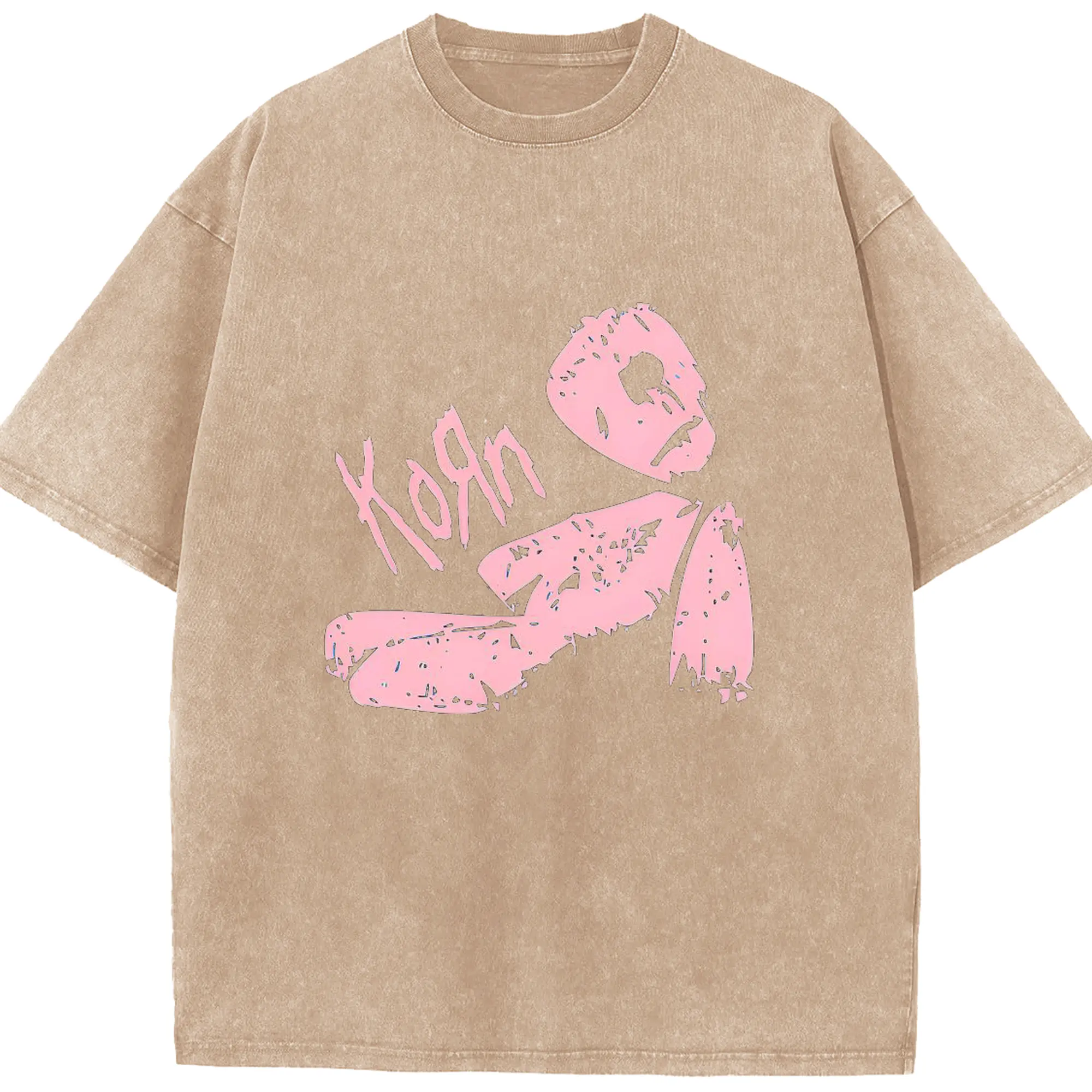 Korn Pink Doll Art DIY Shirt - Washed Vintage Look 230g Cotton Oversized T-Shirt With Front Heat Transfer Print – Soft, Lightweight, Stylish Fit – Comfortable Casual Wear For Sports & Everyday Use