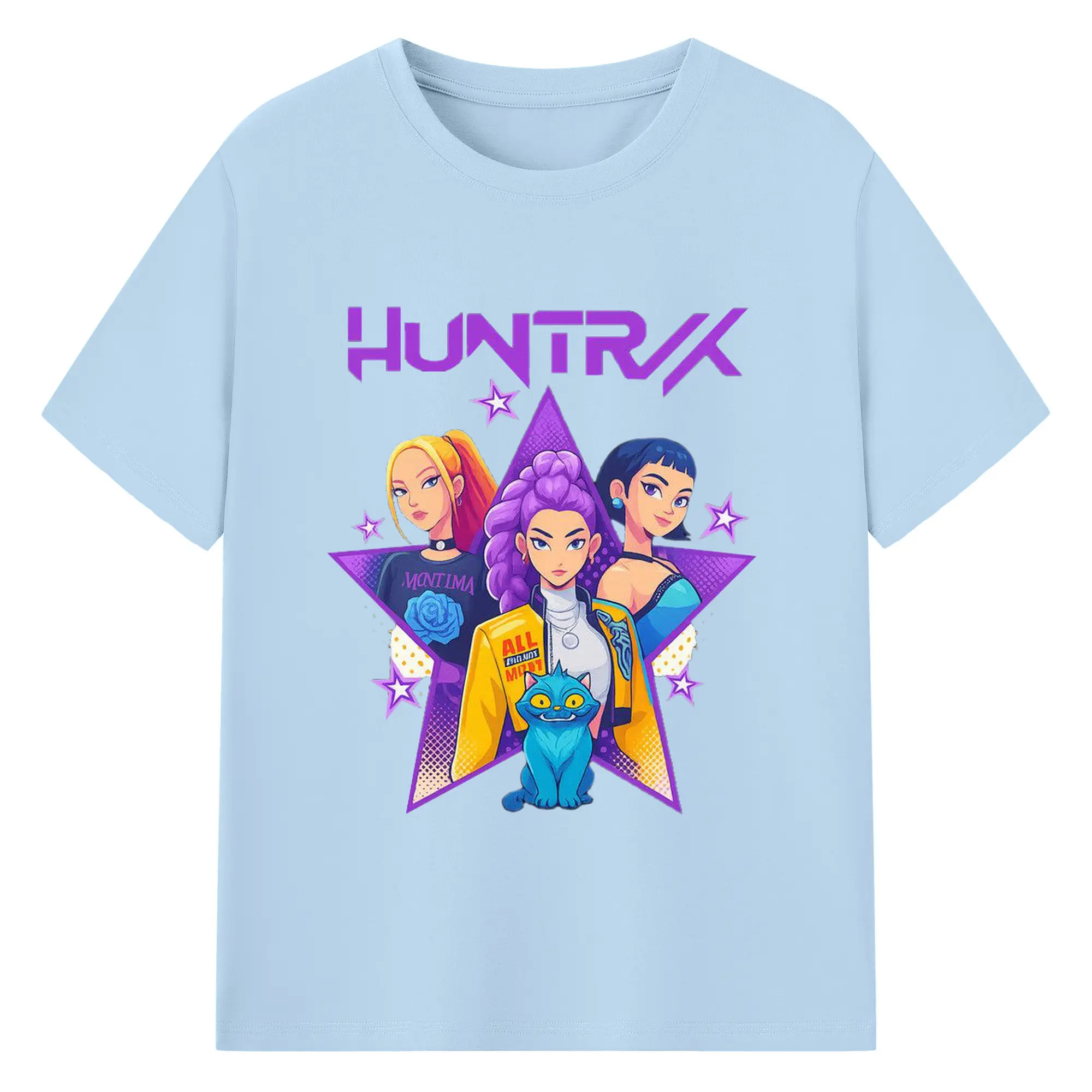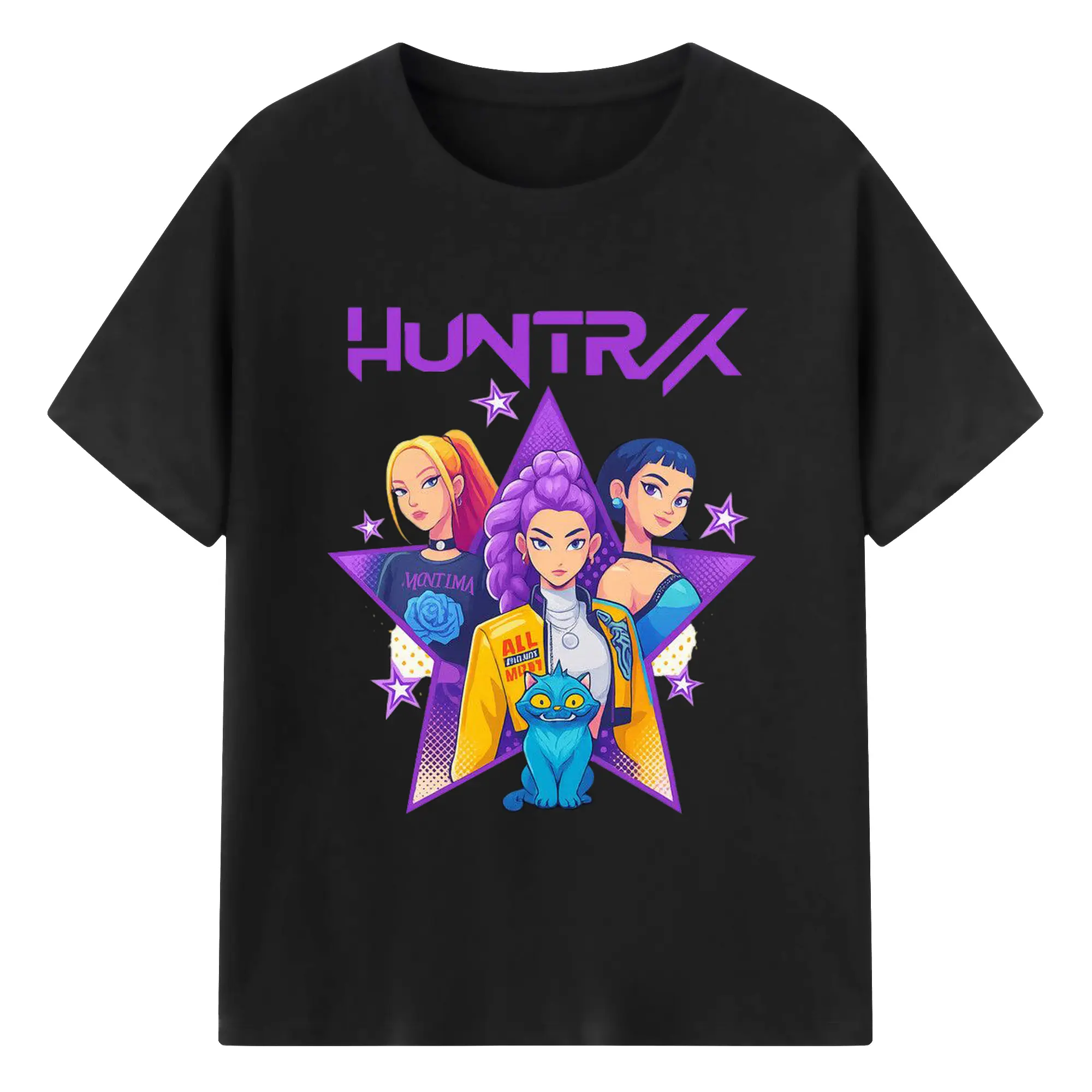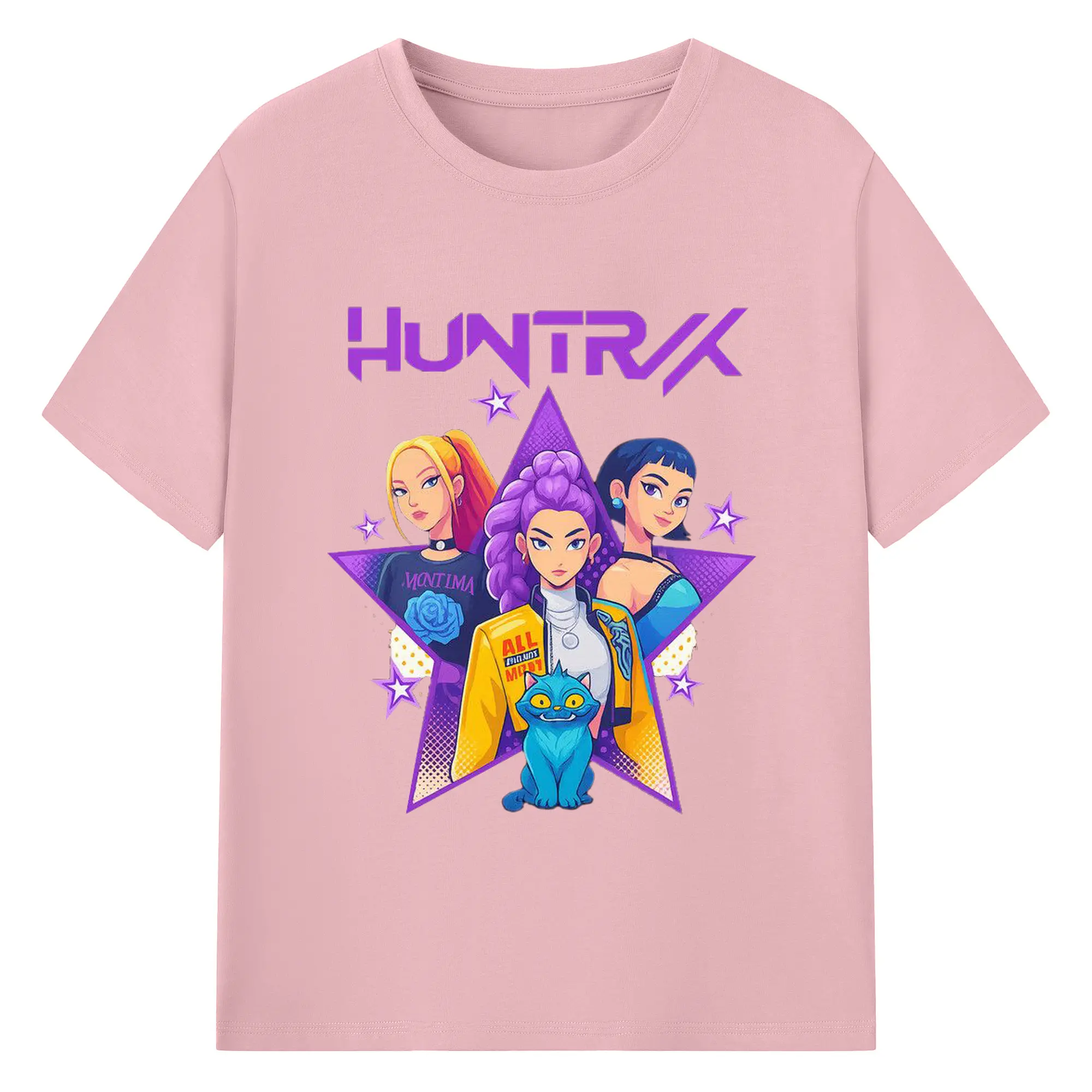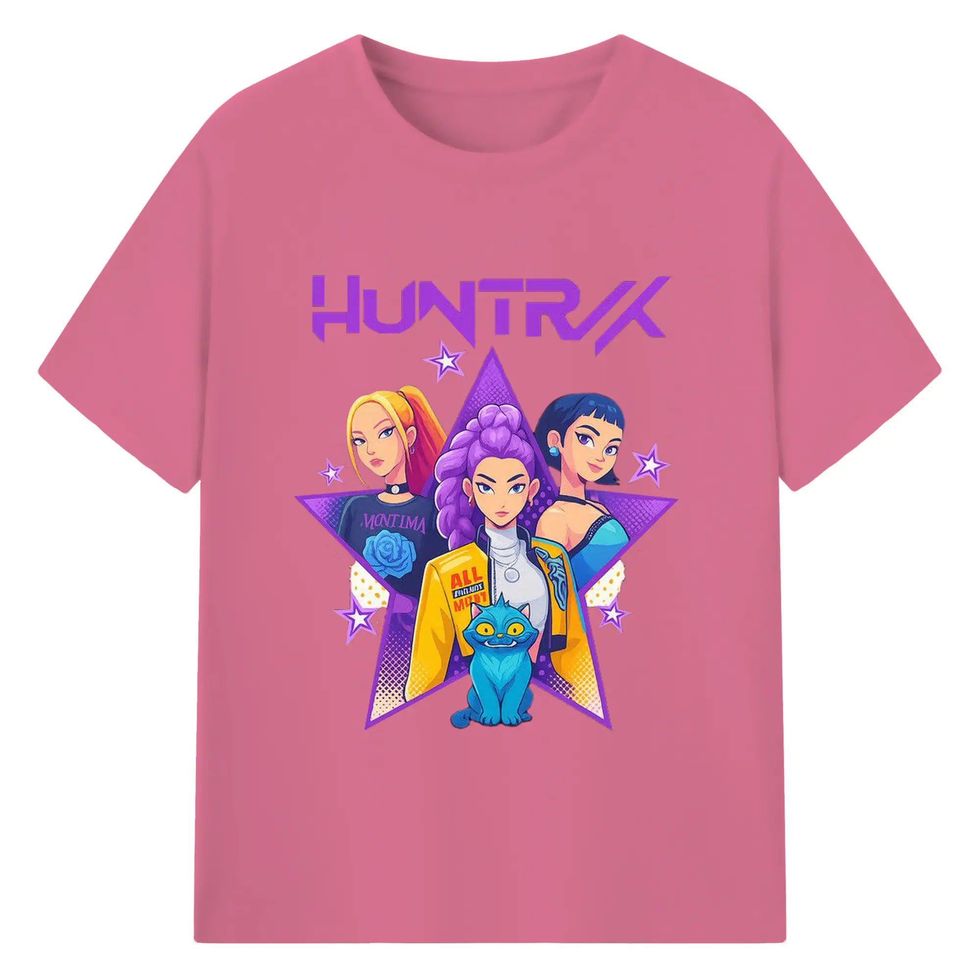 K-POP Huntrx Pop Art Girl Characters with Cat DIY Shirt - 180g Cotton T-Shirt With Front Heat Transfer Print – Soft, Lightweight, Fitted Design – Comfortable Casual Wear For Sports & Everyday Use