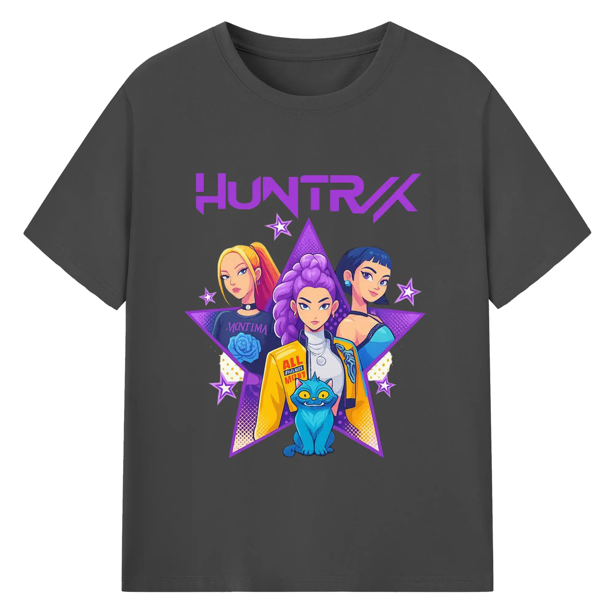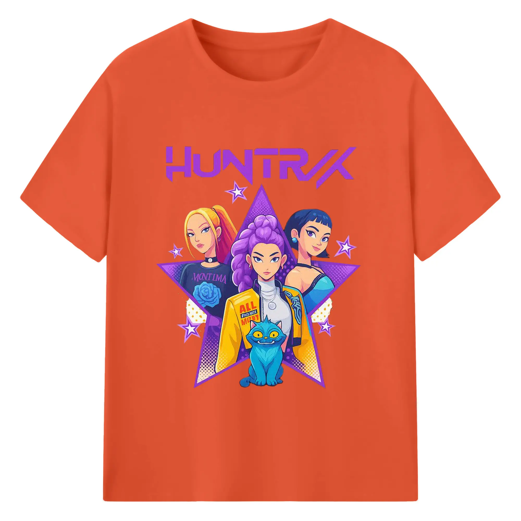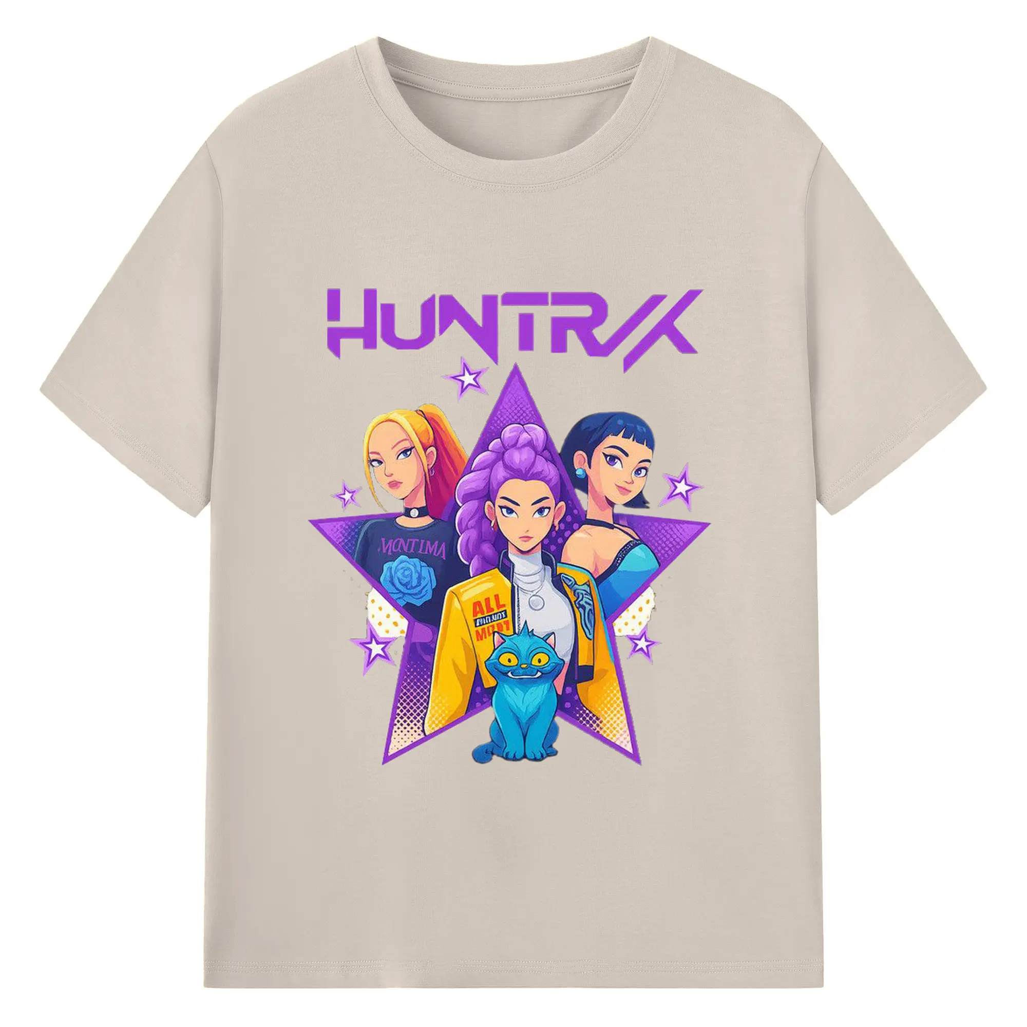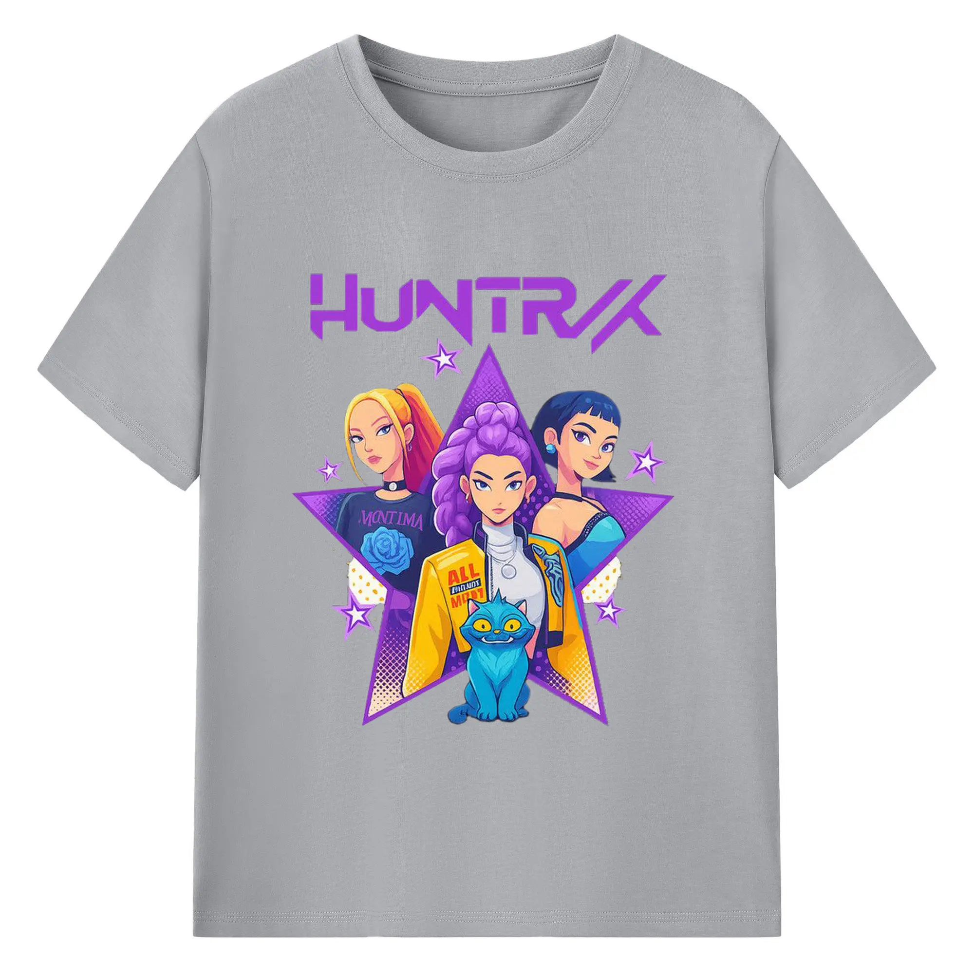 K-POP Huntrx Pop Art Girl Characters with Cat DIY Shirt - 180g Cotton T-Shirt With Front Heat Transfer Print – Soft, Lightweight, Fitted Design – Comfortable Casual Wear For Sports & Everyday Use