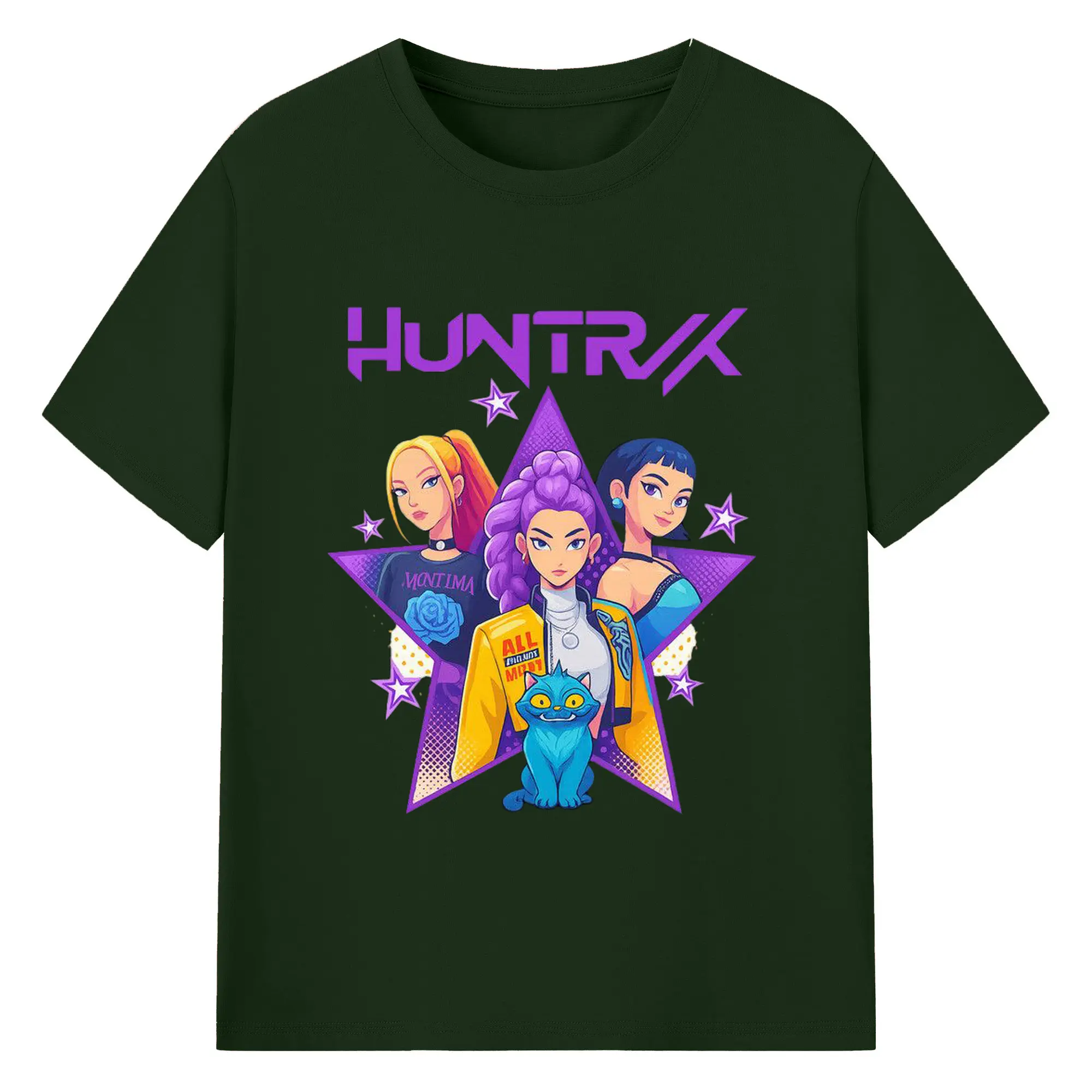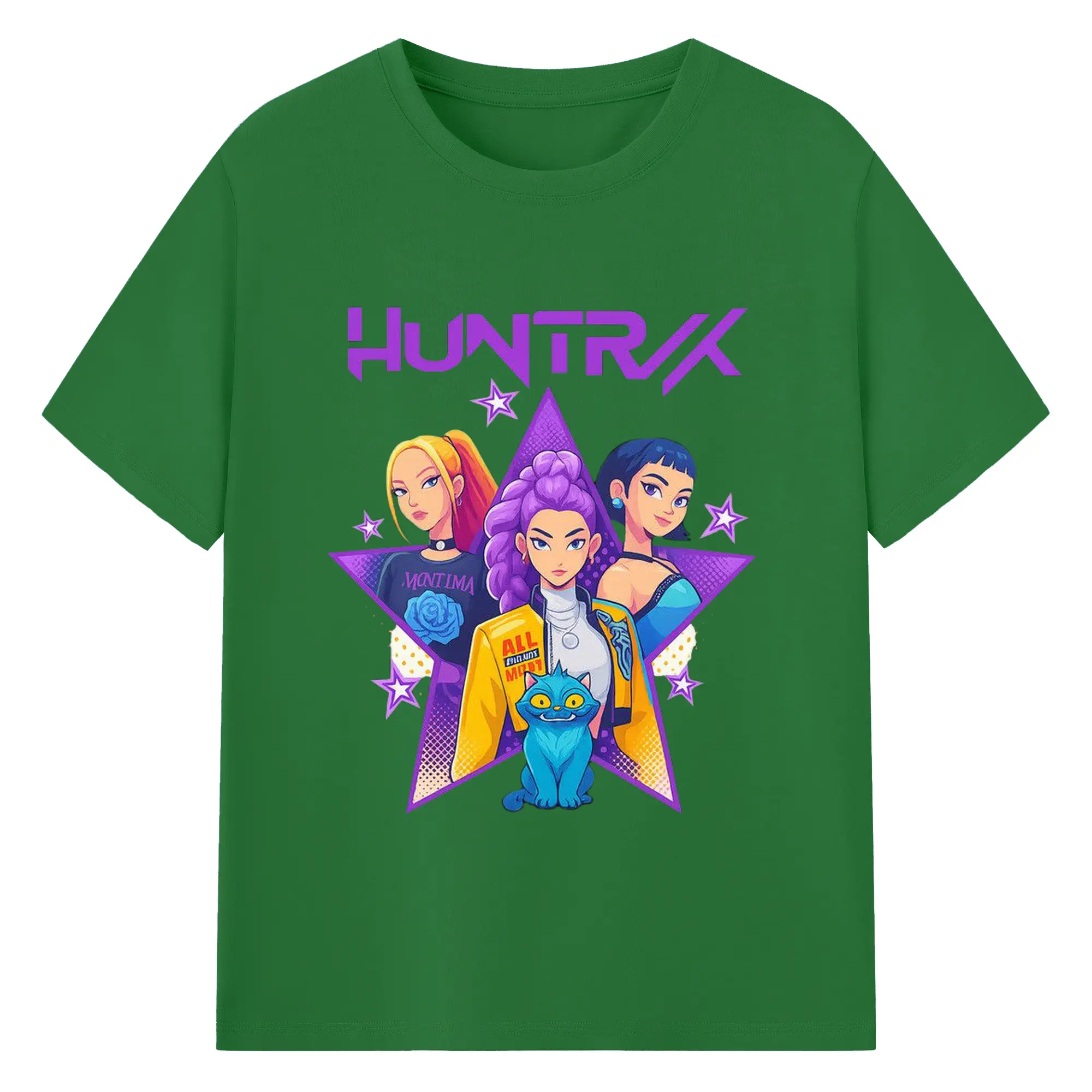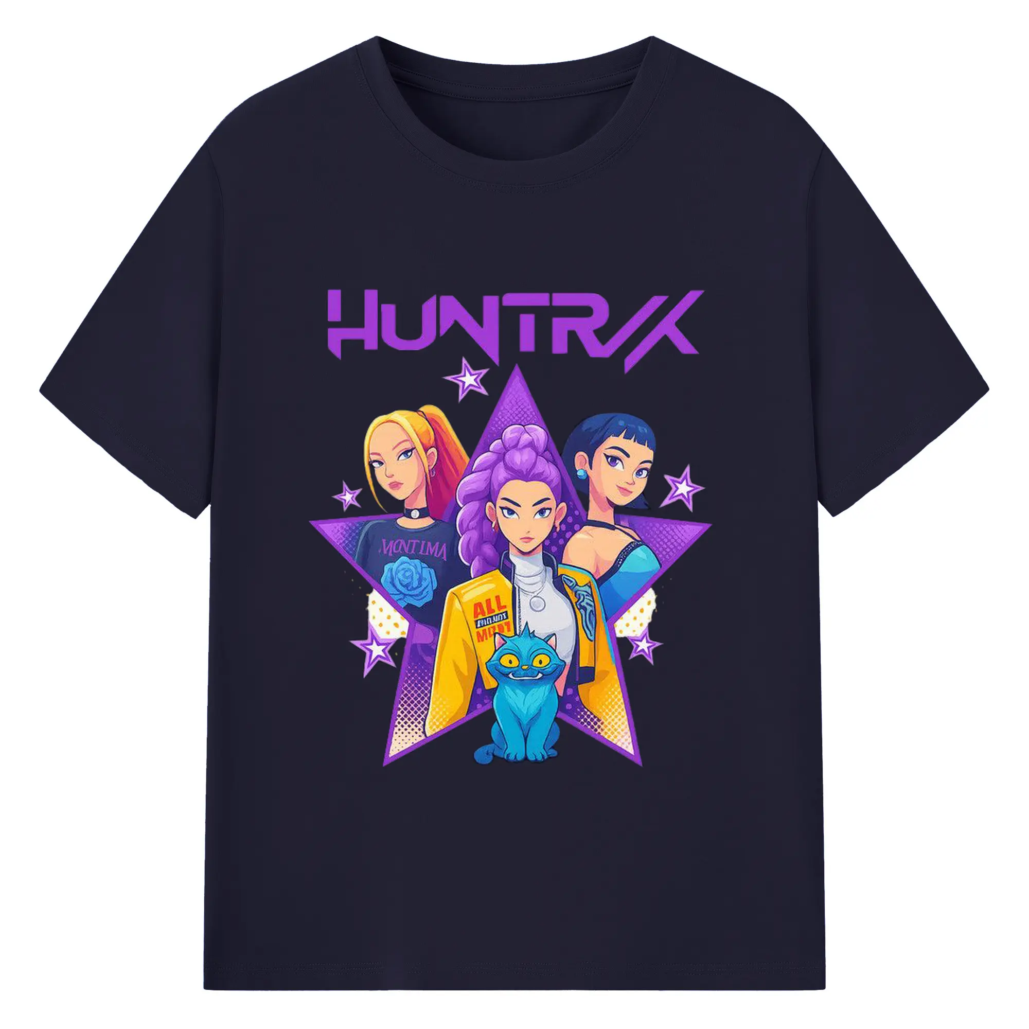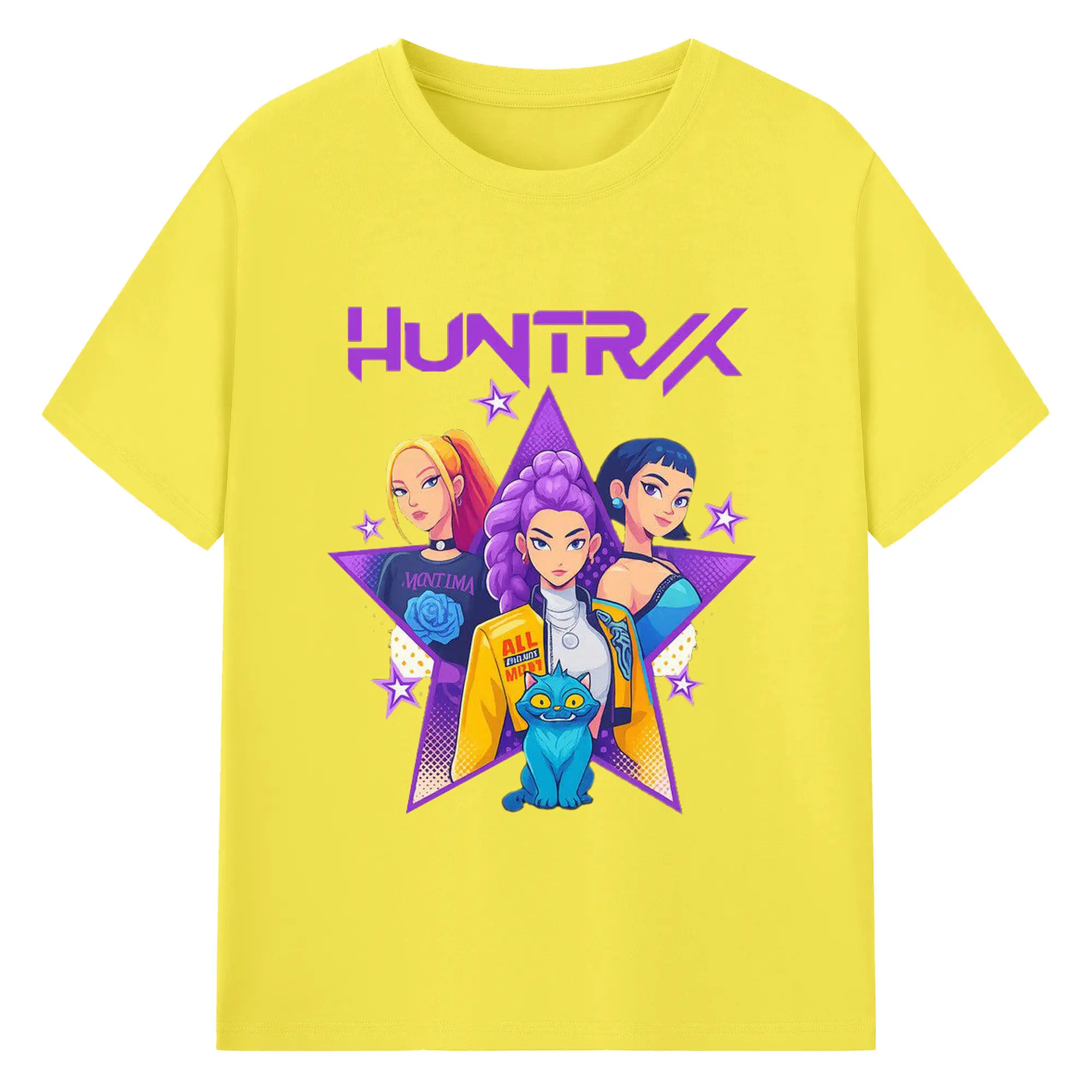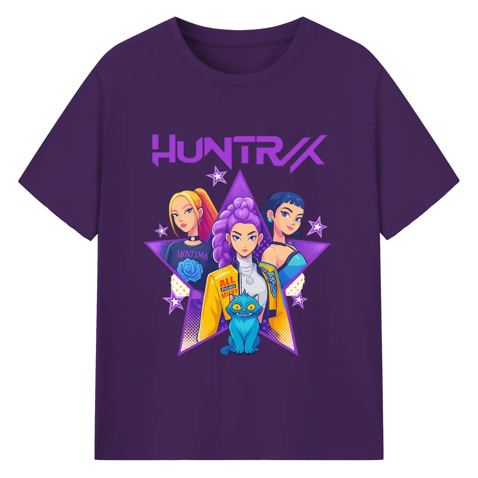K-POP Huntrx Pop Art Girl Characters with Cat DIY Shirt - 180g Cotton T-Shirt With Front Heat Transfer Print – Soft, Lightweight, Fitted Design – Comfortable Casual Wear For Sports & Everyday Use