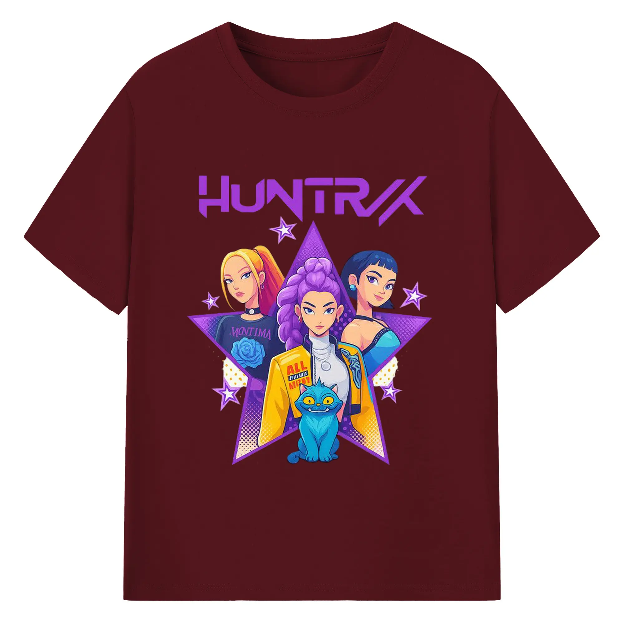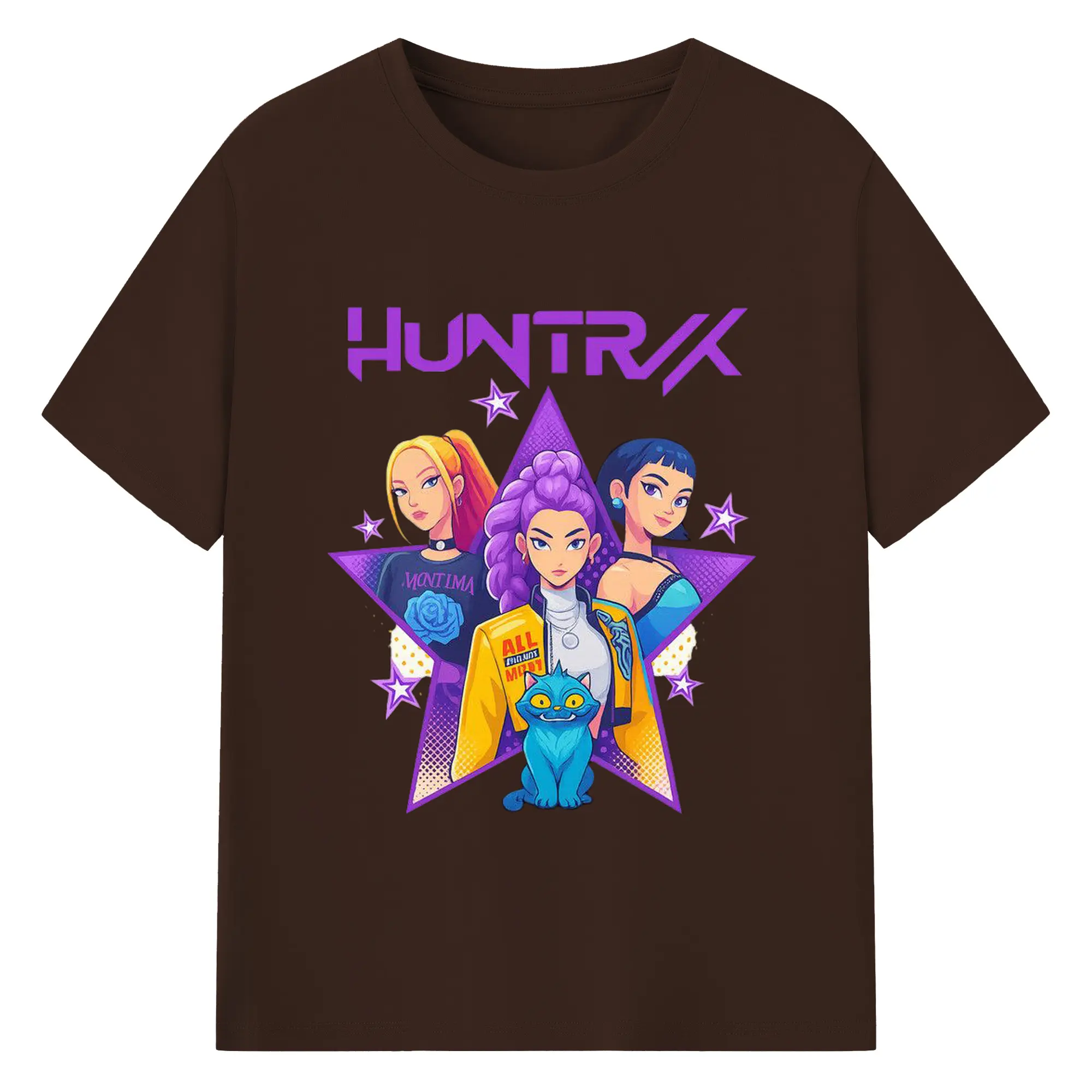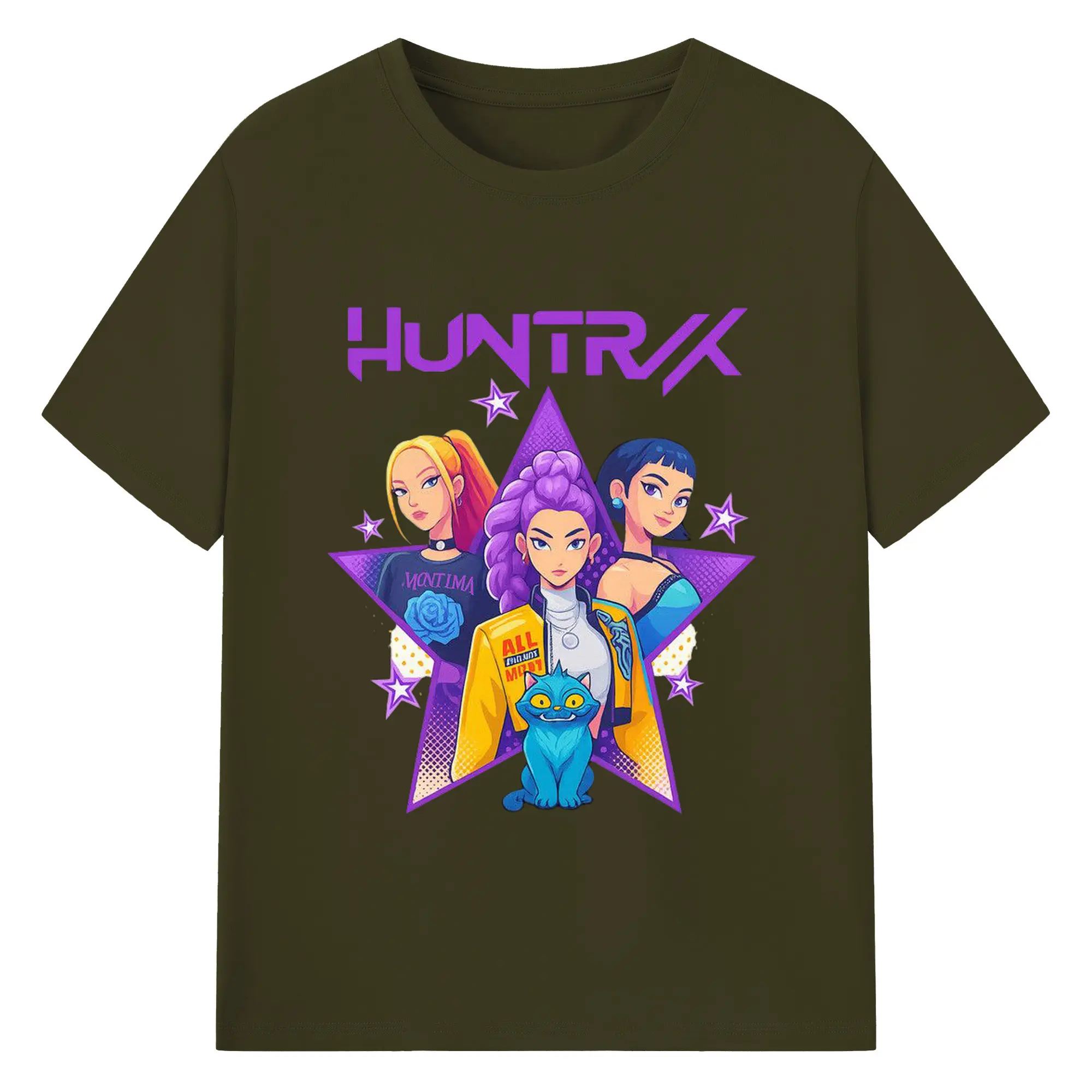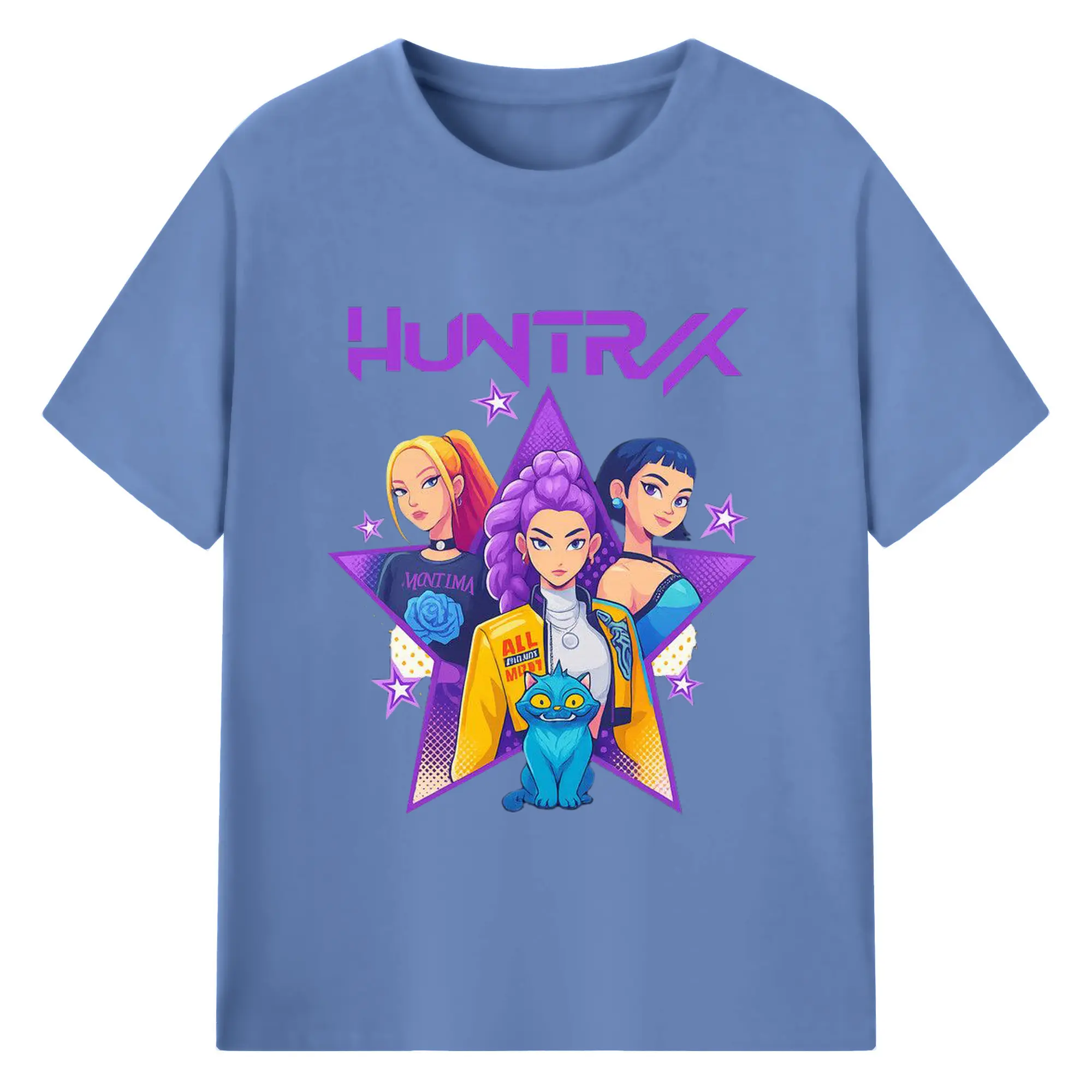 K-POP Huntrx Pop Art Girl Characters with Cat DIY Shirt - 180g Cotton T-Shirt With Front Heat Transfer Print – Soft, Lightweight, Fitted Design – Comfortable Casual Wear For Sports & Everyday Use