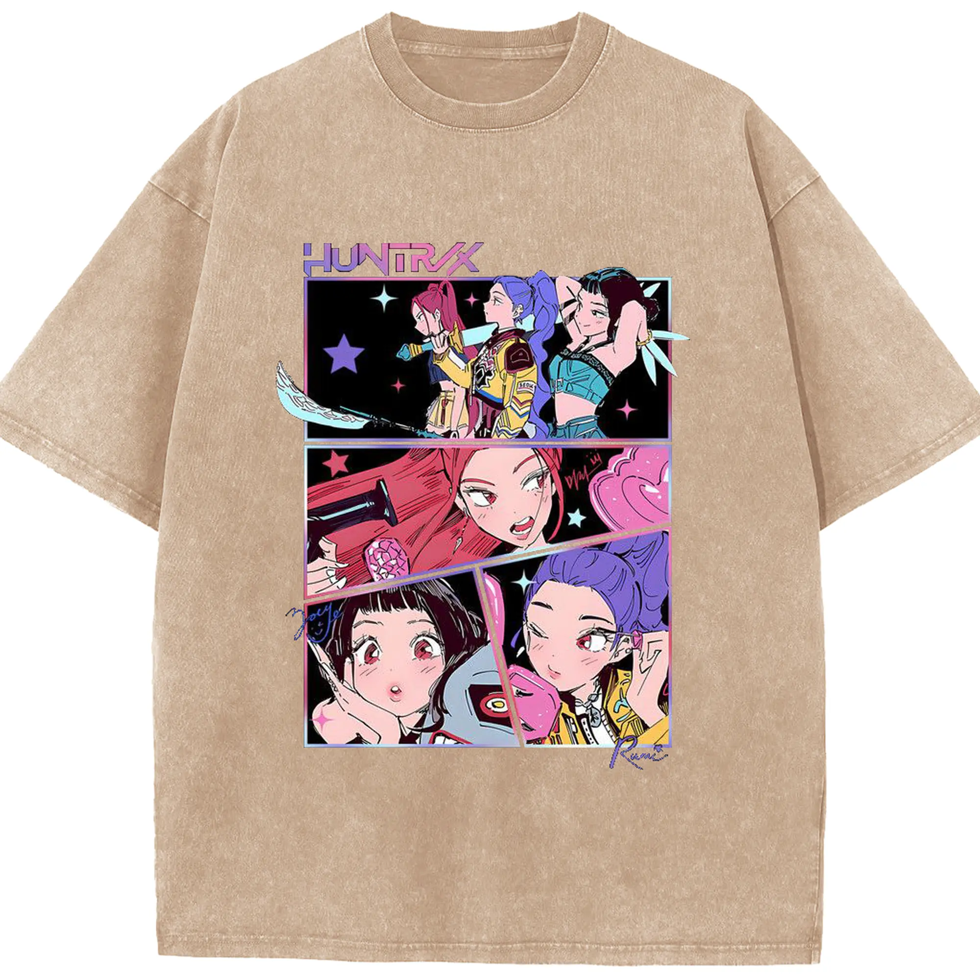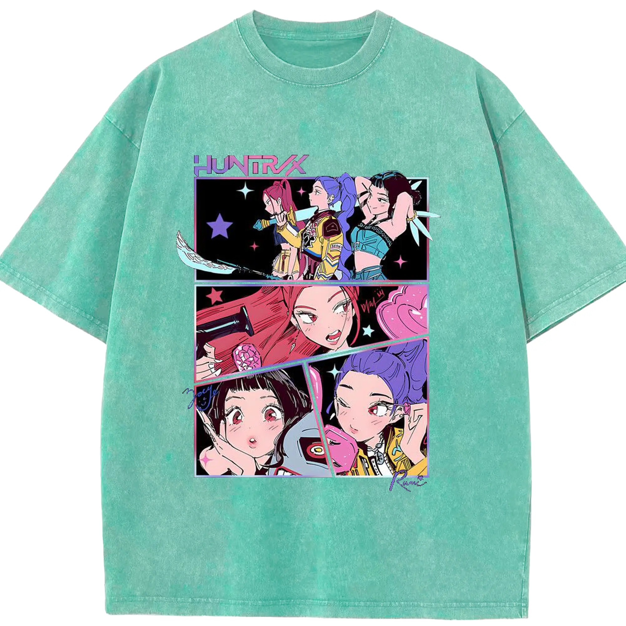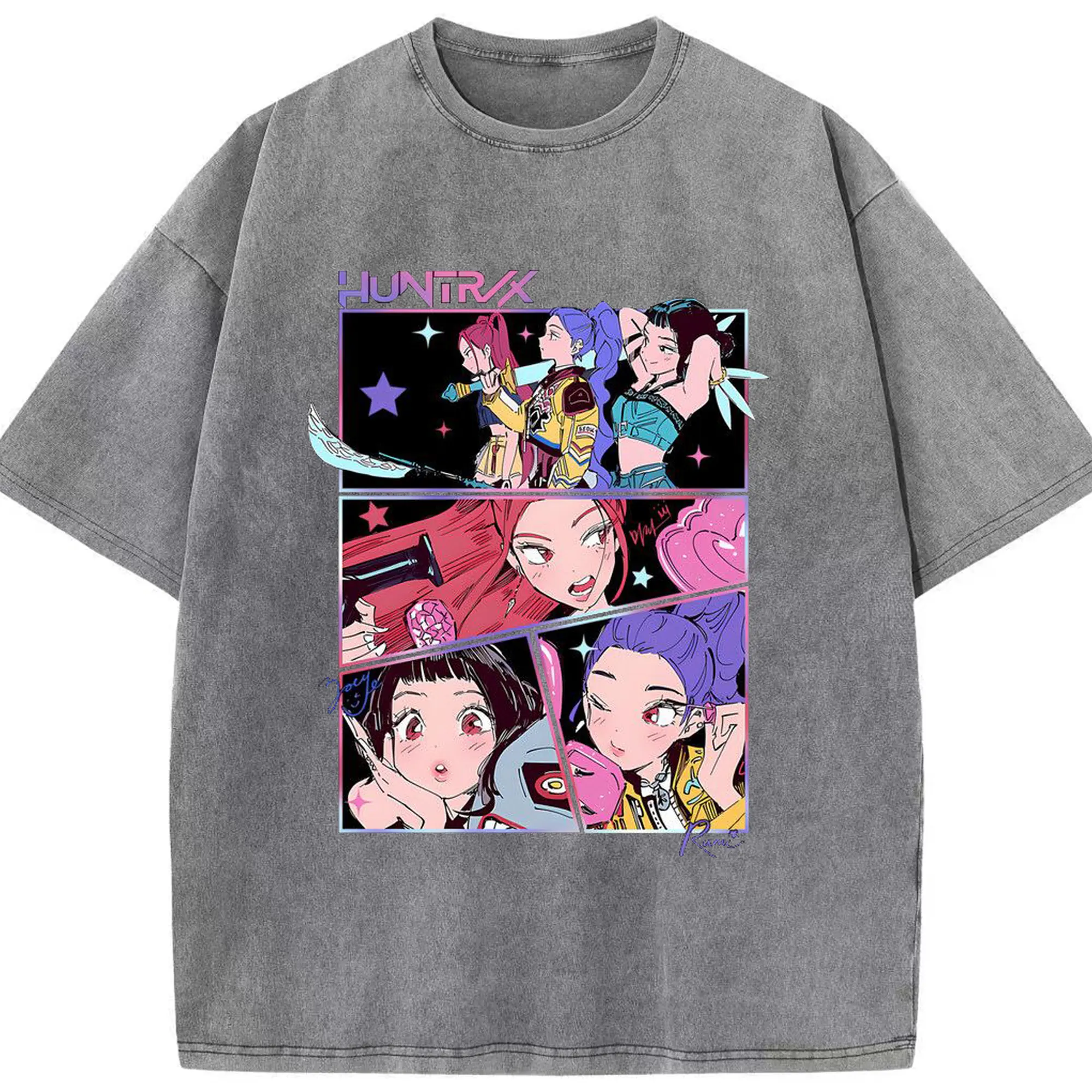 K-POP Trendy Anime Girl Group Manga-Style DIY Shirt - Washed Vintage Look 230g Cotton Oversized T-Shirt With Front Heat Transfer Print – Soft, Lightweight, Stylish Fit – Comfortable Casual Wear For Sports & Everyday Use