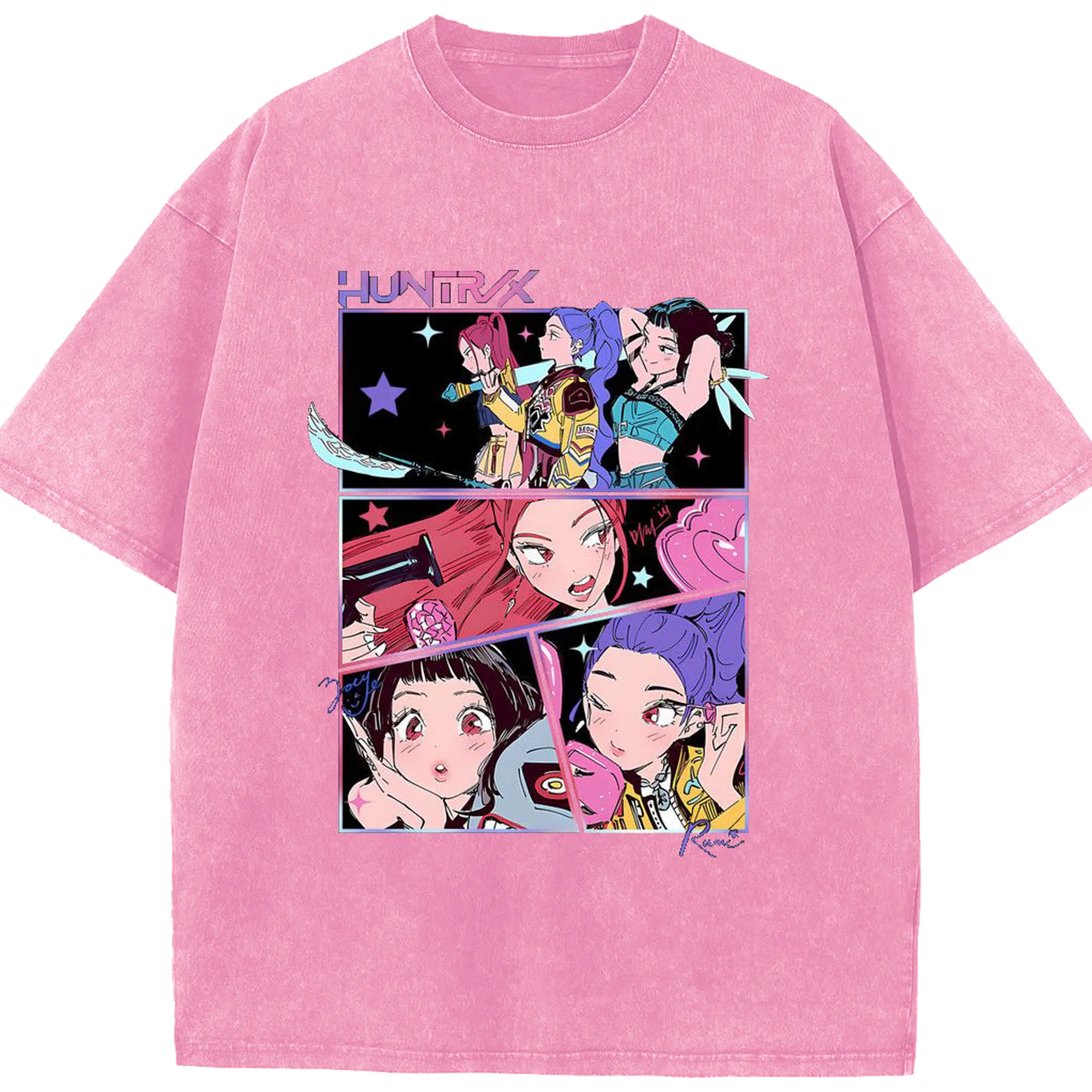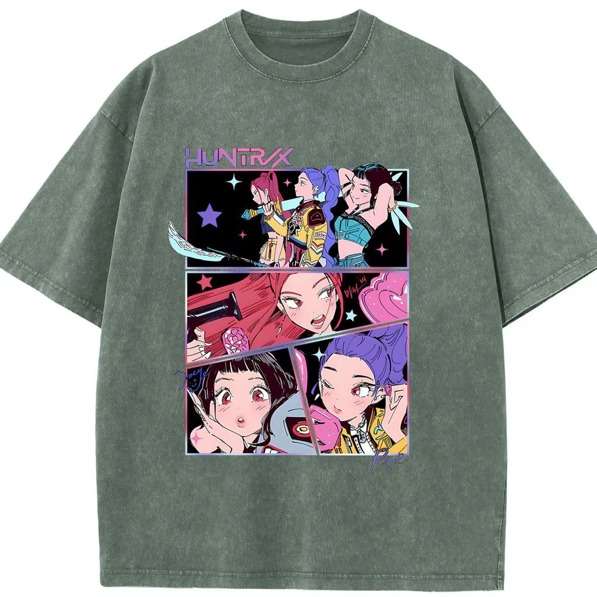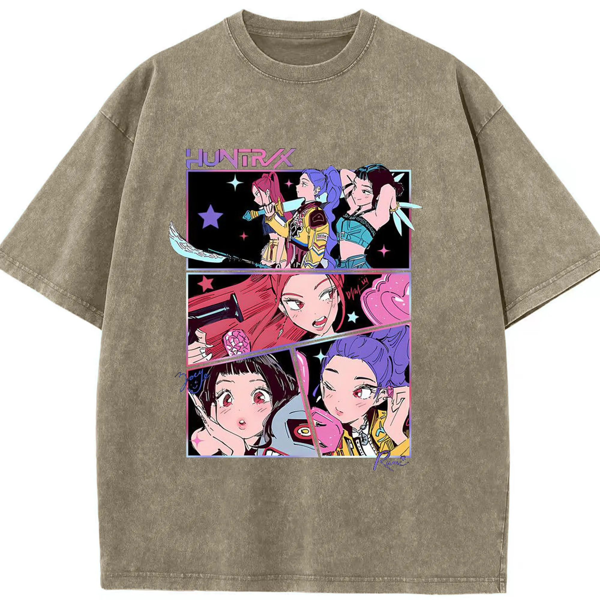 K-POP Trendy Anime Girl Group Manga-Style DIY Shirt - Washed Vintage Look 230g Cotton Oversized T-Shirt With Front Heat Transfer Print – Soft, Lightweight, Stylish Fit – Comfortable Casual Wear For Sports & Everyday Use