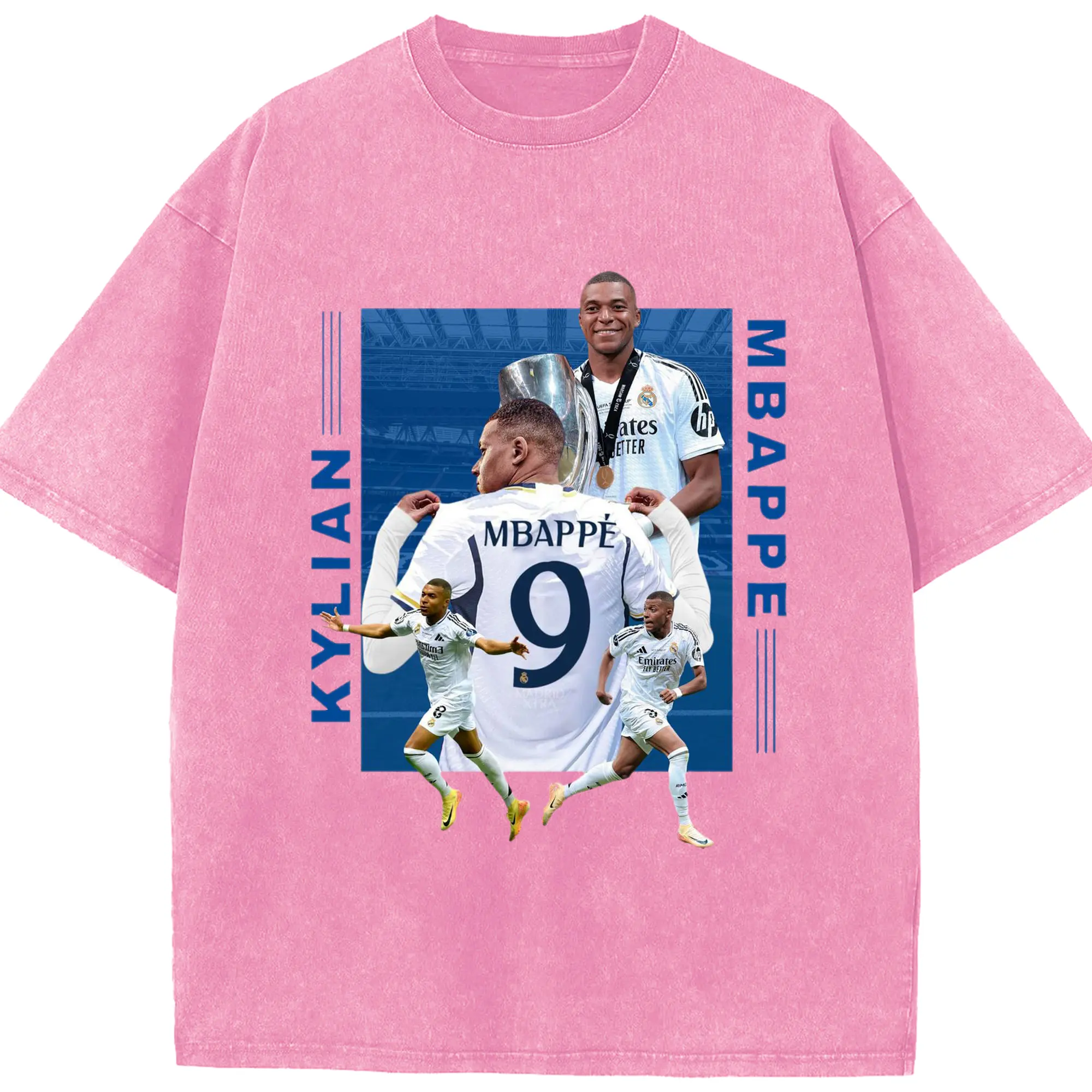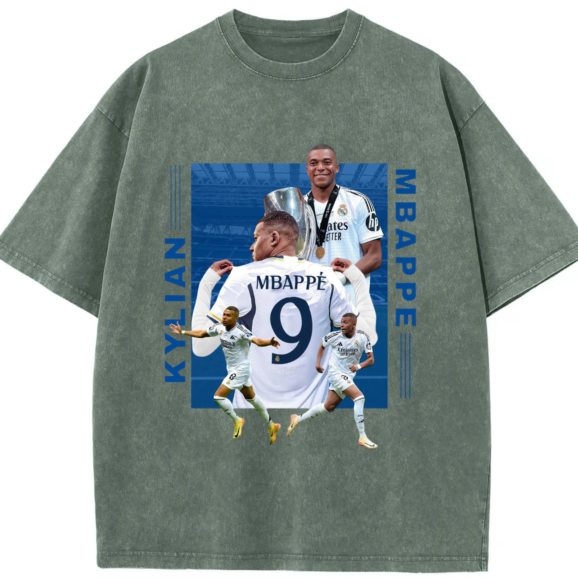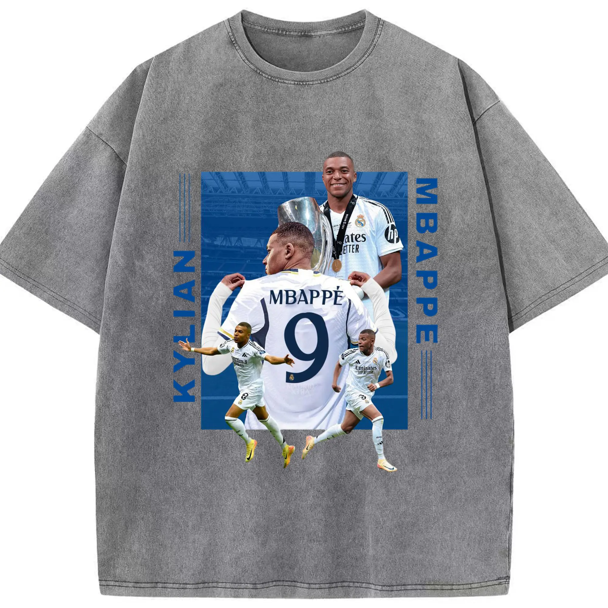 Kylian Mbappé Real Madrid Champions DIY Shirt - Washed Vintage Look 230g Cotton Oversized T-Shirt With Front Heat Transfer Print – Soft, Lightweight, Stylish Fit – Comfortable Casual Wear For Sports & Everyday Use