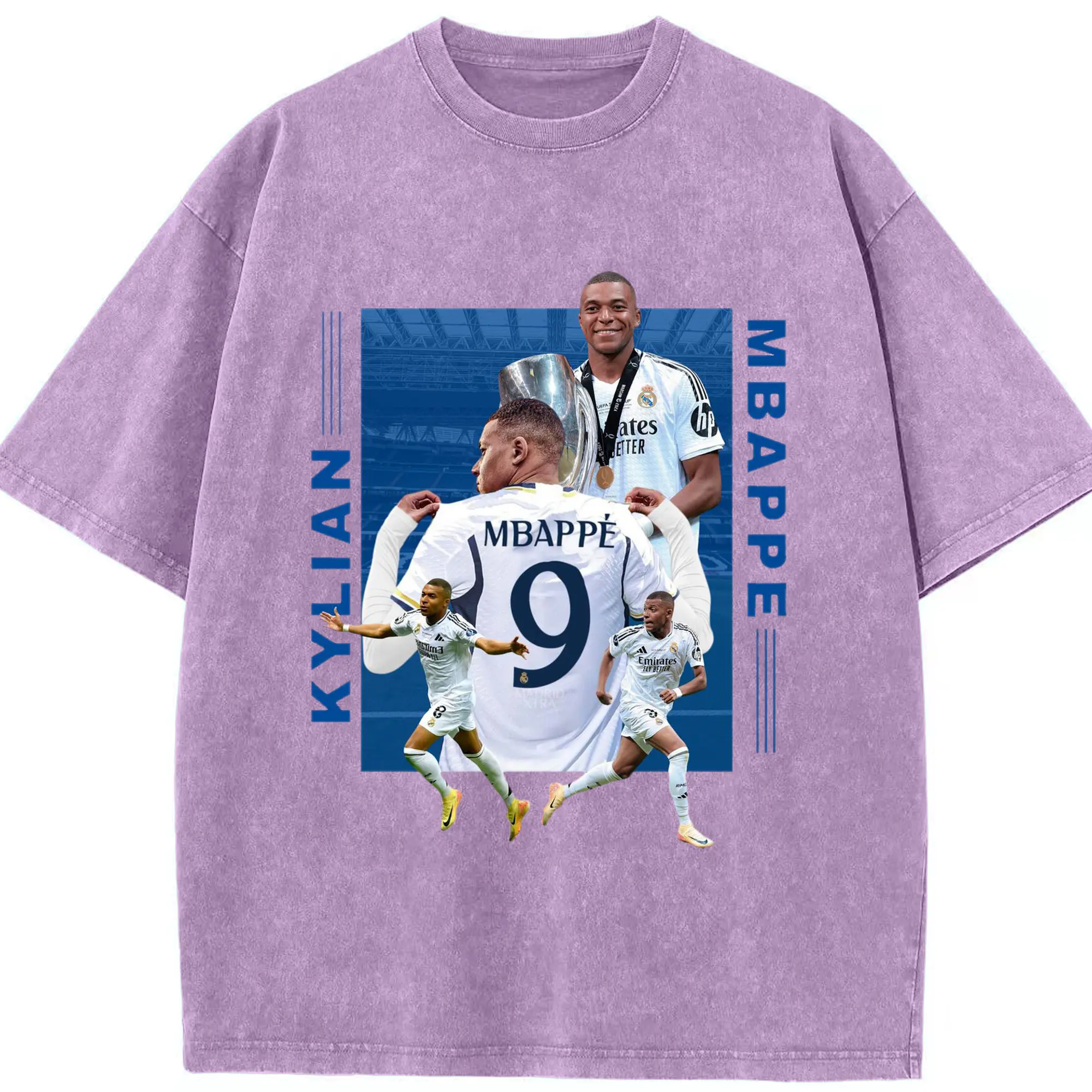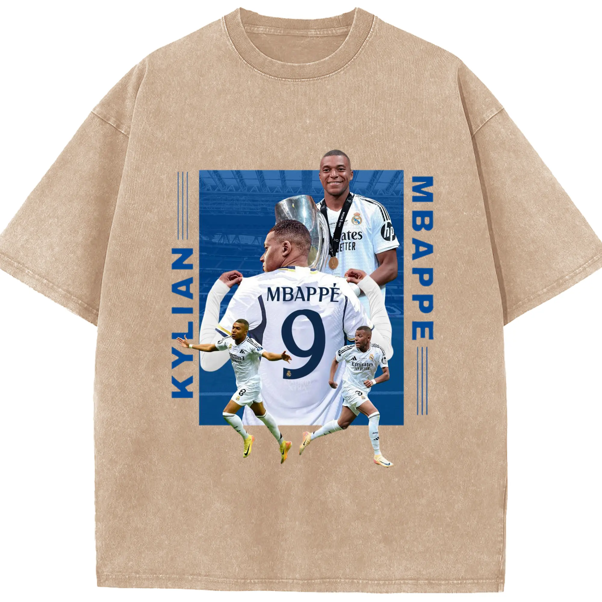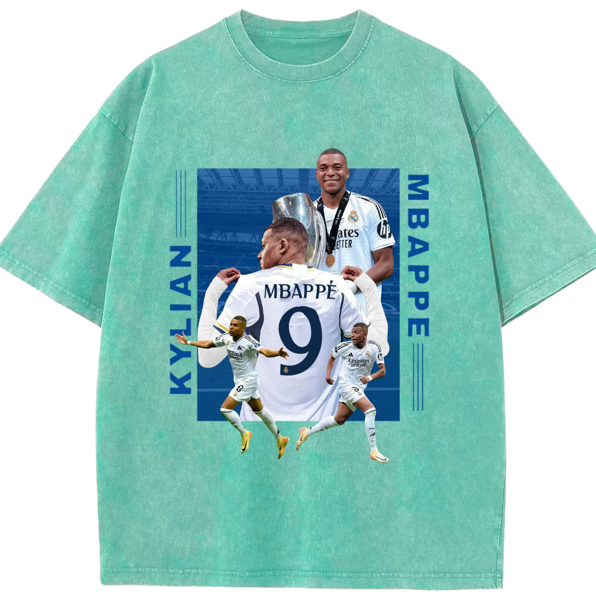 Kylian Mbappé Real Madrid Champions DIY Shirt - Washed Vintage Look 230g Cotton Oversized T-Shirt With Front Heat Transfer Print – Soft, Lightweight, Stylish Fit – Comfortable Casual Wear For Sports & Everyday Use