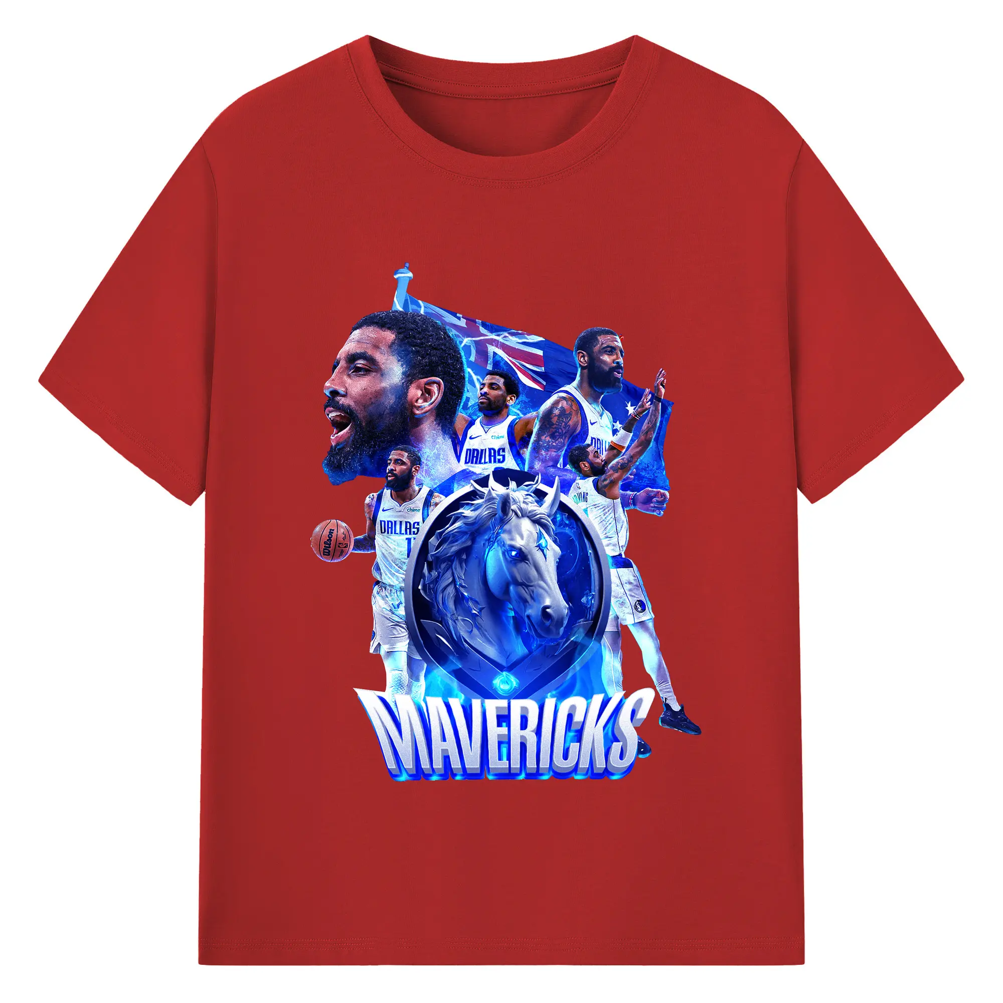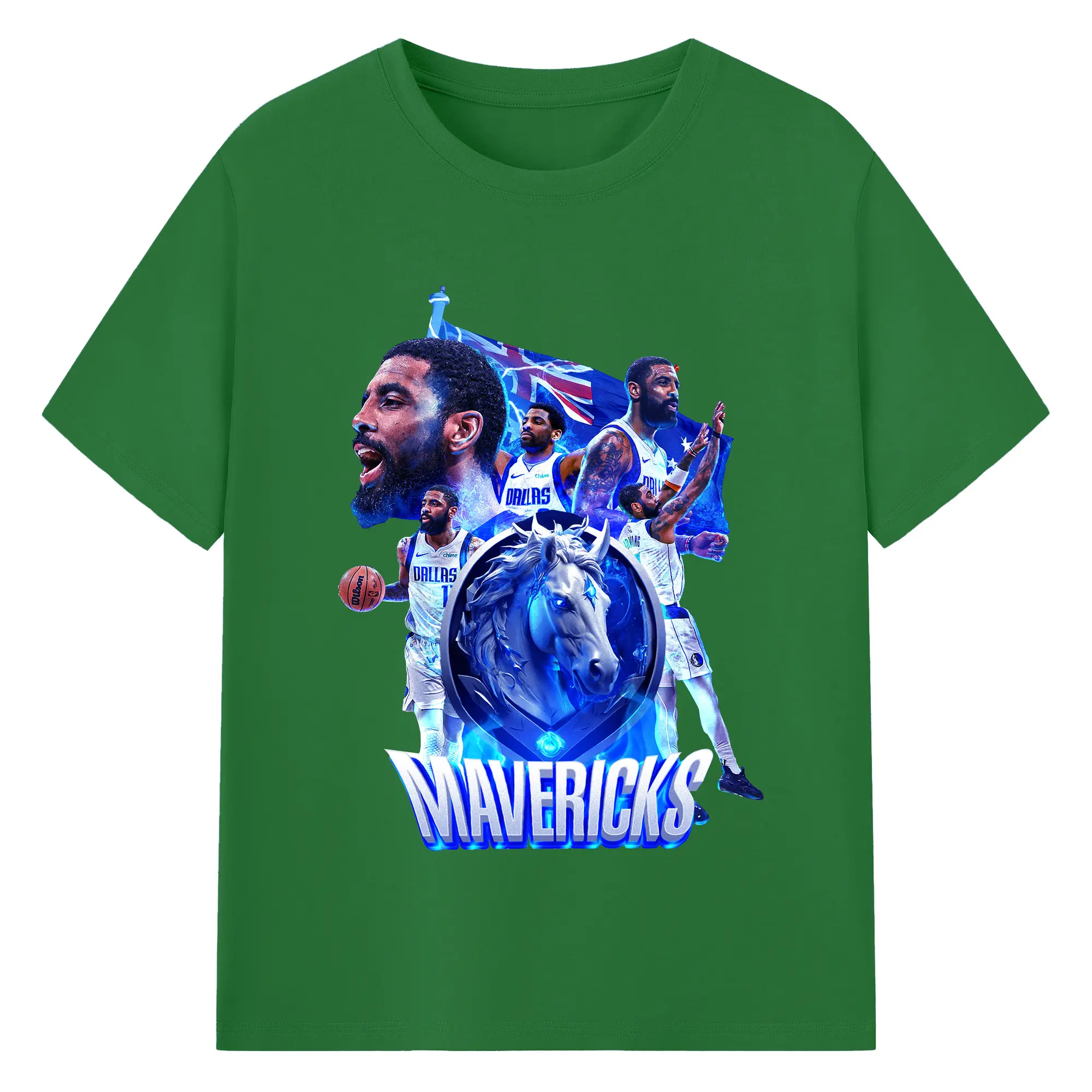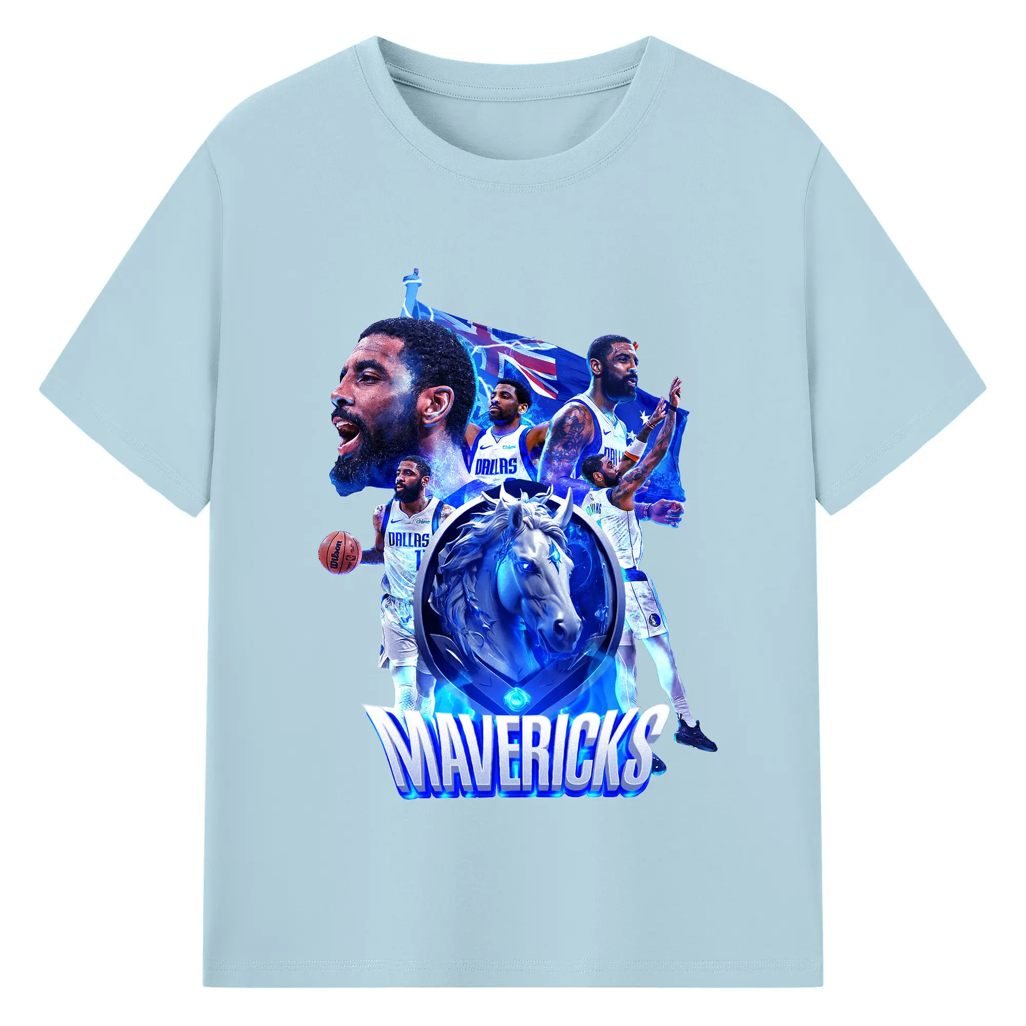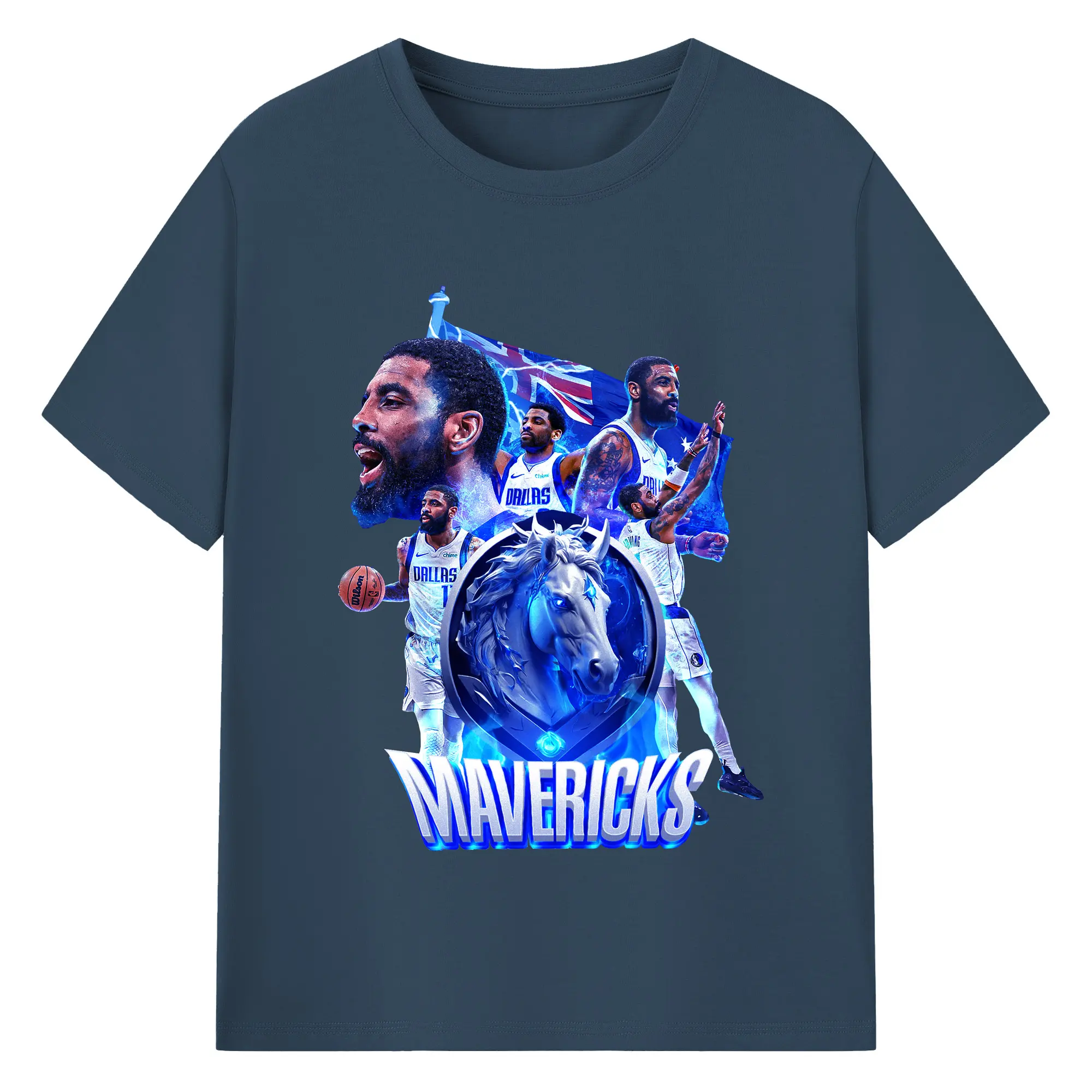 Kyrie Irving Dallas Mavericks 3D team logo POP Shirt - 180g Cotton T-Shirt With Front Heat Transfer Print – Soft, Lightweight, Fitted Design – Comfortable Casual Wear For Sports & Everyday Use