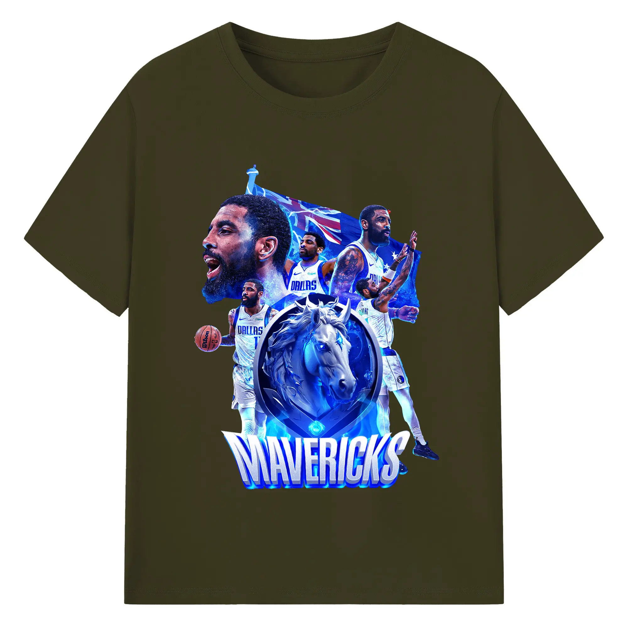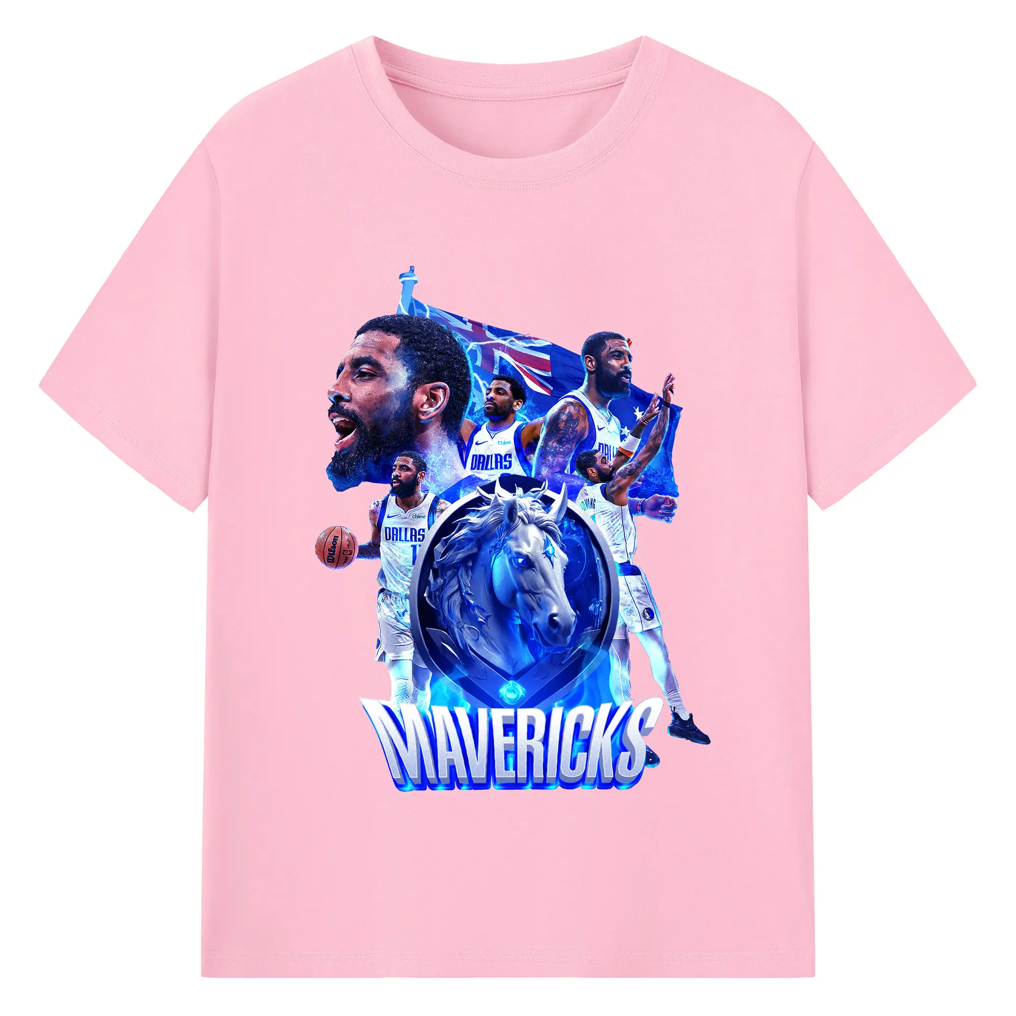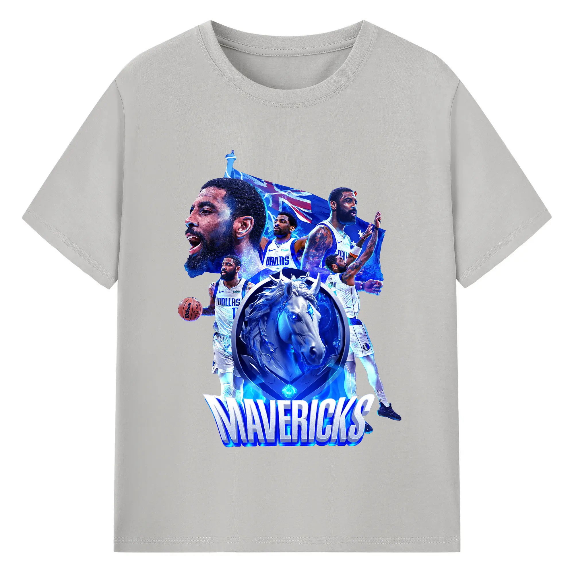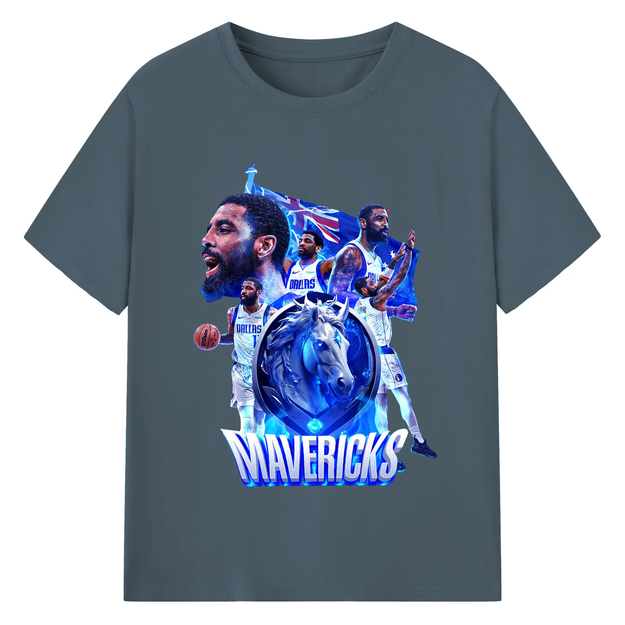 Kyrie Irving Dallas Mavericks 3D team logo POP Shirt - 180g Cotton T-Shirt With Front Heat Transfer Print – Soft, Lightweight, Fitted Design – Comfortable Casual Wear For Sports & Everyday Use