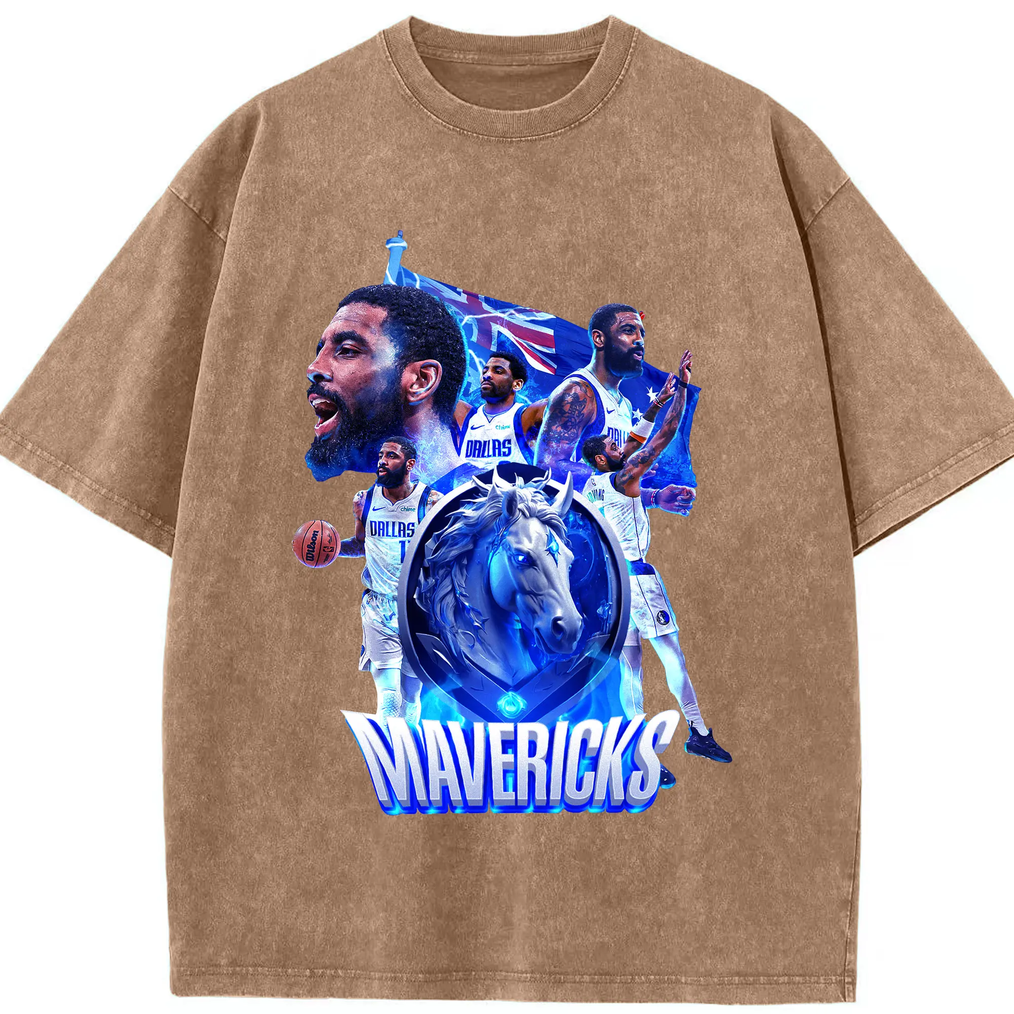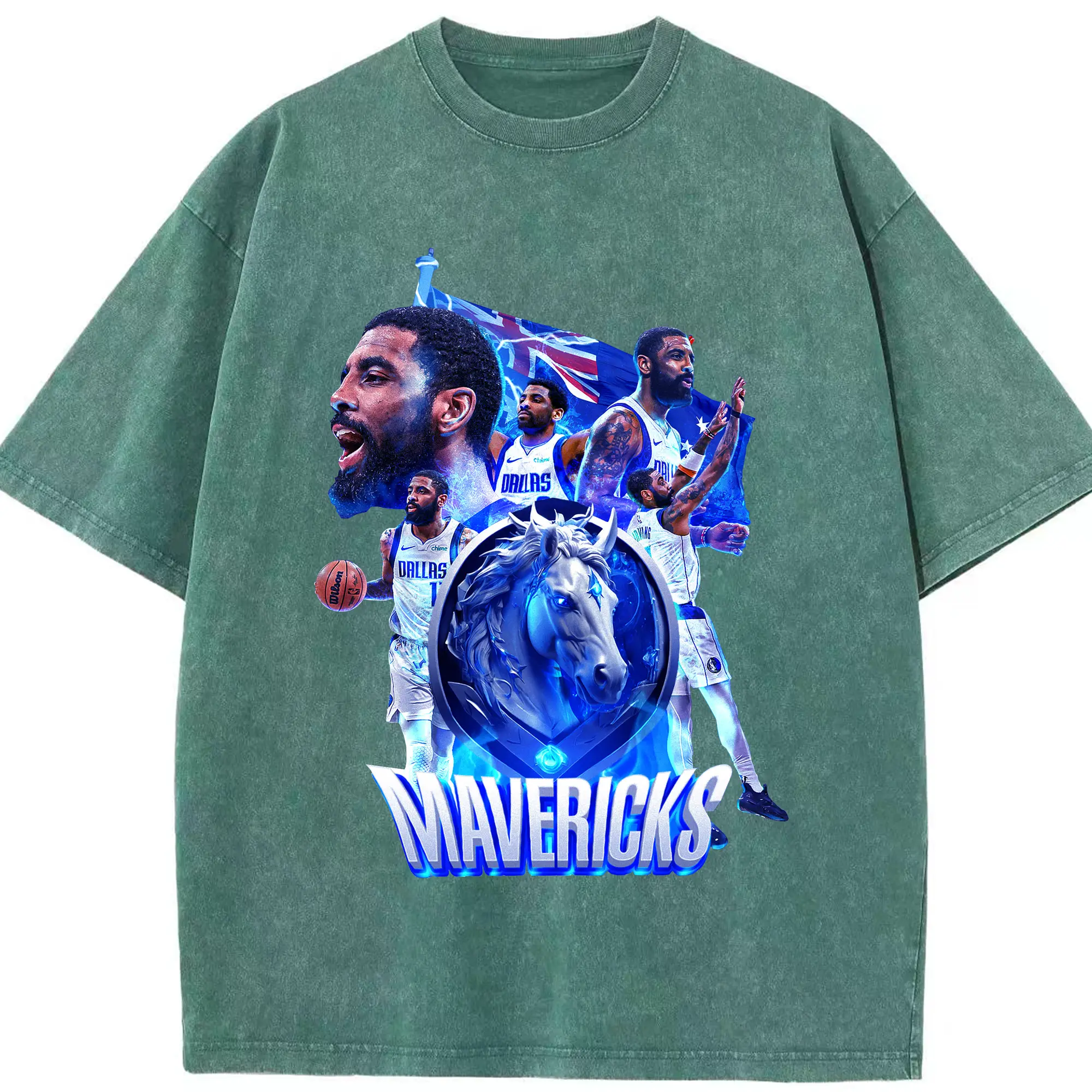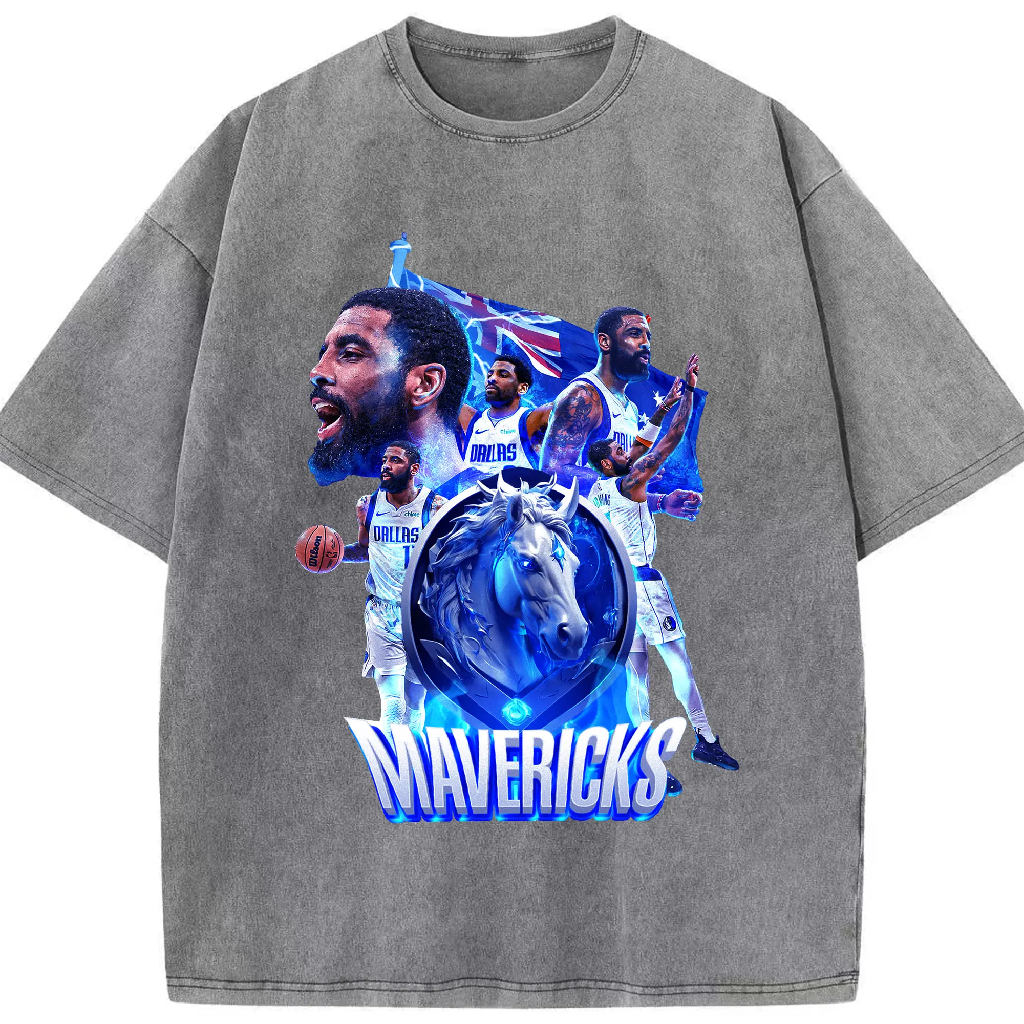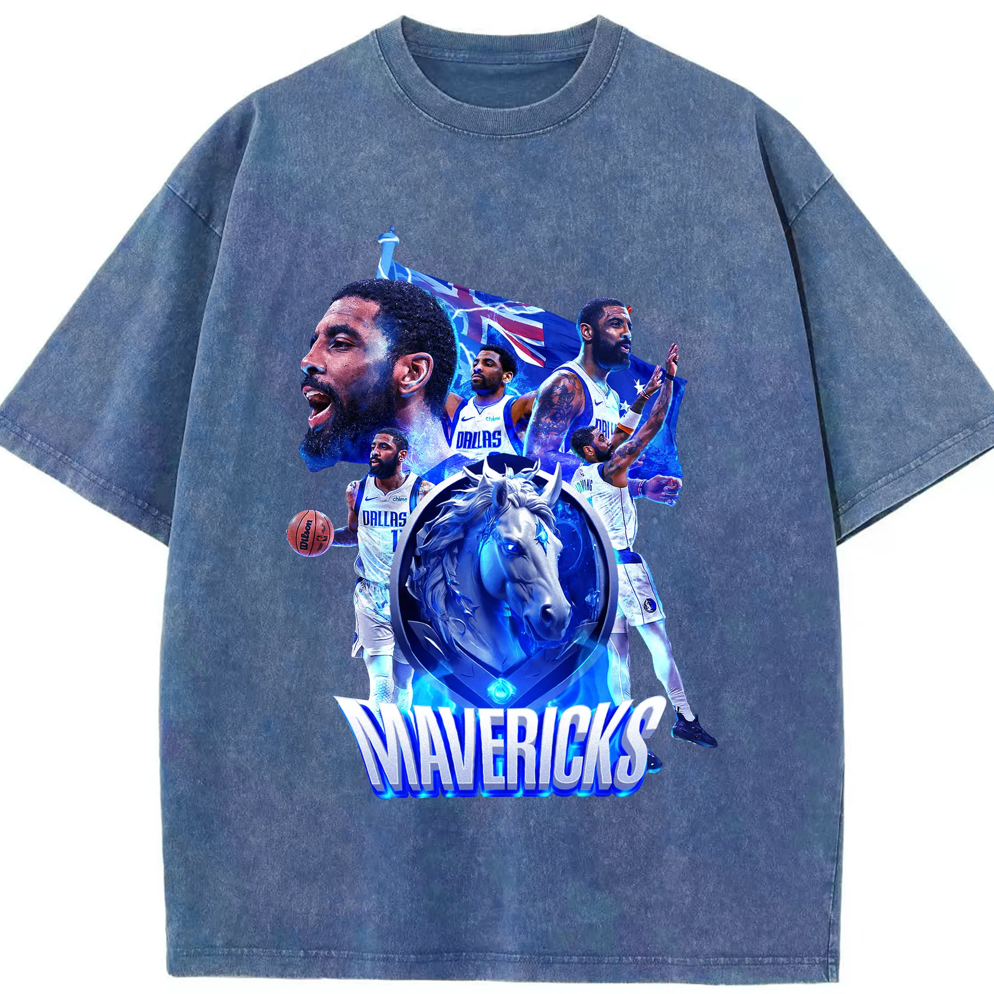 Kyrie Irving Dallas Mavericks 3D team logo POP Shirt - Washed Vintage Look 230g Cotton Oversized T-Shirt With Front Heat Transfer Print – Soft, Lightweight, Stylish Fit – Comfortable Casual Wear For Sports & Everyday Use
