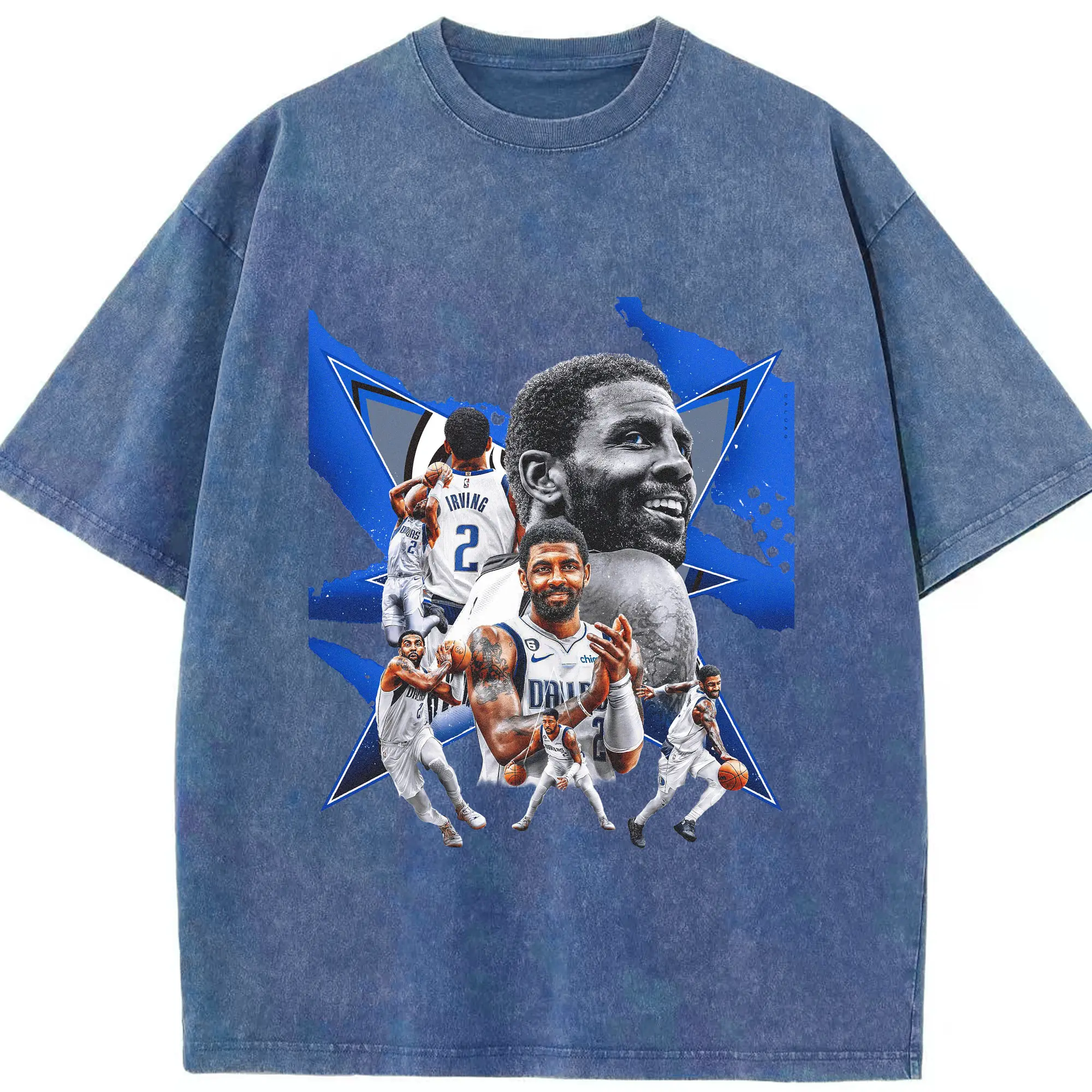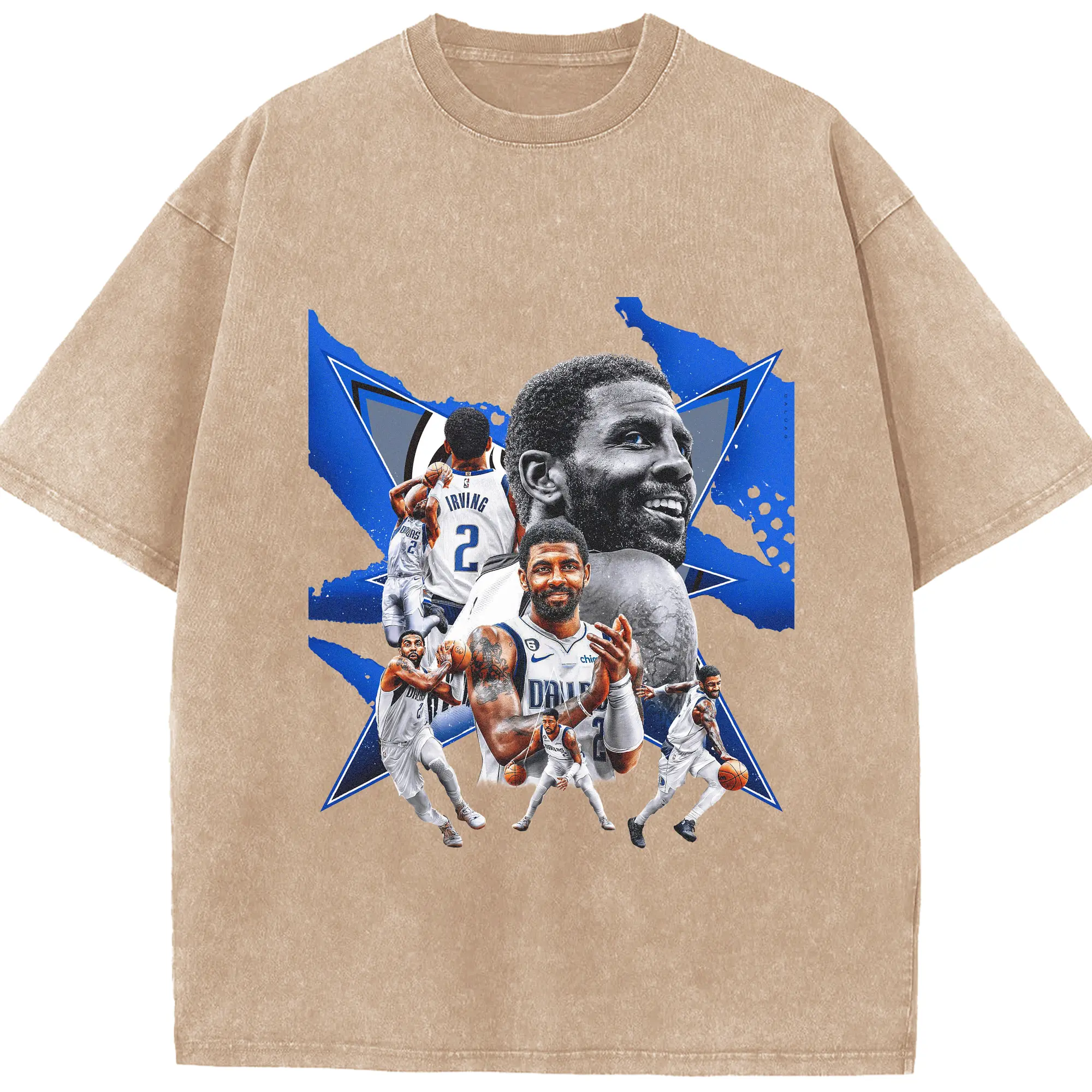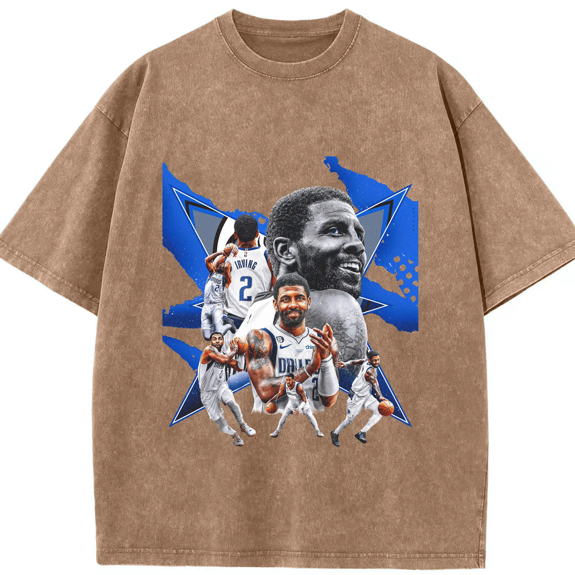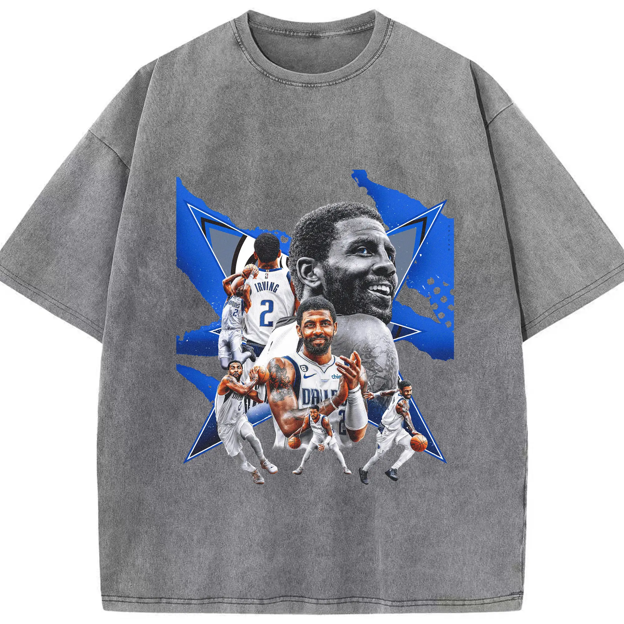 Kyrie Irving Dallas Mavericks Dynamic Basketball Shirt - Washed Vintage Look 230g Cotton Oversized T-Shirt With Front Heat Transfer Print – Soft, Lightweight, Stylish Fit – Comfortable Casual Wear For Sports & Everyday Use