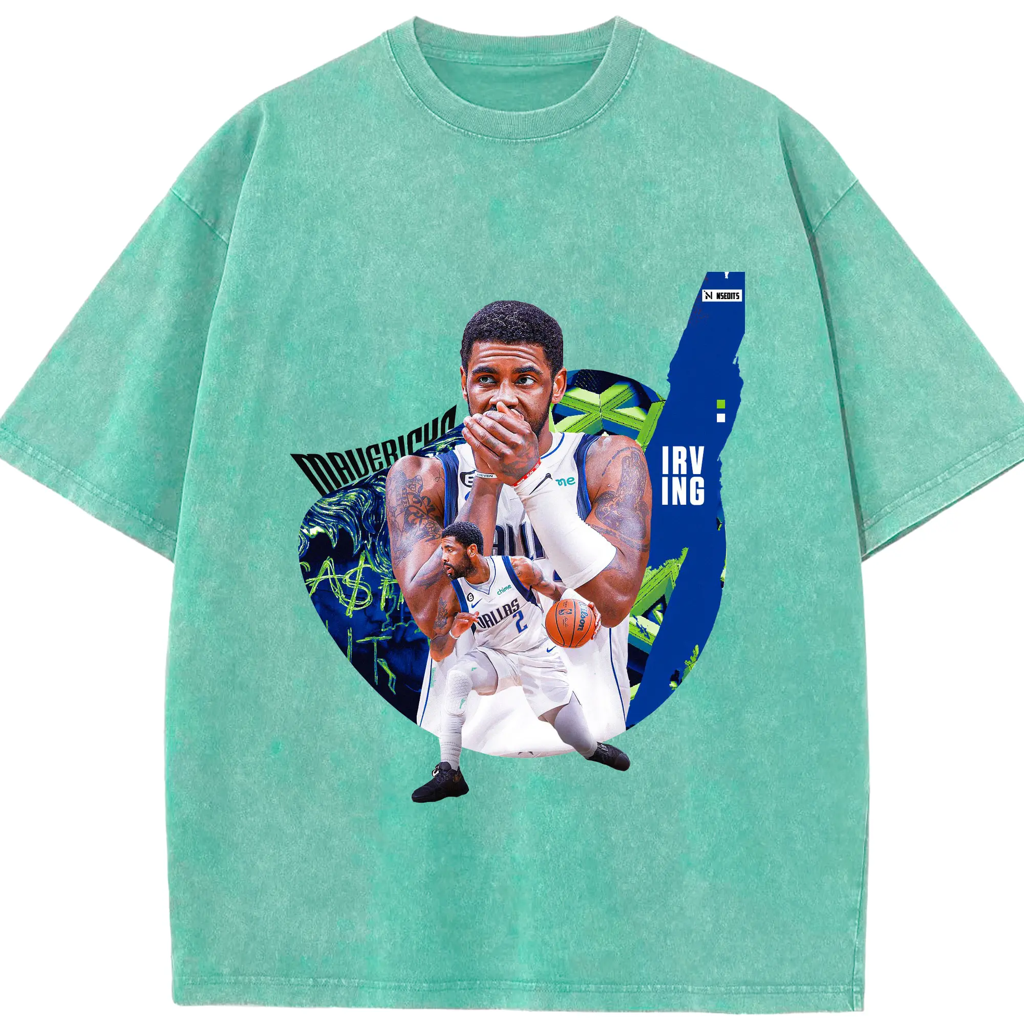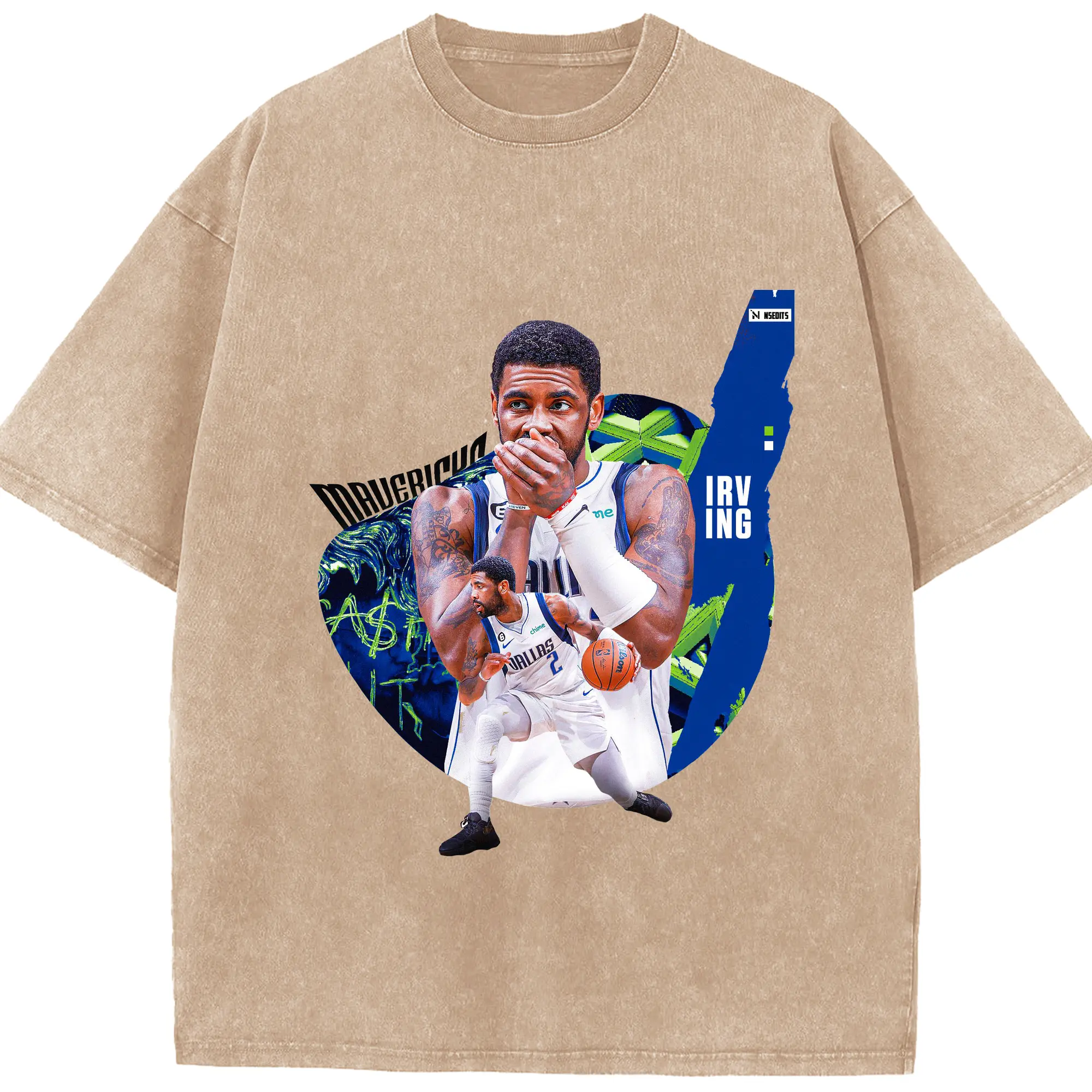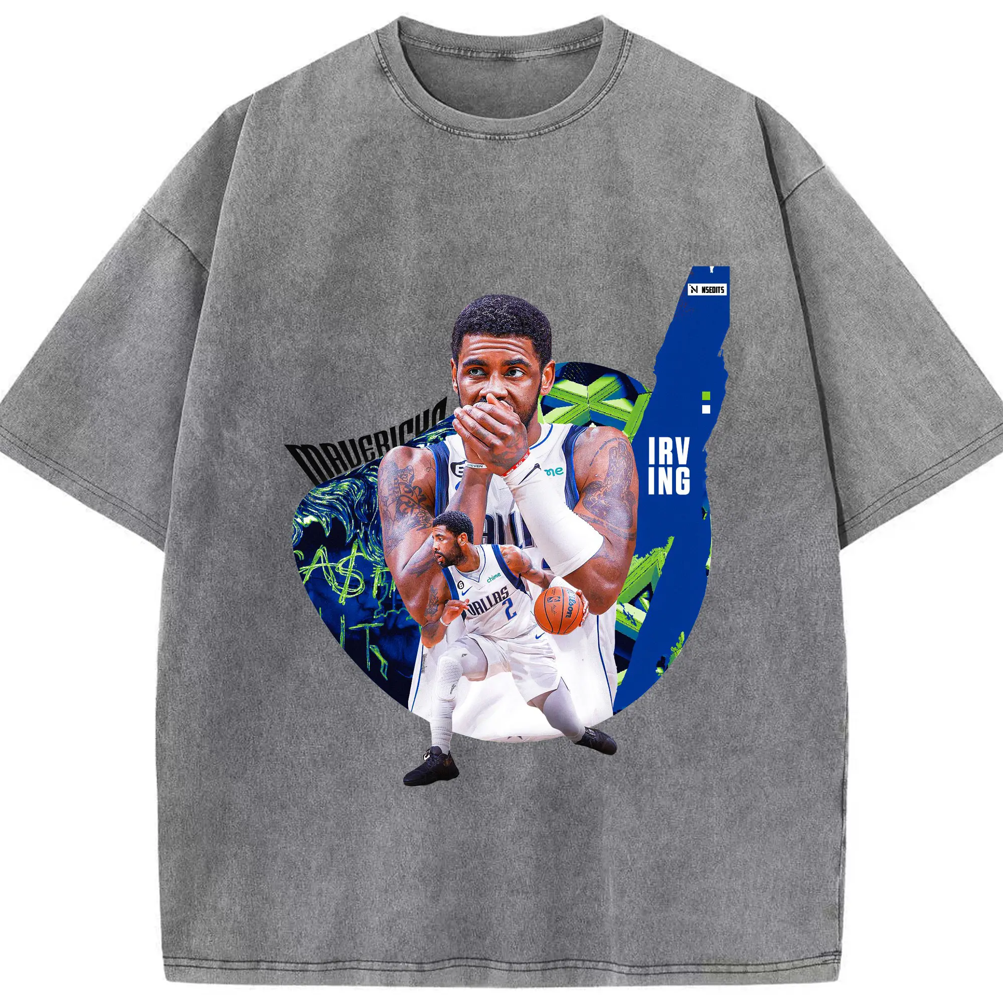 Kyrie Irving Dallas Mavericks Graphic - Washed Vintage Look 230g Cotton Oversized T-Shirt With Front Heat Transfer Print – Soft, Lightweight, Stylish Fit – Comfortable Casual Wear For Sports & Everyday Use