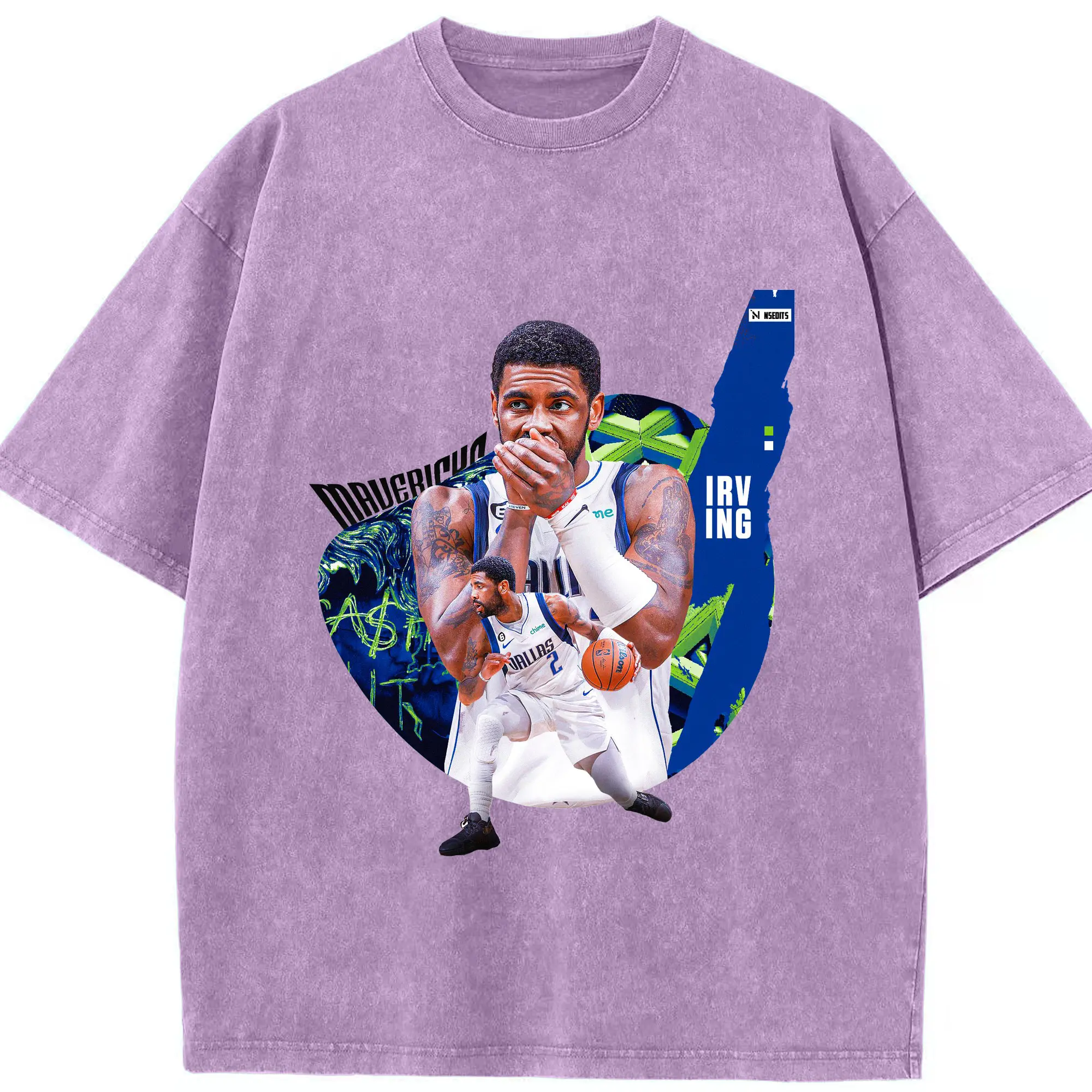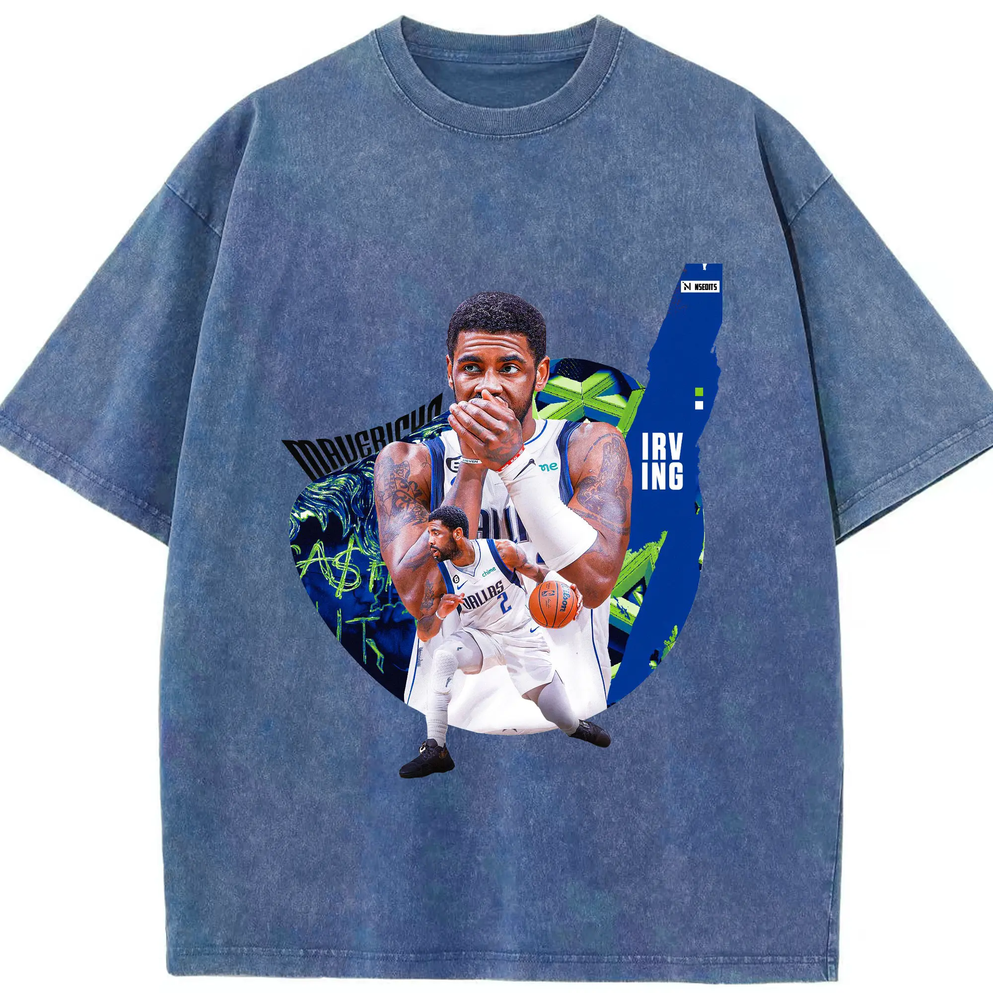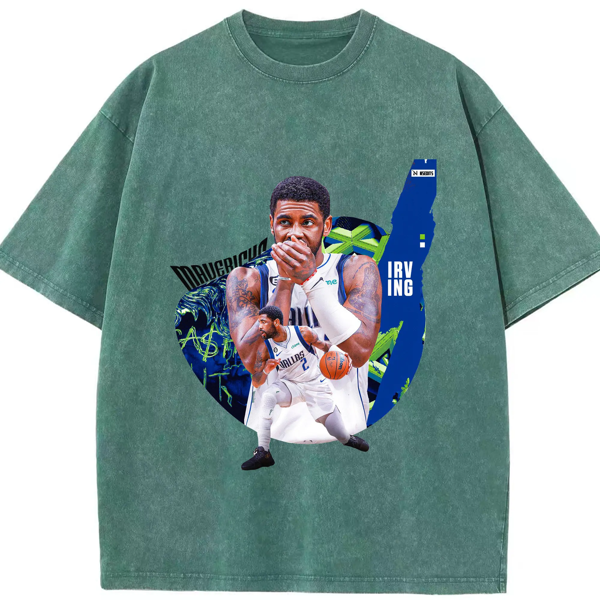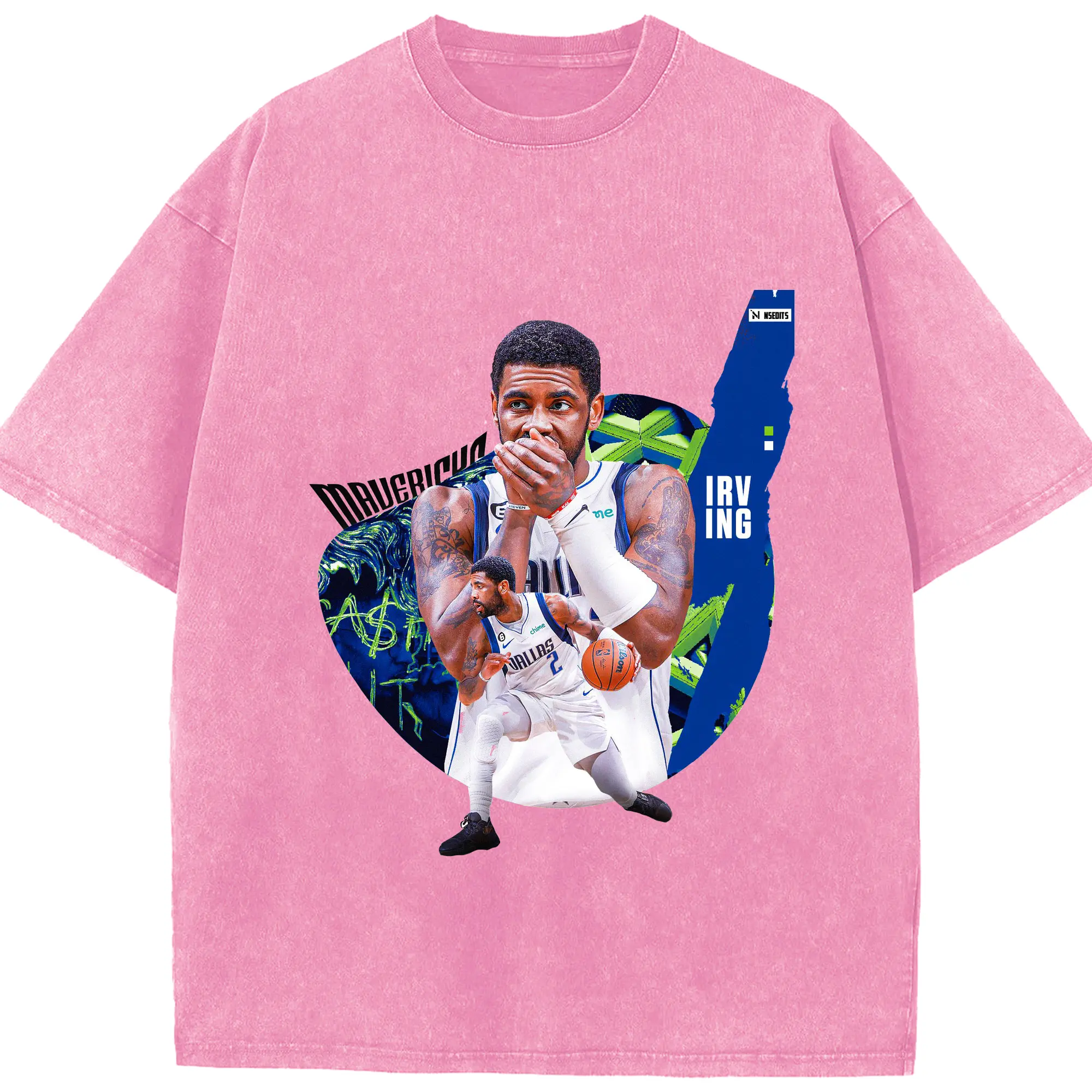 Kyrie Irving Dallas Mavericks Graphic - Washed Vintage Look 230g Cotton Oversized T-Shirt With Front Heat Transfer Print – Soft, Lightweight, Stylish Fit – Comfortable Casual Wear For Sports & Everyday Use