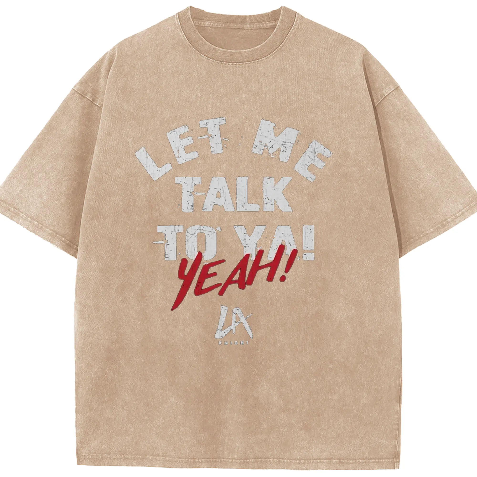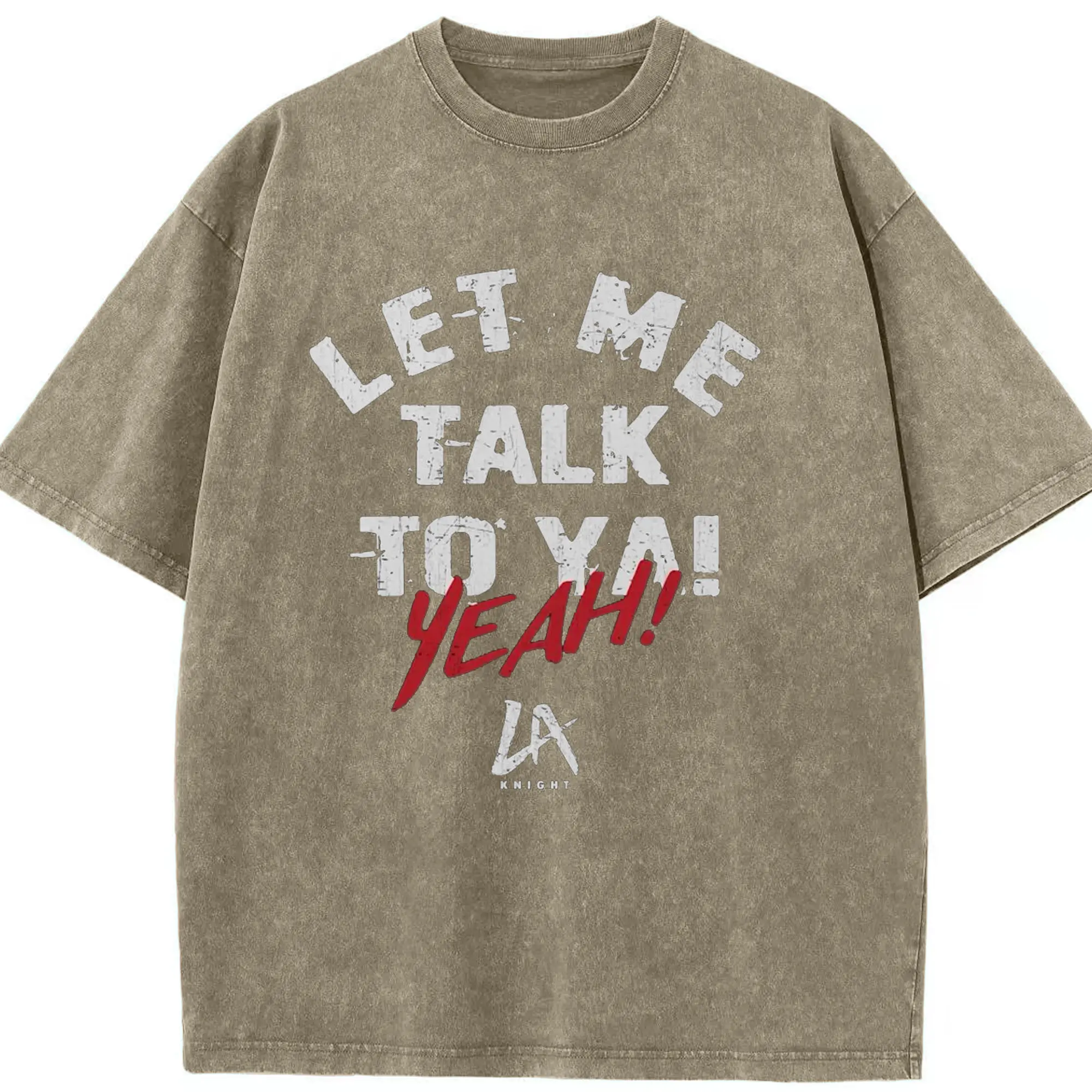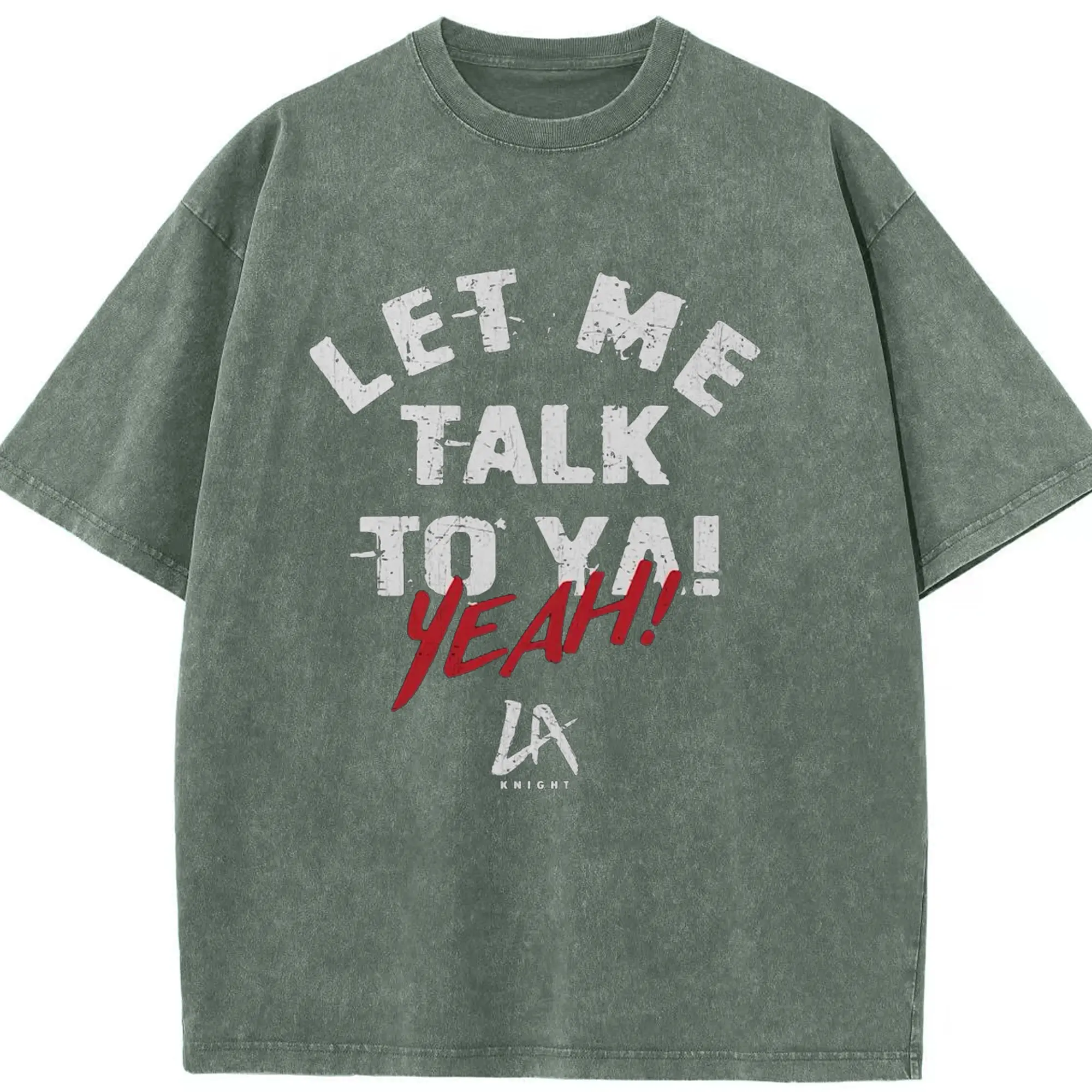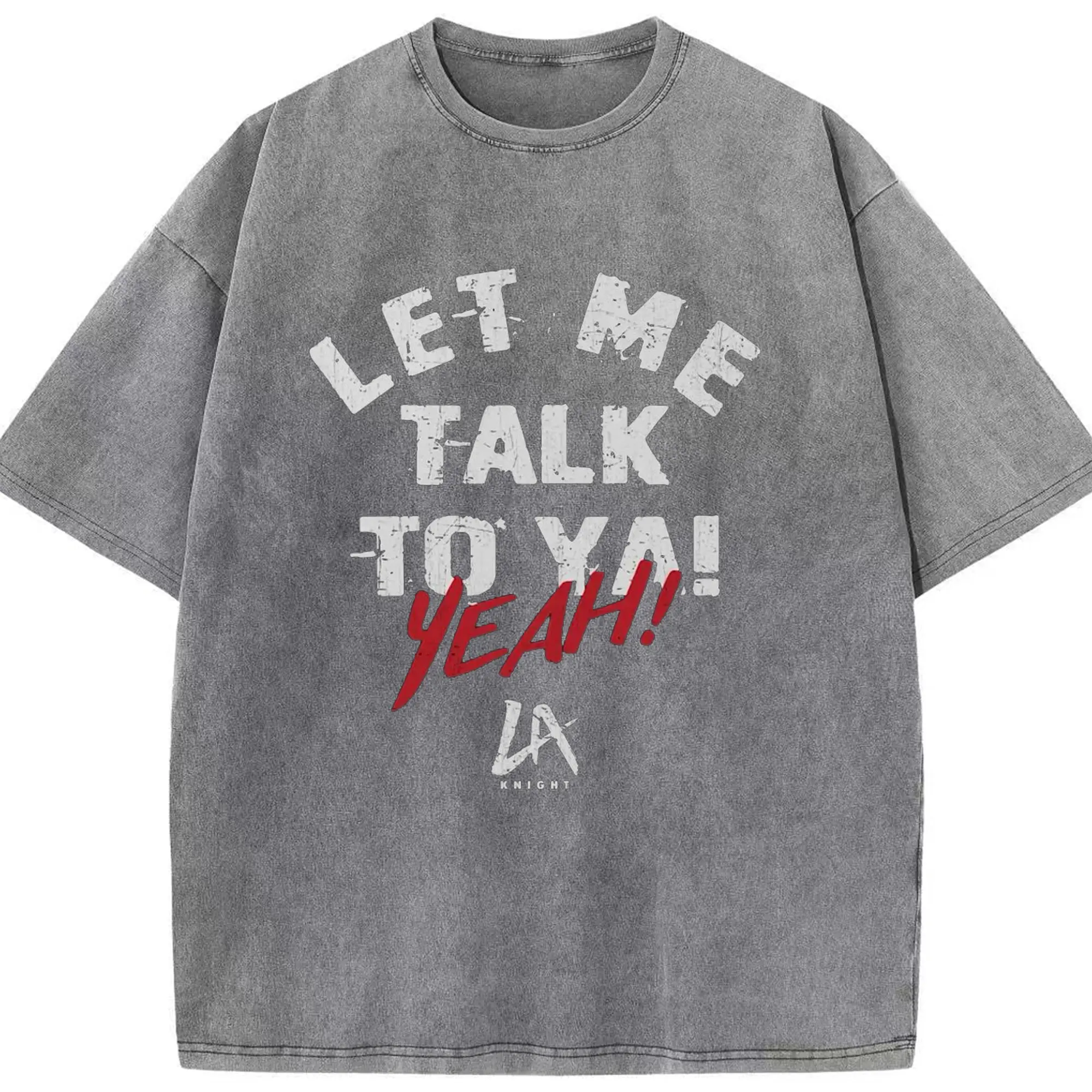 LA Knight “Let Me Talk To Ya! Yeah!” WWE DIY Shirt - Washed Vintage Look 230g Cotton Oversized T-Shirt With Front Heat Transfer Print – Soft, Lightweight, Stylish Fit – Comfortable Casual Wear For Sports & Everyday Use