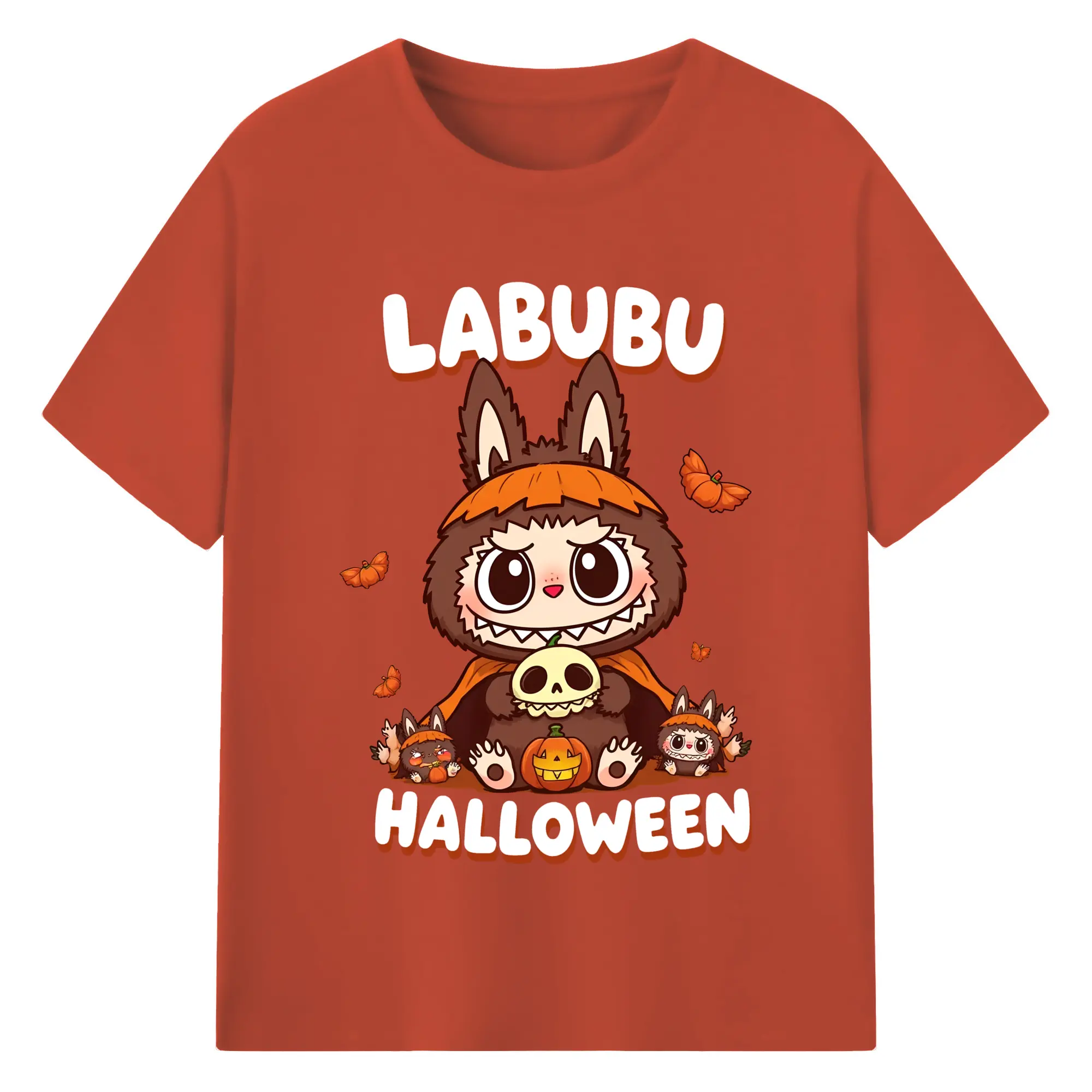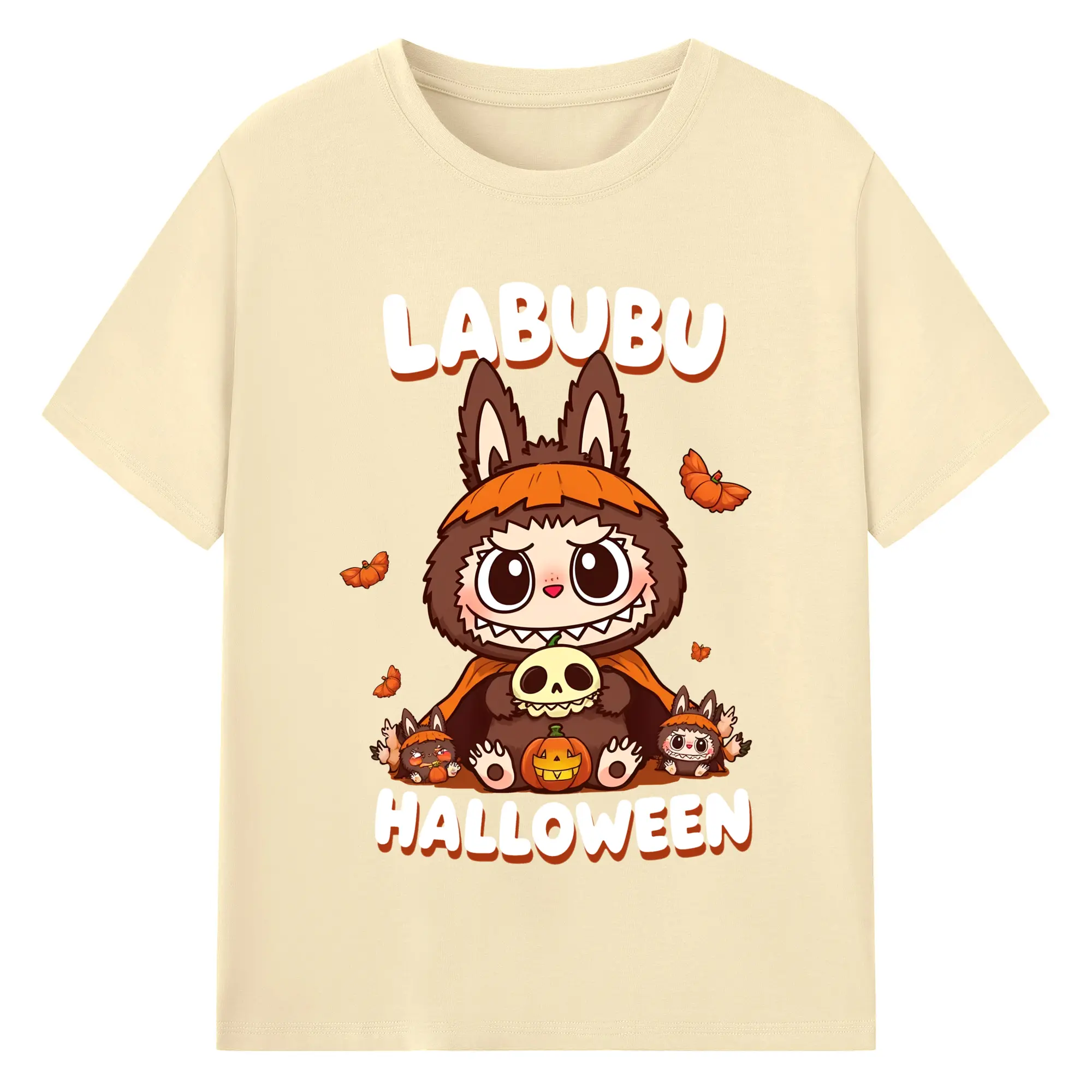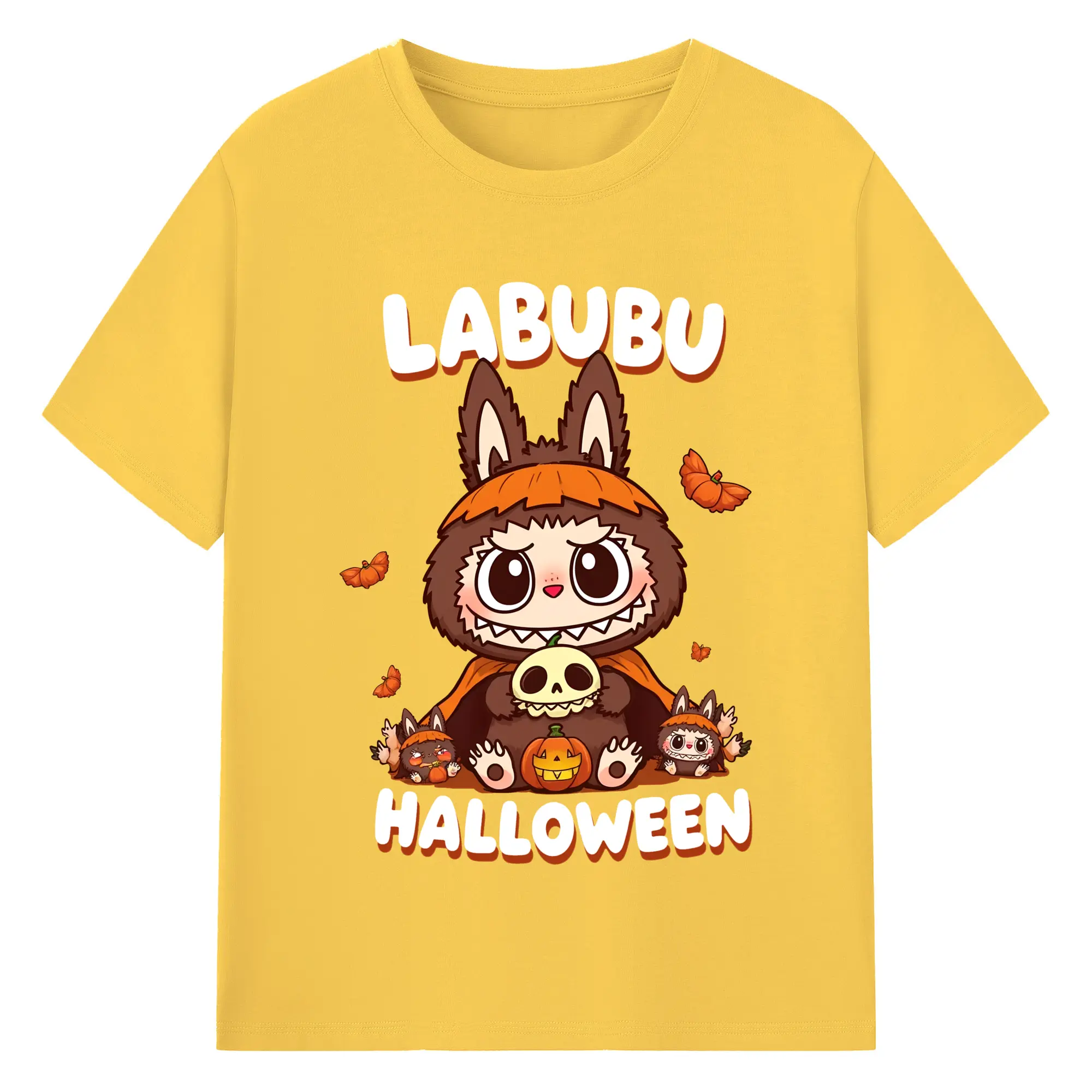 Labubu Cute Dark Pumpkin Trendy DIY - 180g Cotton T-Shirt With Front Heat Transfer Print – Soft, Lightweight, Fitted Design – Comfortable Casual Wear For Sports & Everyday Use