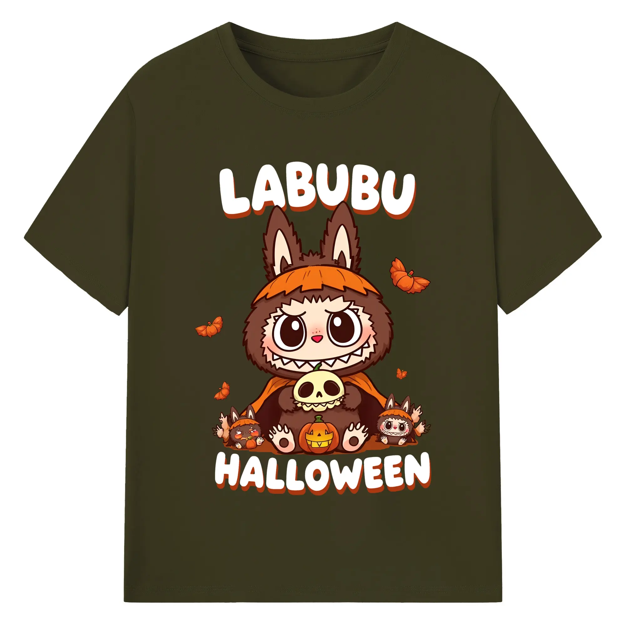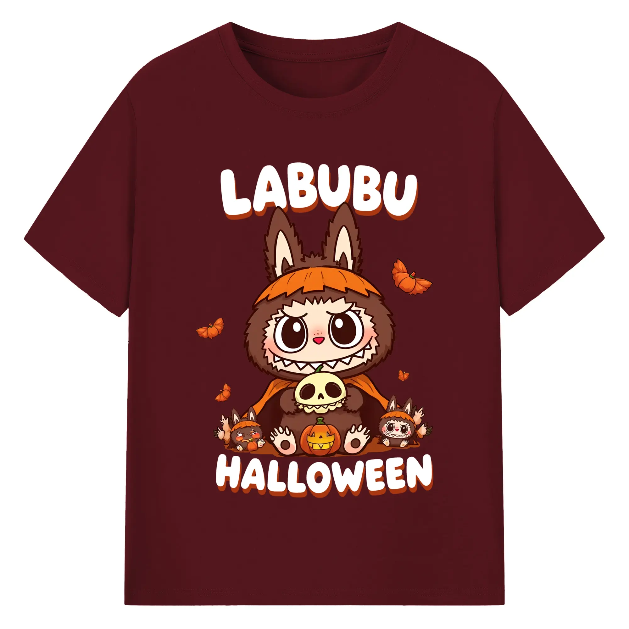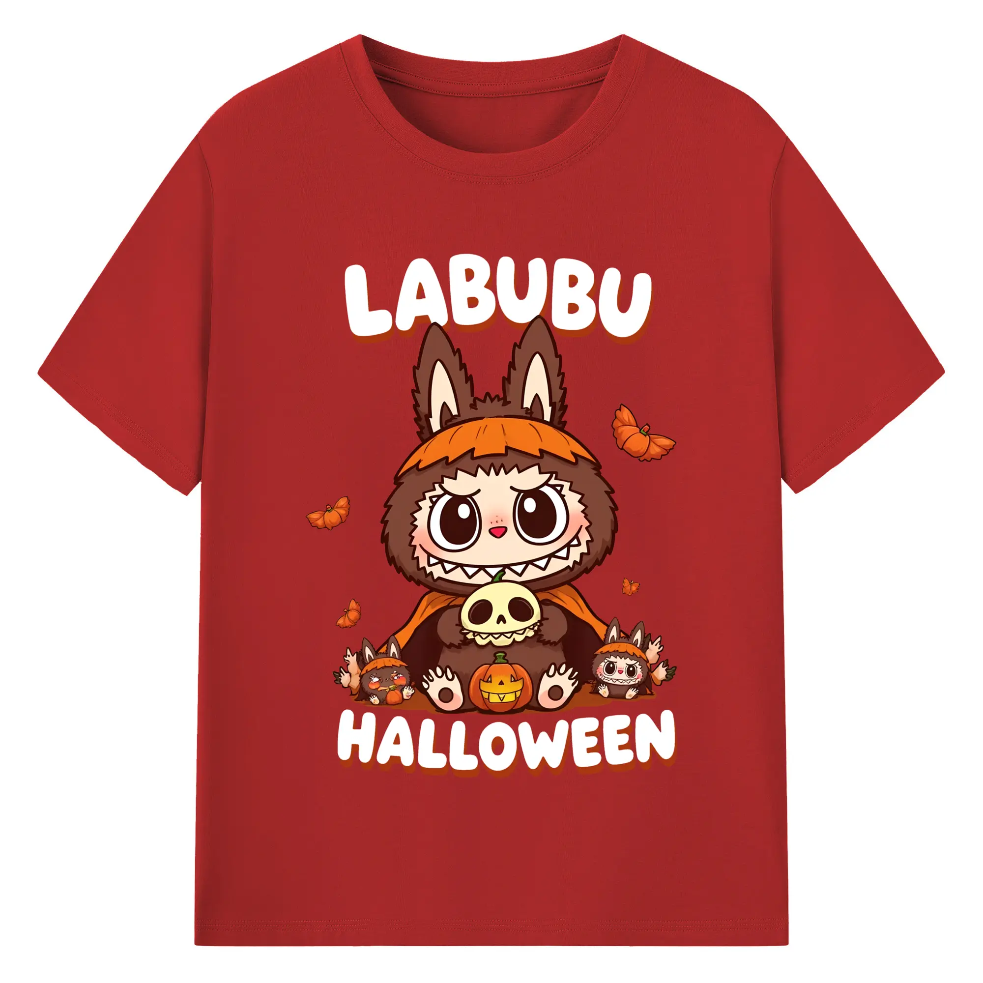 Labubu Cute Dark Pumpkin Trendy DIY - 180g Cotton T-Shirt With Front Heat Transfer Print – Soft, Lightweight, Fitted Design – Comfortable Casual Wear For Sports & Everyday Use