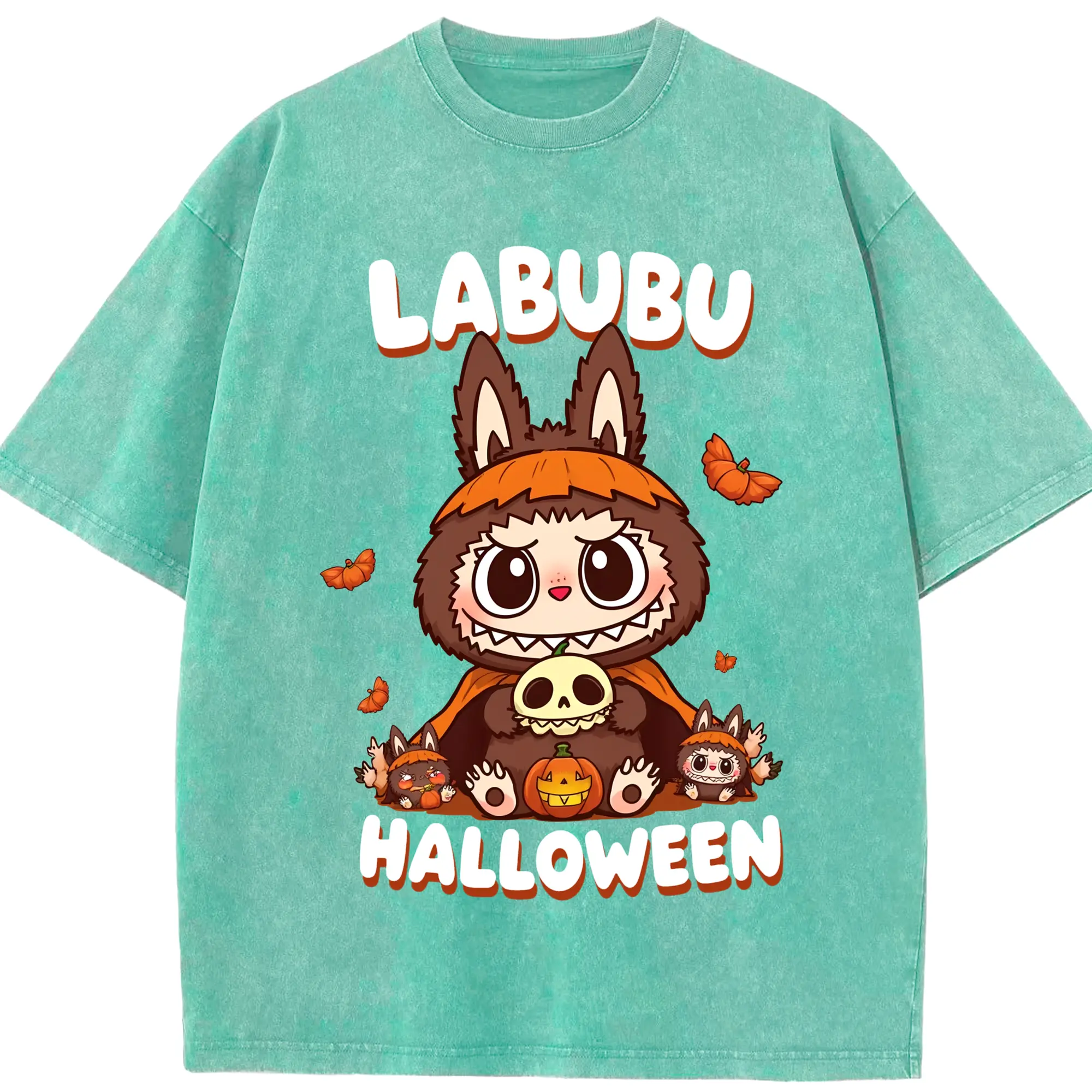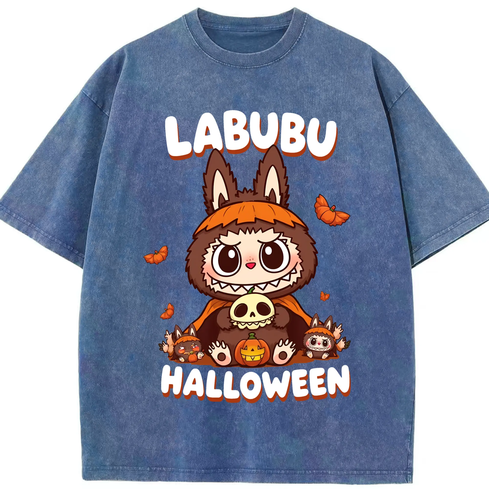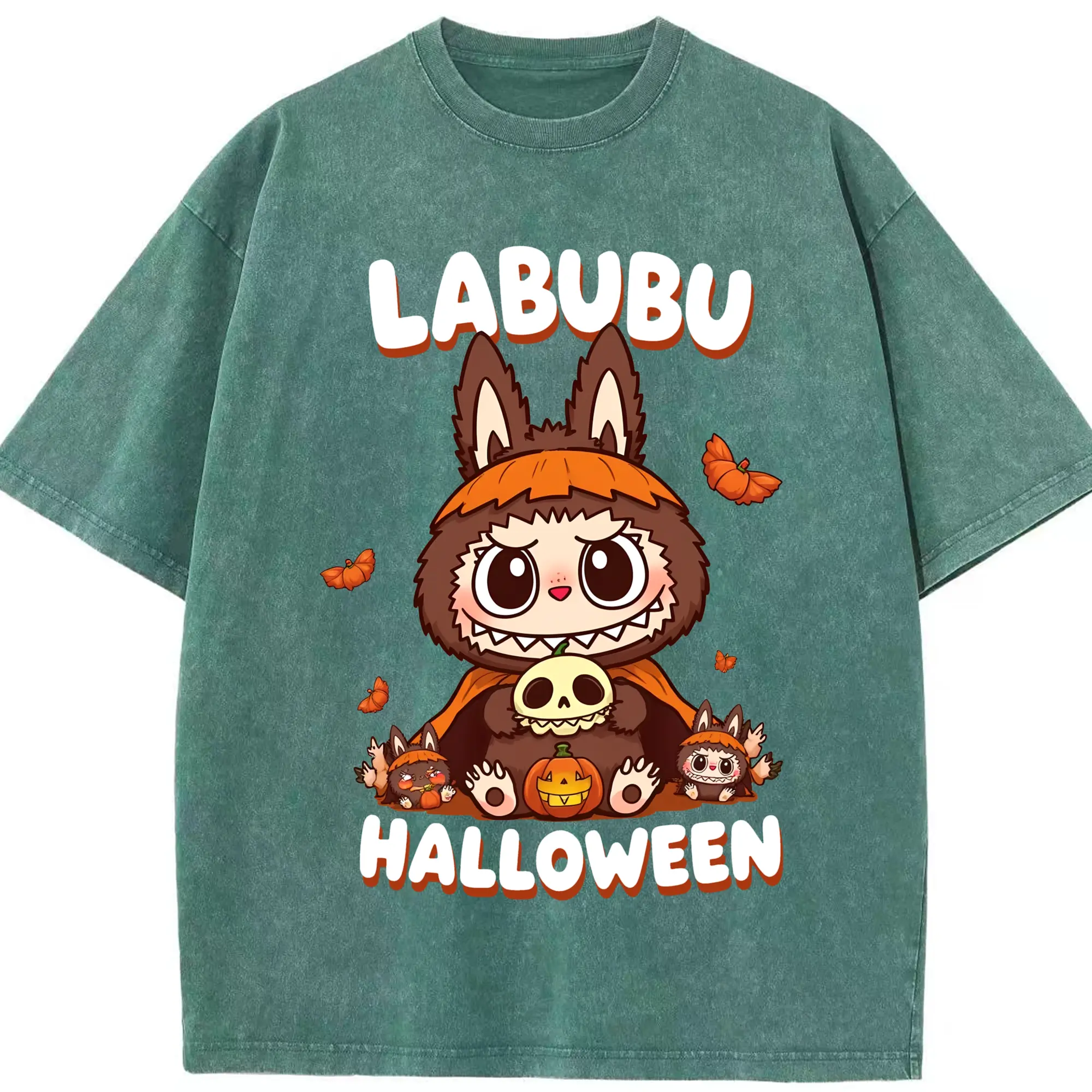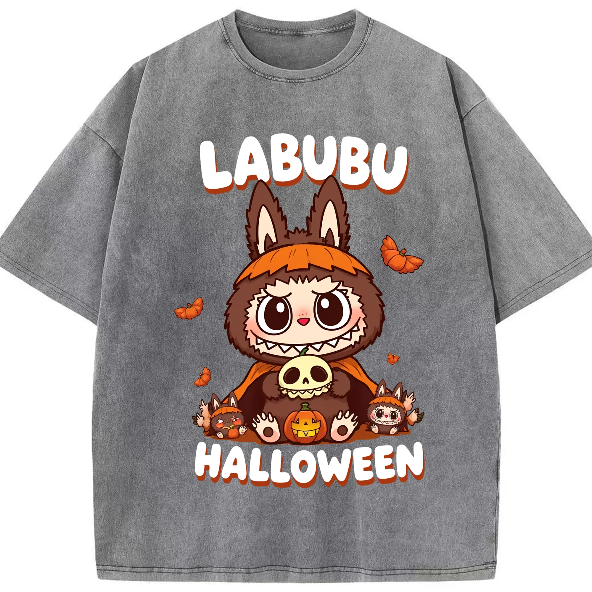 Labubu Cute Dark Pumpkin Trendy DIY - Washed Vintage Look 230g Cotton Oversized T-Shirt With Front Heat Transfer Print – Soft, Lightweight, Stylish Fit – Comfortable Casual Wear For Sports & Everyday Use