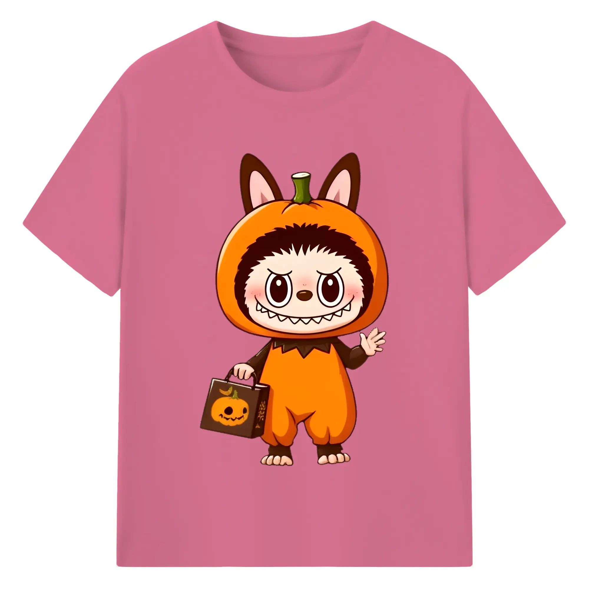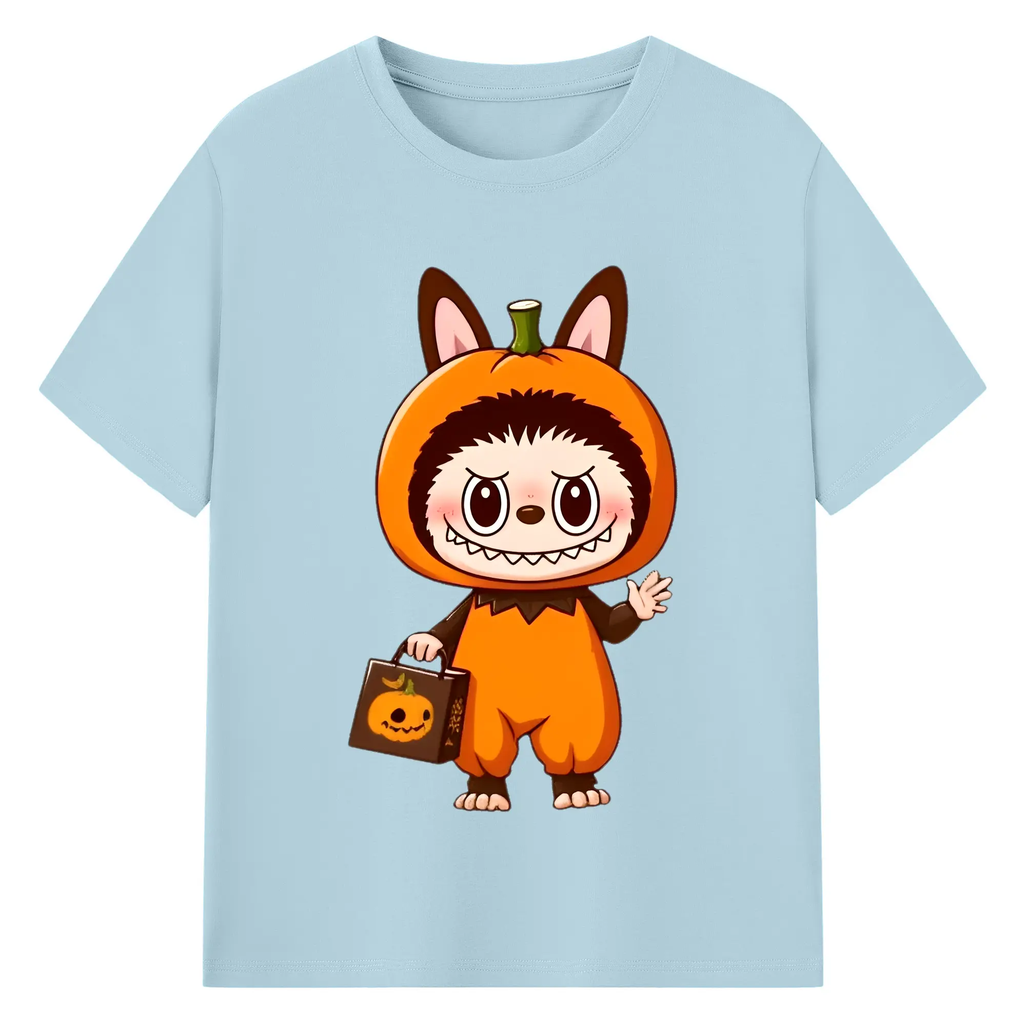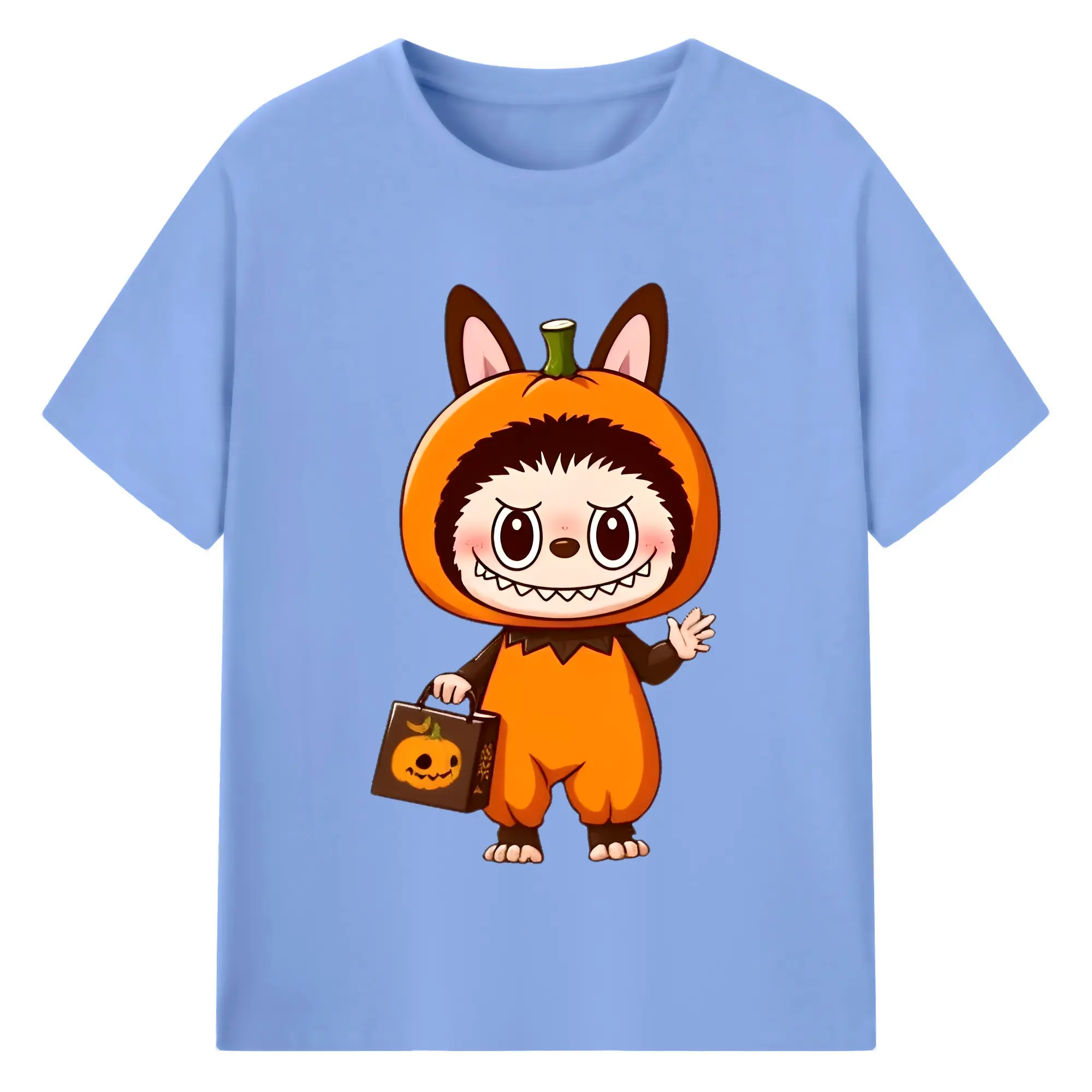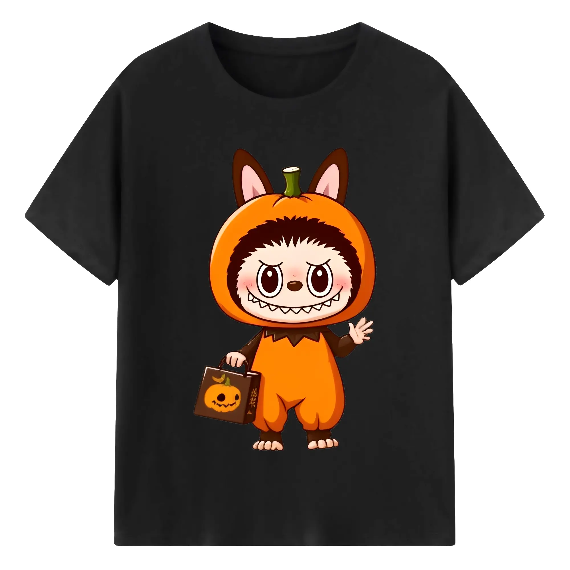 Labubu Cute Halloween Pumpkin Cartoon DIY - 180g Cotton T-Shirt With Front Heat Transfer Print – Soft, Lightweight, Fitted Design – Comfortable Casual Wear For Sports & Everyday Use