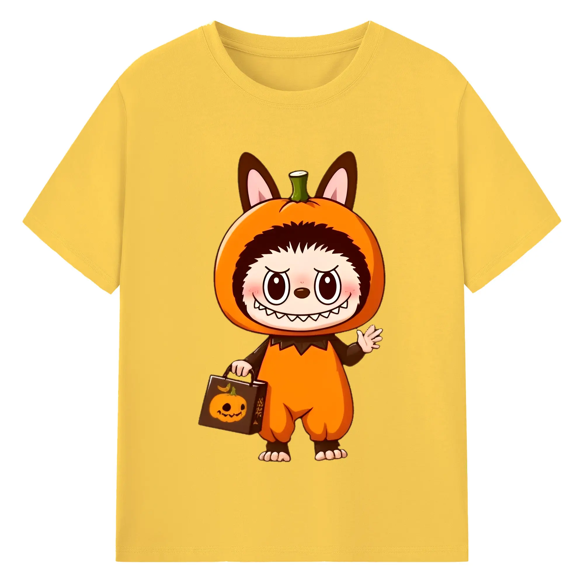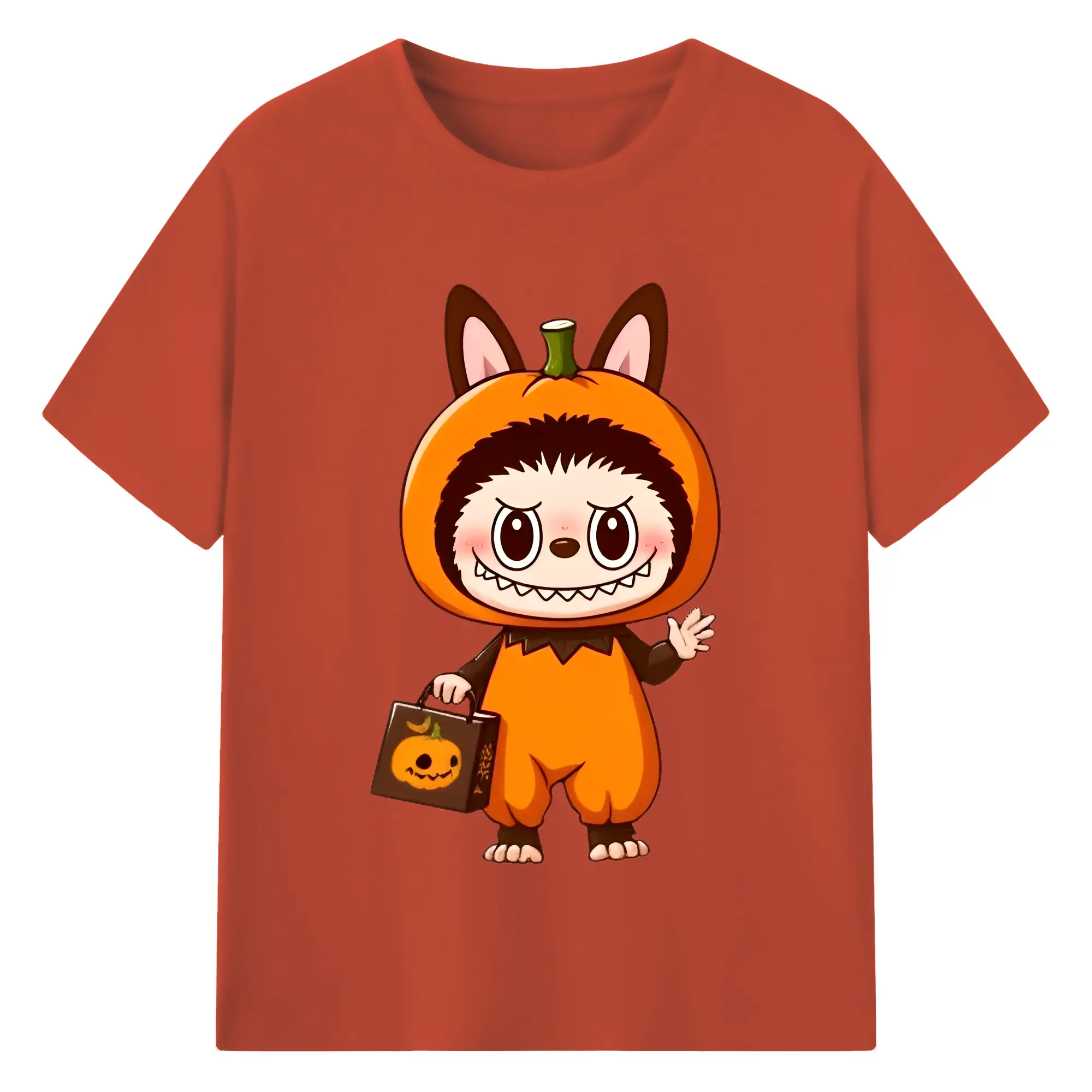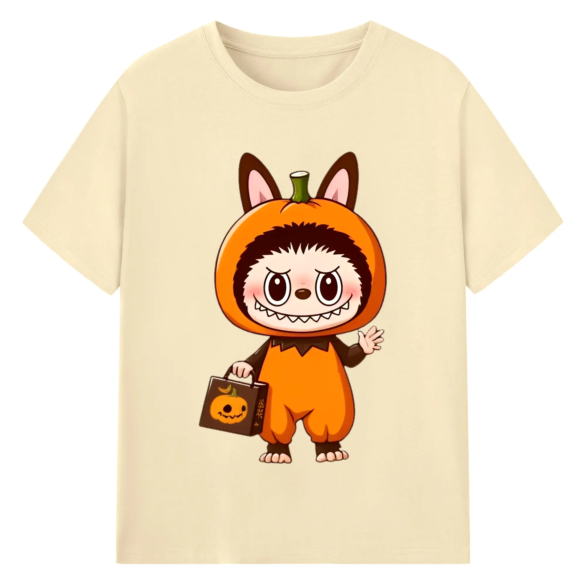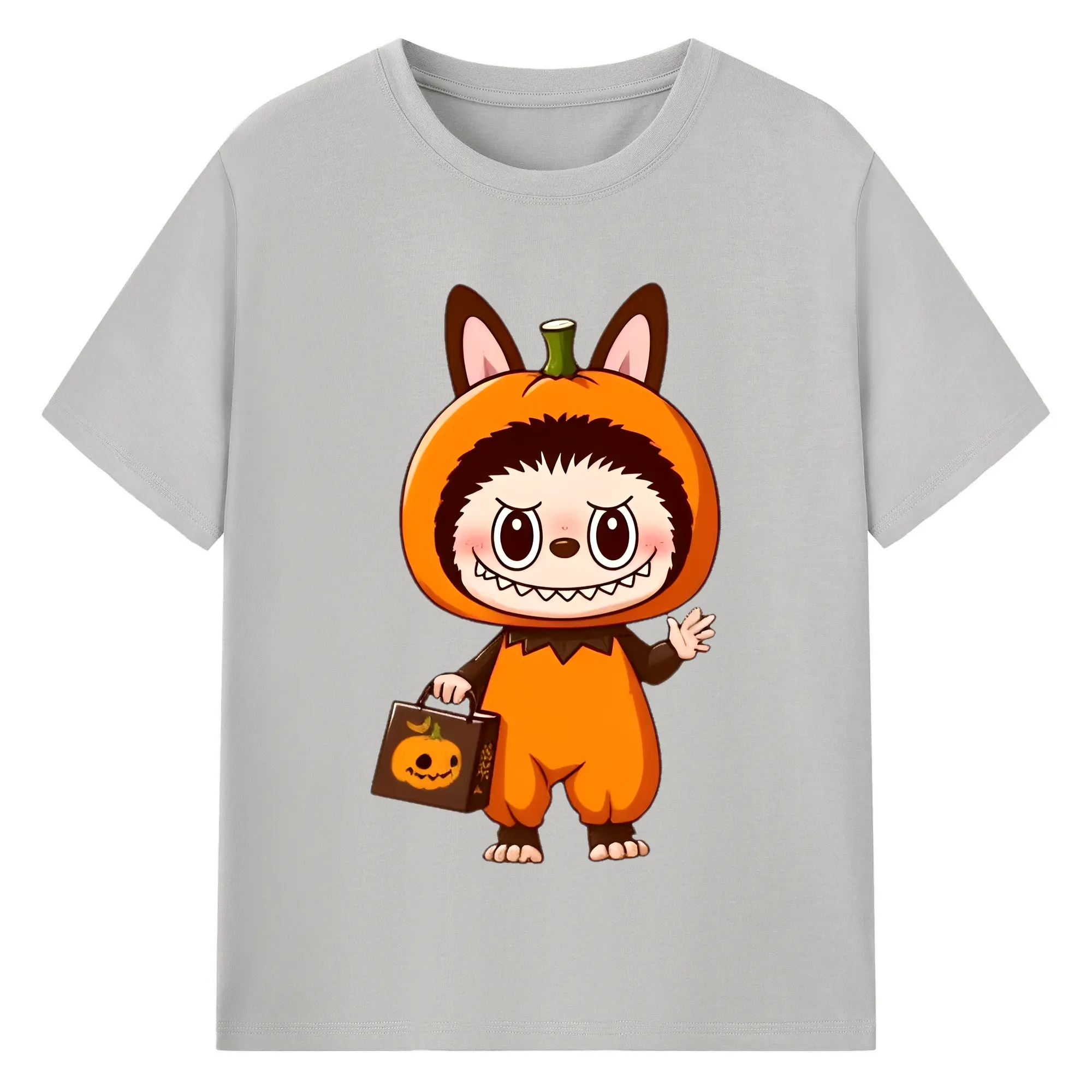 Labubu Cute Halloween Pumpkin Cartoon DIY - 180g Cotton T-Shirt With Front Heat Transfer Print – Soft, Lightweight, Fitted Design – Comfortable Casual Wear For Sports & Everyday Use