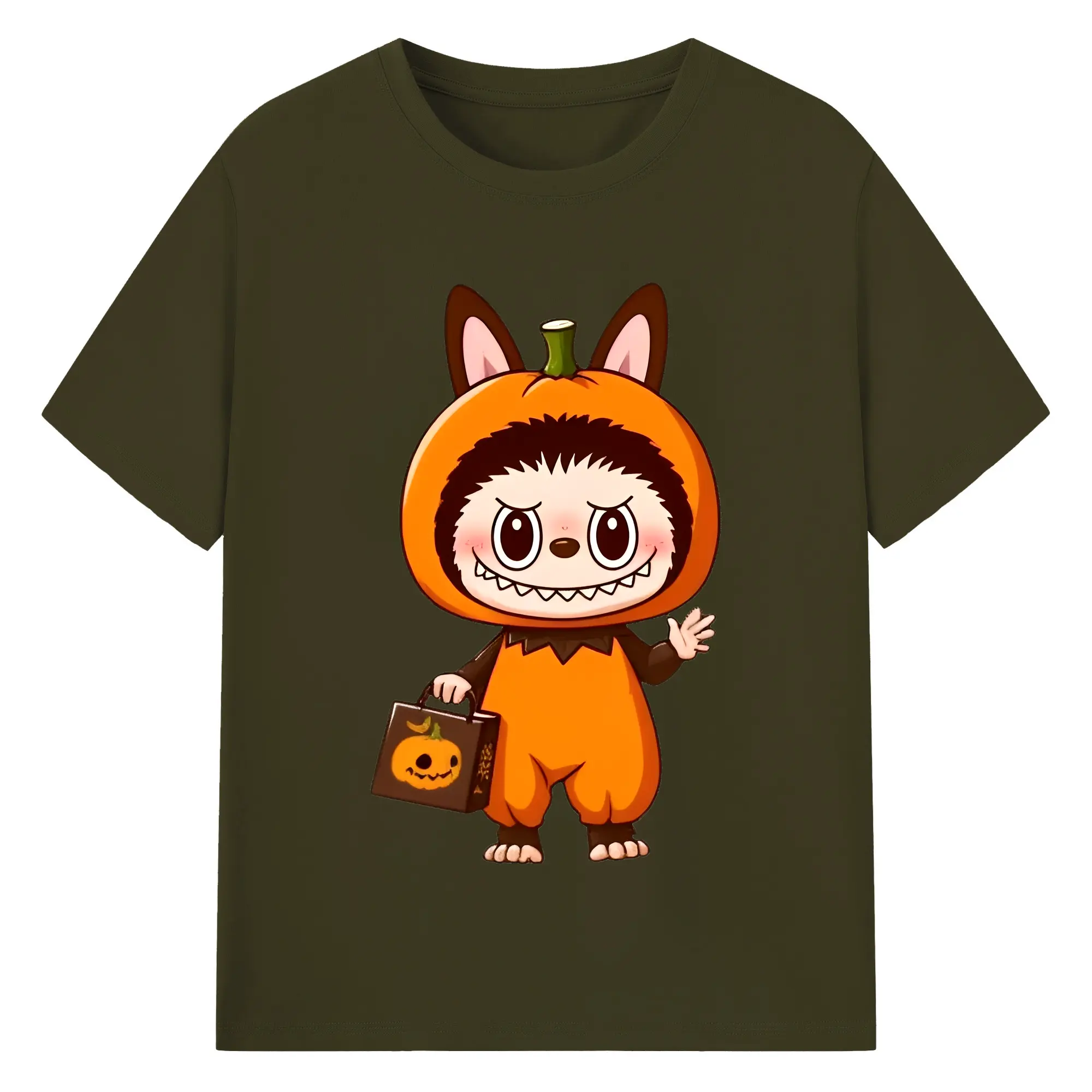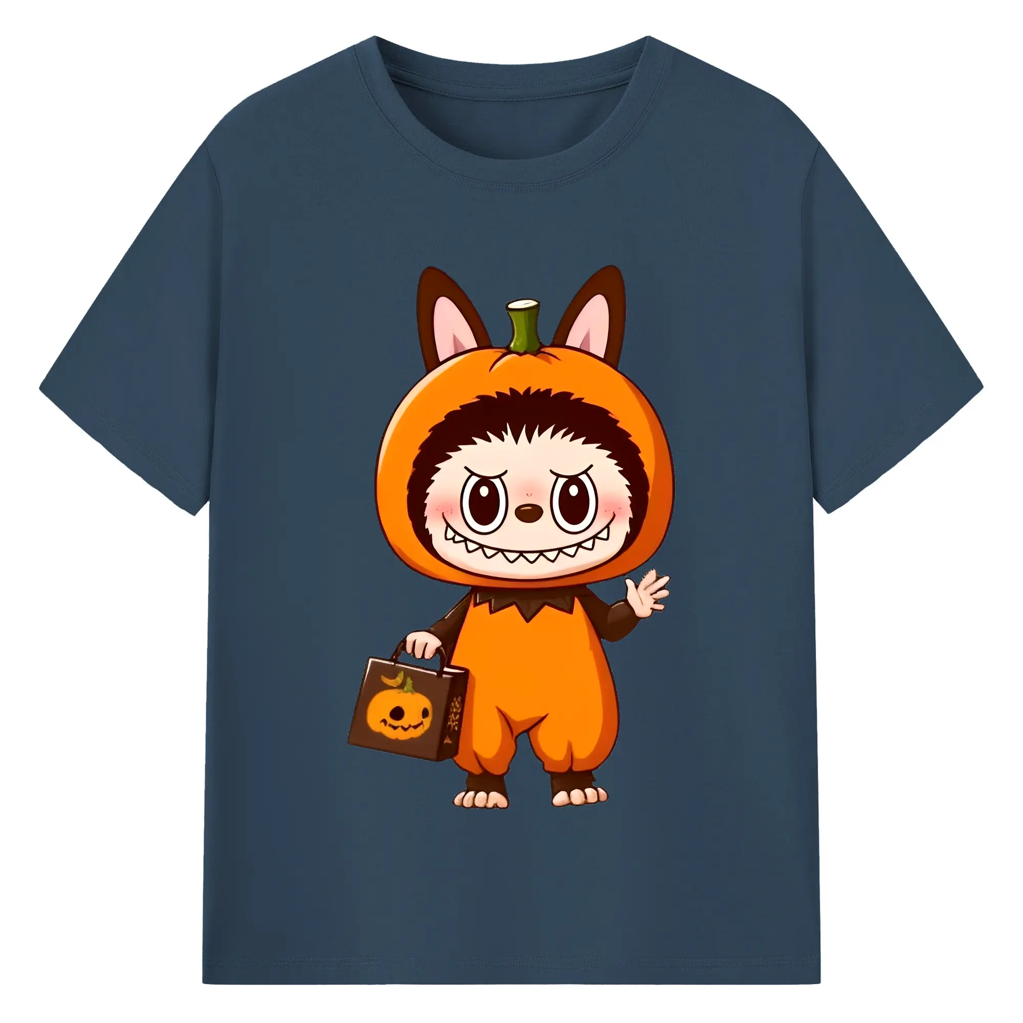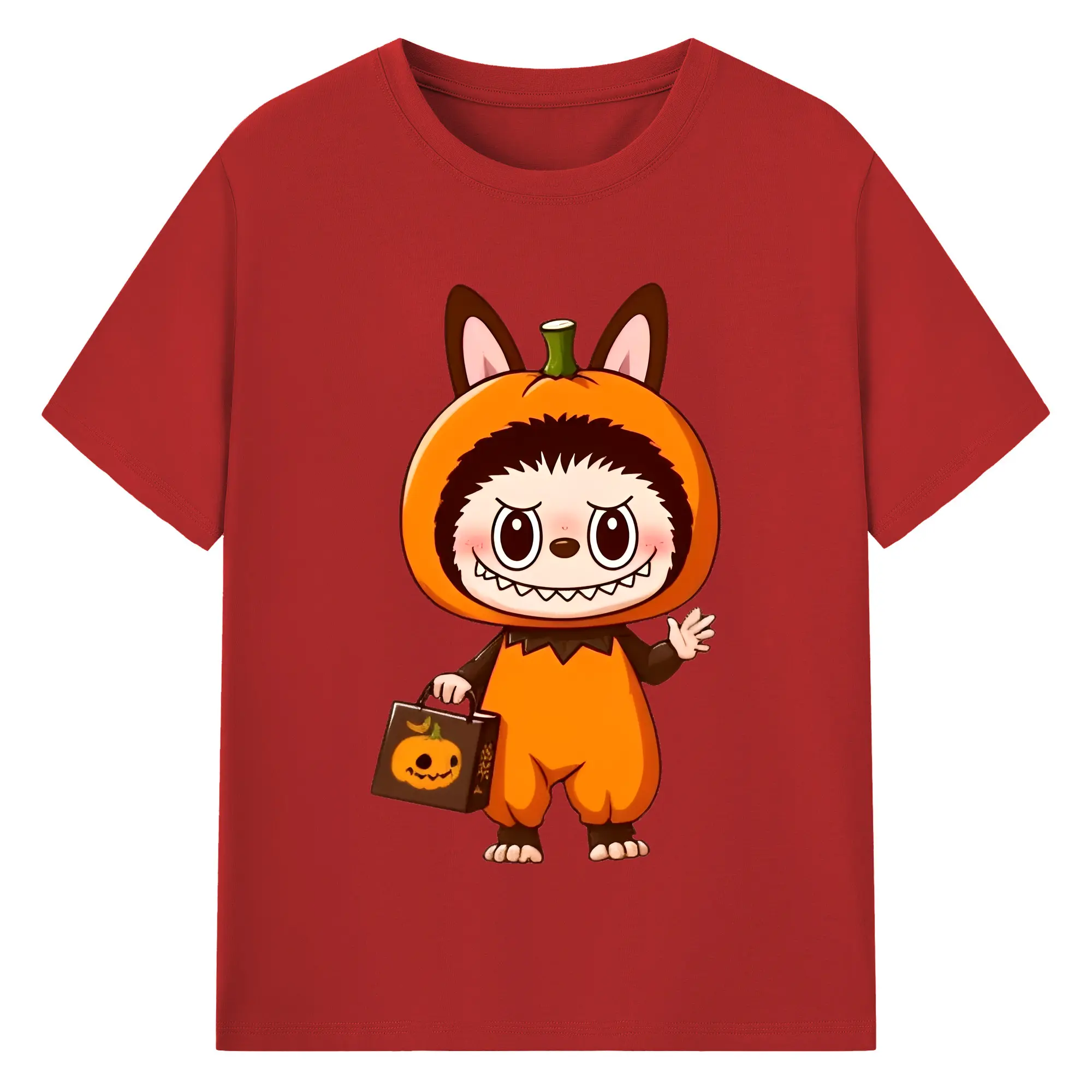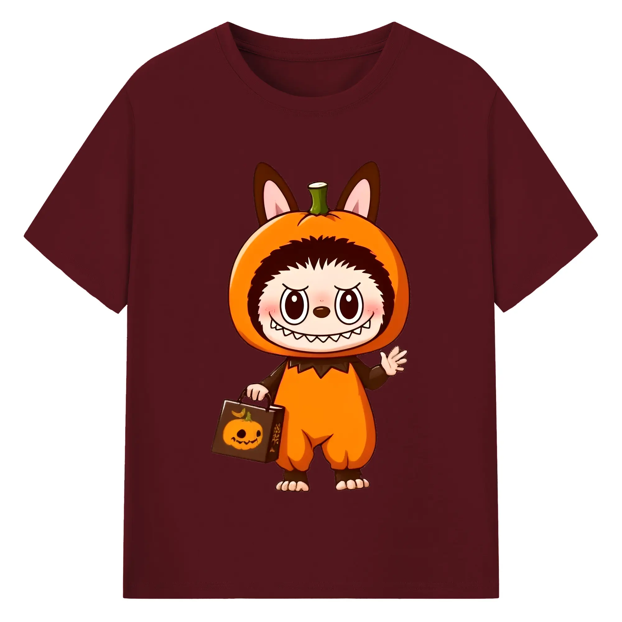 Labubu Cute Halloween Pumpkin Cartoon DIY - 180g Cotton T-Shirt With Front Heat Transfer Print – Soft, Lightweight, Fitted Design – Comfortable Casual Wear For Sports & Everyday Use