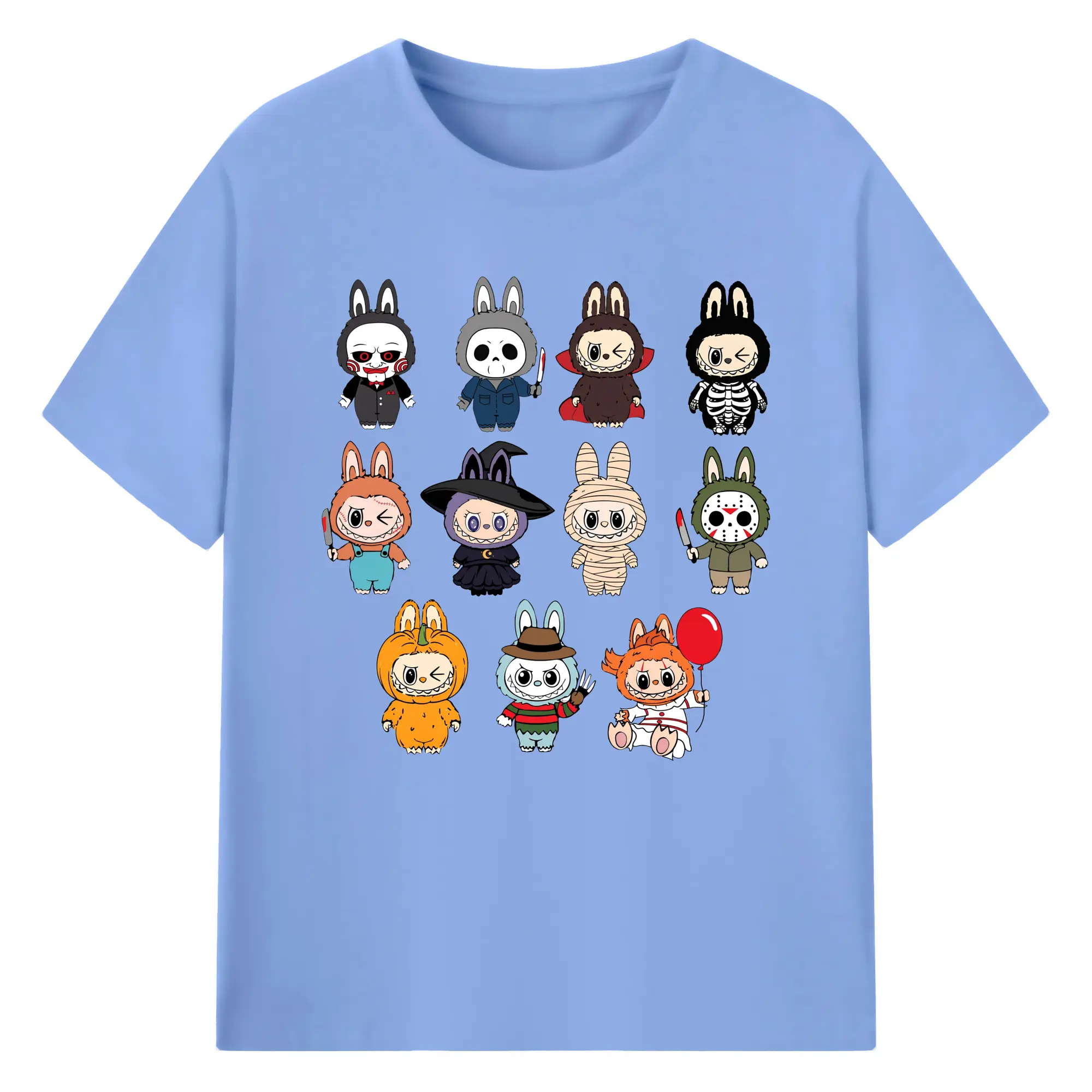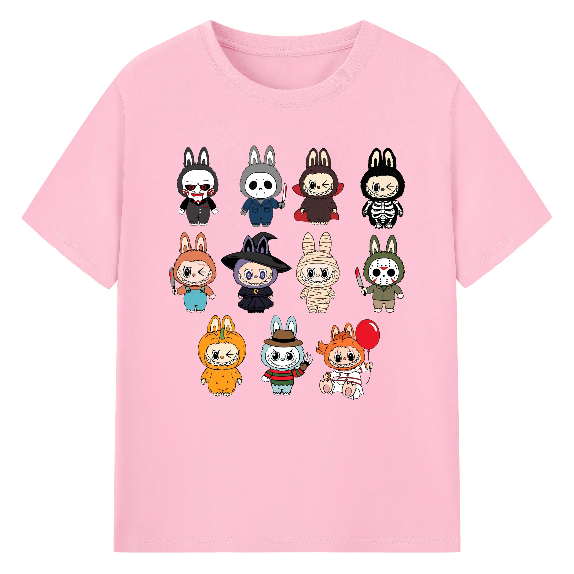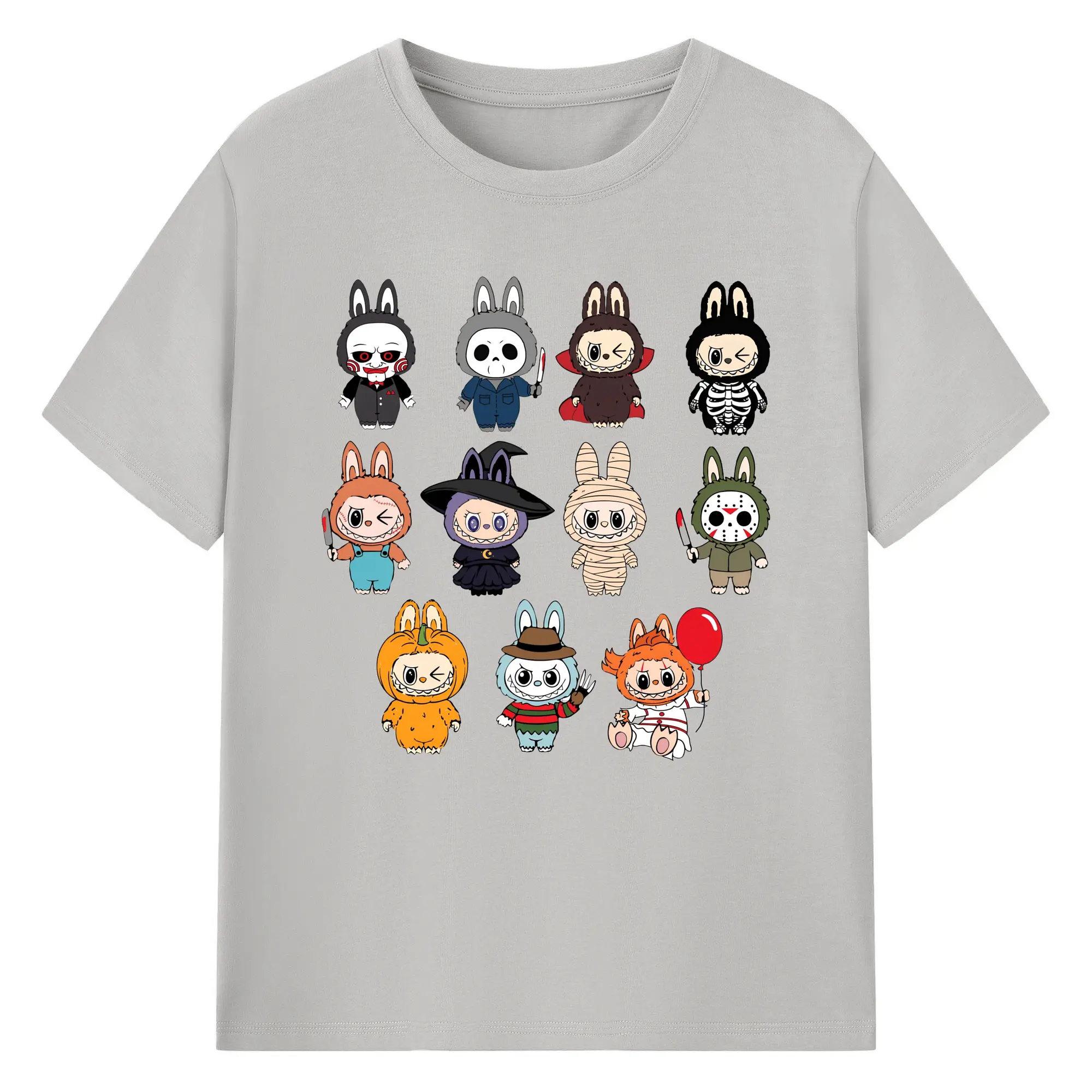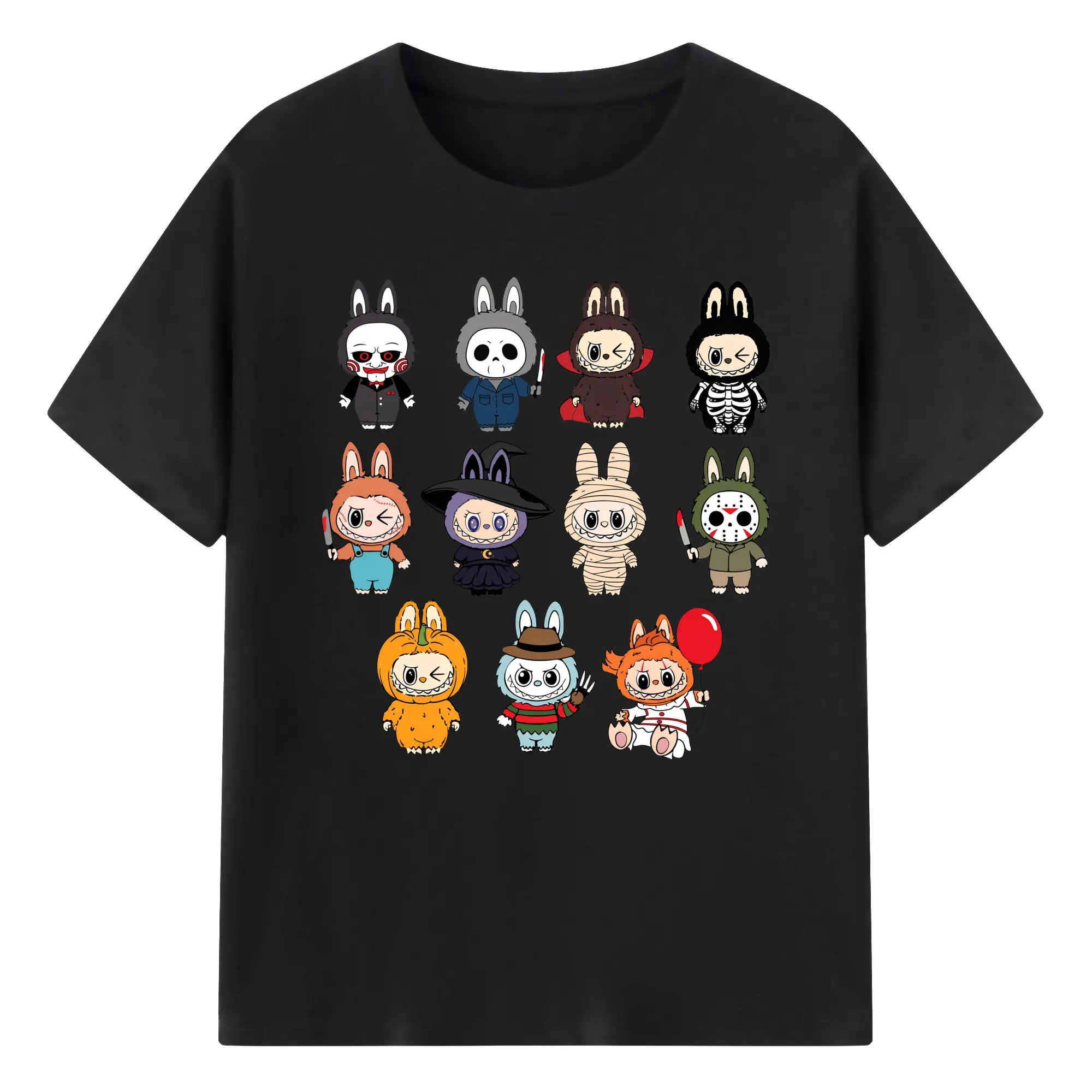 Labubu Cute Horror Movie Characters Collection DIY - 180g Cotton T-Shirt With Front Heat Transfer Print – Soft, Lightweight, Fitted Design – Comfortable Casual Wear For Sports & Everyday Use
