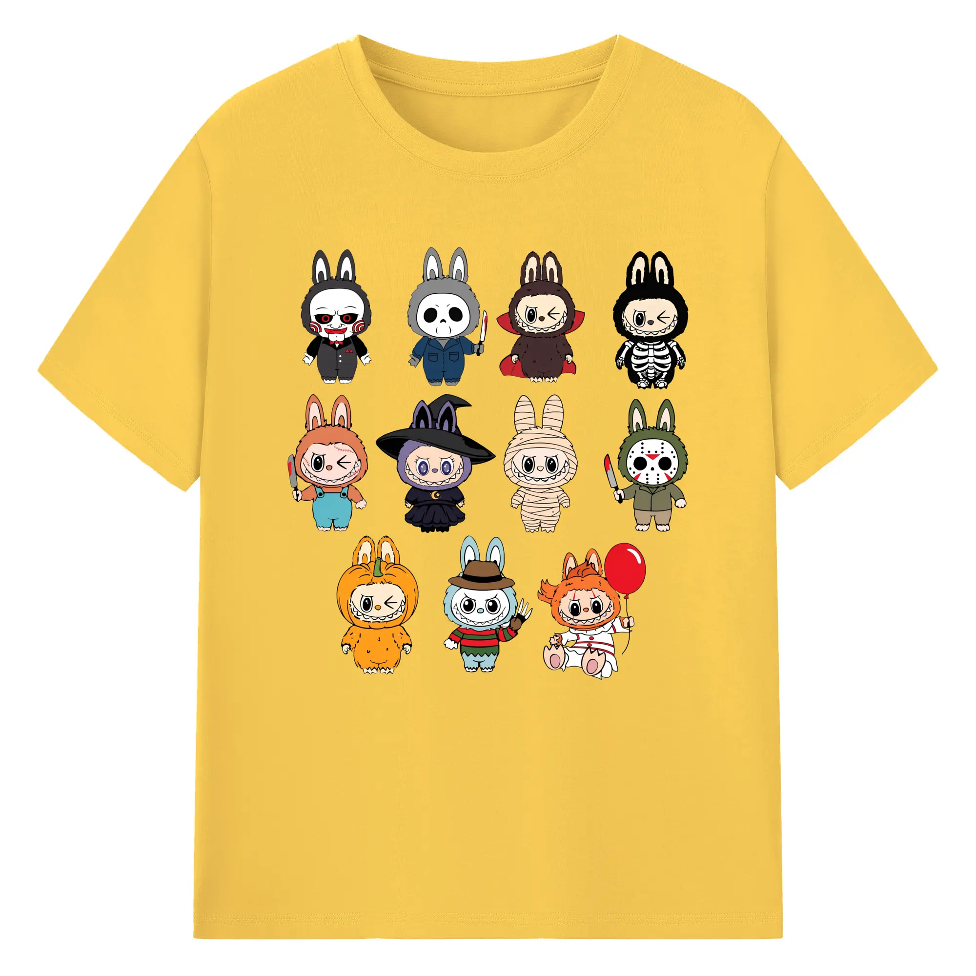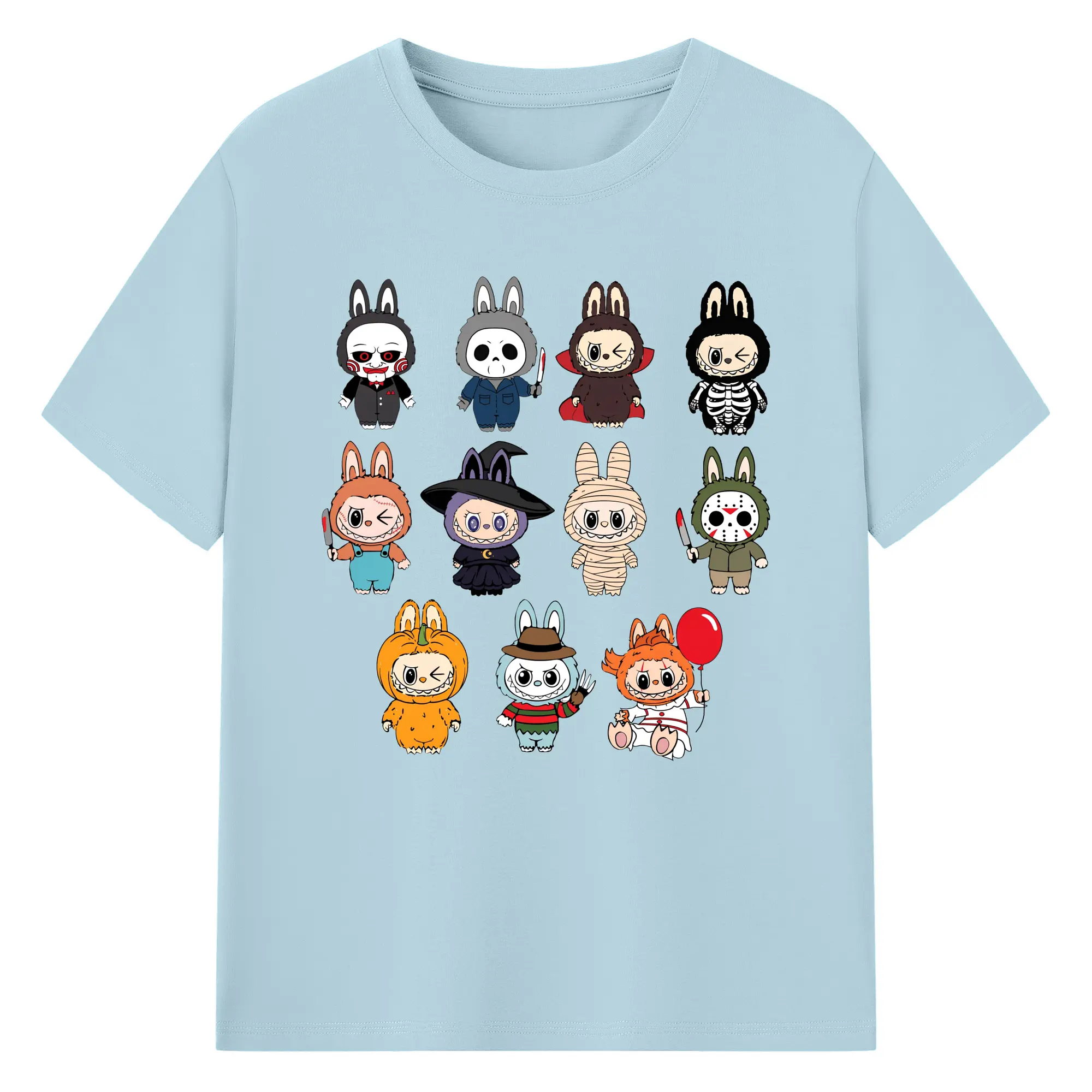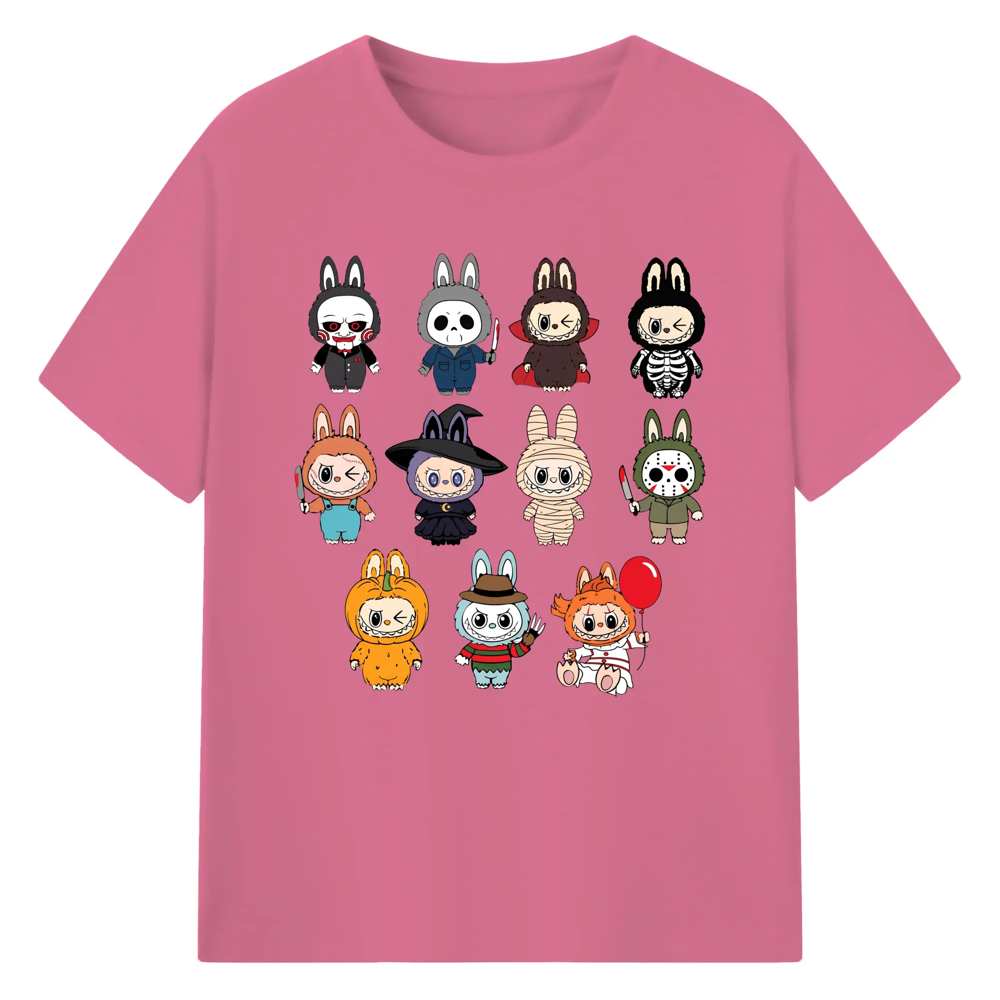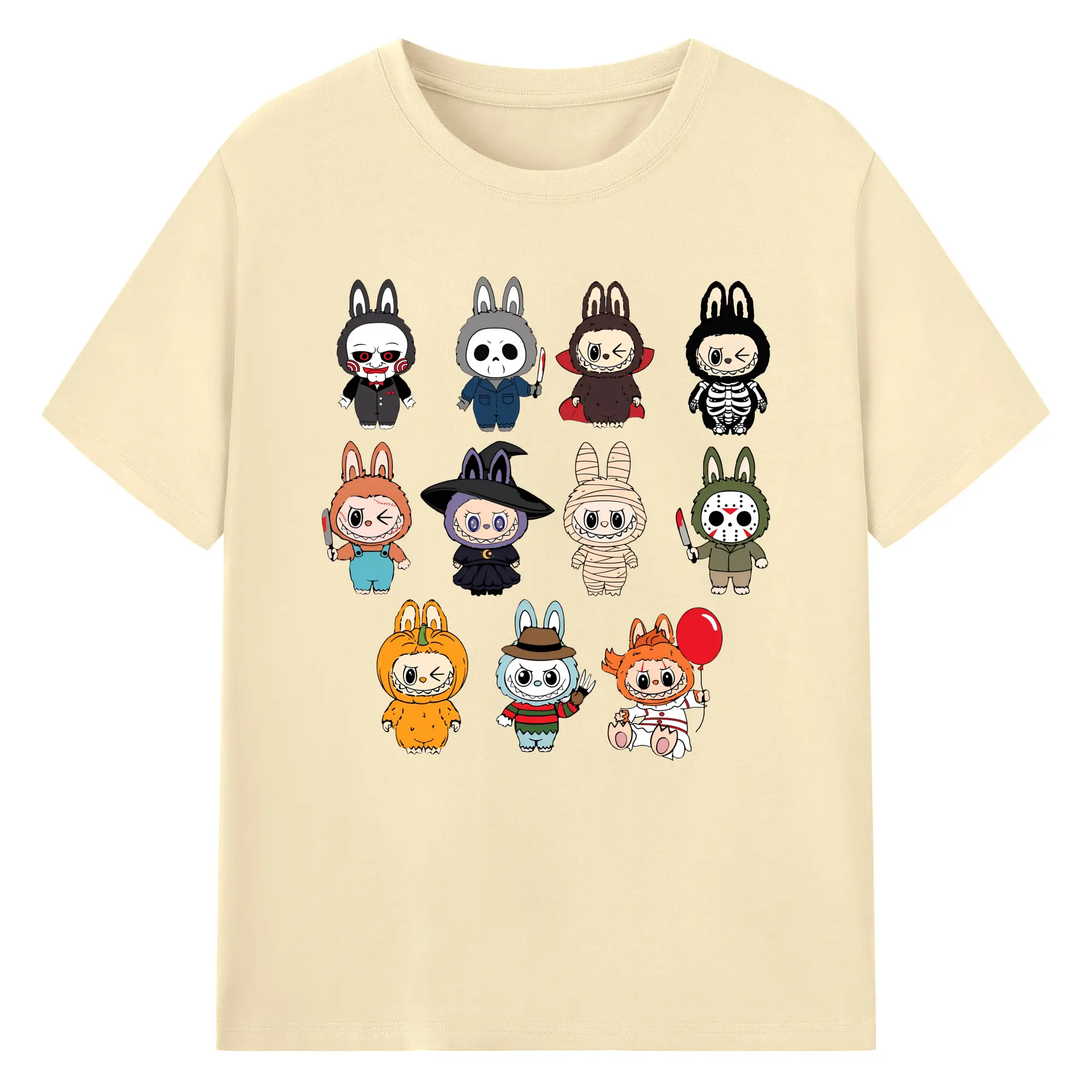 Labubu Cute Horror Movie Characters Collection DIY - 180g Cotton T-Shirt With Front Heat Transfer Print – Soft, Lightweight, Fitted Design – Comfortable Casual Wear For Sports & Everyday Use