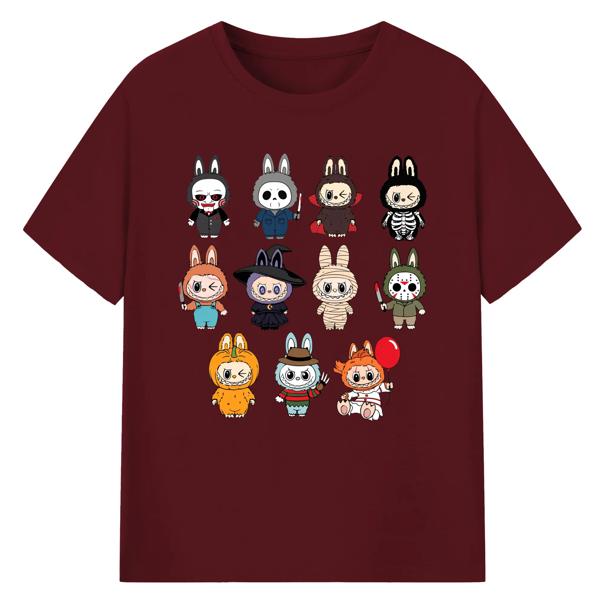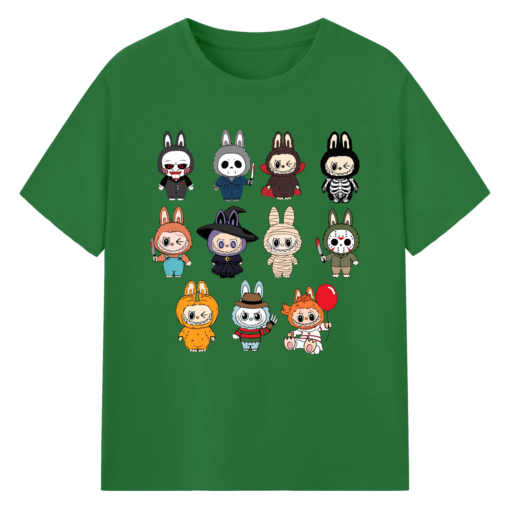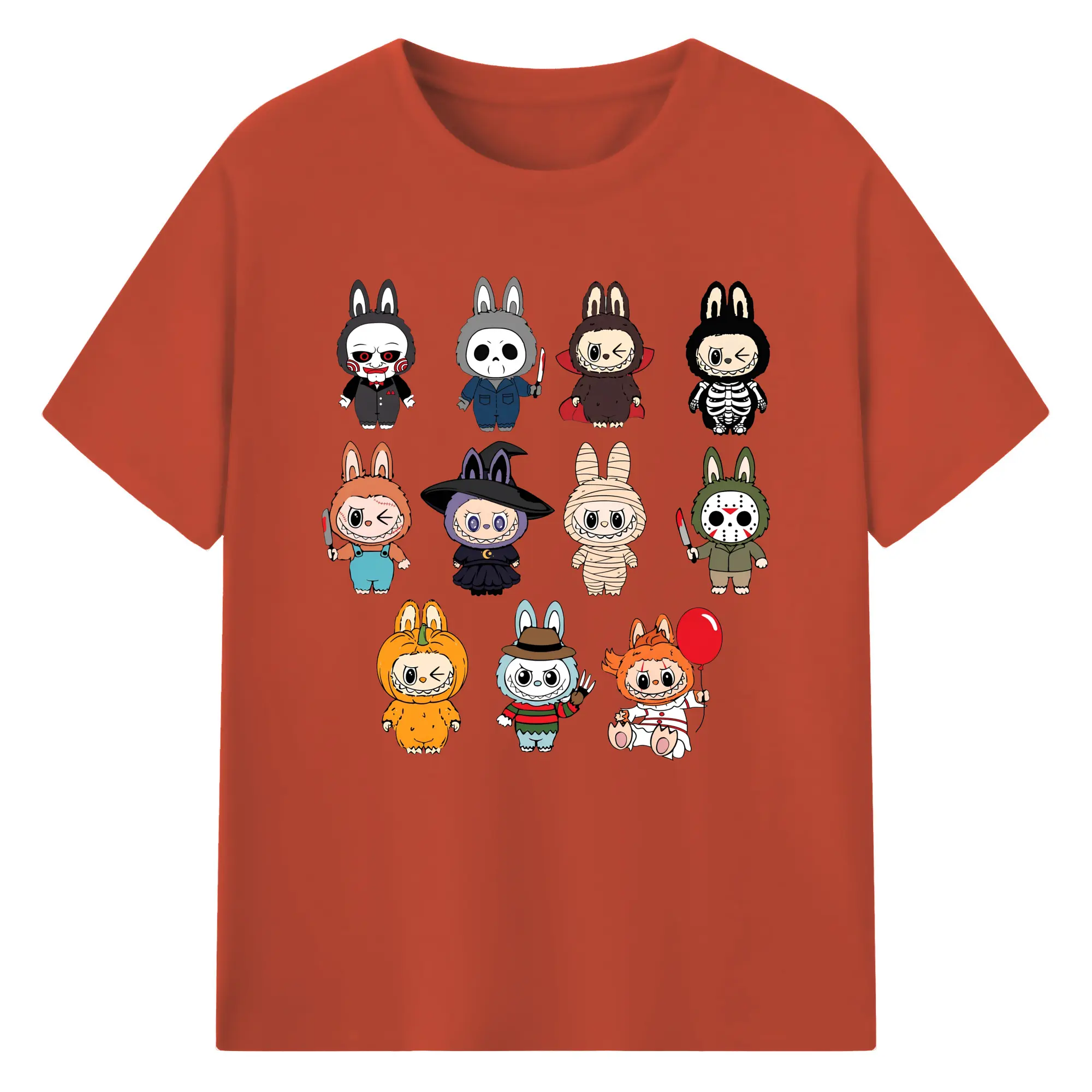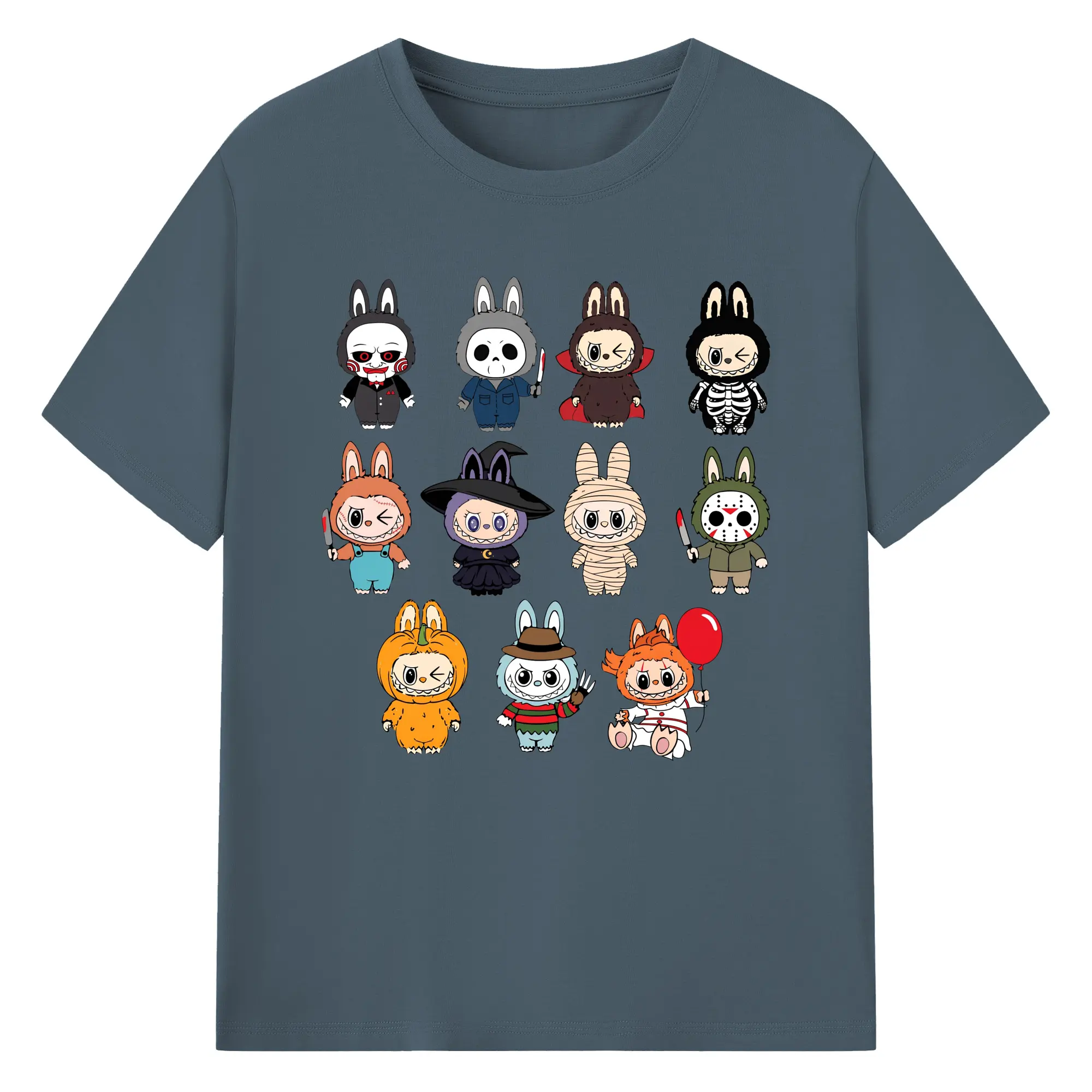 Labubu Cute Horror Movie Characters Collection DIY - 180g Cotton T-Shirt With Front Heat Transfer Print – Soft, Lightweight, Fitted Design – Comfortable Casual Wear For Sports & Everyday Use
